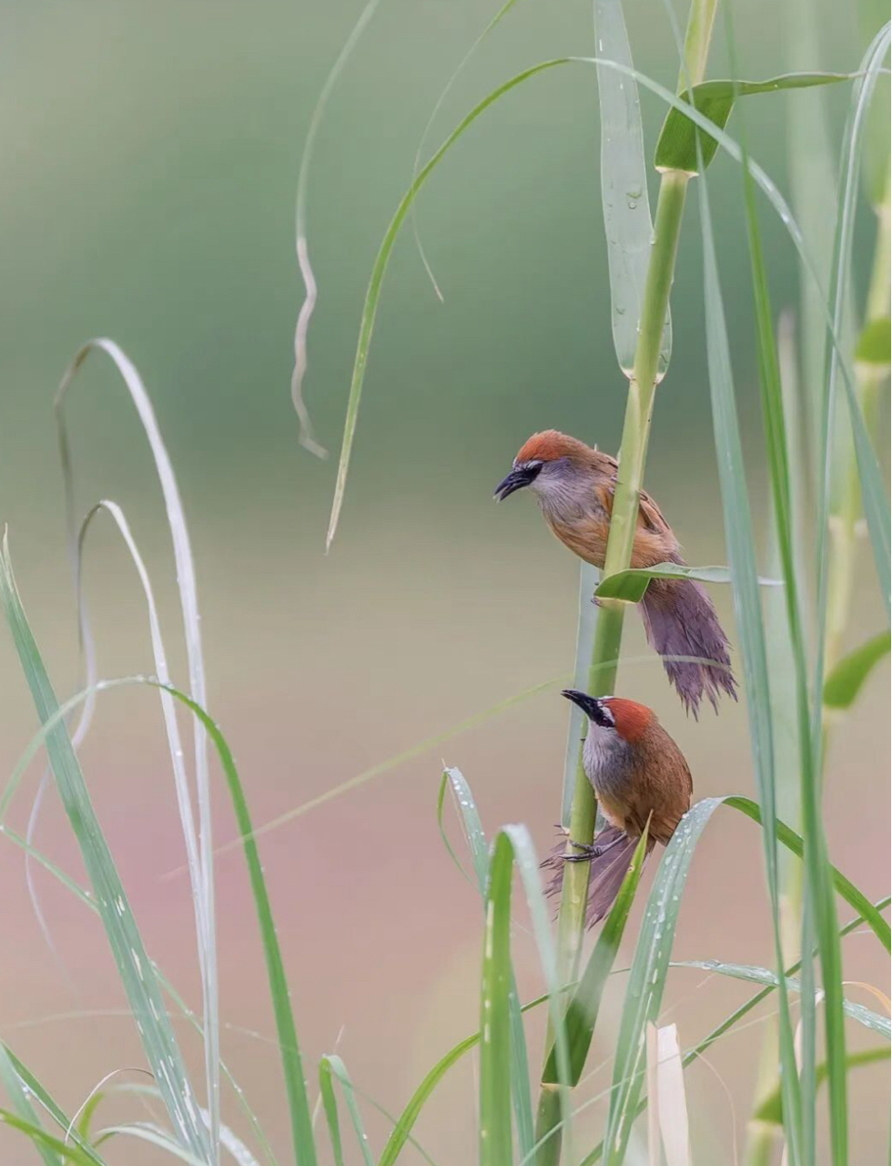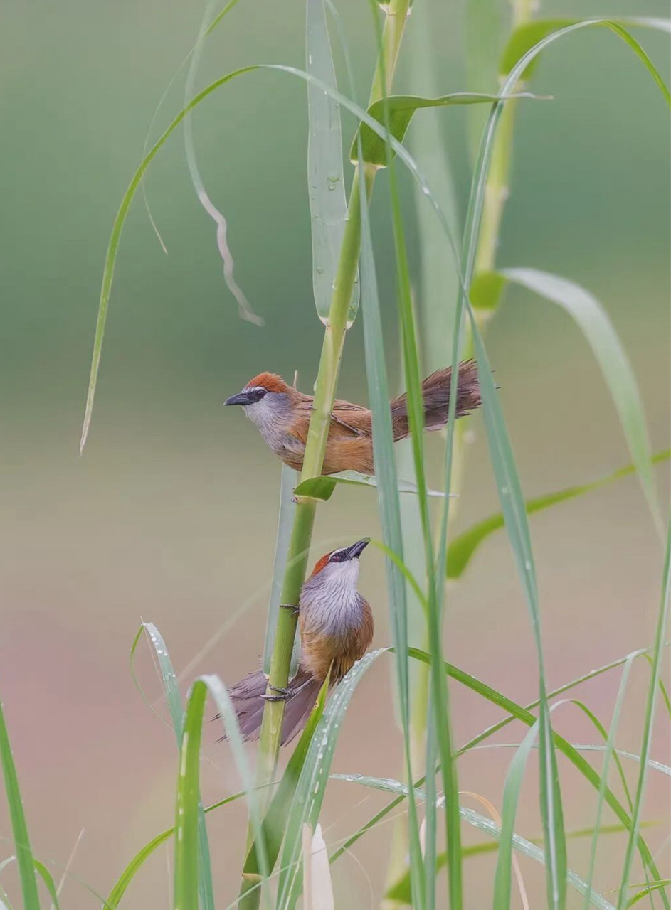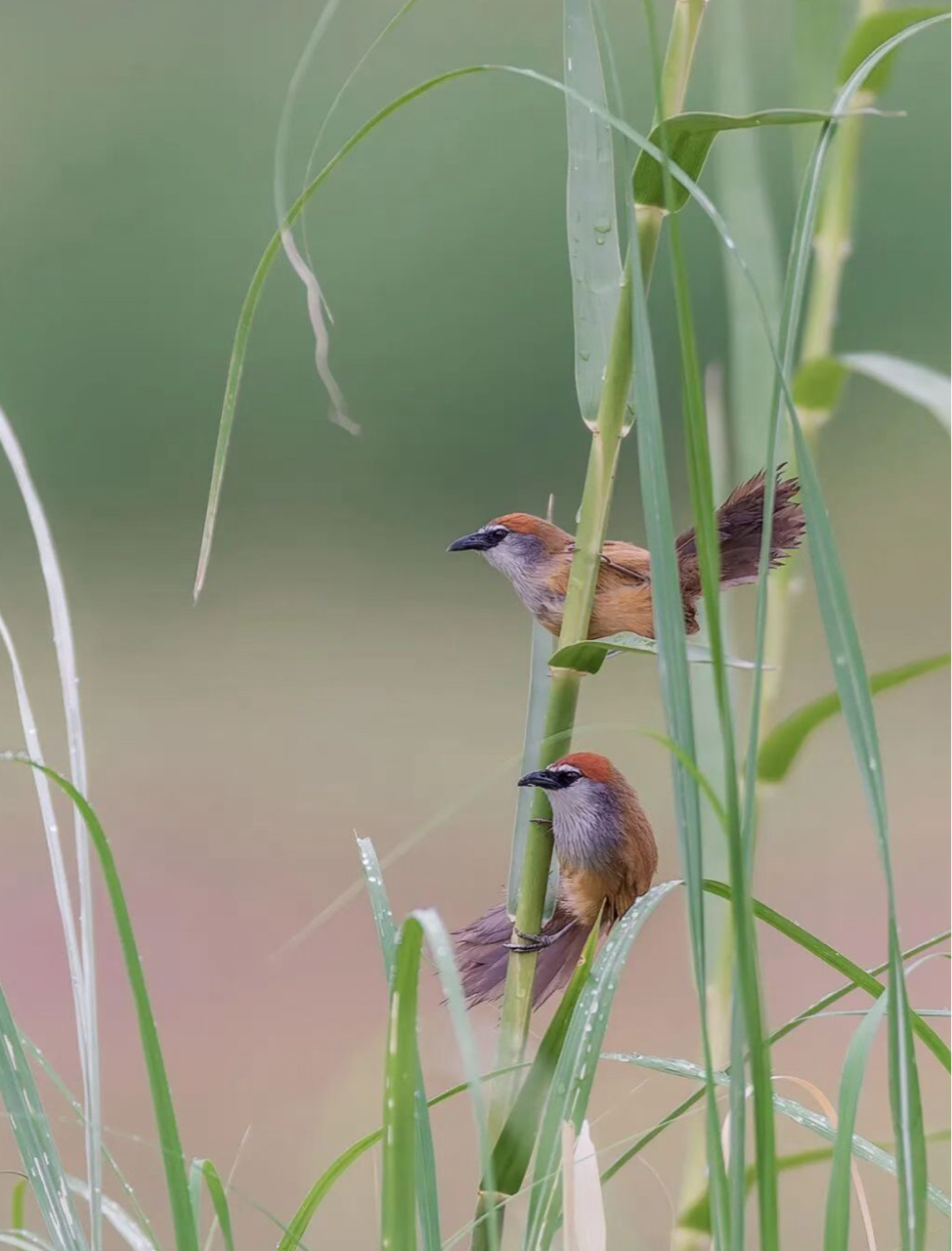 芦苇丛里蹲到红顶鹛小情侣啦!湿地观鸟的快乐,懂的都懂~