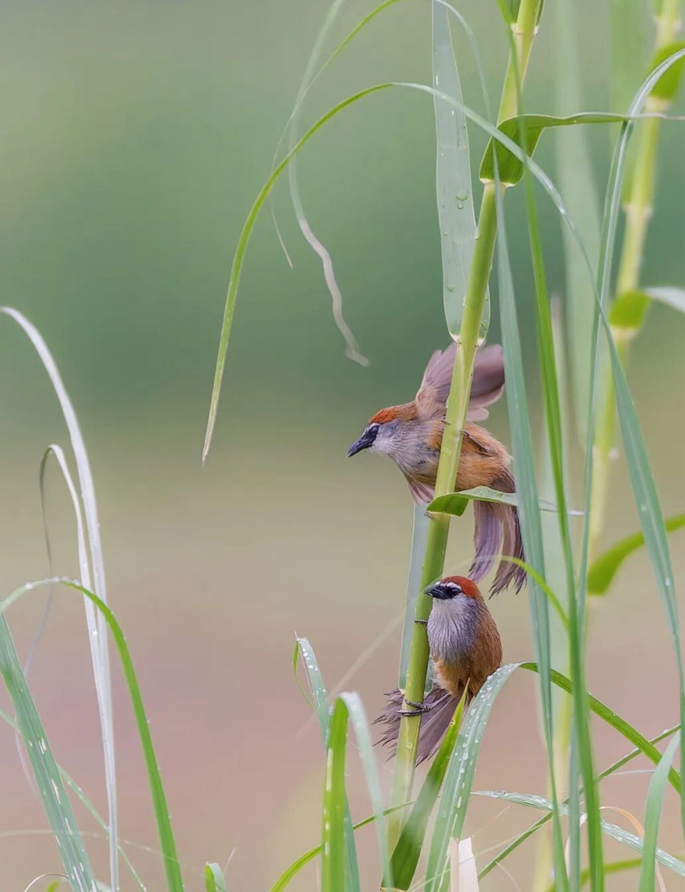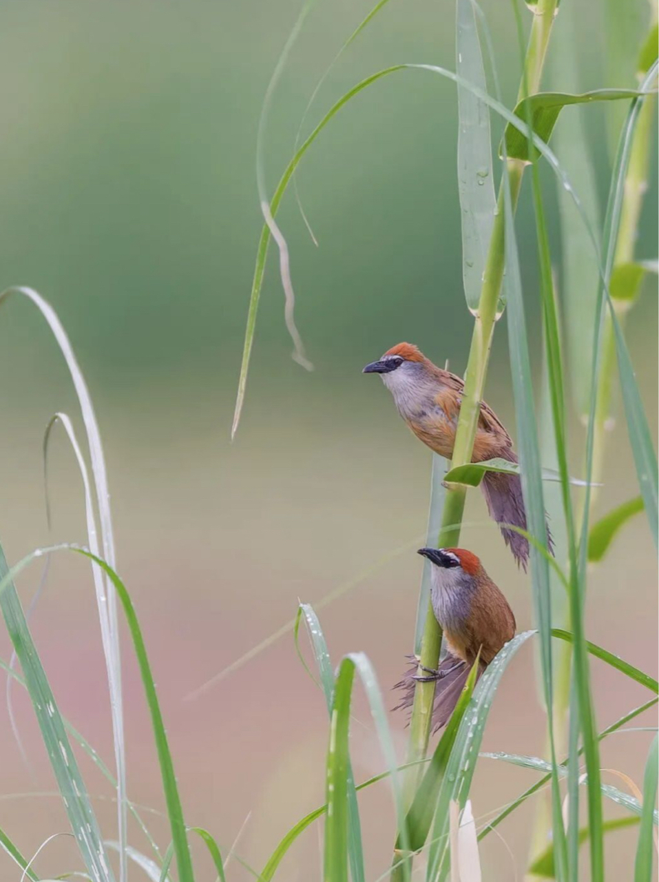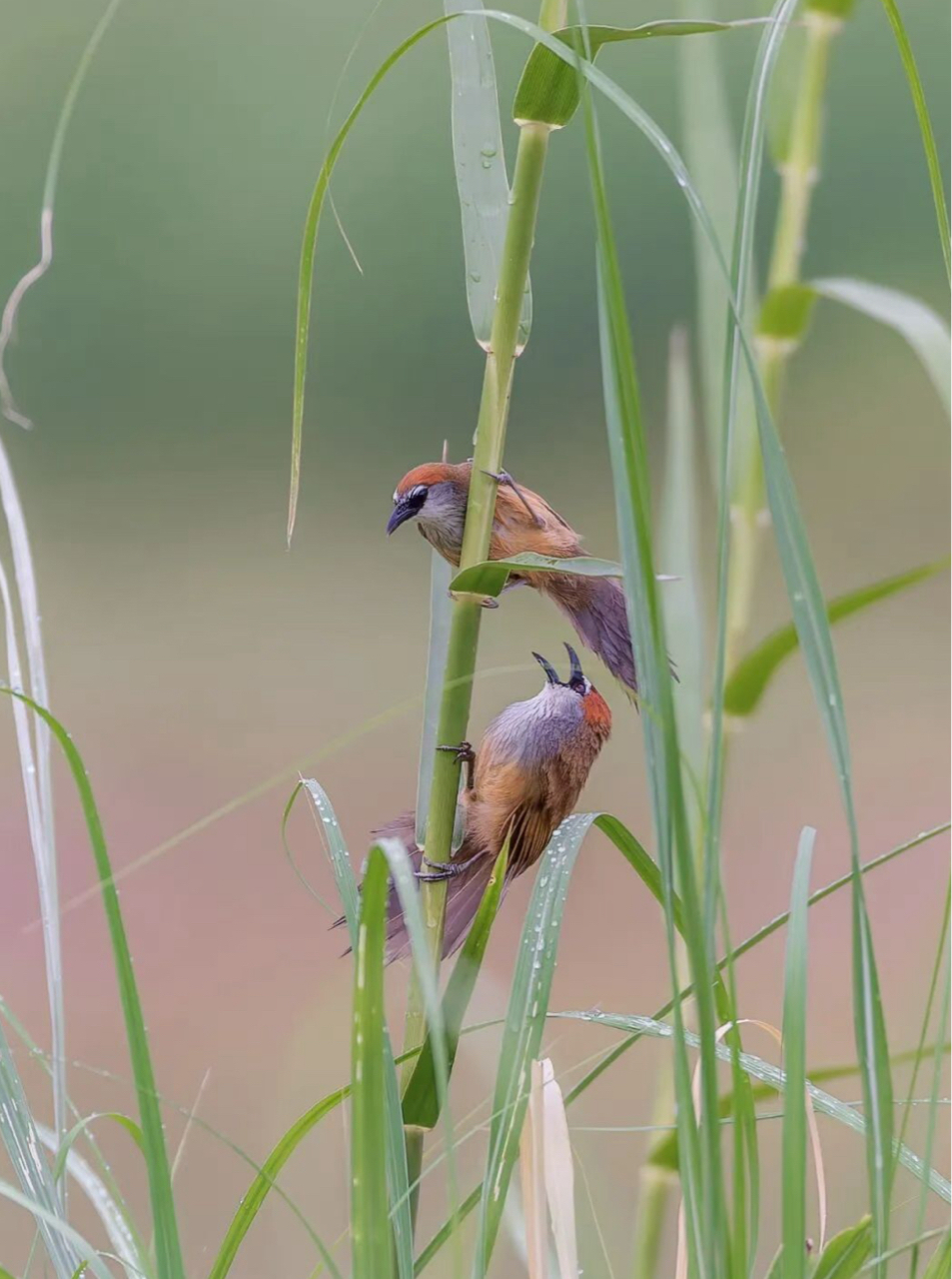 芦苇丛里蹲到红顶鹛小情侣啦!湿地观鸟的快乐,懂的都懂~