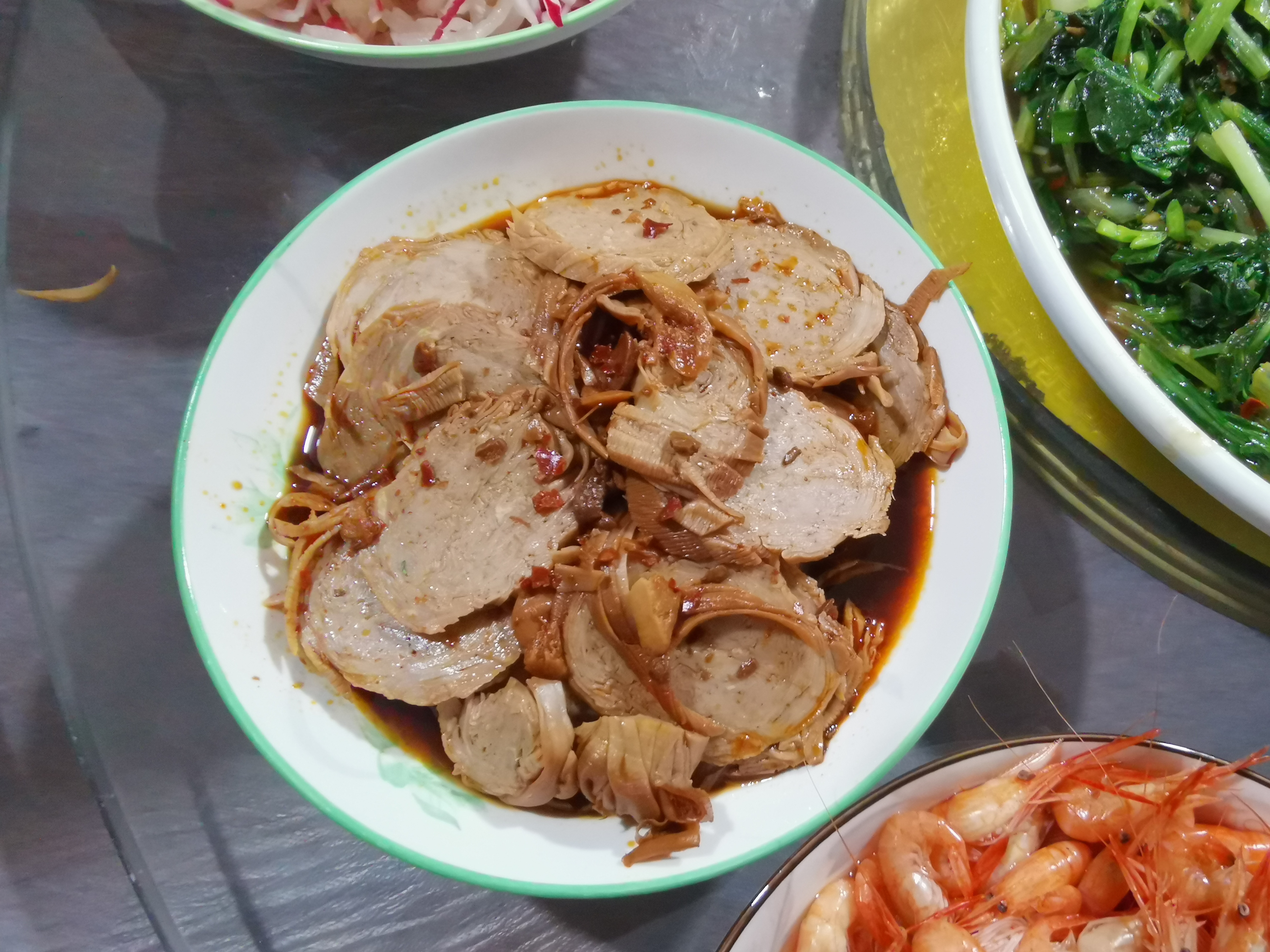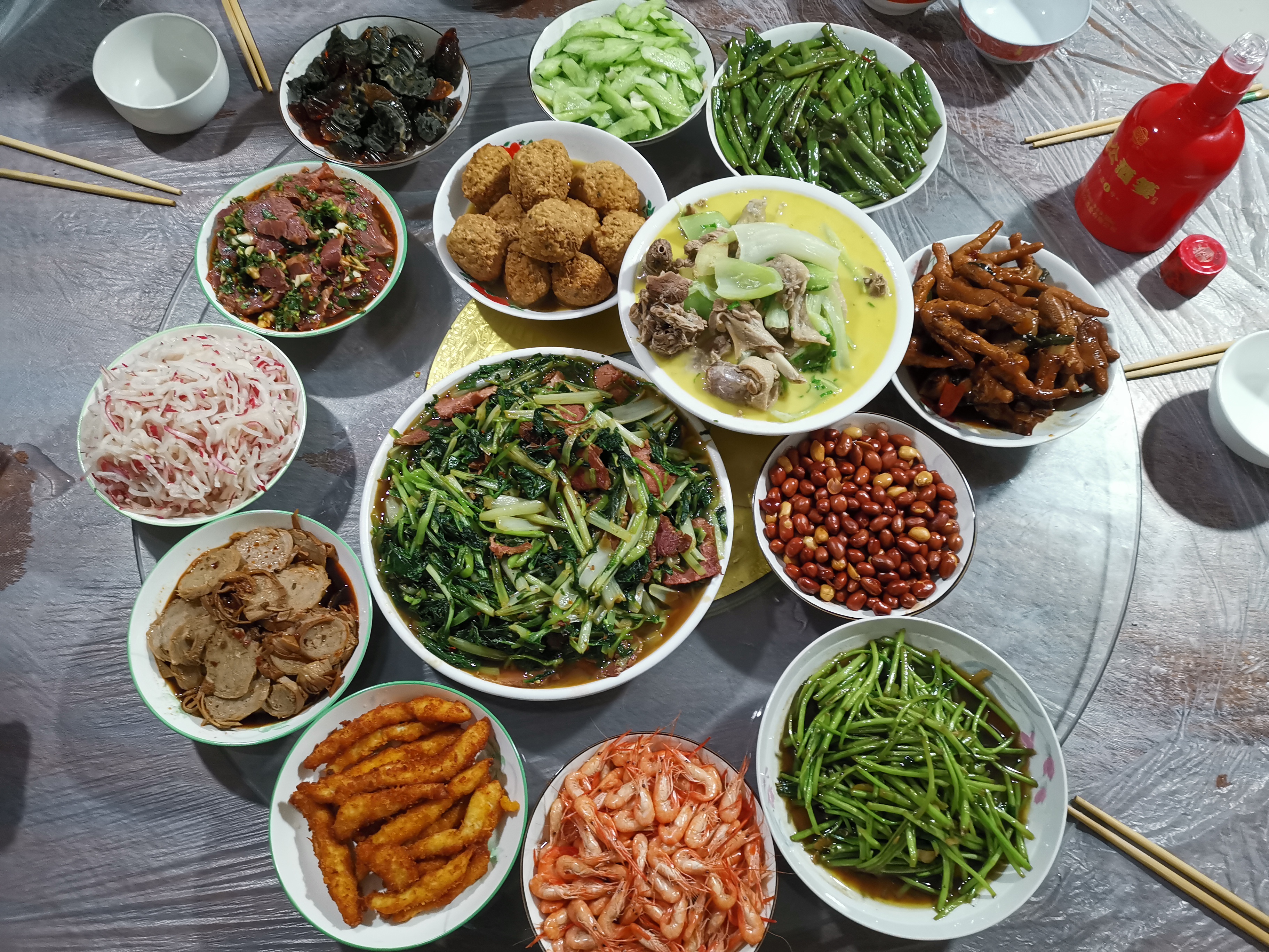 家乡的美食怎么也吃不够,那是儿吋最本真的记忆,咱姐做的一大桌美味,都是我爱吃的菜!清汤狮子头(图2)、野生河虾(图4)、青菜牛肉(图7),哪怕一盘炝萝(图15),也是那么好吃。