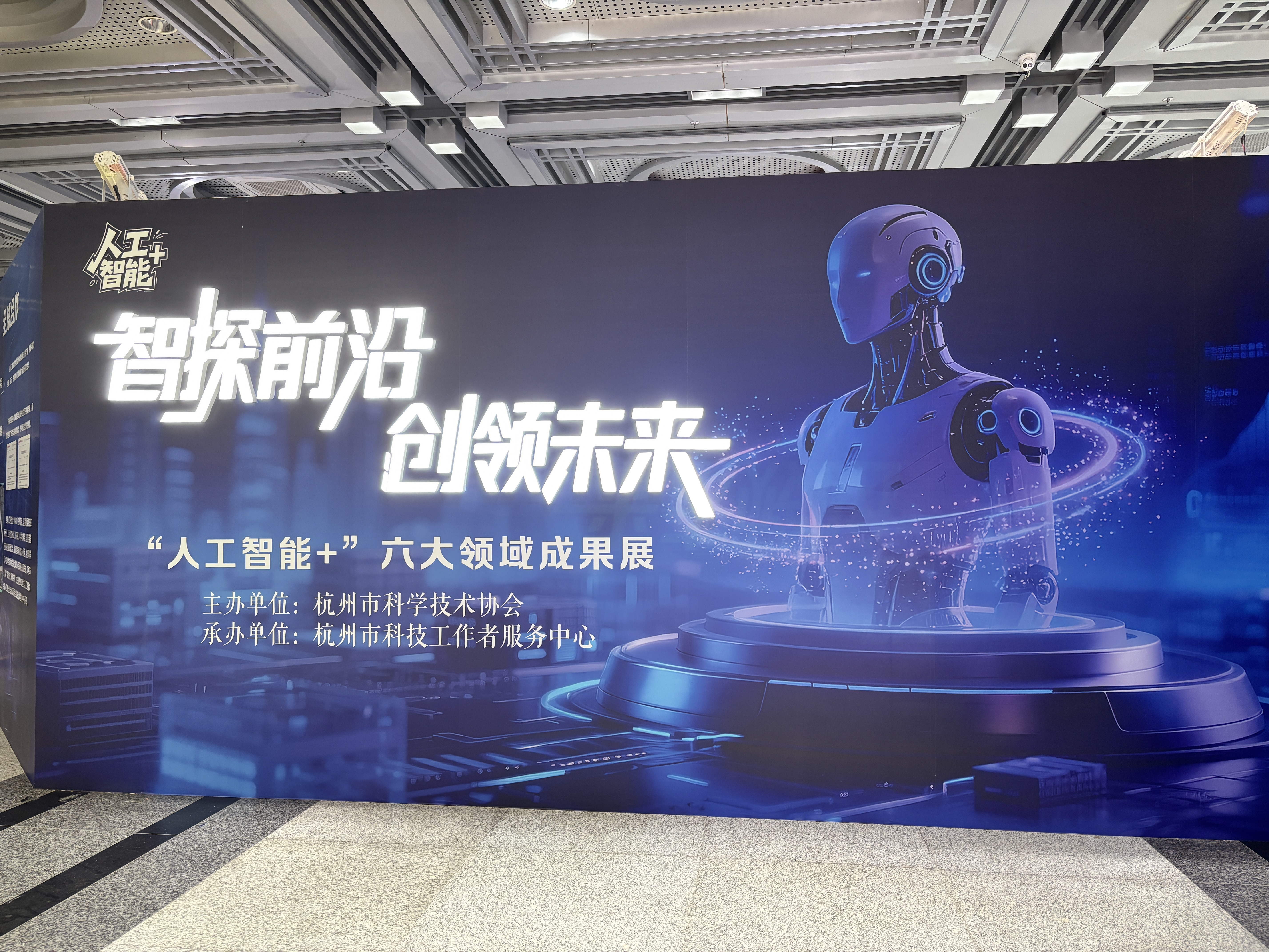 🍀杭小栗的科学之旅🍀(十八)杭州市科技交流馆。始建于新中国成立初期,曾是杭州市工农业生产建设展览馆,也是杭州国庆庆典的的检阅台。建筑为九门十柱传统样式,屋檐下有“枪杆”“麦穗”图案的浮雕,留存着那个时代的记忆。近期,“‘人工智能+’六大领域成果展”在此开展。