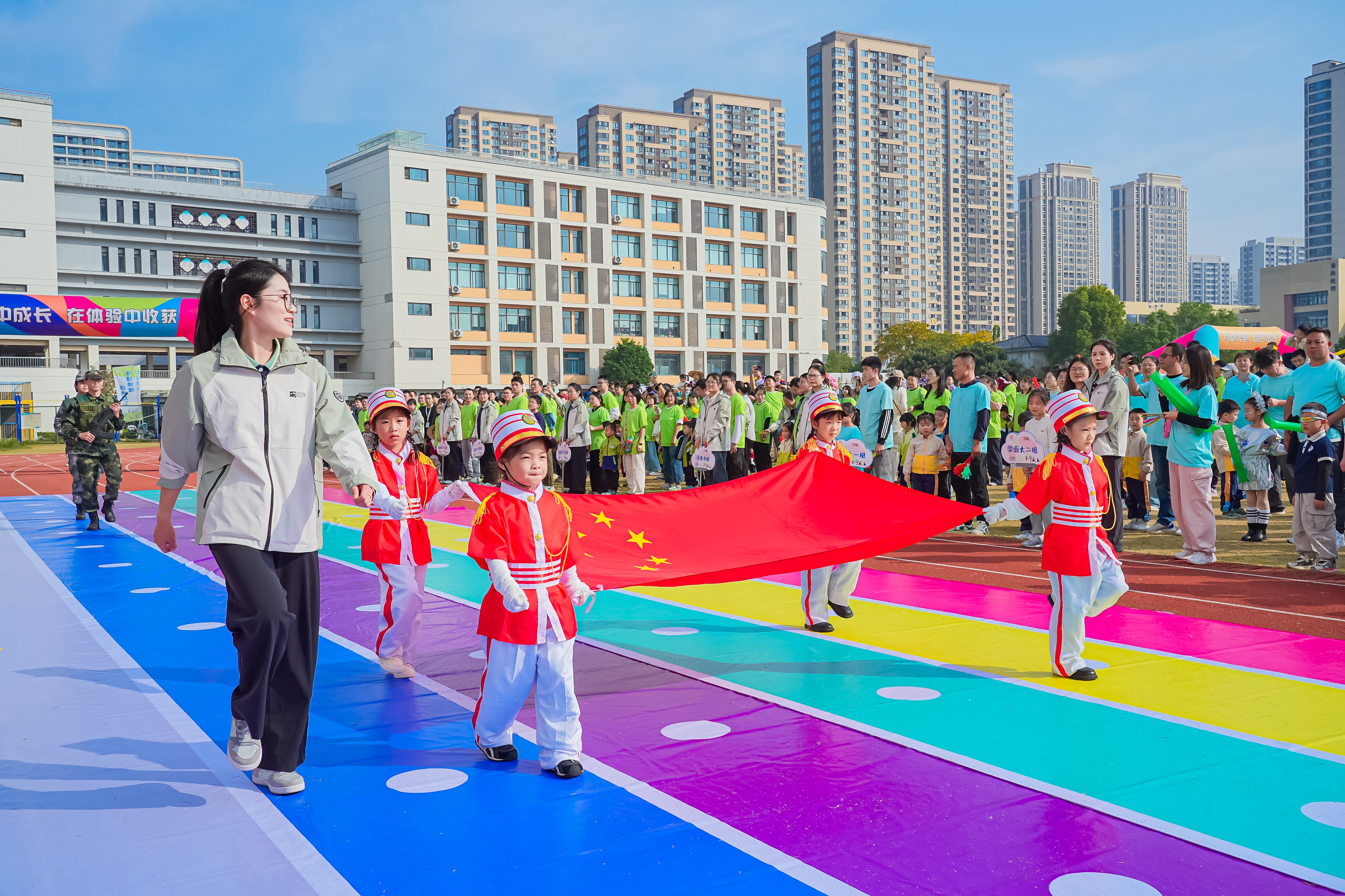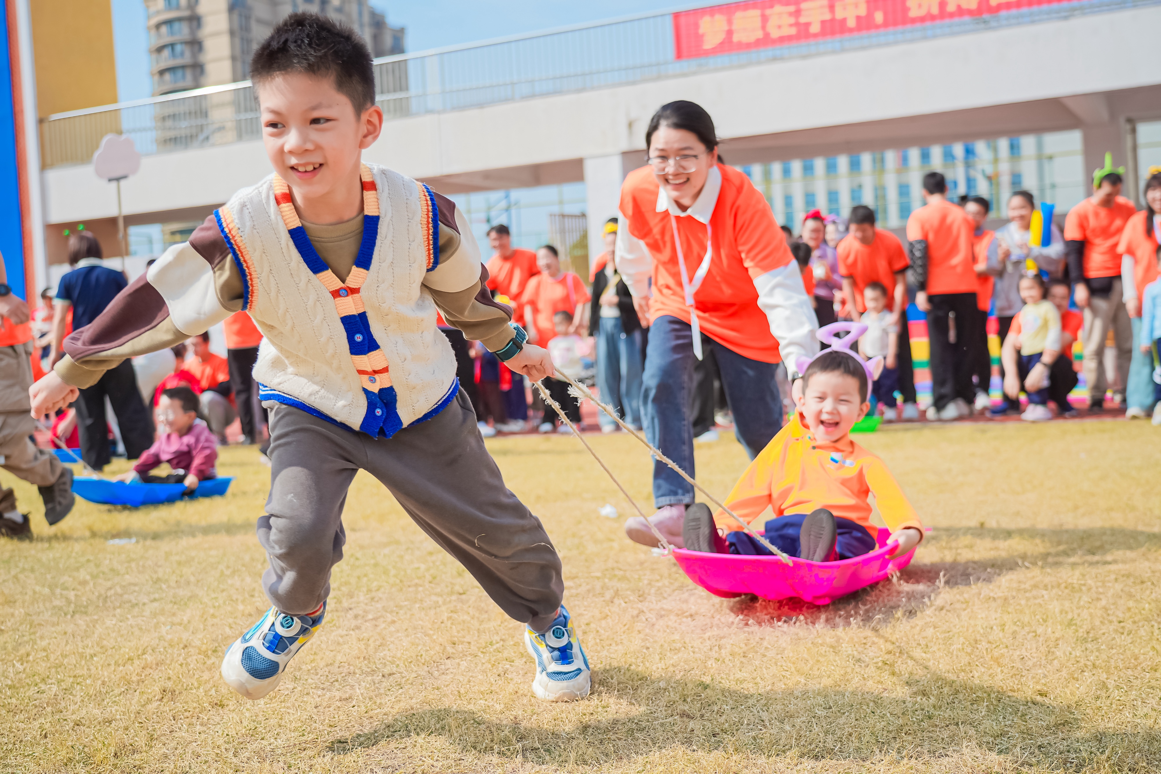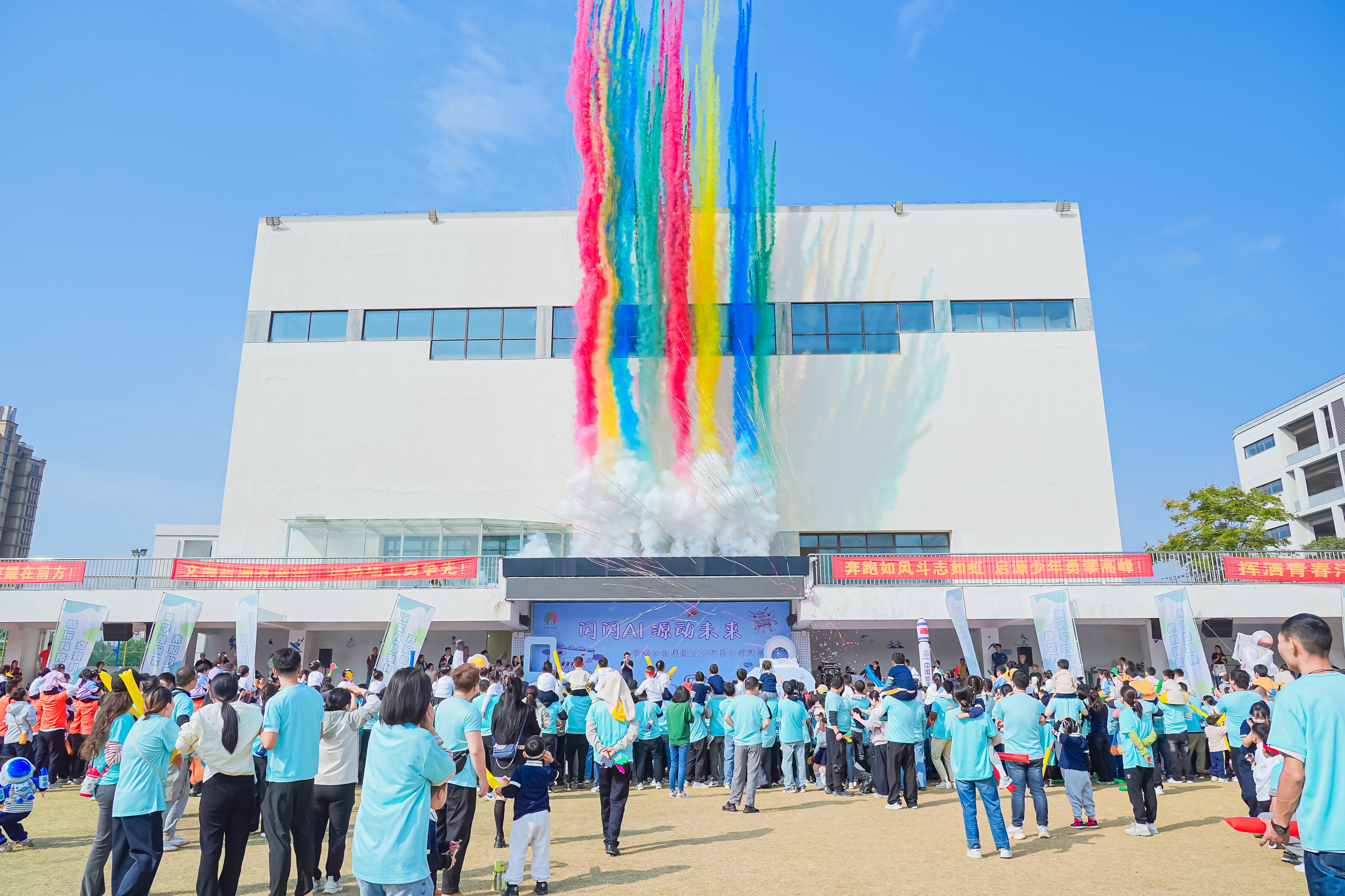 闪闪AI,源动未来——杭州市清雅苑幼儿园举办亲子运动会活动,操场上家长与孩子运动操活力开跳,互动游戏默契拉满!大手牵小手跟着动感节奏跳跃欢呼,笑声与汗水碰撞出幸福火花。这场亲子运动会不仅解锁运动的快乐,更加定格亲子间的暖心瞬间,让爱与活力并肩向前~
