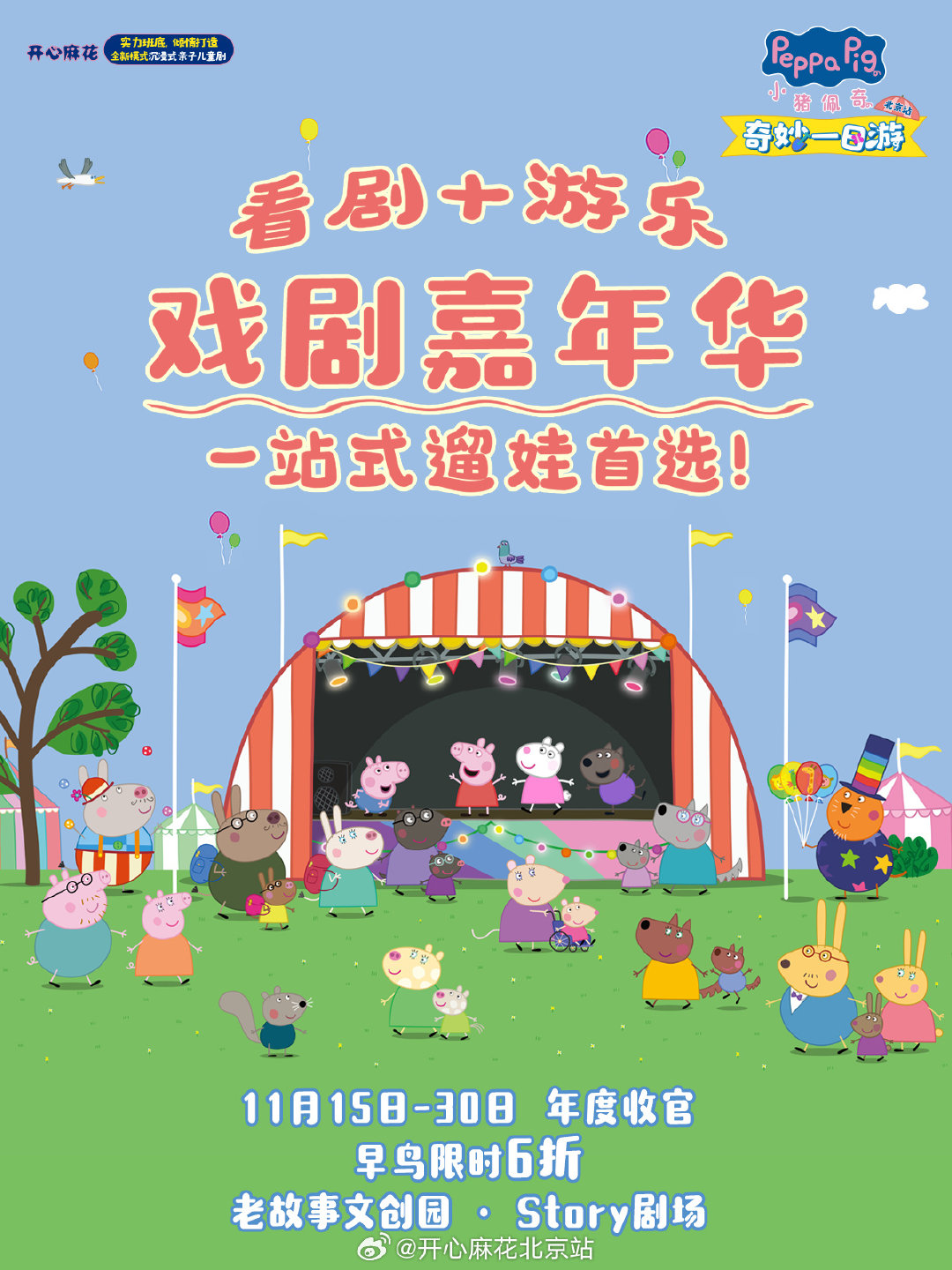 9.8高分热门儿童剧《小猪佩奇之奇妙一日游》焕新登场!英国原版IP引进之中文版,100%动画变真实360°沉浸“戏剧嘉年华”,这里那里和任何地方都是舞台看剧+游乐,一站式“躺平”遛娃首选!
