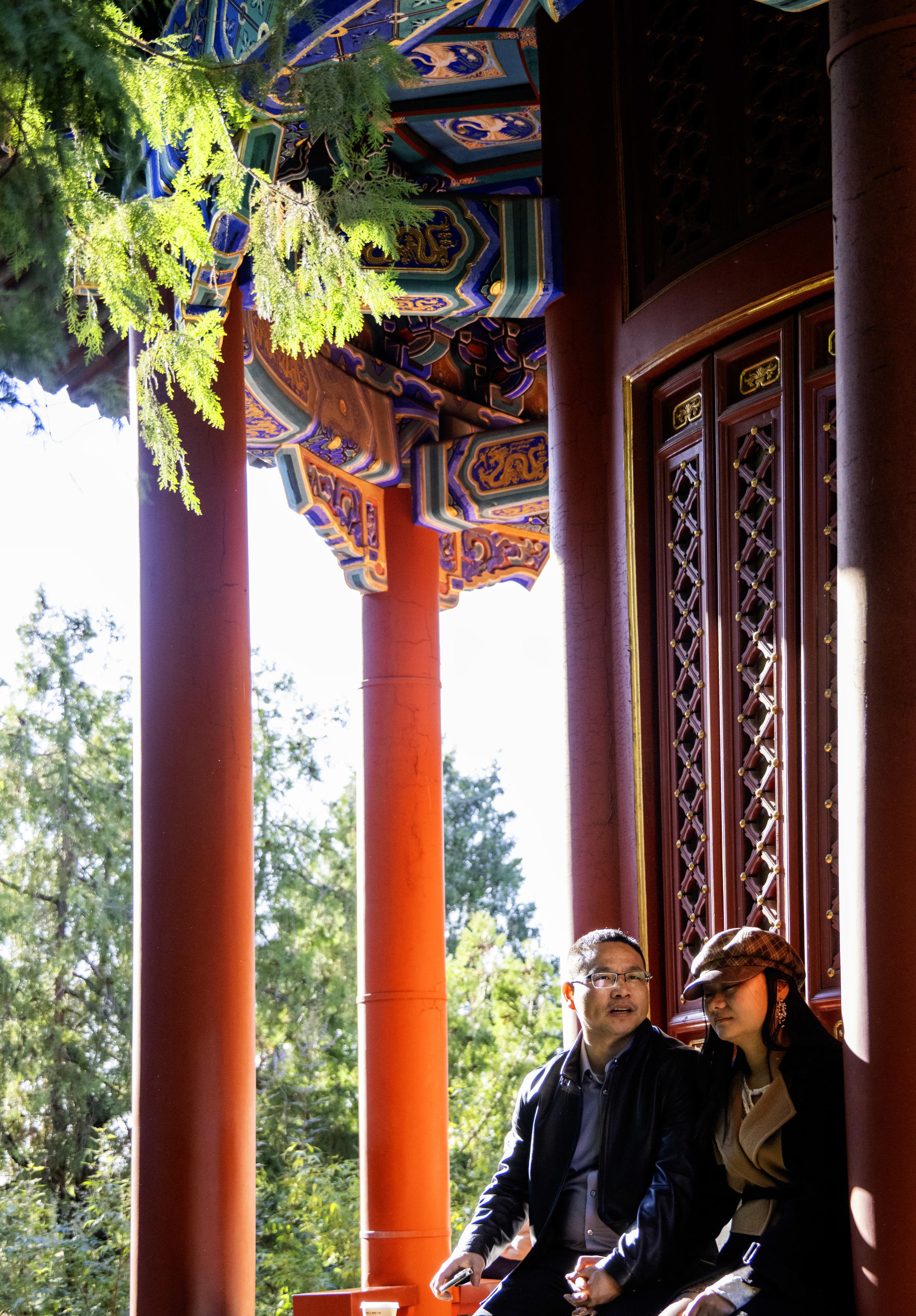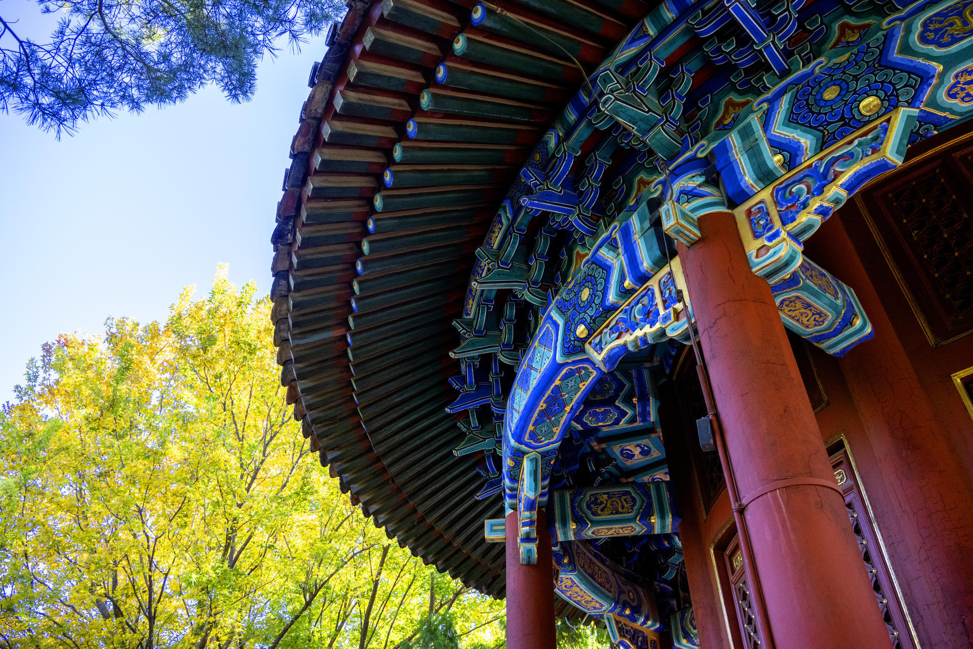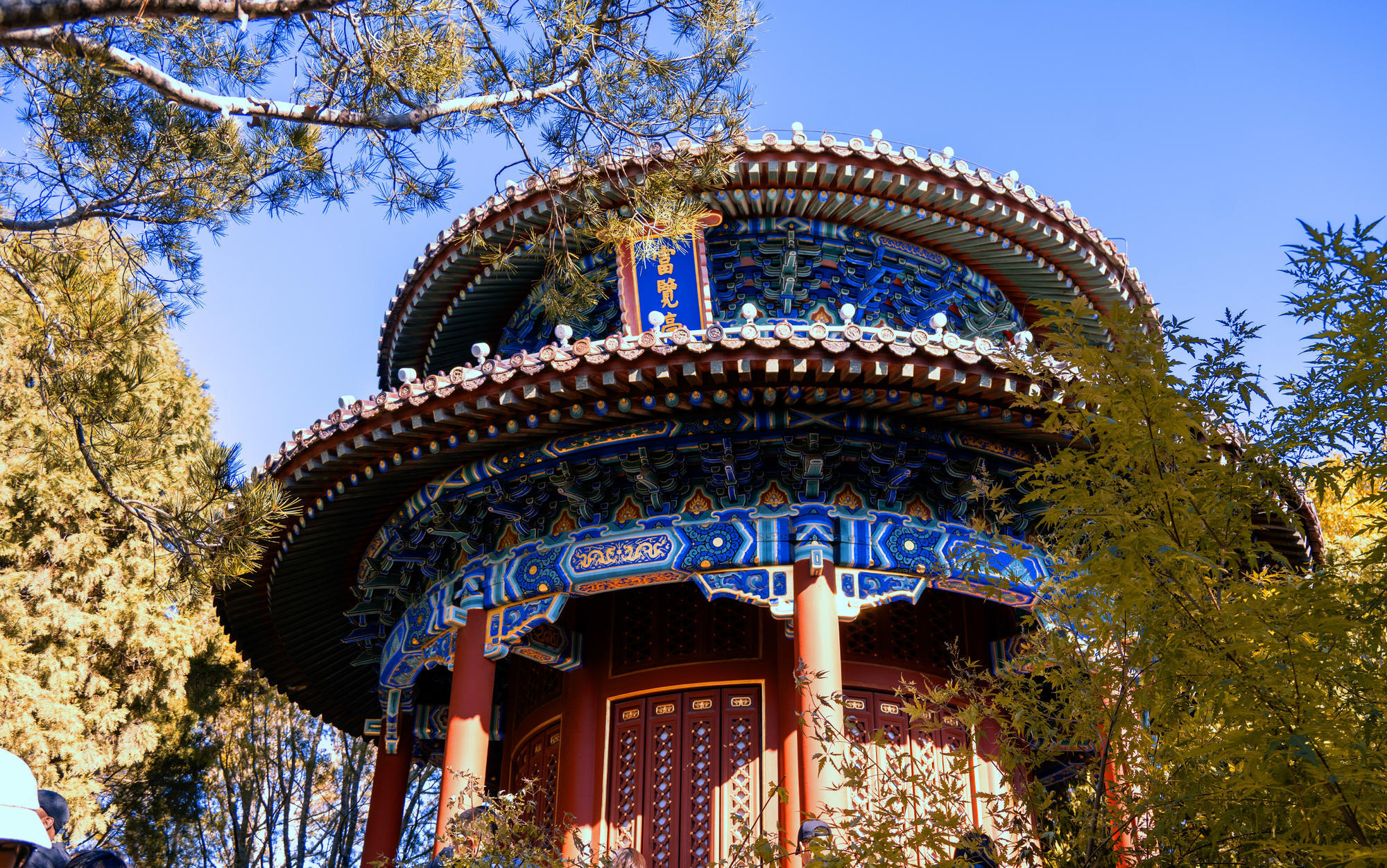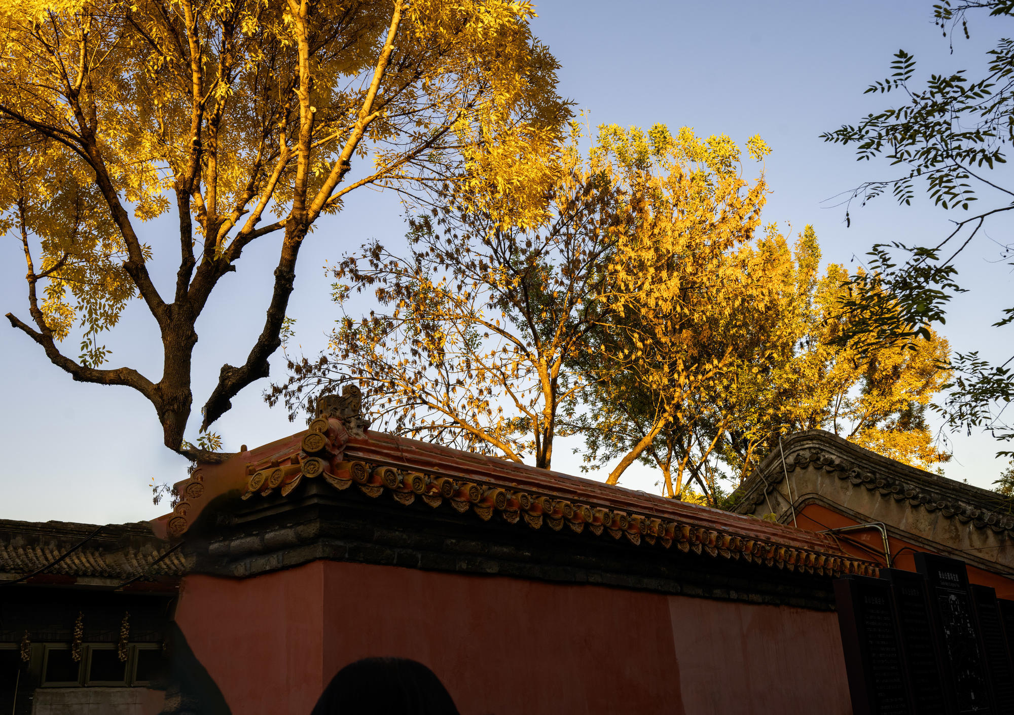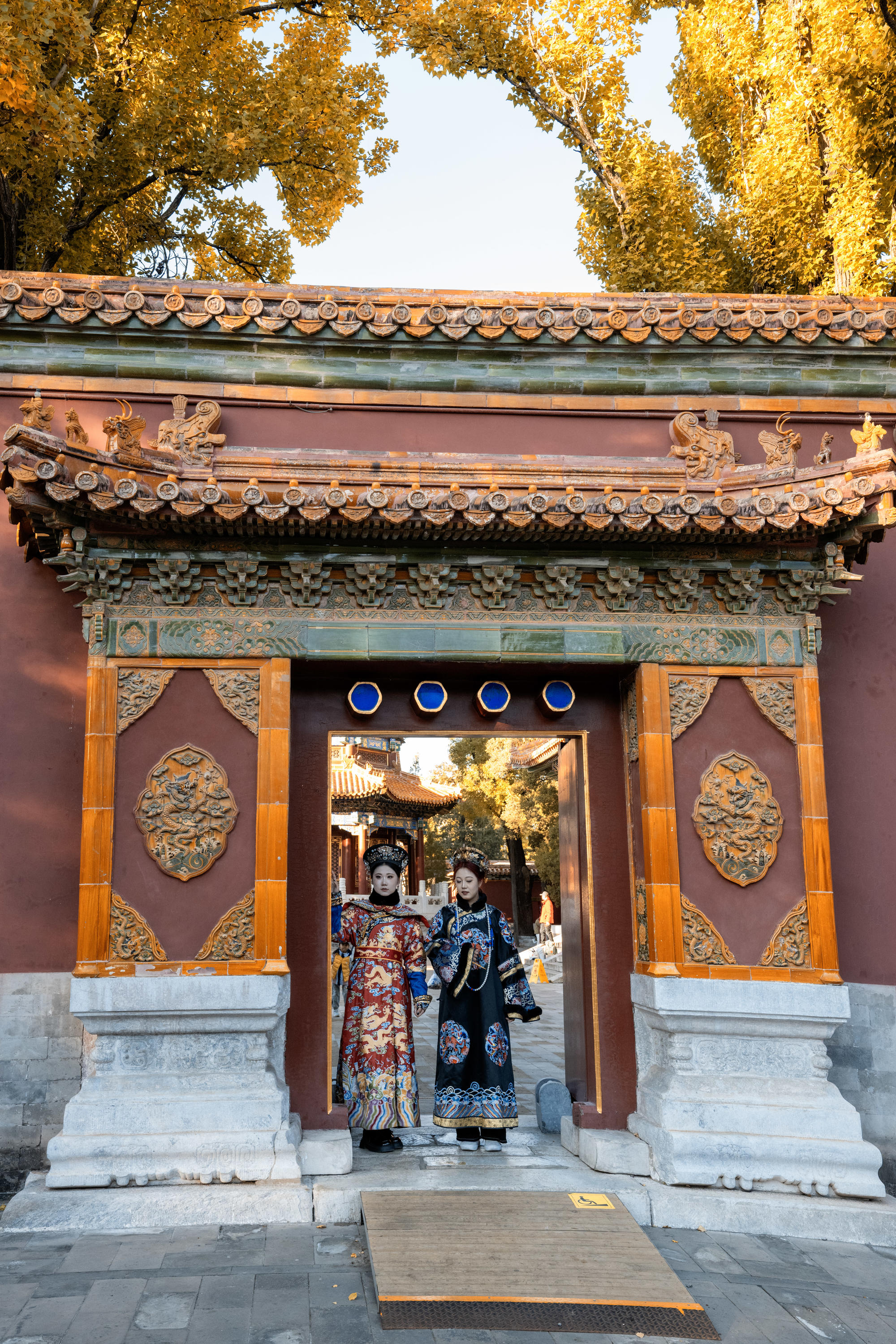 景山公园坐落于北京中轴线的中心位置,南与故宫神武门隔街相望,西接北海公园,占地二十三万平方米,山体海拔九十四点二米,曾为北京城中轴线上最高之巅。秋天的景山公园一片金黄,赏心悦目。园内殿宇错落,寿皇殿、观德殿、护国忠义庙、绮望楼等历史遗迹静立其间,诉说着岁月的厚重与沧桑。