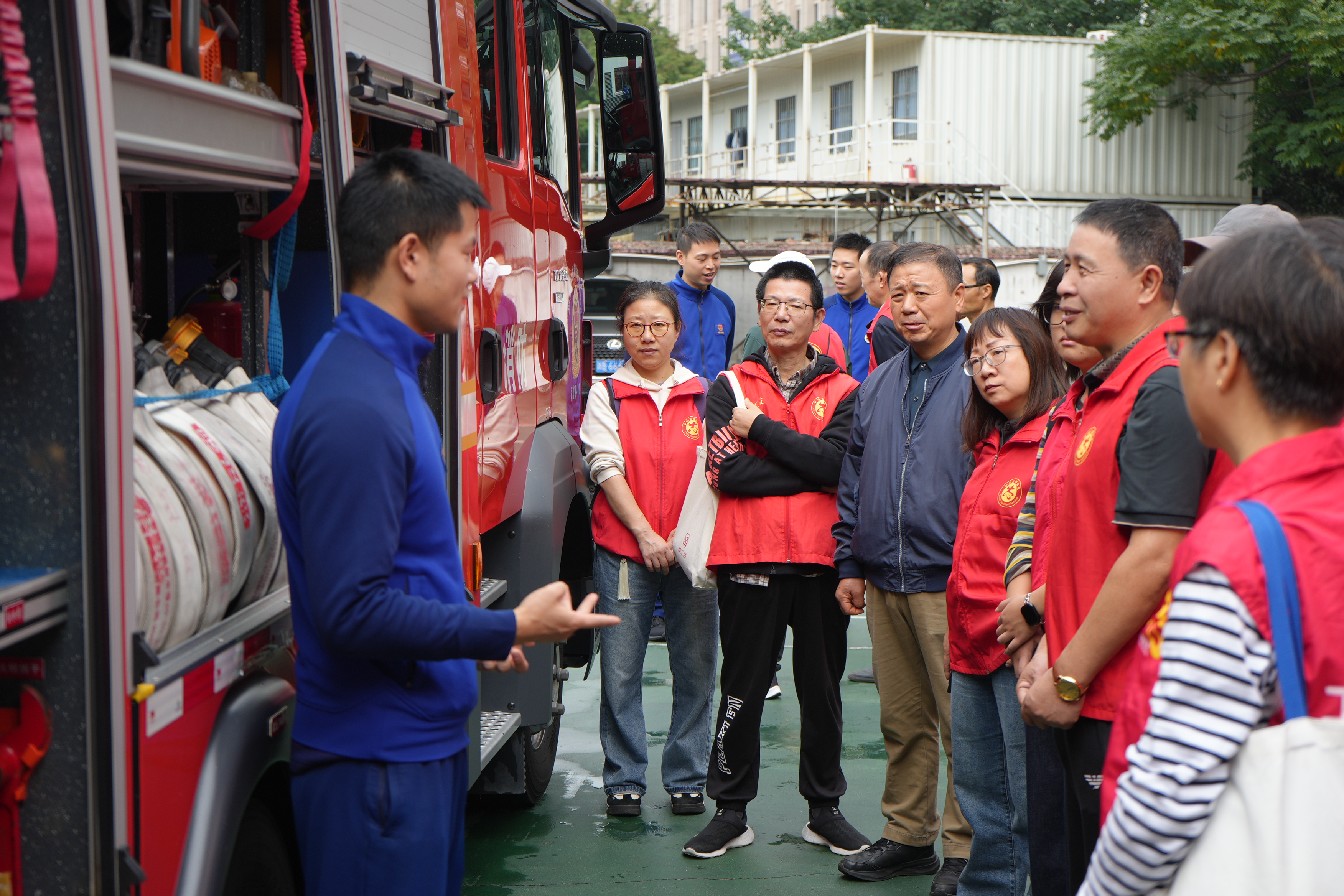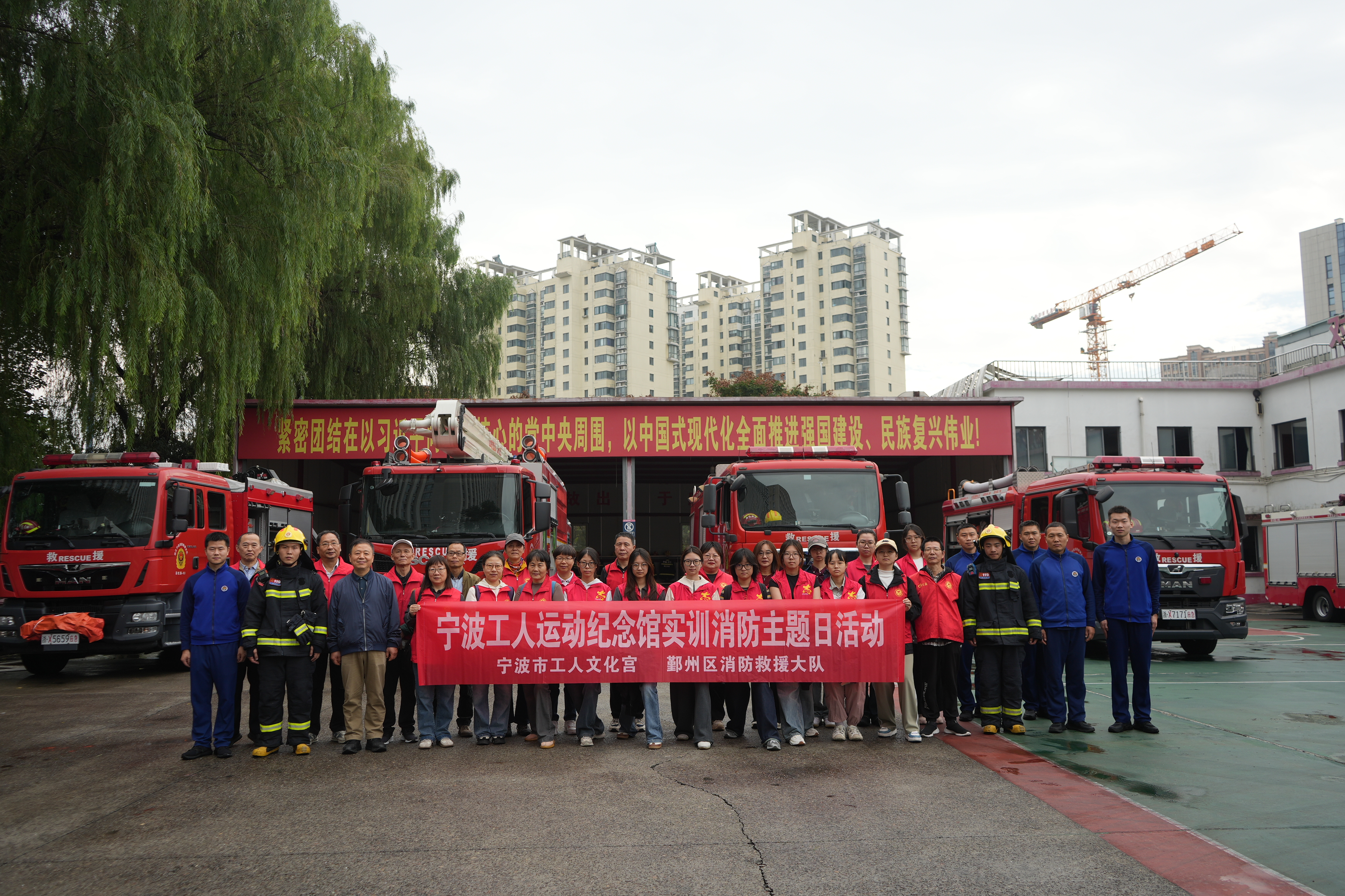 消防安全,我们的共同责任 ——志愿者走进彩虹消防站开展实训消防主题日活动 2025年11月9日是第34个全国消防日。为切实提高职工消防安全意识与应急自救能力,宁波工人运动纪念馆联合鄞州区消防大队,于今天上午共同组织开展了“消防安全,我们的共同责任”实训消防主题日活动。 上午九点,由宁波工人运动纪念馆干部职工及志愿者代表组成的27人队伍,自纪念馆旧址统一出发,步行约三十五分钟后,抵达位于鄞州区的彩虹路消防站。 活动伊始,彩虹路消防救援站队长向大家系统介绍了消防站的基本职责与日常工作流程。作为担负百丈、白鹤、东郊三个辖区街道消防与应急救援任务的重要力量,彩虹路消防救援站的队员们始终秉持“赴汤蹈火,竭诚为民”的职业精神,默默守护着一方平安,其无私奉献的高尚品格深深感动了在场的每一位参观者。本次学习内容紧密结合实际需要,重点围绕“应对火警突发事件处置预案”“消防知识及器材使用培训”“模拟紧急疏散演练”以及“消防安全隐患排查”等方面展开。通过系统讲解与实操结合的方式,让消防安全教育真正走近职工身边、走进职工心里。 在消防队员的引导与讲解下,大家有序参观了各类消防救援设施与装备,认真学习了相关消防安全知识,现场气氛积极热烈,参与人员纷纷表示收获颇丰。 活动最后,全体参观人员与消防队员愉快合影,为这次富有意义的消防安全教育之旅画上圆满句号。大家一致认为,消防安全是全社会共同的责任,今后将把所学知识运用到工作与生活中,积极营造更加安全的环境。(摄影:戈永平、沈国旭)