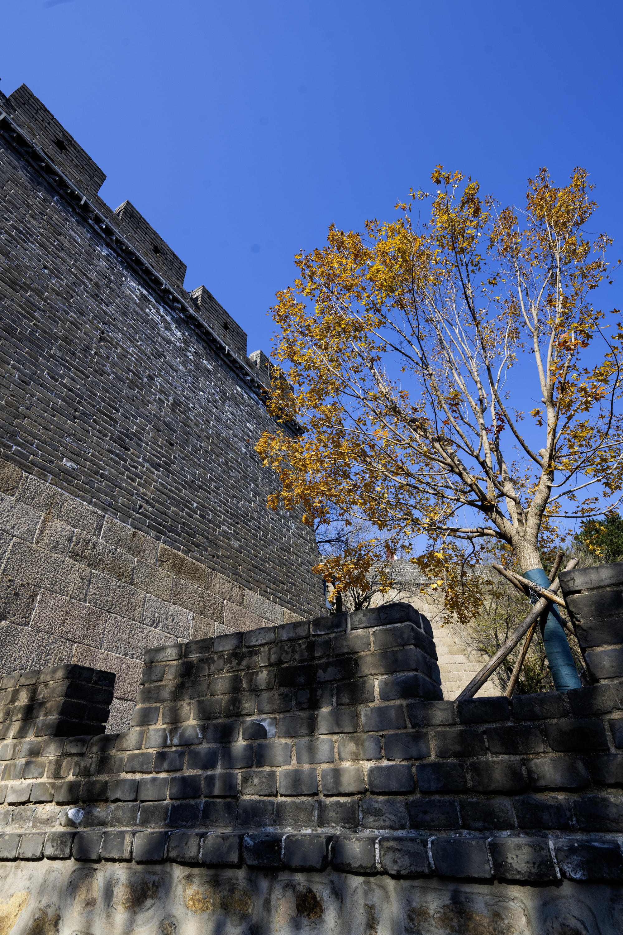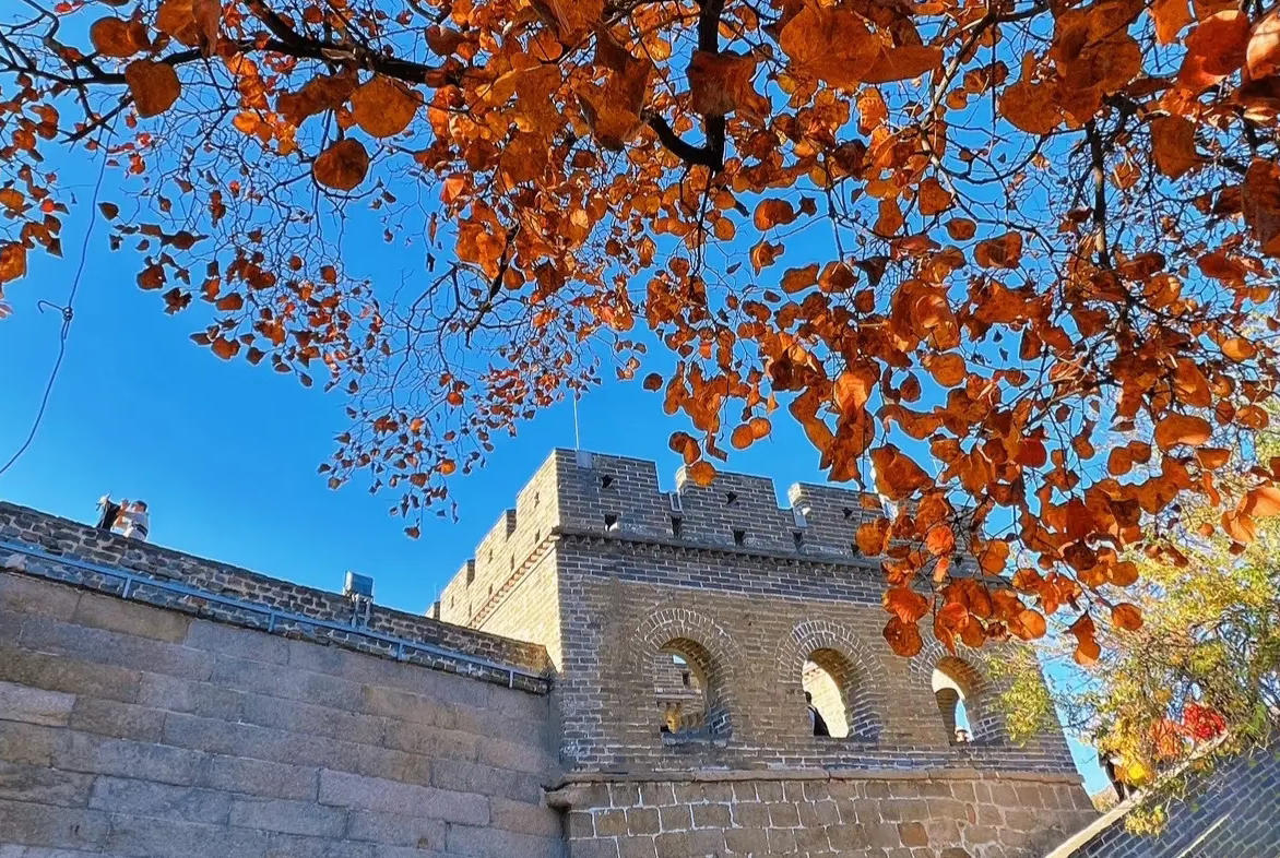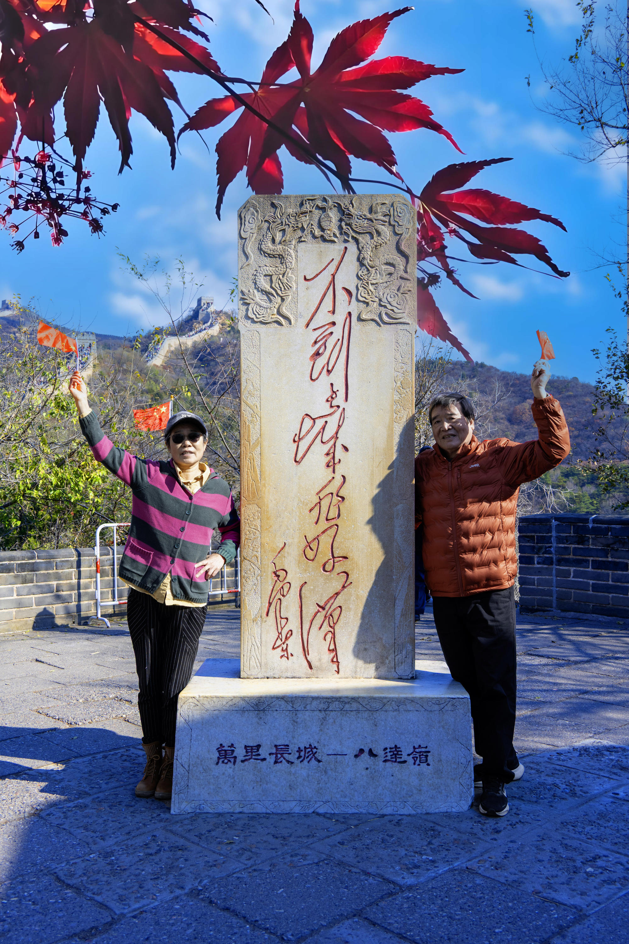 曾两度登临长城,却始终未能在毛主席题词“不到长城非好汉”的石碑前留下身影。那石碑虽有数处,唯有一块背倚巍巍长城,气势非凡,引得游人排成长龙争相留影。赴京之前,精心查访,锁定其确切位置,一下车便直奔而去,终得如愿以偿,圆了一段心之所系的长城情结。八达岭秋意渐浓,红枫尚在含蓄,偶有几棵正在撑着场面。想来再待半月,层林尽染之时,定是漫山如火,壮美如画。