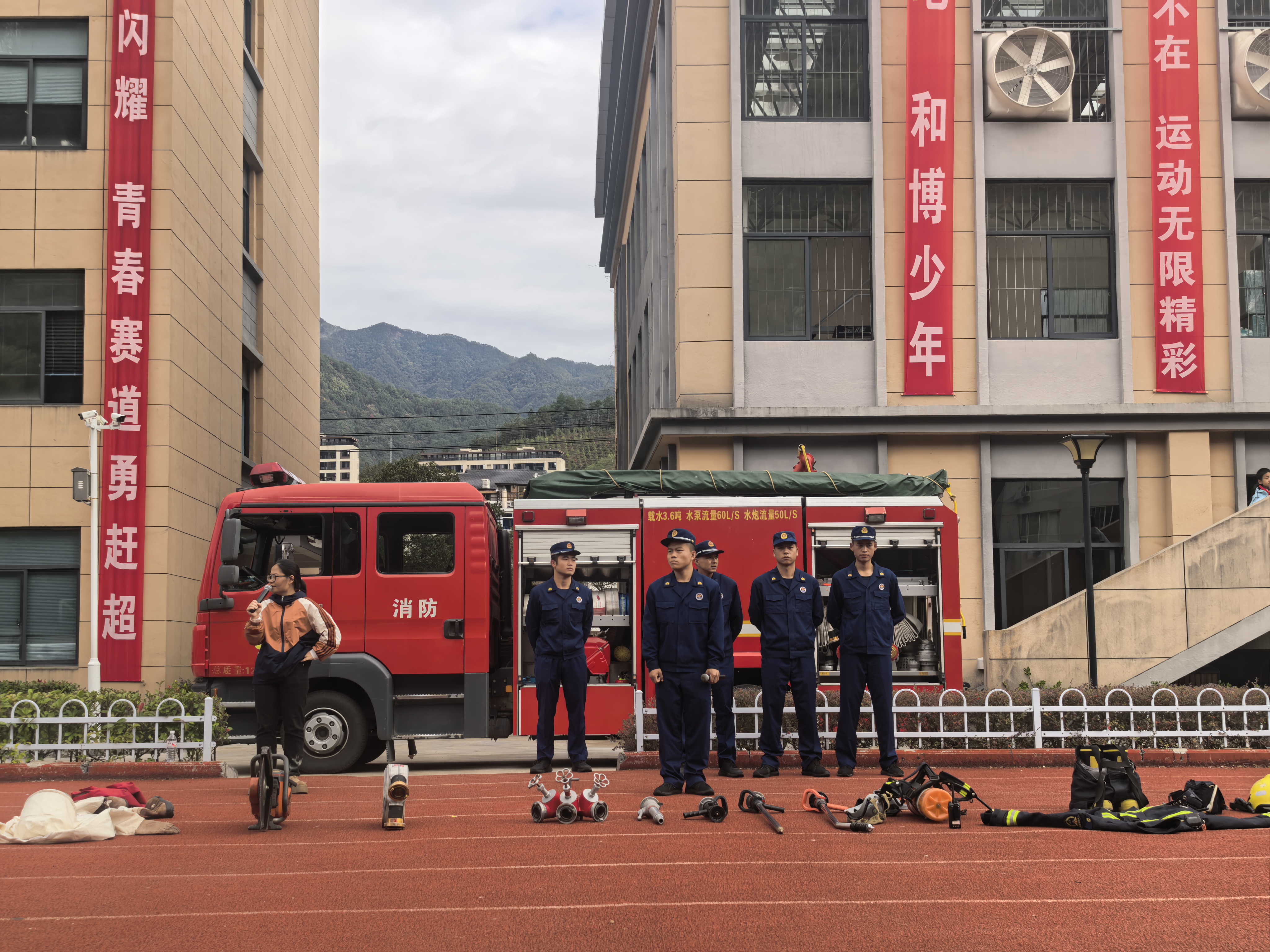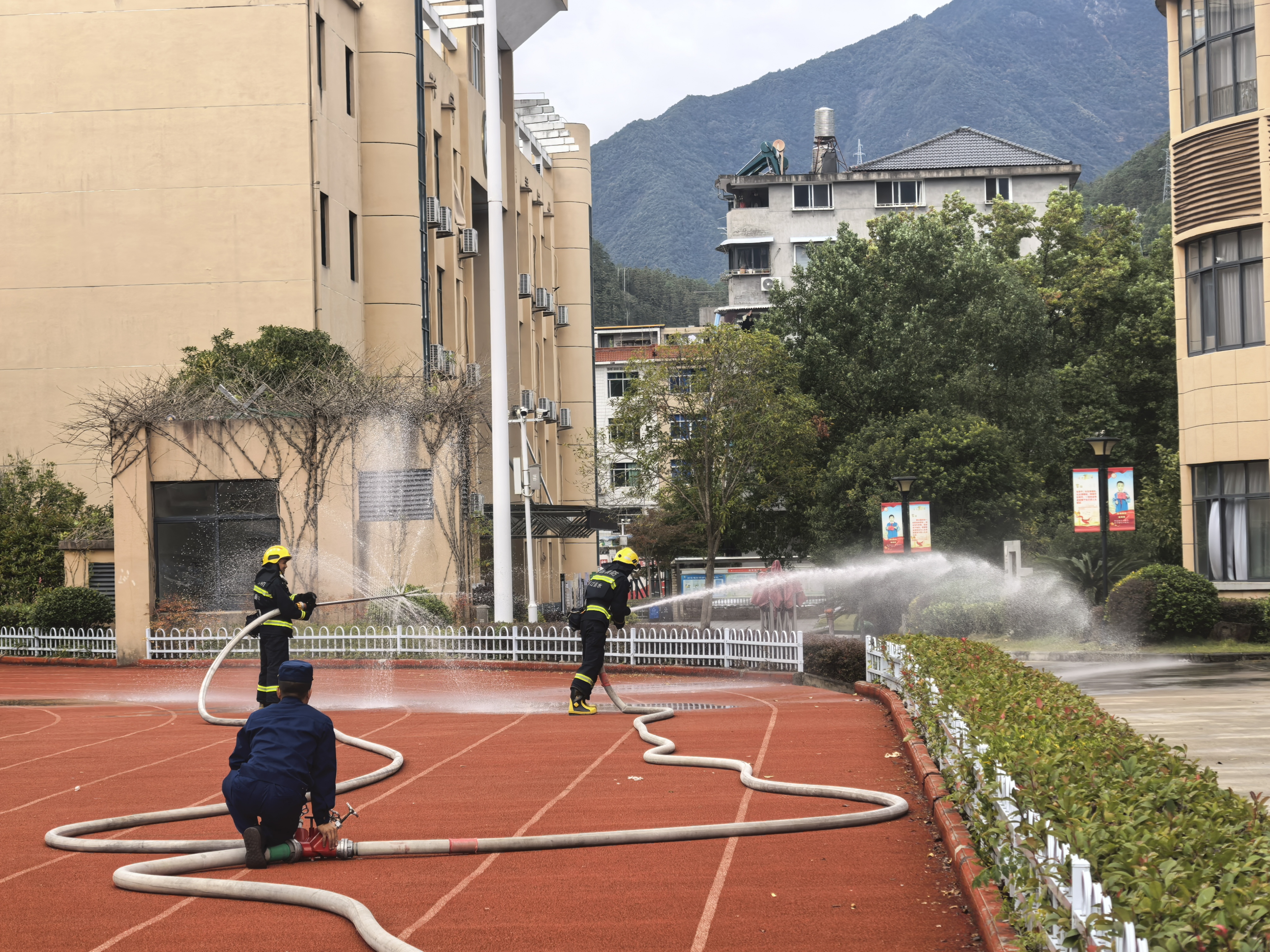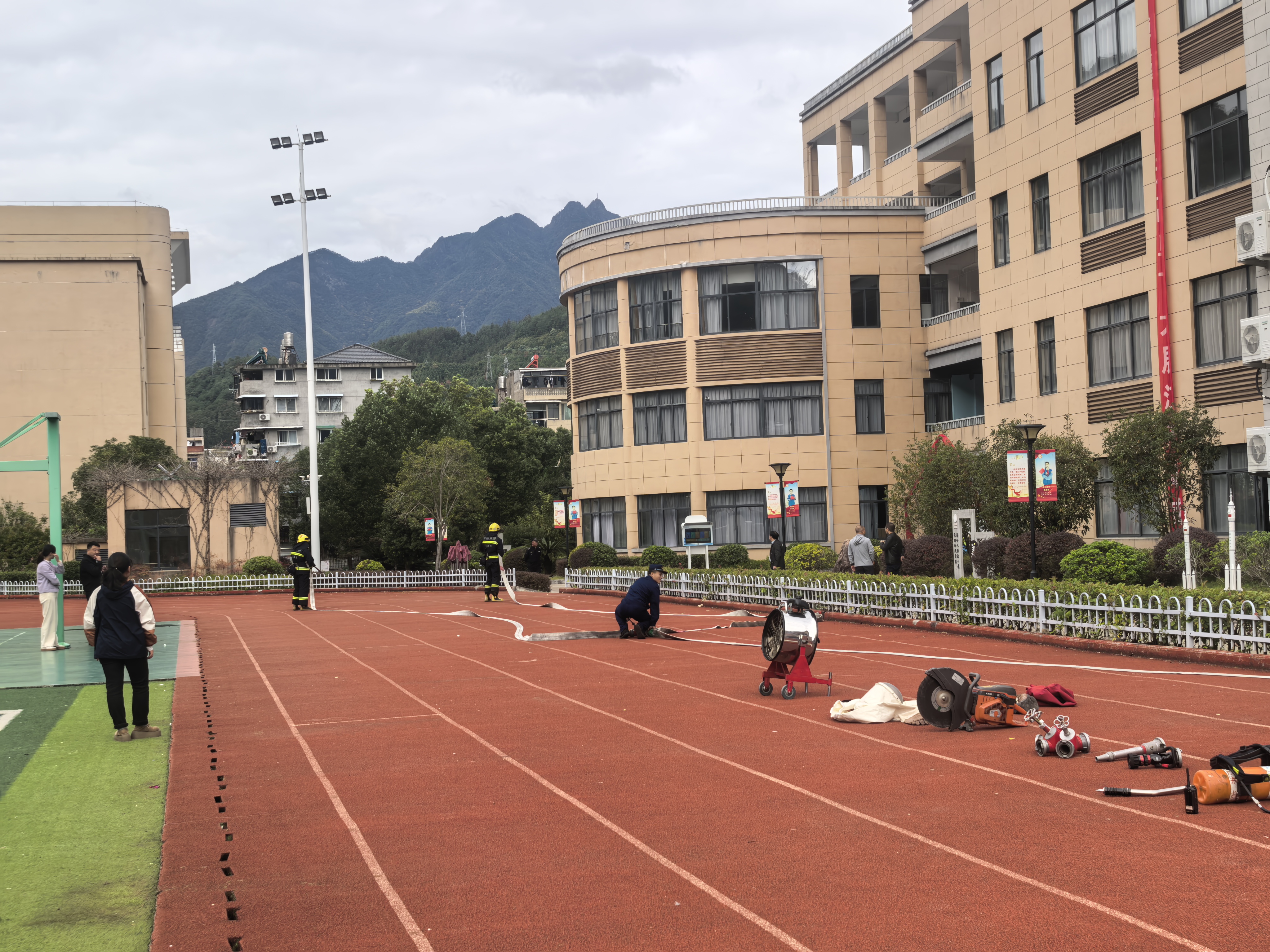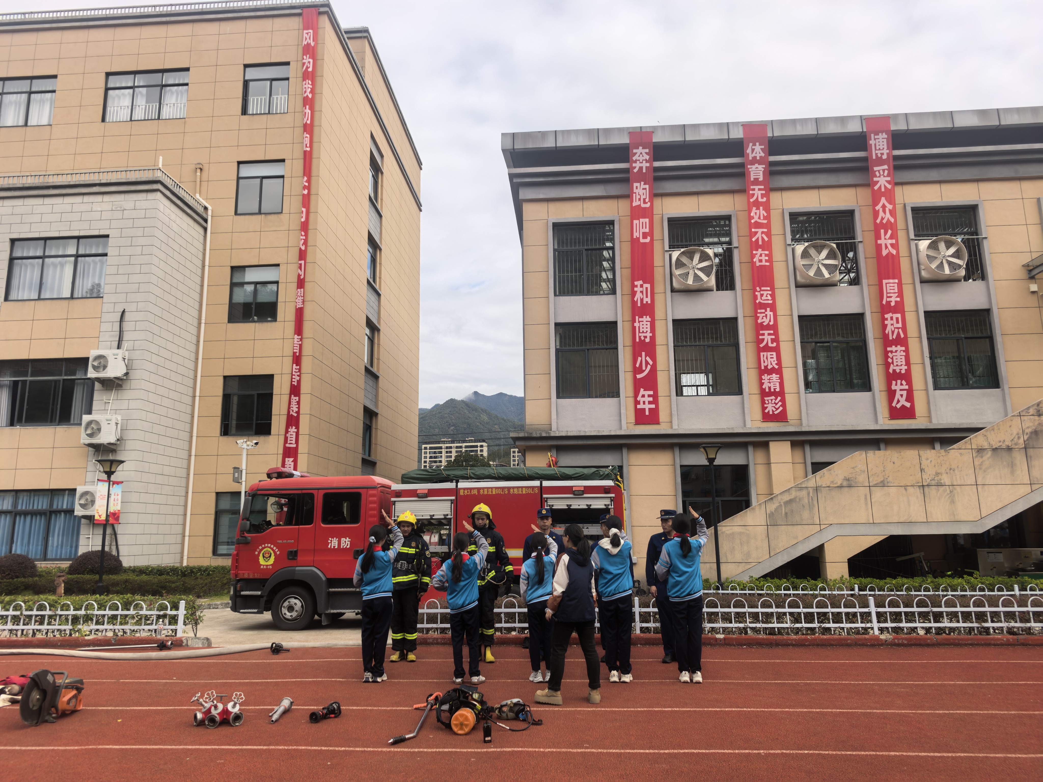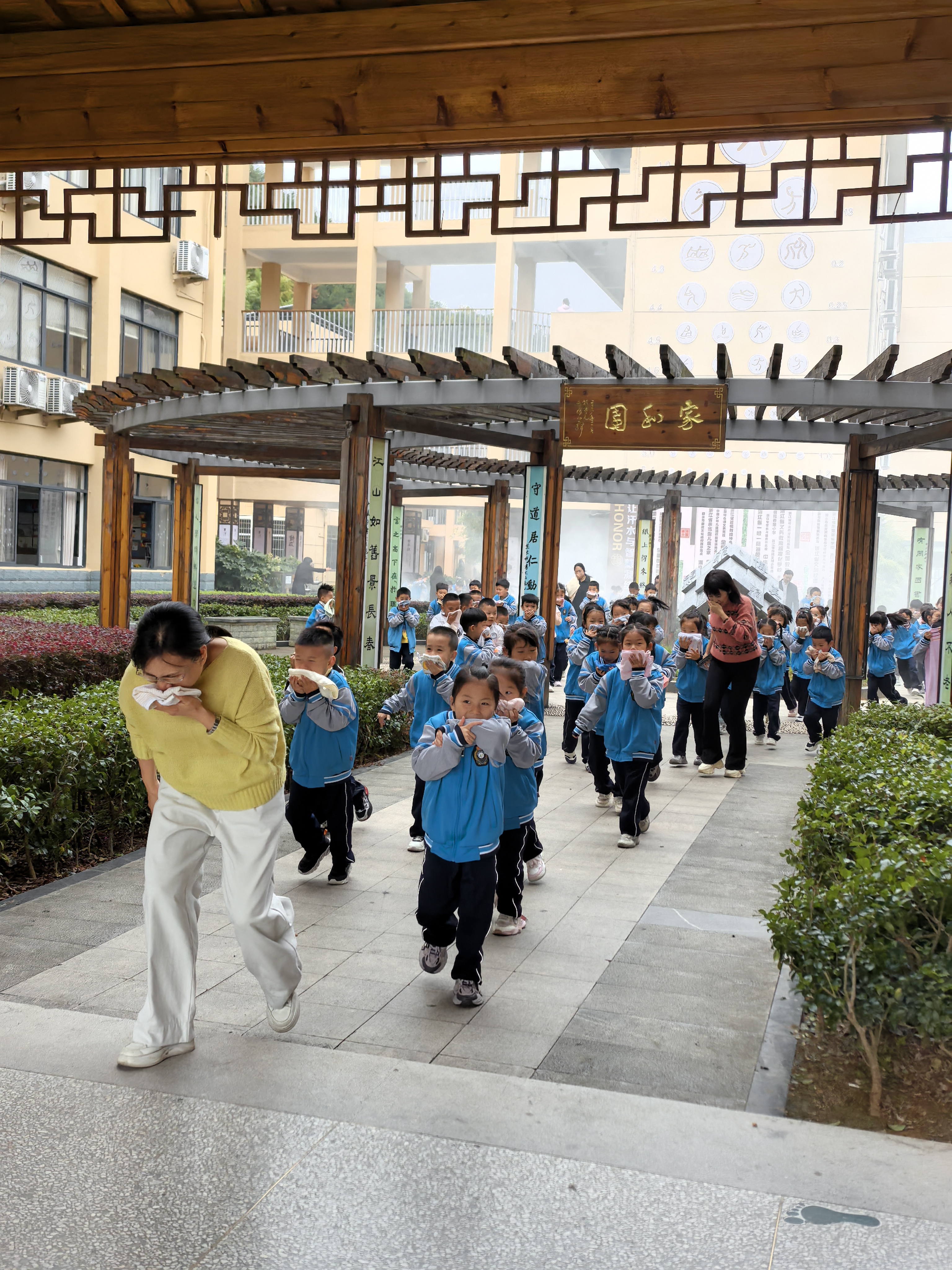校园消防疏散演练启幕!消防队员现场护航,实操演练筑牢安全防线。