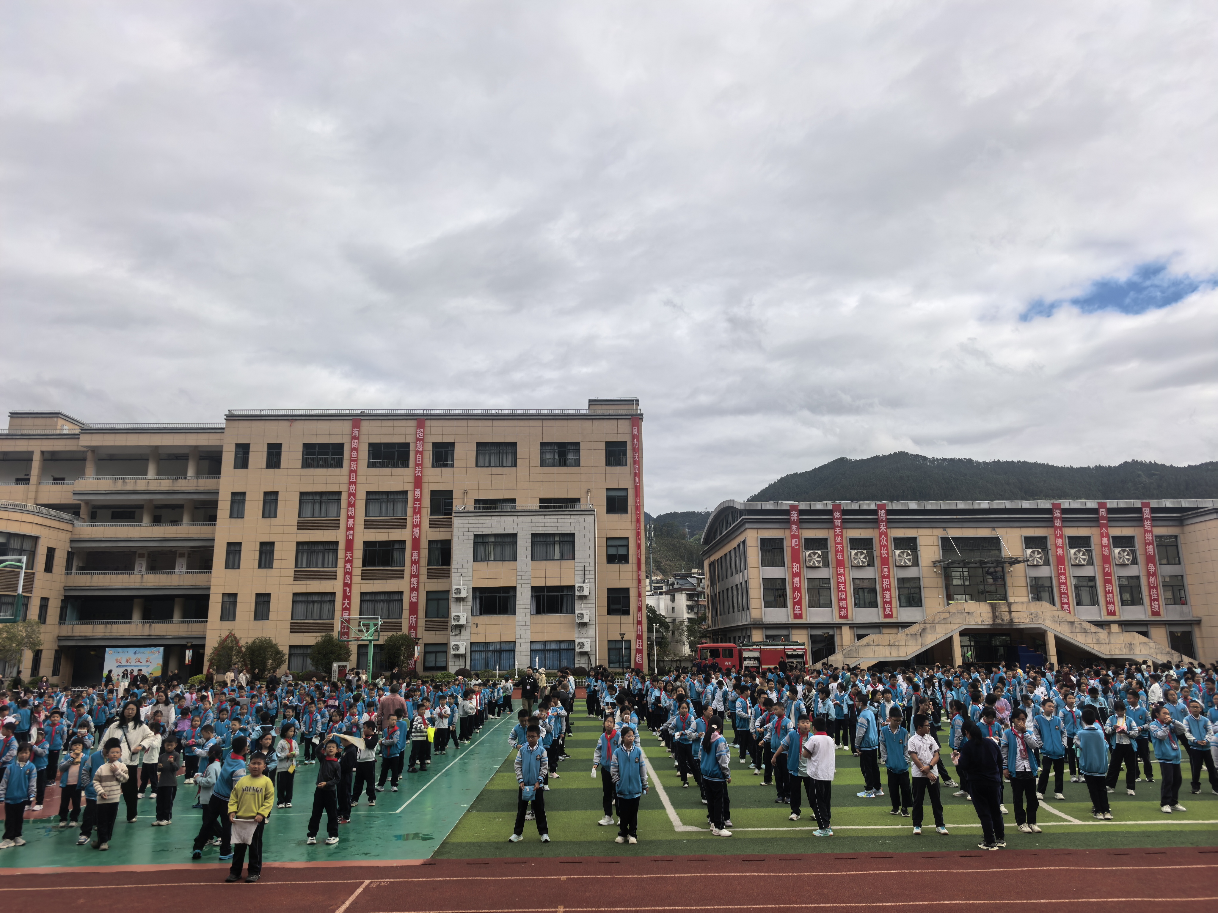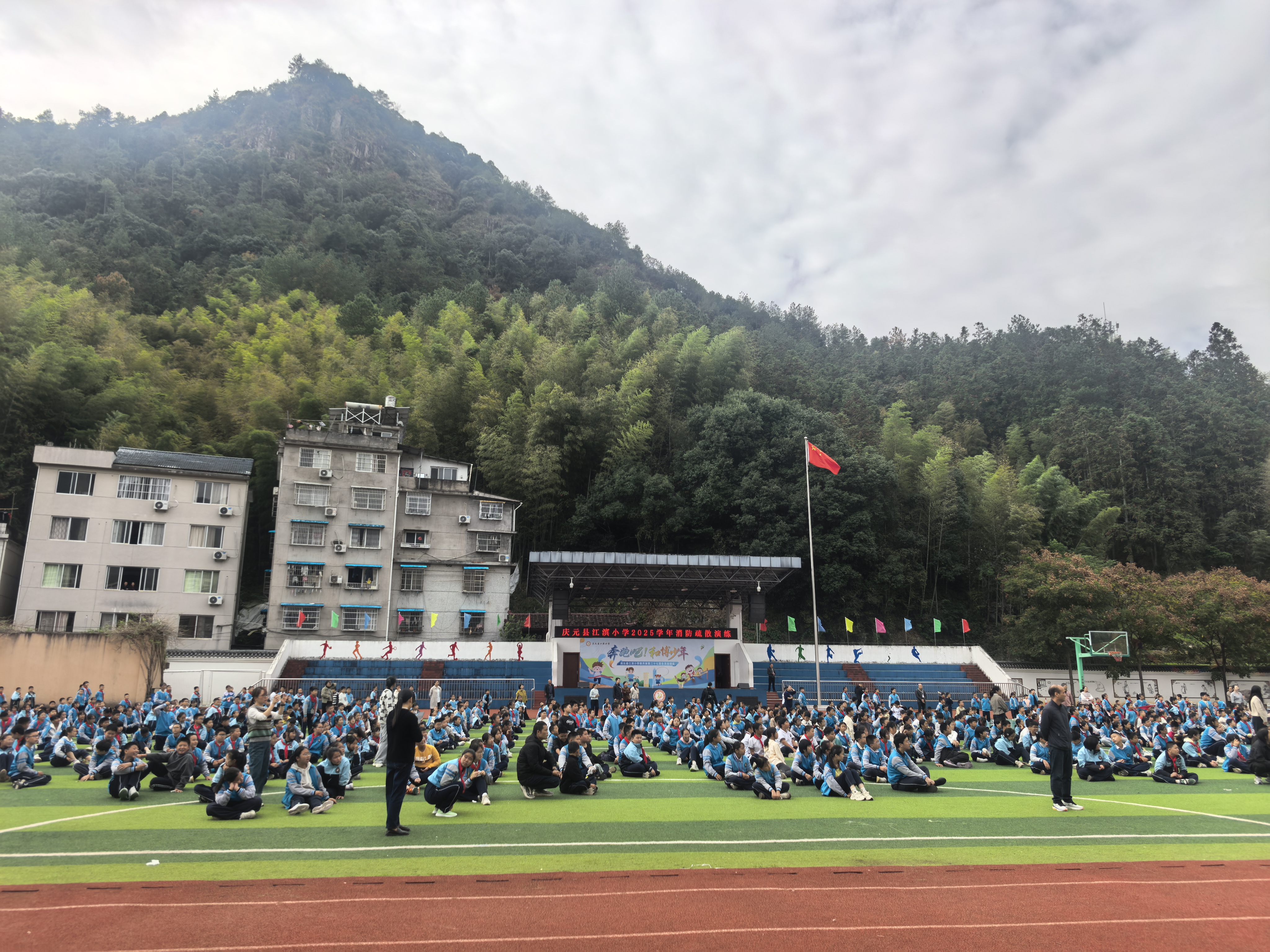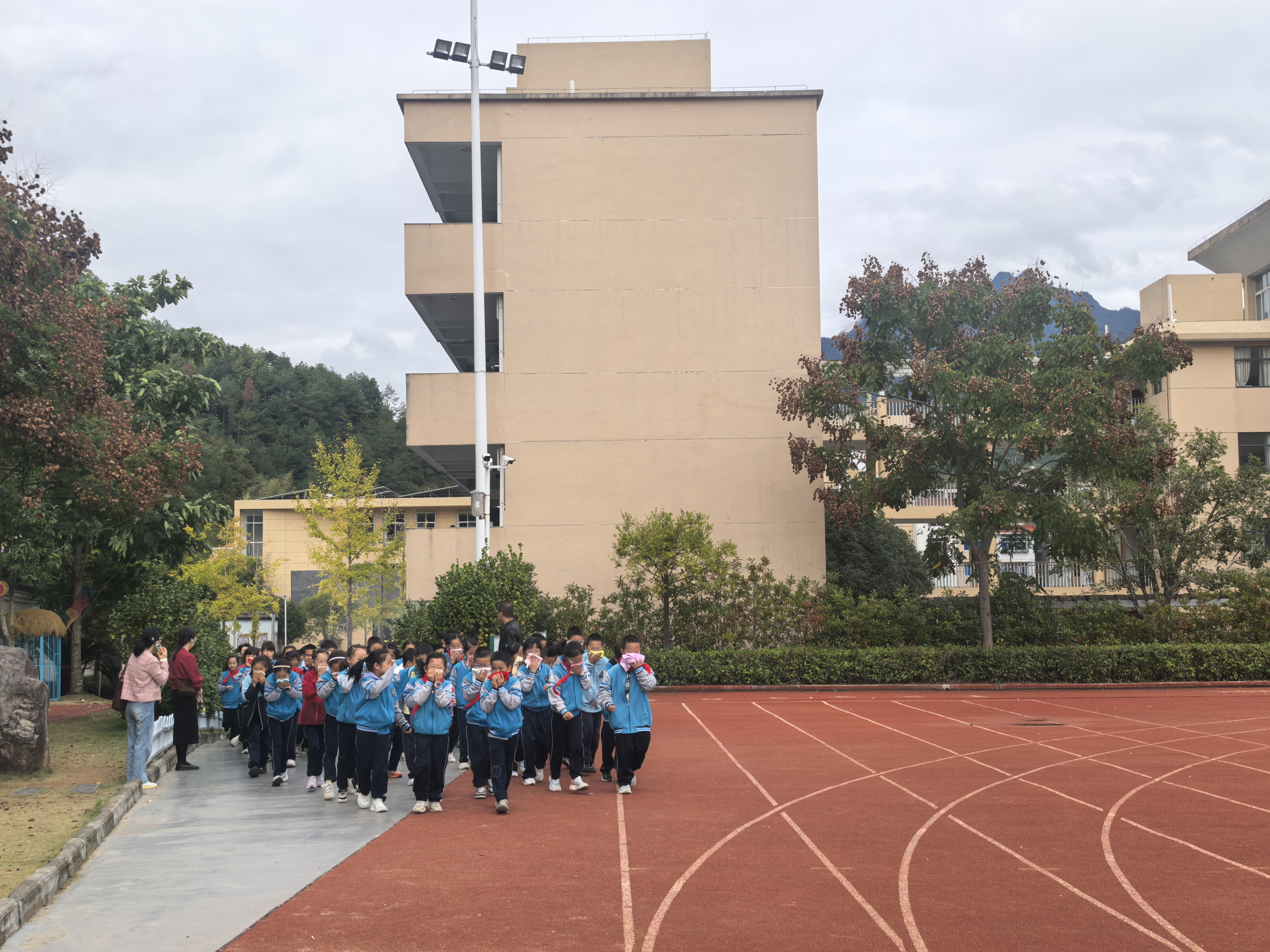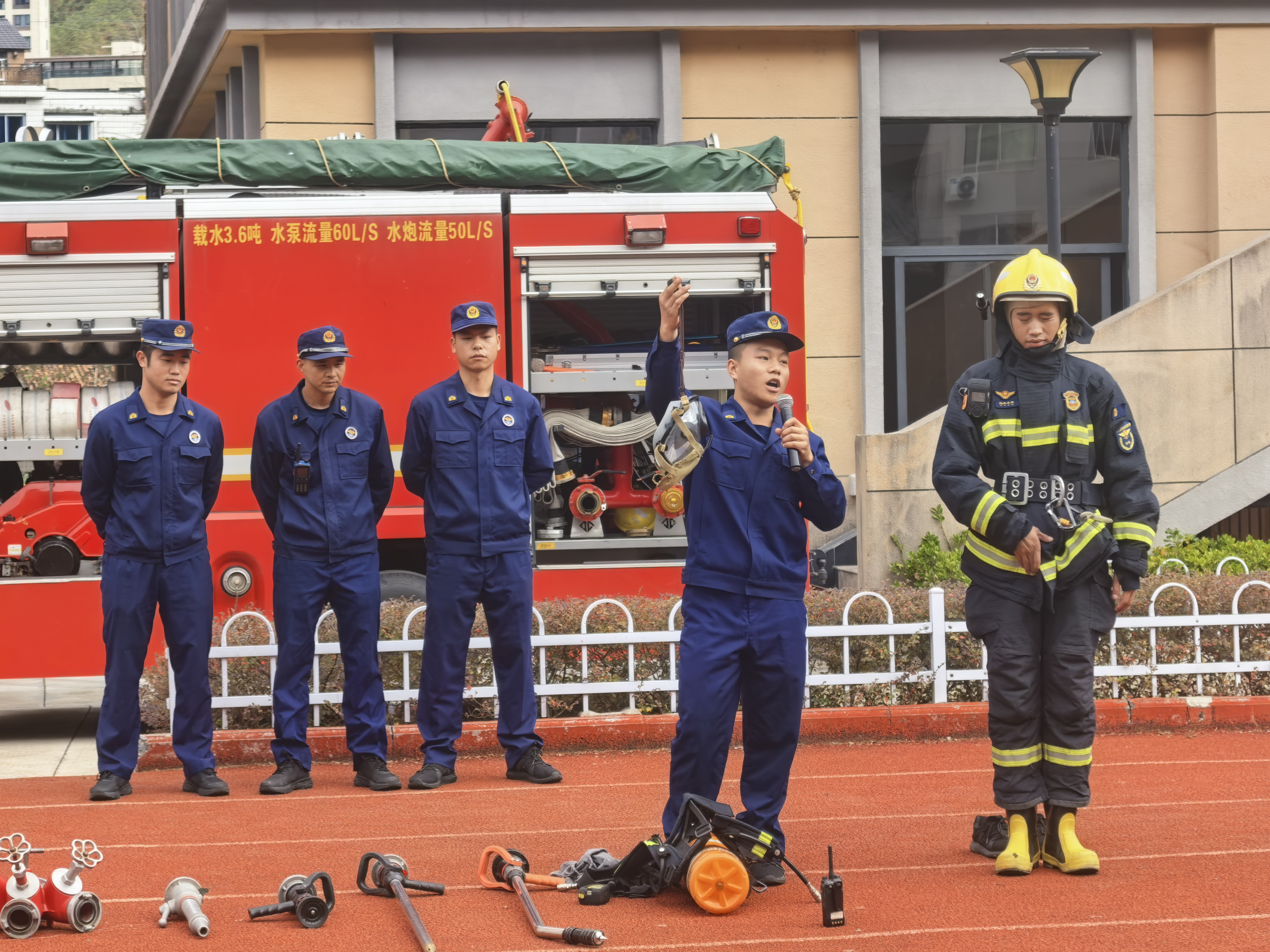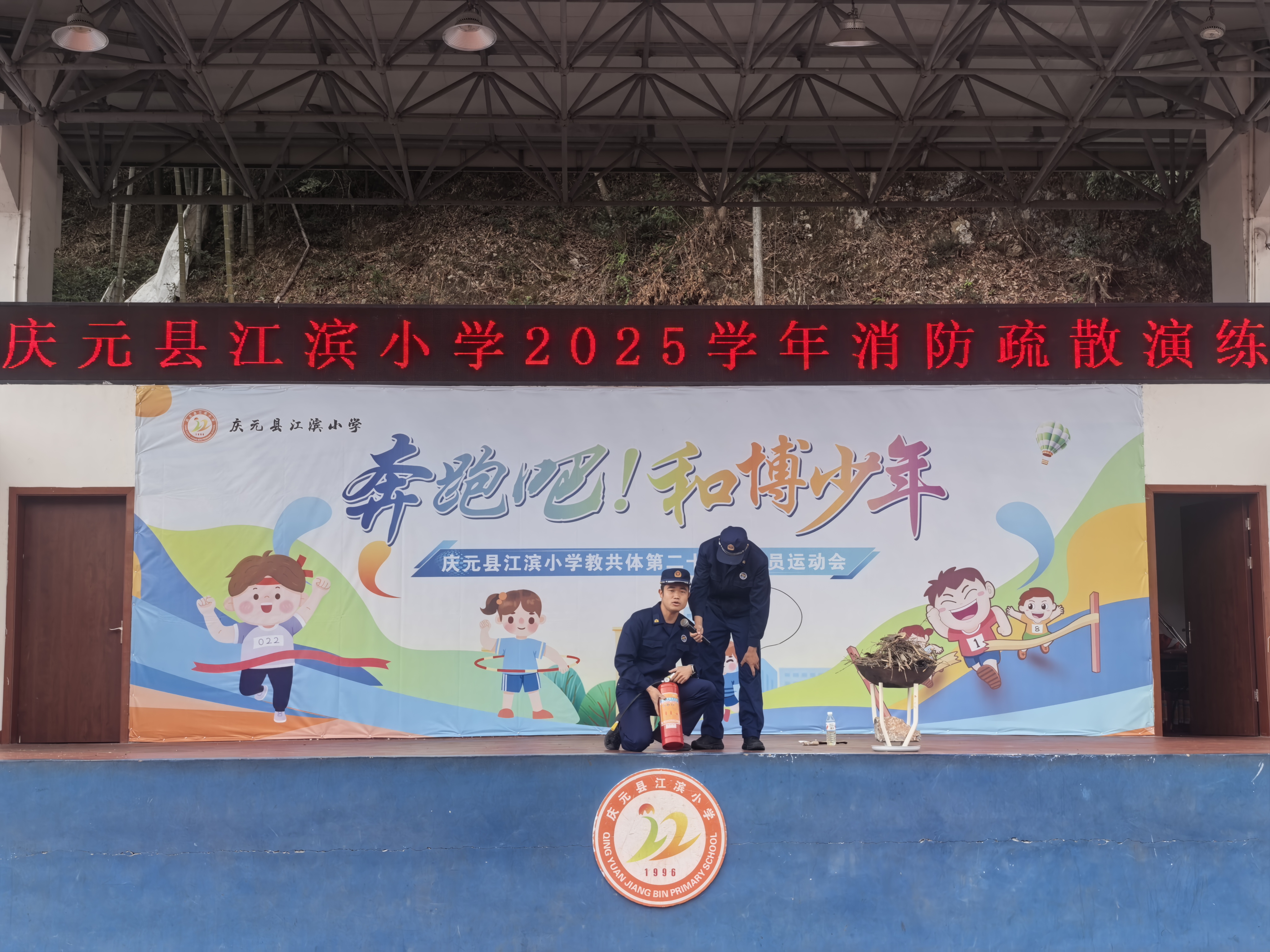 校园消防疏散演练启幕!消防队员现场护航,实操演练筑牢安全防线。