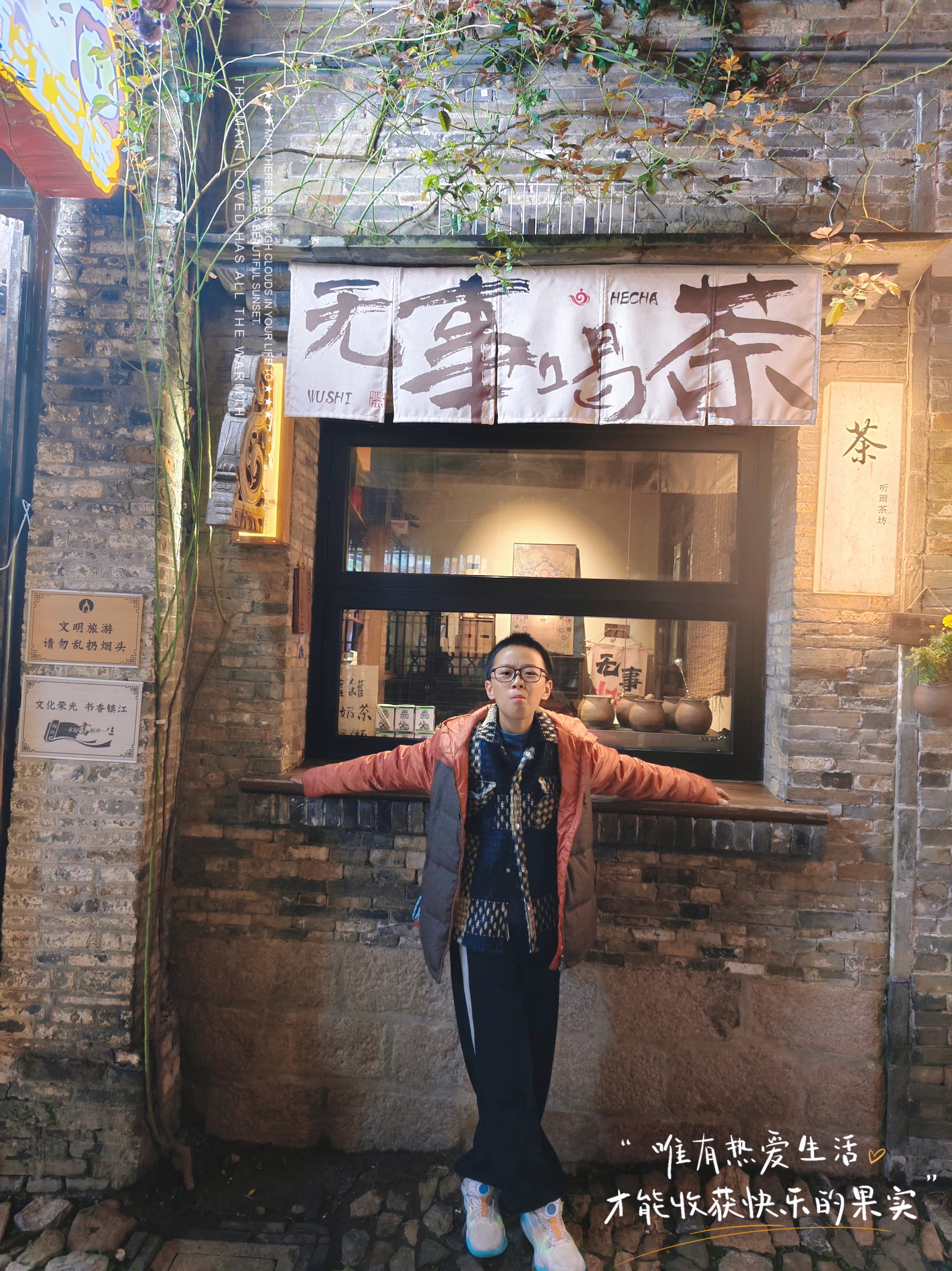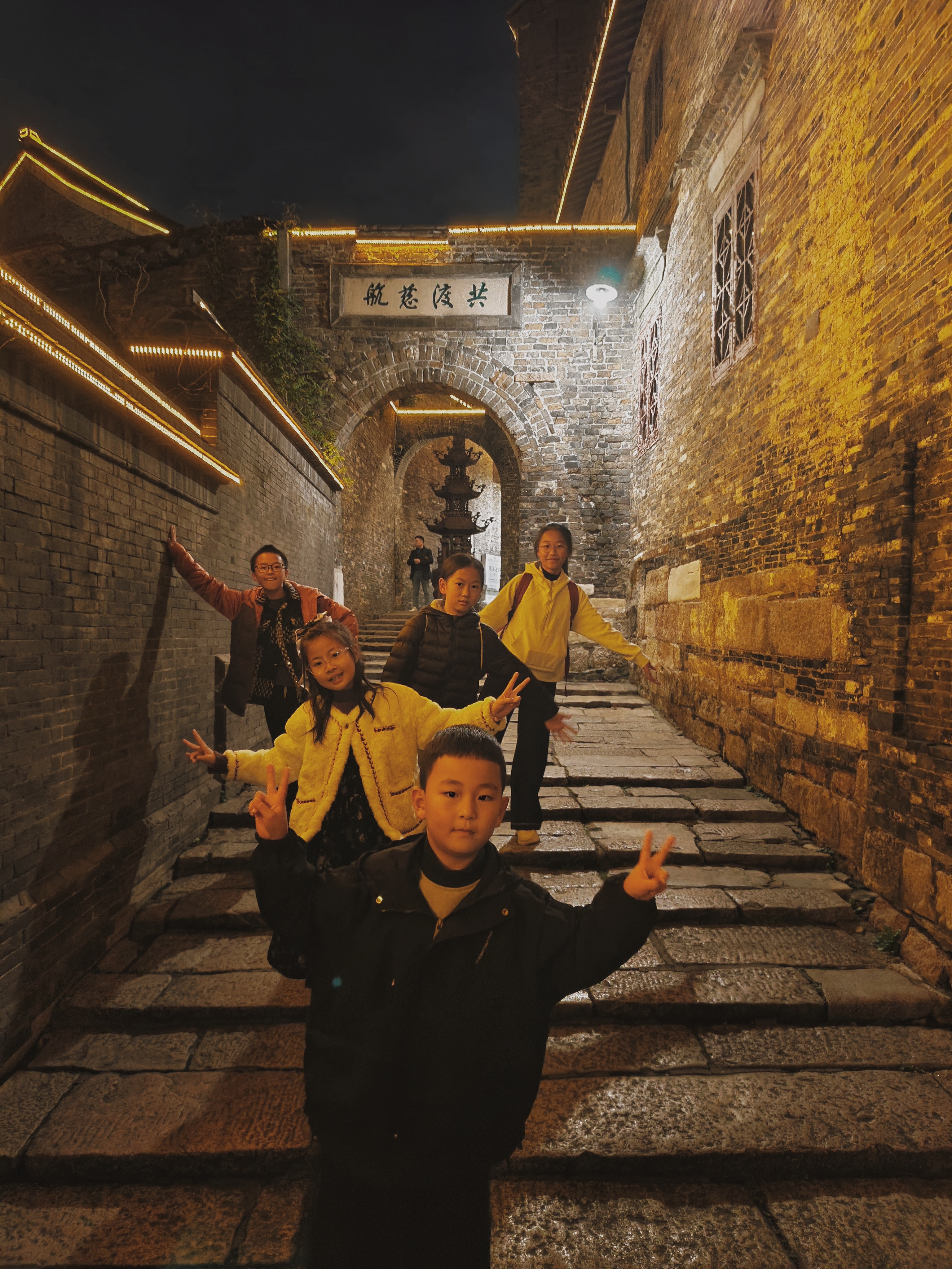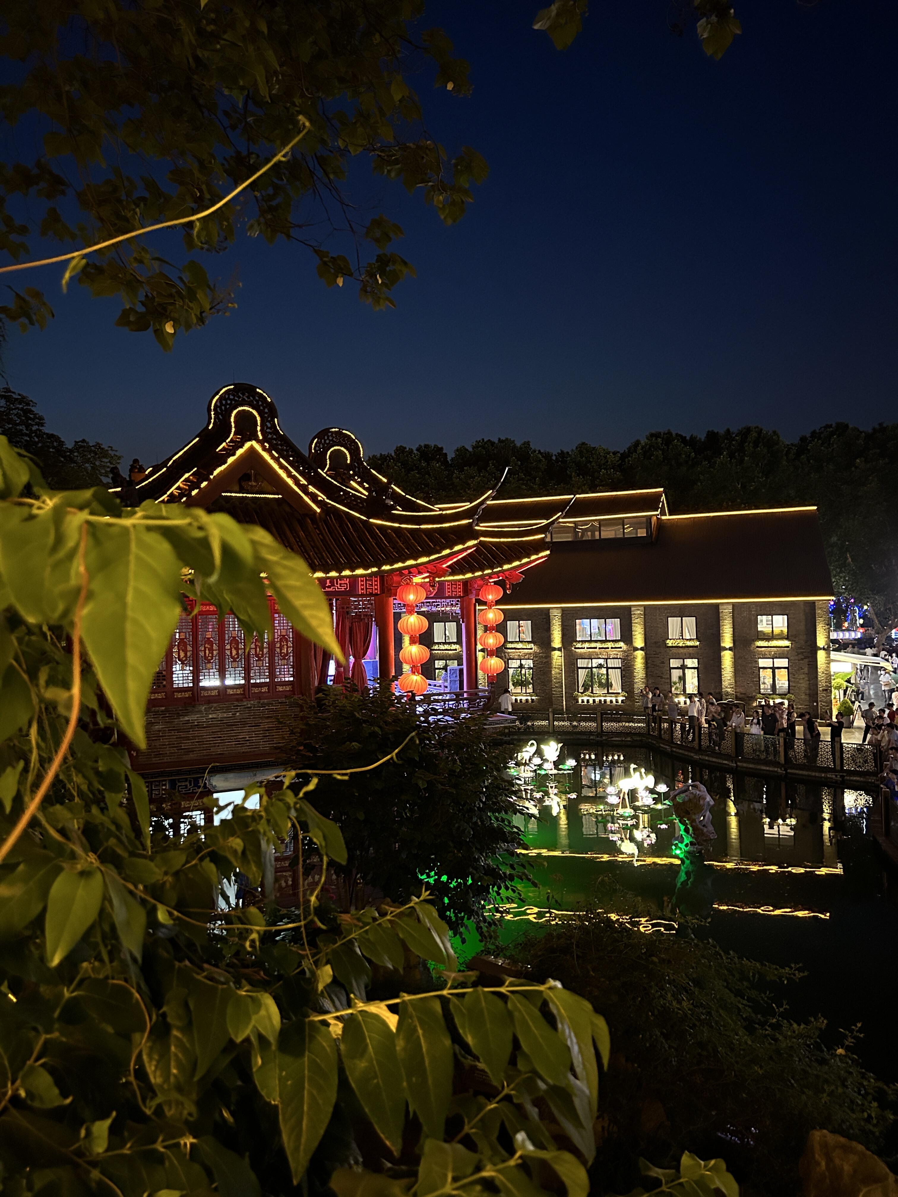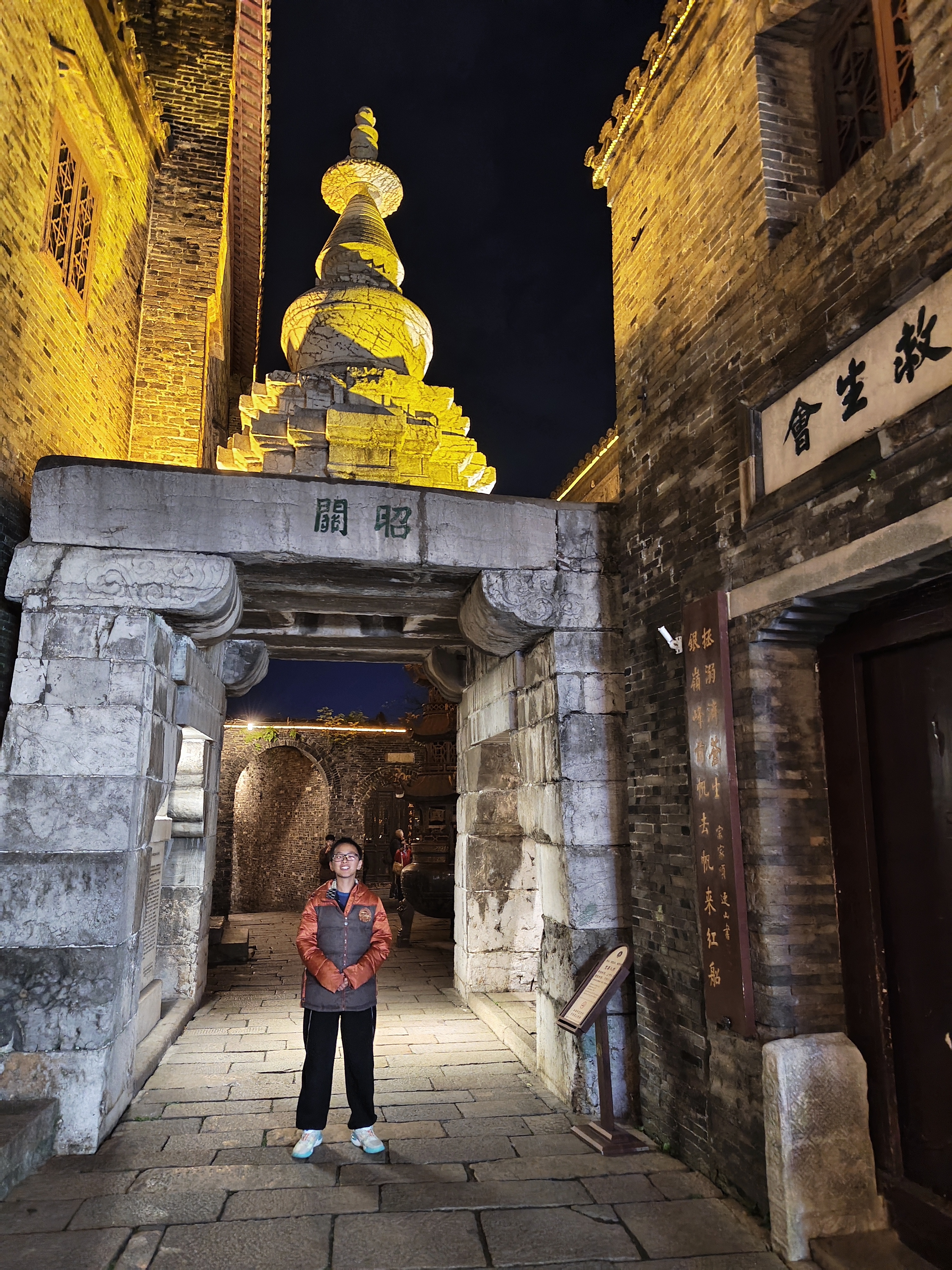 夜游西津渡 西津渡的夜,是古旧的,又夹些微明的光色。青石板路在脚下蜿蜒,被岁月磨得光滑如鉴,踏上去竟有些滑腻。两旁木结构的铺面紧闭着,暗红色的灯笼在檐下摇曳,照出些绰绰的人影,又即刻被夜色吞没。 我爱这镇江的历史,爱它不张扬却自有风骨,爱它在长江边上静静地讲述着千年往事的样子。 游人三三两两,多是闲散的,脚步也轻,仿佛怕惊动了什么。偶有笑语从民宿里漏出,旋即又被风卷去。那风是江上来的,带着水气和凉意,穿过古街老巷,拂过爬满藤蔓的砖墙,竟将白日的暑热驱散得干干净净。 脚下的西津古渡,曾是千帆竞发之地,而今只余石阶数级,斜入水中。石缝间仿佛还嵌着往昔的喧嚣与别离,在夜色中幽幽地散发着历史的芬芳。 街中一处石塔,“昭关”二字依稀可辨,过往行人皆从塔下穿过,据说是元代的。塔身石雕被时光啃噬得模糊了,倒更显得古意盎然,它就这样默然注视着历史的变迁。 夜色渐深,灯笼愈发明亮起来。光影在青石板上流淌,望西津渡,只见一片朦胧灯光,浮在长江之畔。 我爱这夜色中的西津渡,美得让人不想离开。