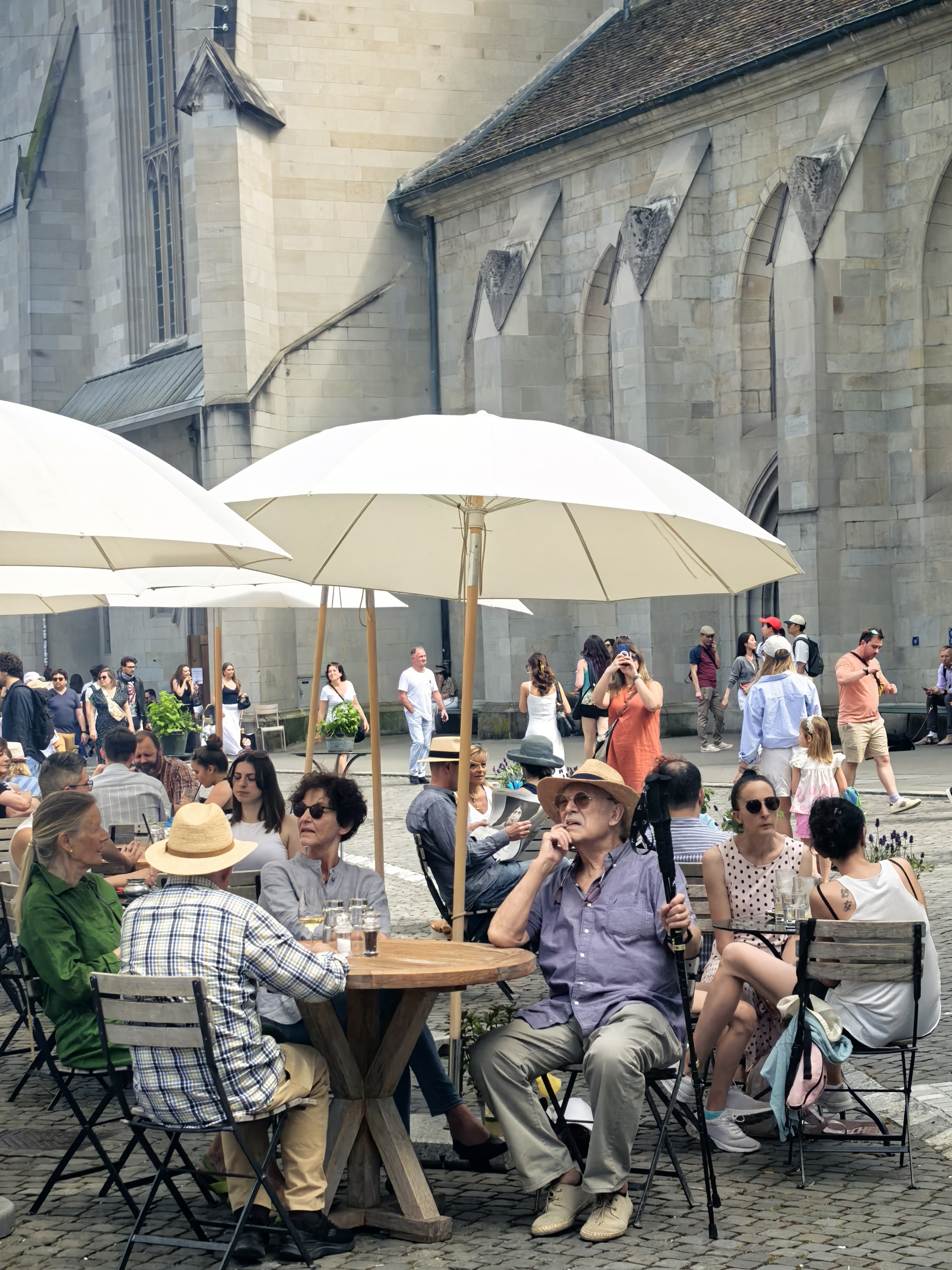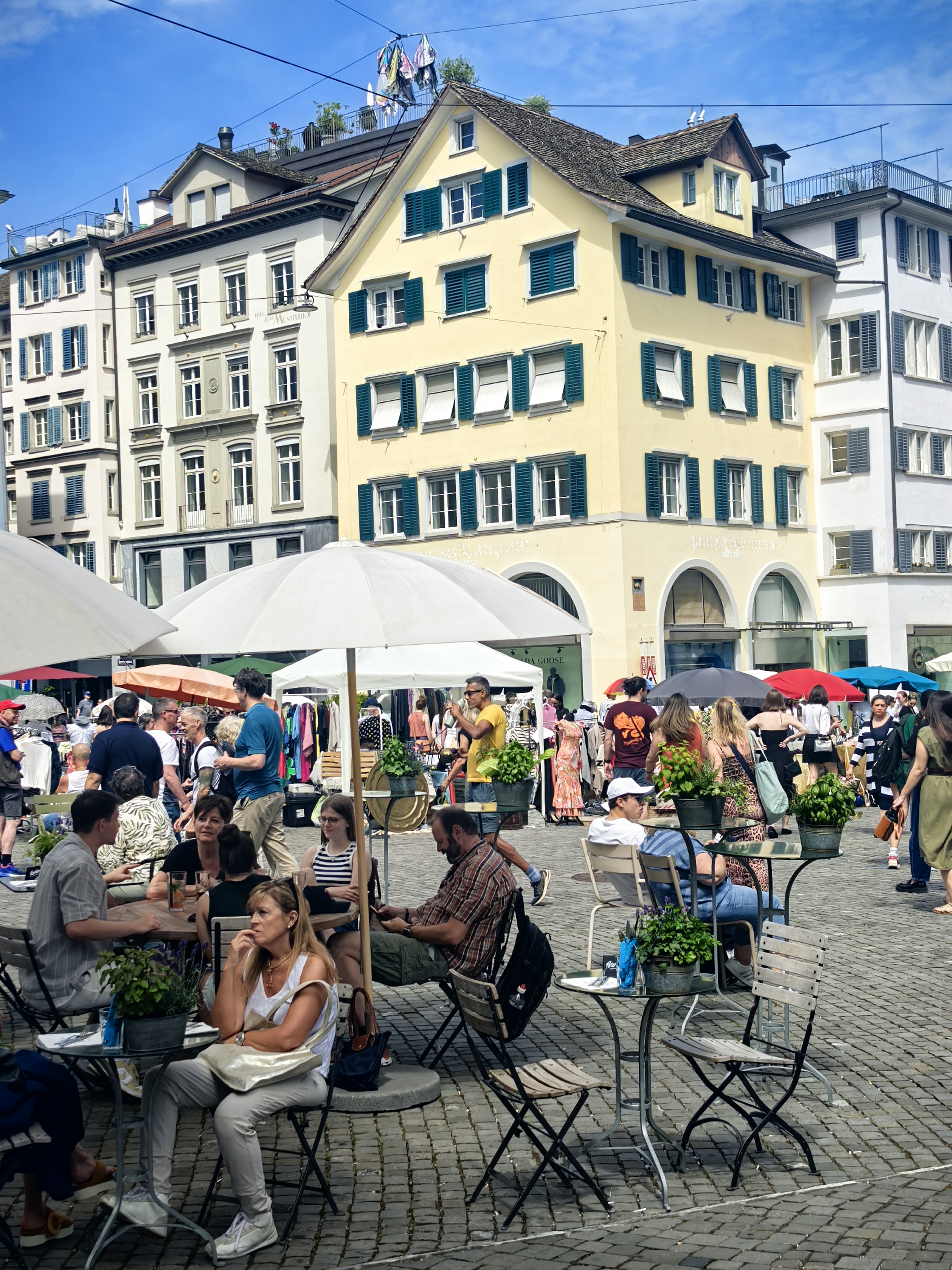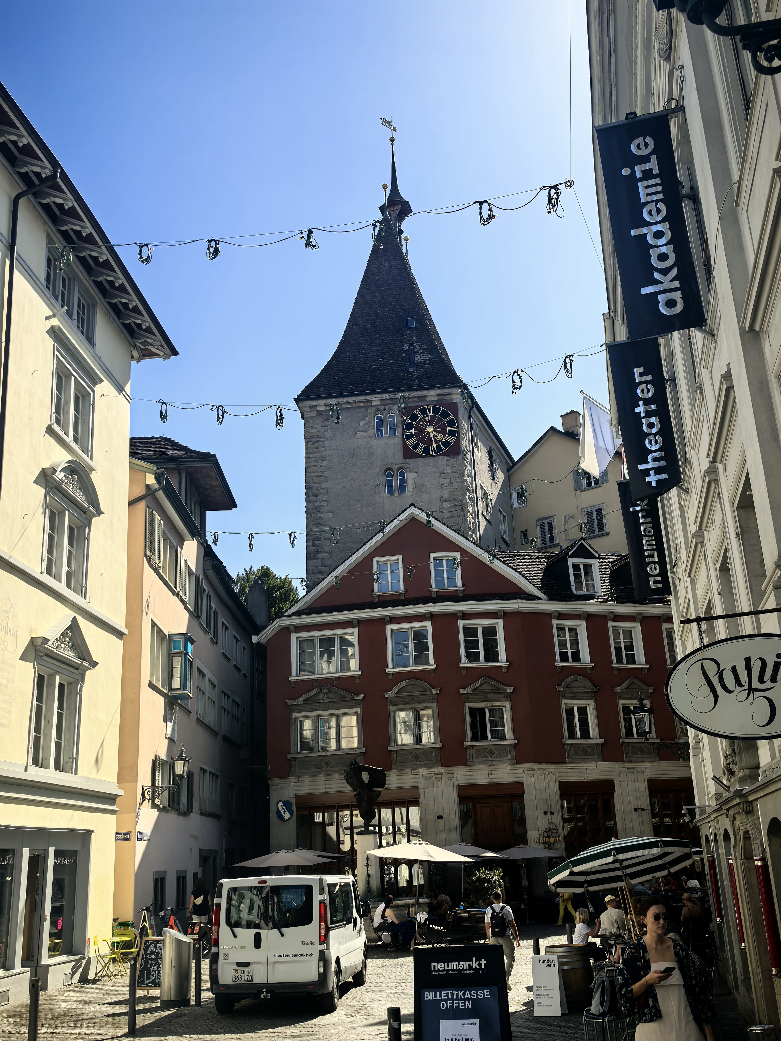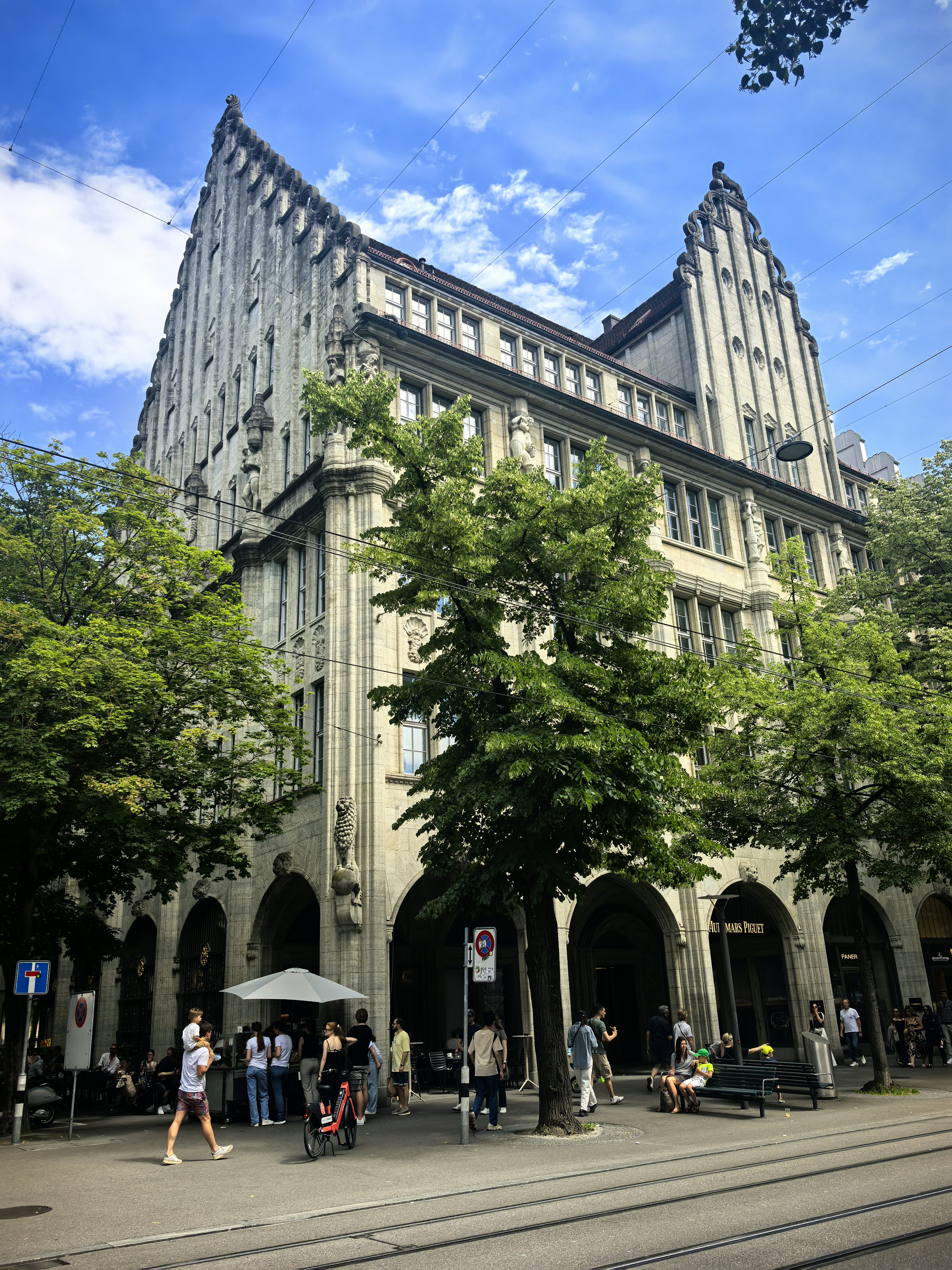 从林登霍夫山丘的石栏边望下去,苏黎世的老城像一幅摊开的、微缩的彩绘地图,利马特河如一条柔软的银带,从中轻轻划过。我顺着那陡峭而幽静的小径走下去,仿佛是从一个清寂的观景台,一步步沉入了一座活色生生的城池。 蛛网般密布的小巷,喧嚣的市声便扑面而来。脚下的石板路被岁月磨得温润,缝隙里透着潮湿的光。两旁的古老建筑并肩而立,在头顶几乎挤出一线天光。巷子窄而深,幽幽地延伸着,每一个转角都可能藏着惊喜。 循着人声与咖啡的焦香,不觉已到了圣母大教堂脚下。那儿有个热闹的小小市集,色彩斑斓的衣服、手工艺品、鲜花、蜂蜜在临时支起的木摊上。游人慢悠悠地逛着,看着,好像这也是一种休闲的过程。 而一旁的露天咖啡座早已满座,穿着围裙的侍者托着银盘,在桌椅的缝隙里蝴蝶般穿行,那空气里都浮动着一种闲适的、暖洋洋的喜悦。 每一条小巷,最终都像溪流汇入大河一般,融入那条声名在外的班霍夫大街。方才的幽静霎时被一种极致的繁华所取代。脚下的电车轨道上,有轨电车叮叮当当地,沿着轨道滑行,像这座城市优雅而节制的脉搏。街道两旁,名店林立,橱窗明亮得像一场不愿醒来的奢华梦境,珠光宝气,壕气逼人。 我随着人流漫步,看这长长的街道从火车站一路铺陈至波光粼粼的苏黎世湖畔,真叫一个眼花缭乱,仿佛走完了一段从人间烟火到尘世天堂的旅程。