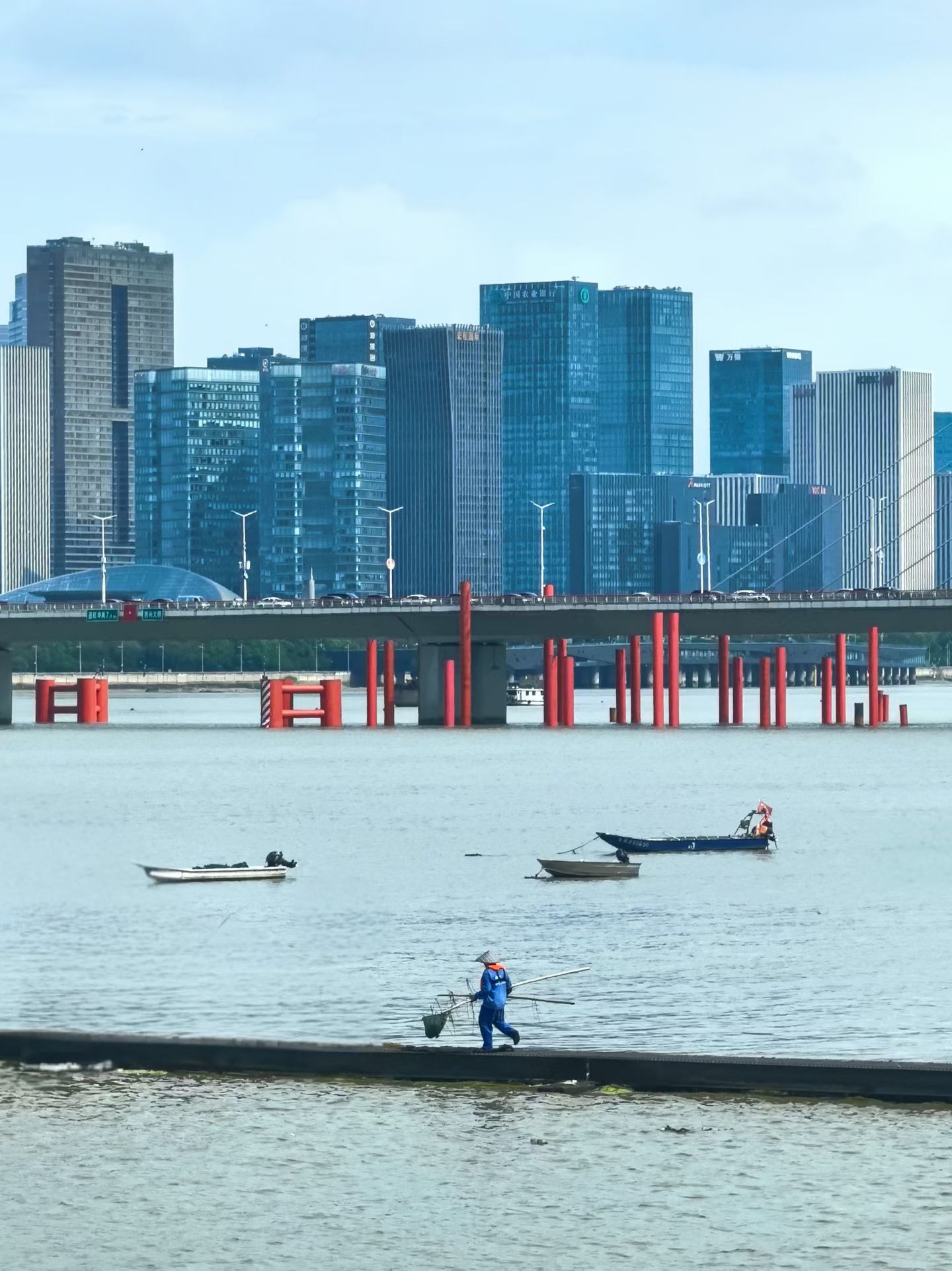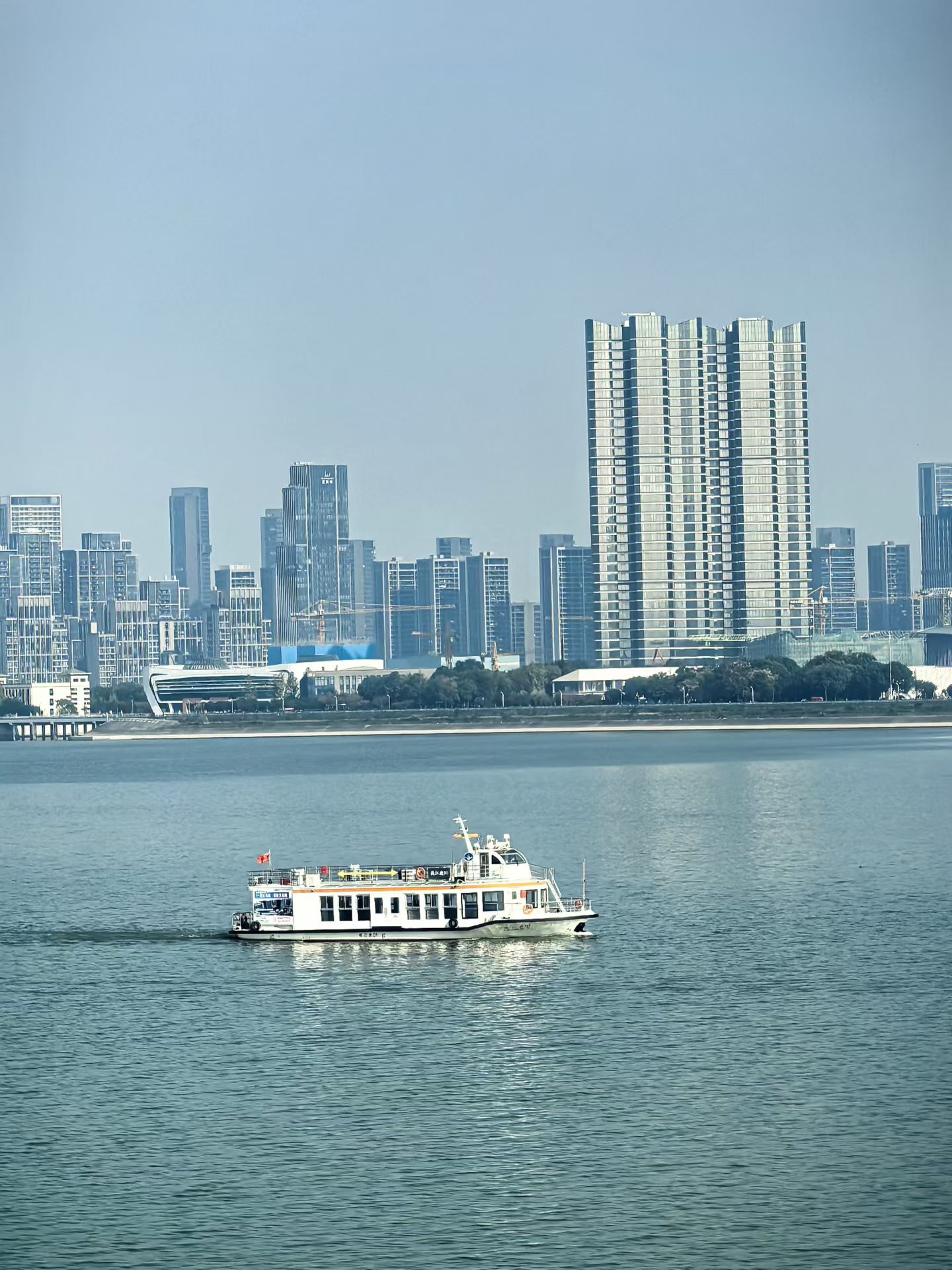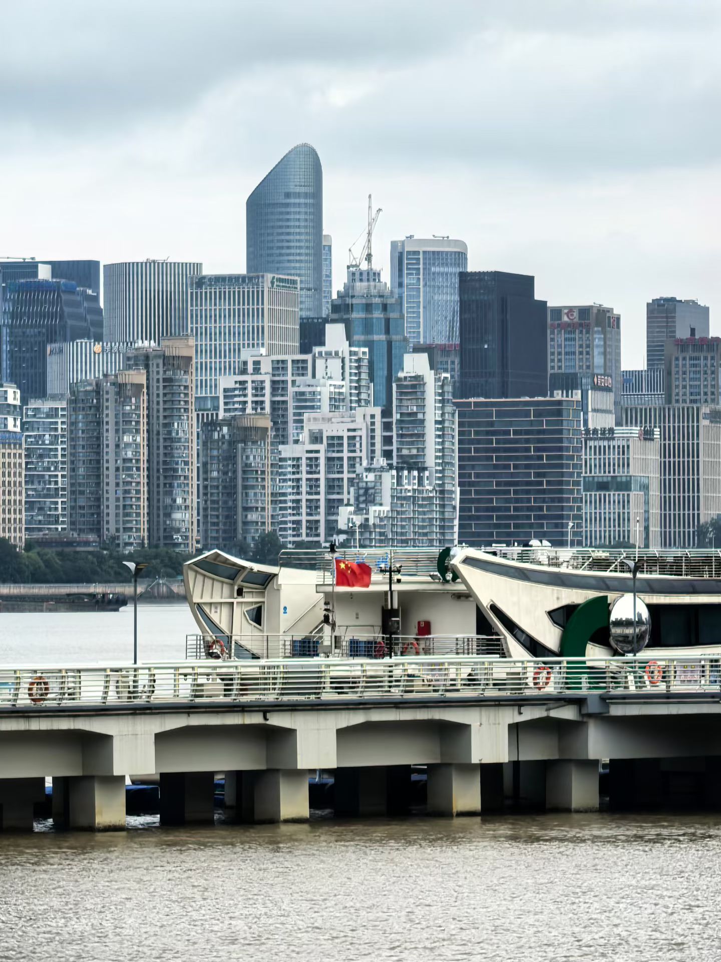 钱塘江面,新渡即将于后天正式启航!北岸城市阳台至南岸奥体中心的免费轮渡,为骑行市民架起温暖过江通道。三艘渡船穿梭碧波,据说每班承载几十辆辆非机动车,上下班高峰期15分钟一趟,平峰30分钟一班。 北岸的码头,从最初的堆满钢管,到如今落成,我是一步步看着它建设的,所以觉得特别亲切。如果不太赶时间,坐轮渡体验一下也挺好的。可以想像,晨光中,骑行者推车登船,江水映着笑脸;暮色里,渡轮载着归人,灯火点亮两岸。 这是一座正在快速成长的城市温情,也是流动的人间烟火。我想,轮渡的开航是否会带动钱塘江的游轮观光游呢!