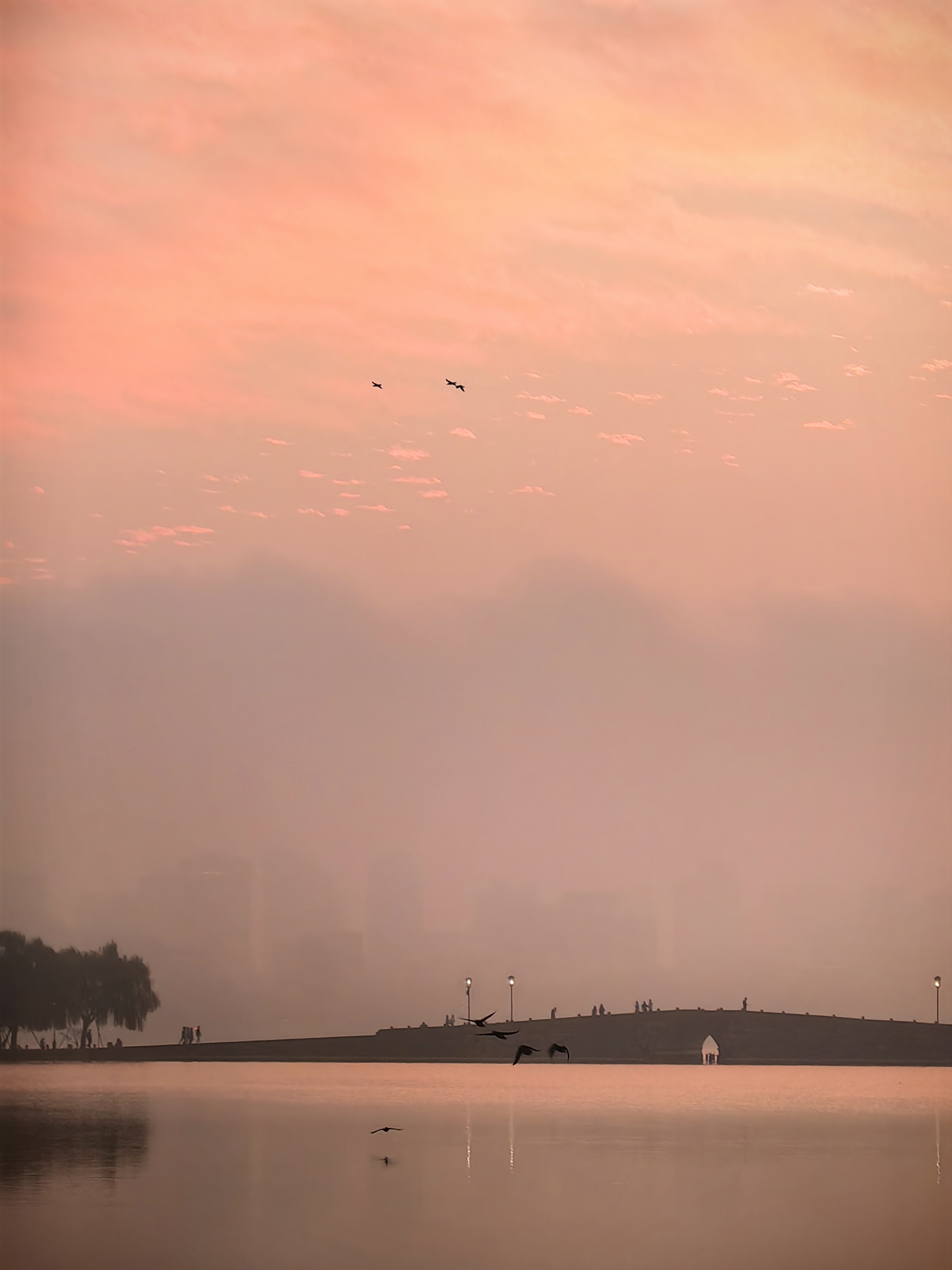 🍂秋意浓,西湖畔,断桥映朝霞。飞鸟掠过,留下一串串欢歌。🍁在这如诗如画的季节,你最想和谁漫步在这美景中呢?🧐 📢💕 大家一起来欣赏这秋日的美景,感受大自然的温柔吧!🌸🍂🍁