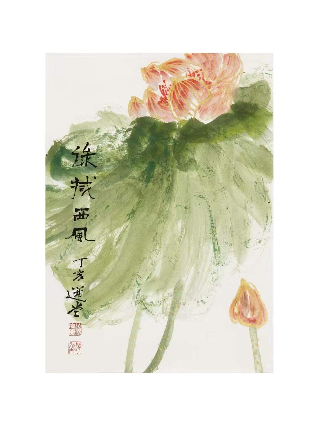 来履道堂看展,看饶宗颐社的《绿减西风》时,疑惑题字为何覆盖了画面。结果被画廊教育此类题跋很多,少见多怪。 做了些功课,“绿减西风”,源自“词中李商隐”吴文英的词,“又怕便、绿减西风,泣秋檠烛外”。 中国画的题款内容多为作者姓名(包括字与号)、时间、内容、地点、环境、气候、心情等,多起到弥补空虚、平衡画面、加强气势、破除雷同等多方面的作用。 五代以前的绘画,一般都不落款。北宋开始有款,但早期仅简单写个名字,有的画院画师则在名款前加个"臣"字,一般都写在边角或树干、石上等不起眼的地方。最早到米芾之子米友仁,才始见有较多题跋。 元代以来,强调诗、书、画三者结合,这种题跋风气从此大盛,一直延续到近现代。