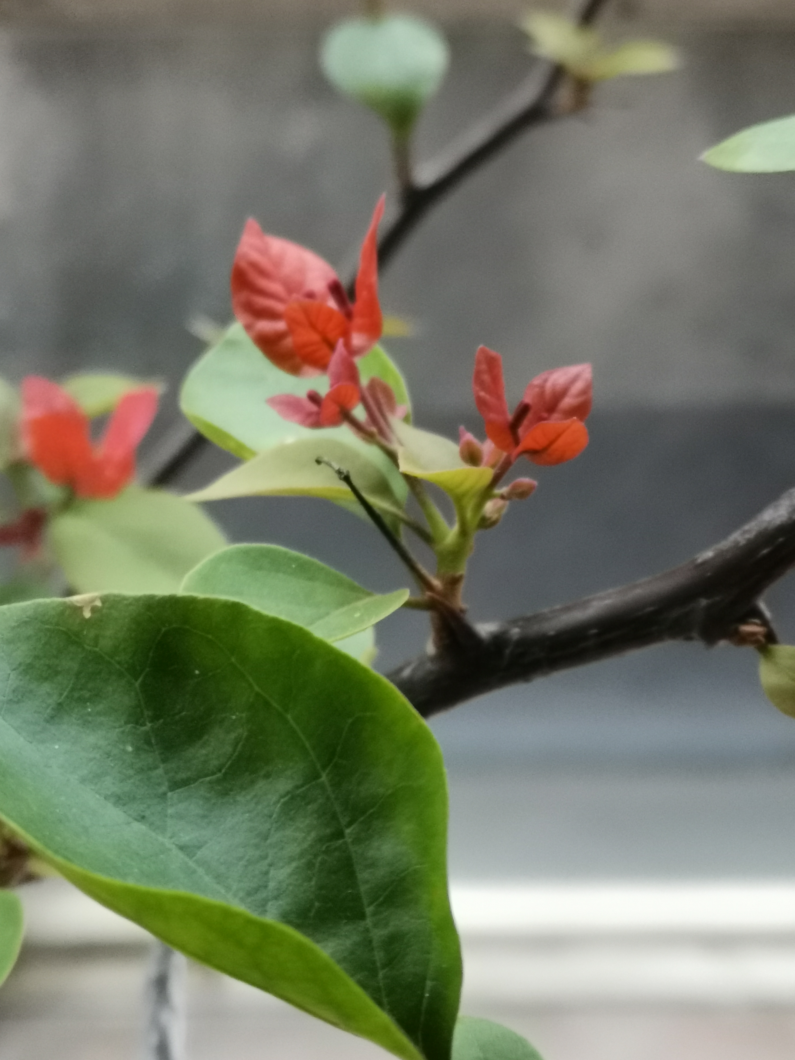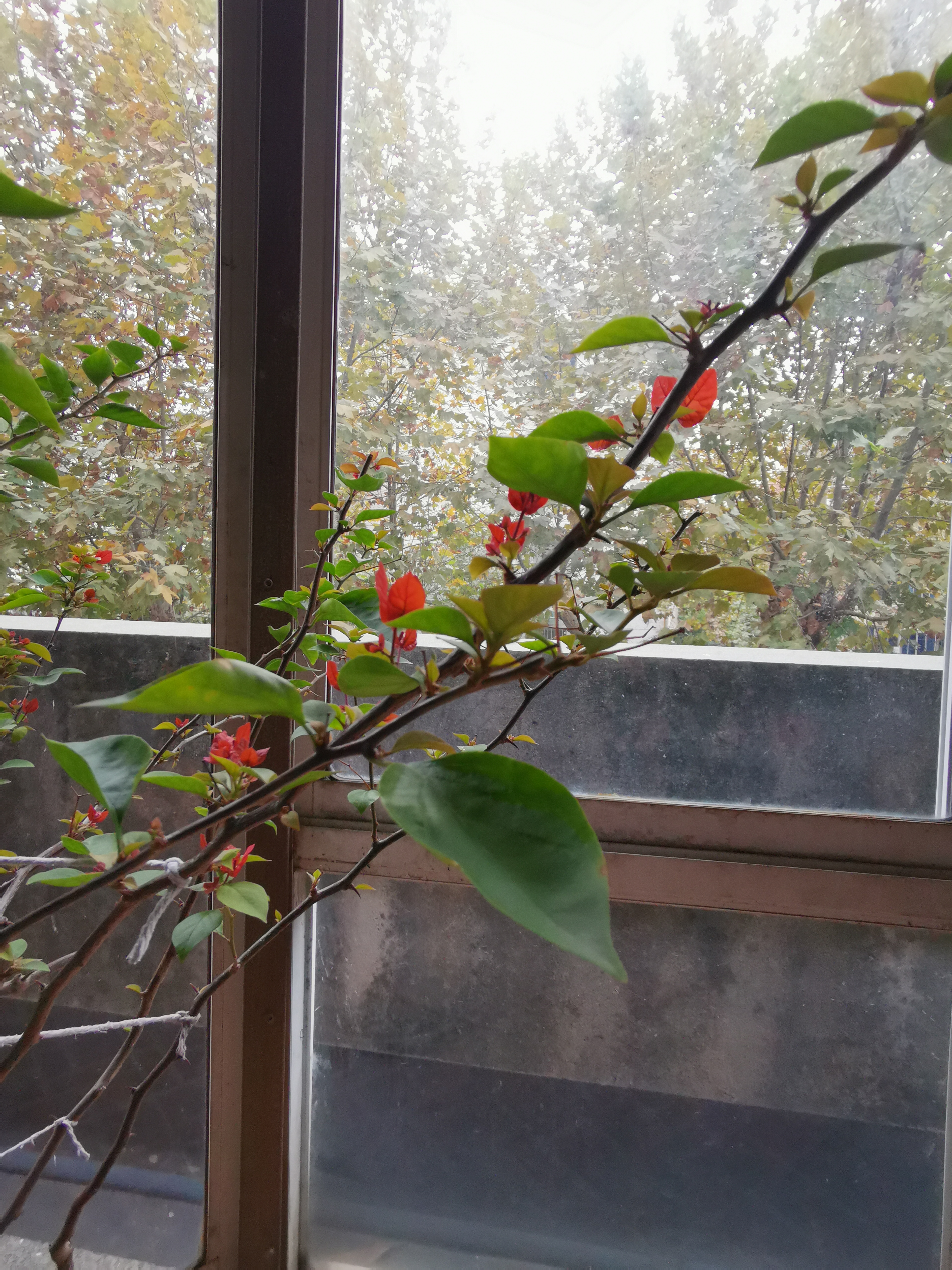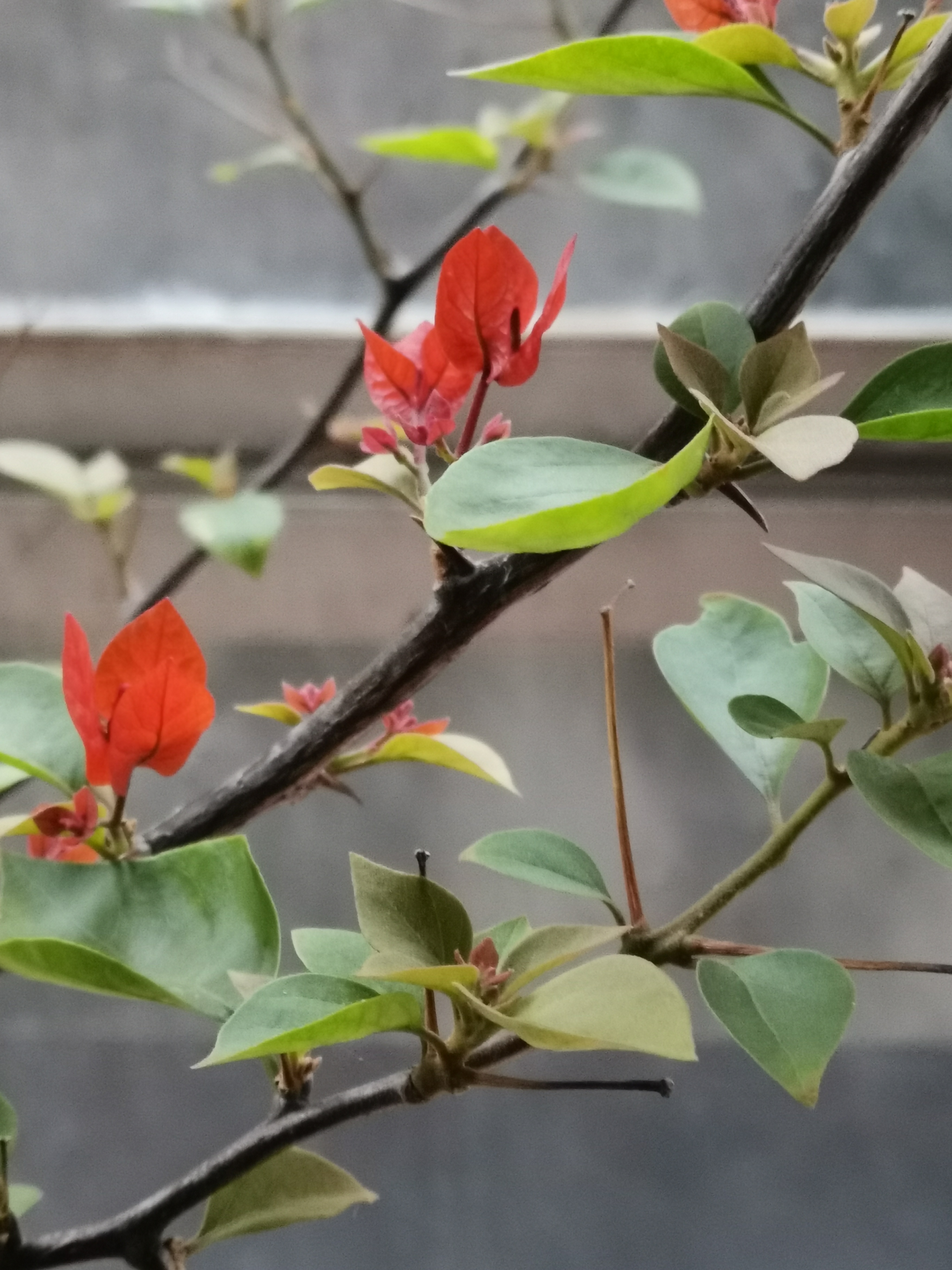 天冷了,寒潮要来了!昨天我和86岁的老爷子把阳台上的三角梅抬进了阳光房,这样可以安全过冬了。瞧!枝叶上苞出了很多鲜红的花瓣呢,好美!