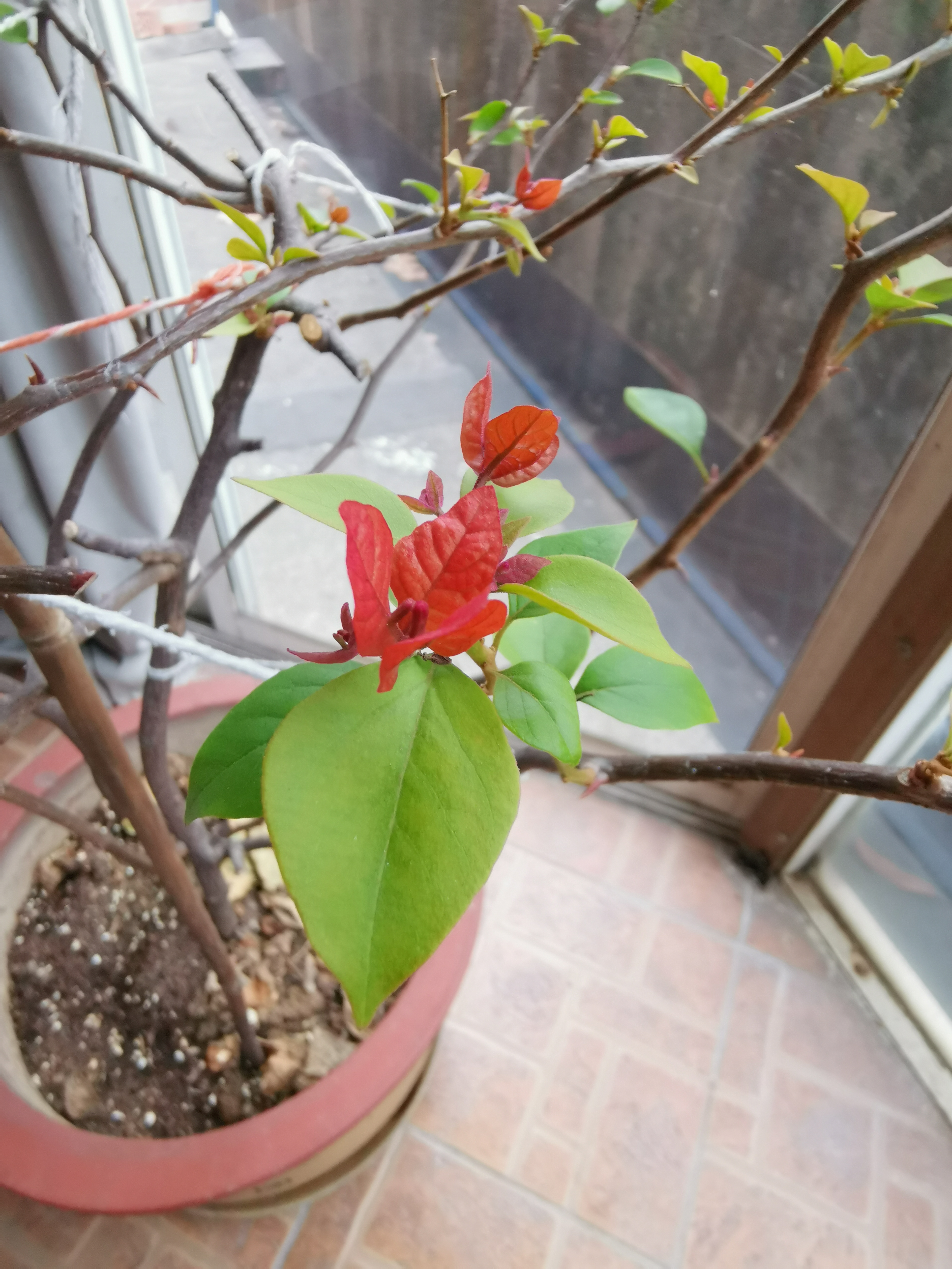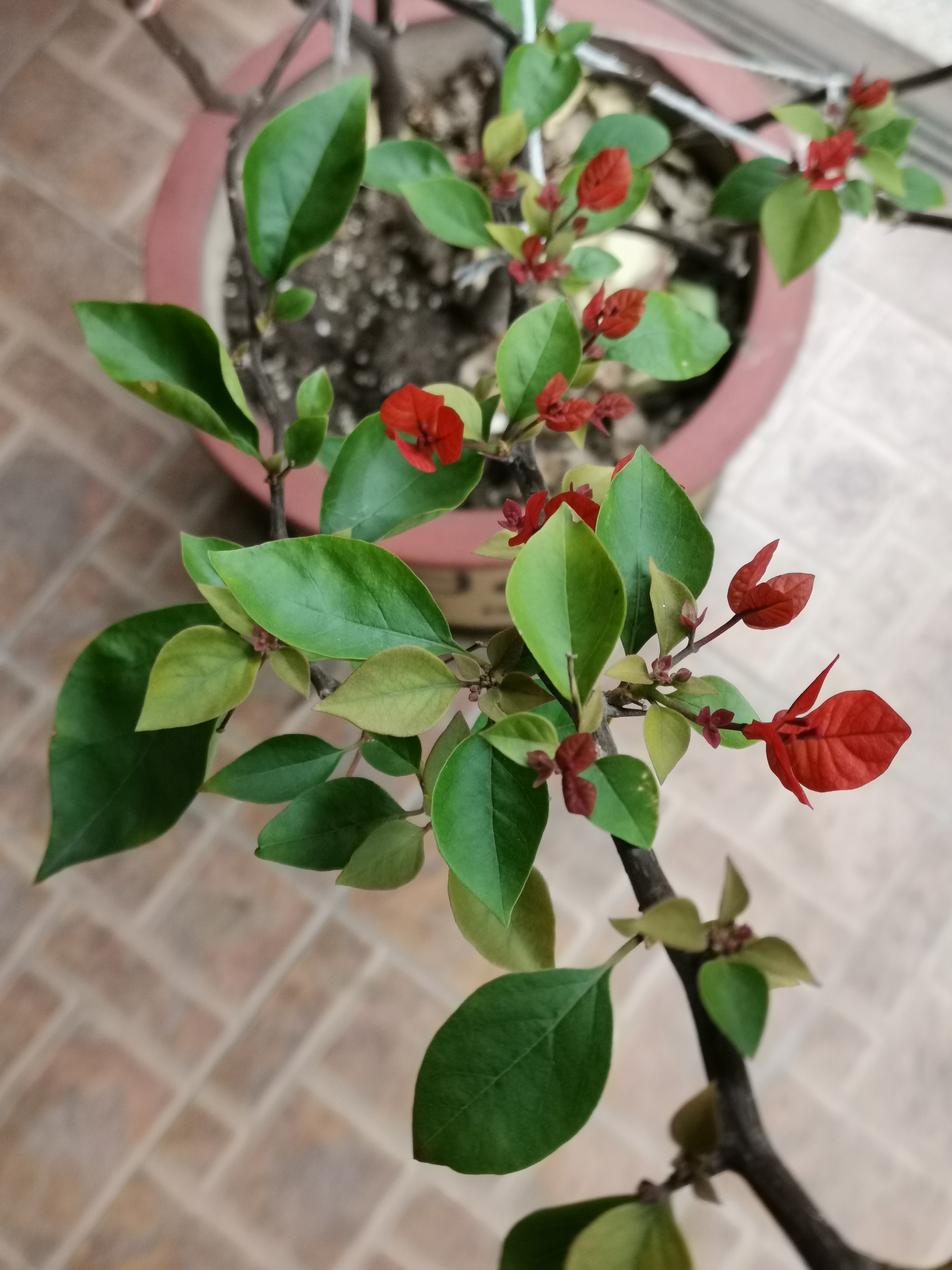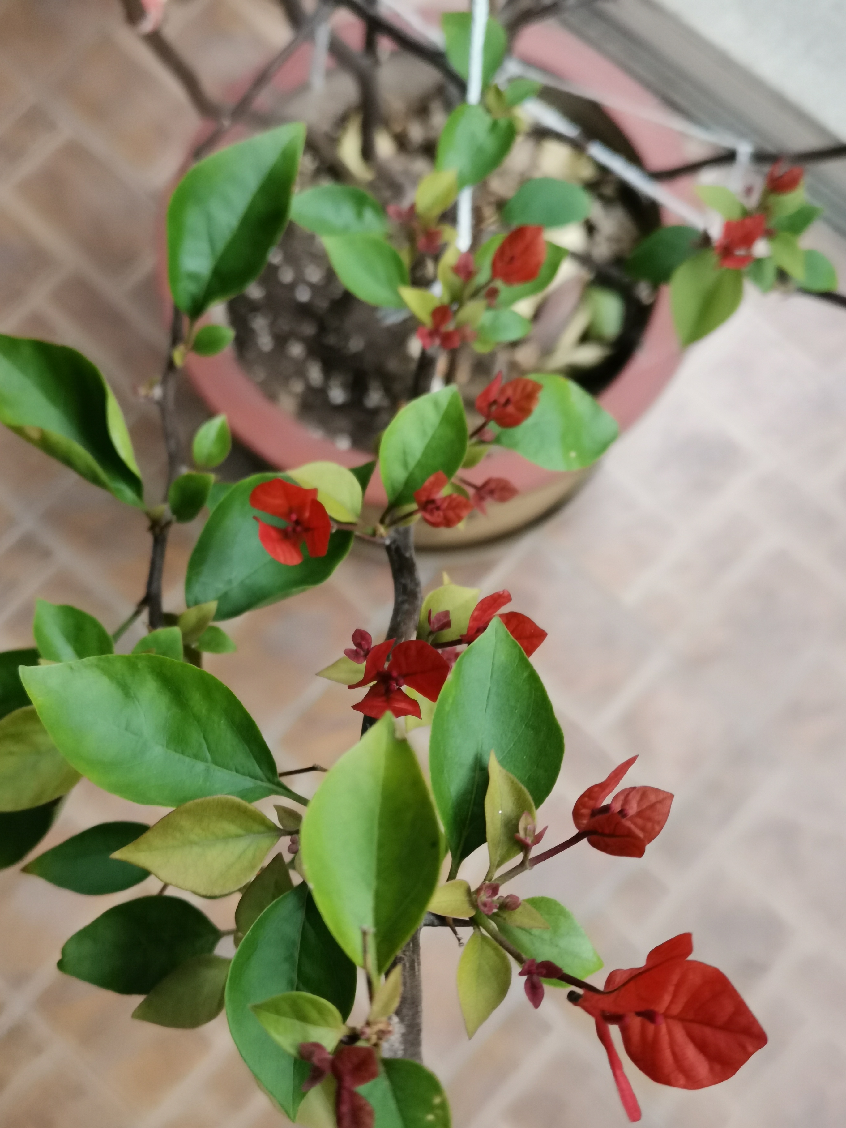 天冷了,寒潮要来了!昨天我和86岁的老爷子把阳台上的三角梅抬进了阳光房,这样可以安全过冬了。瞧!枝叶上苞出了很多鲜红的花瓣呢,好美!