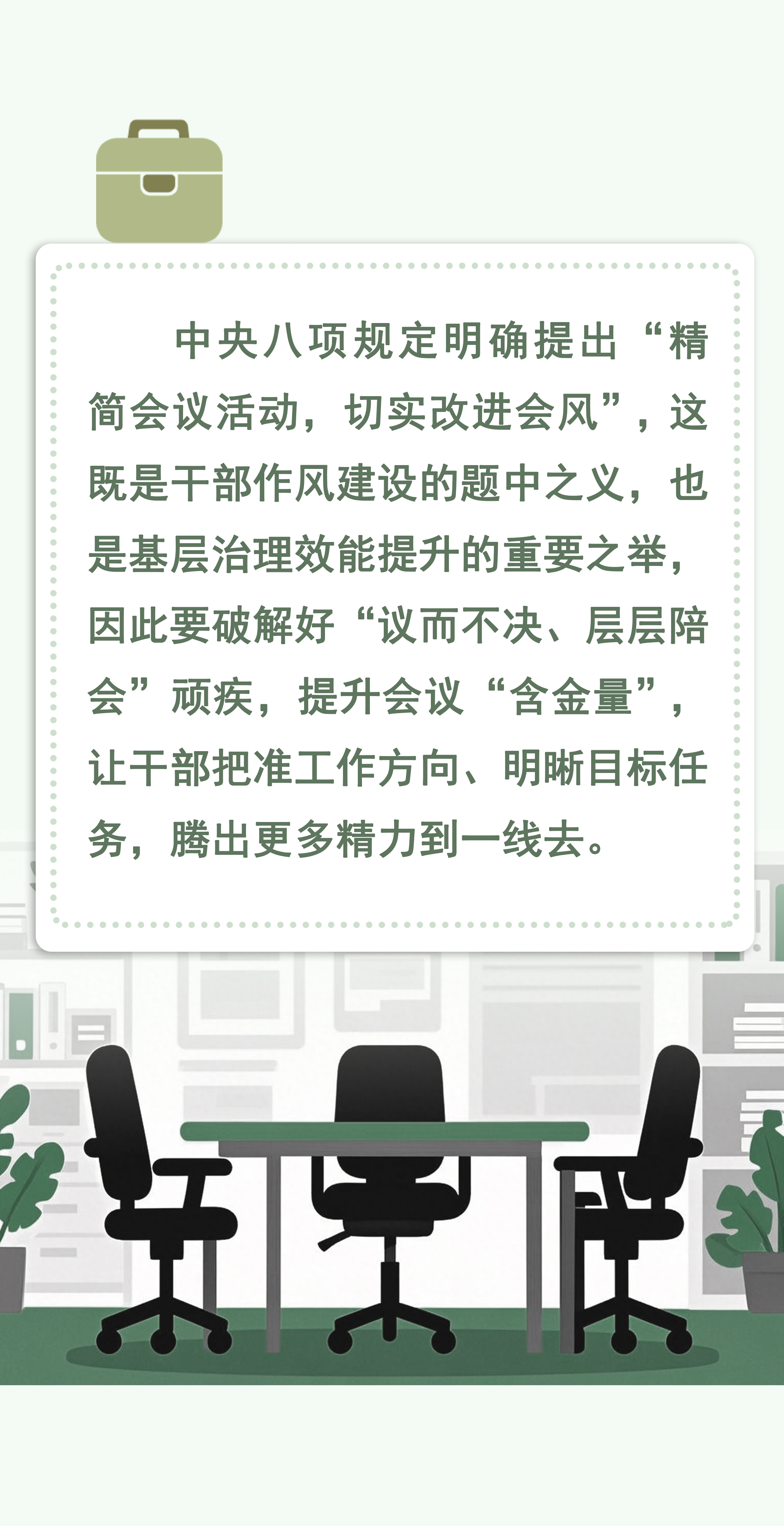 以“清简会风”带动“实干作风”,推动“以会促干”取代“以会代干”,把好会风转化为好作风。为基层减负,为担当赋能,持续推进作风建设常态化长效化。(浙江绍兴柯桥 鉴水评团队出品)
