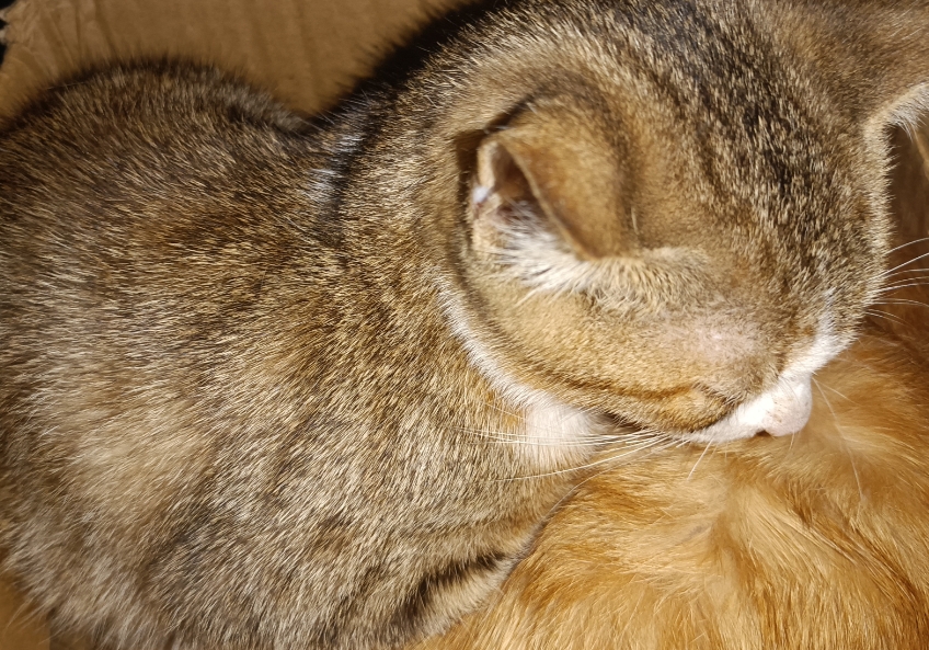 又是不一样的睡姿,还是喜欢睡纸箱,朴素的猫。