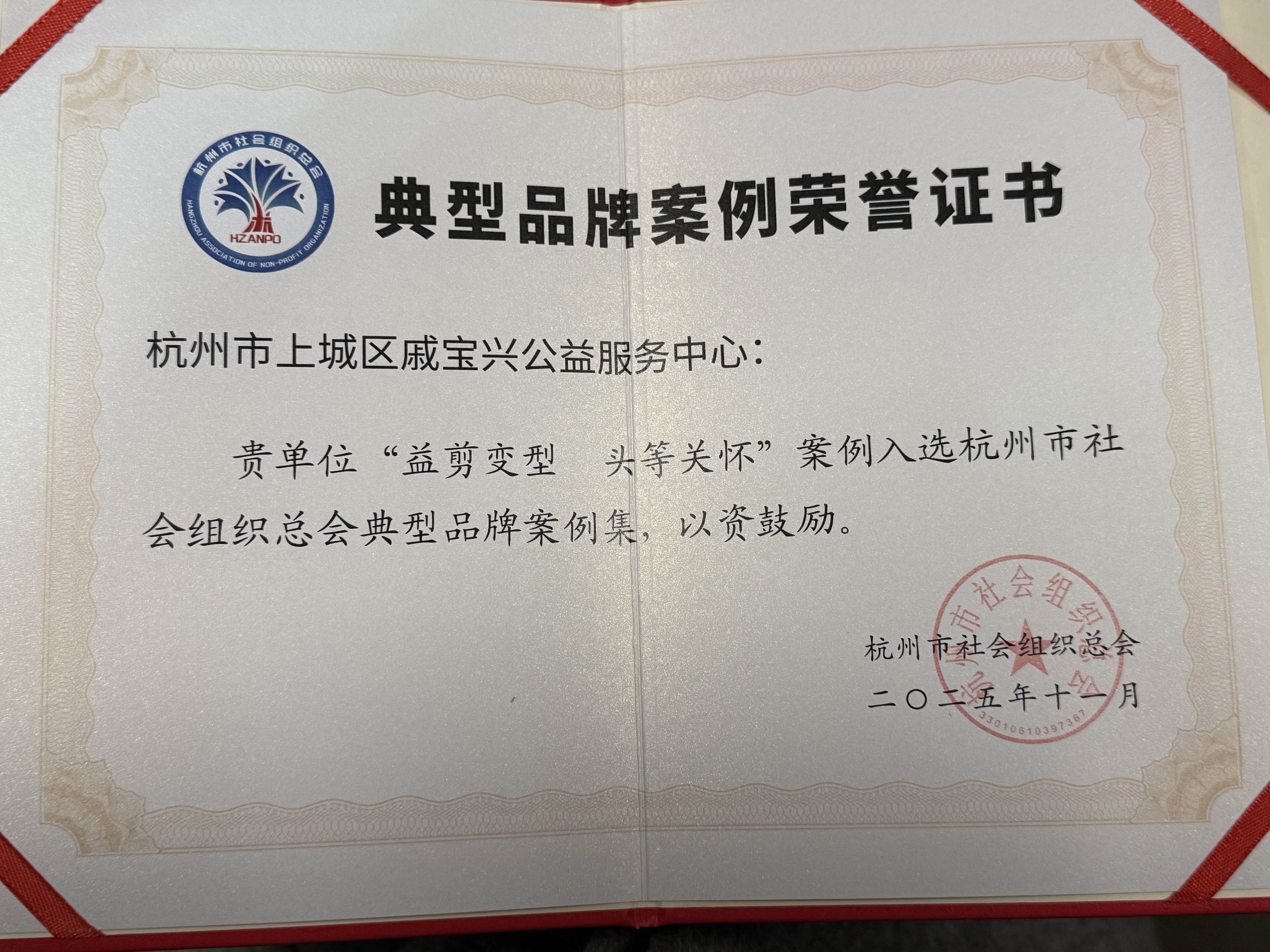 会期两天的总会会员大会与市社管局2025年杭州市“强党建、促发展”社会组织党建与业务综合培训班圆满落幕。 戚宝兴公益服务中心“益剪变型 头等关怀”案例入选杭州市社会组织总会典型品牌案例集。