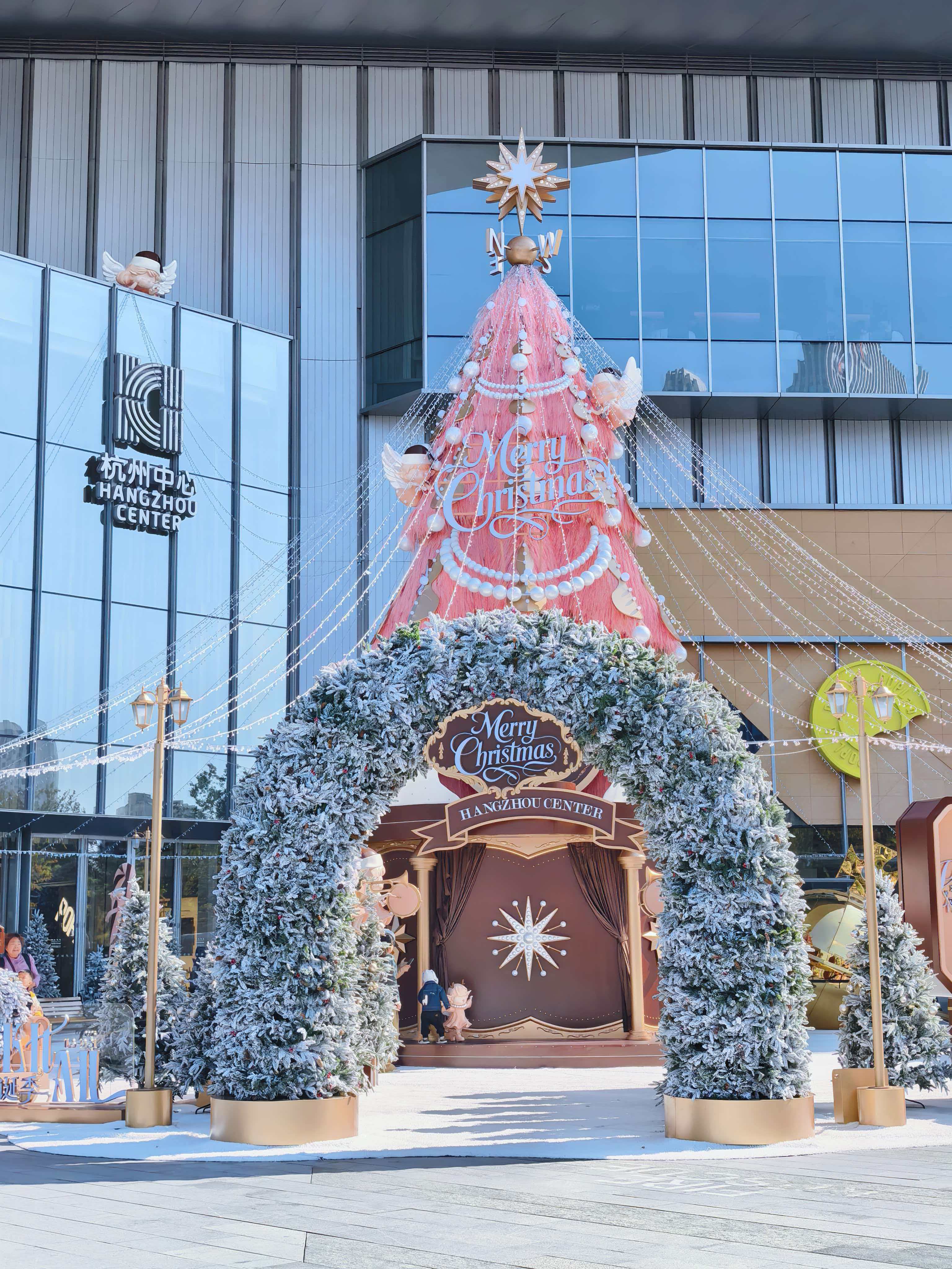 杭州中心的粉色圣诞树好会撩!雪松、星光、小天使,整个就是童话舞台布景,路过都忍不住转场蹦跶两下~