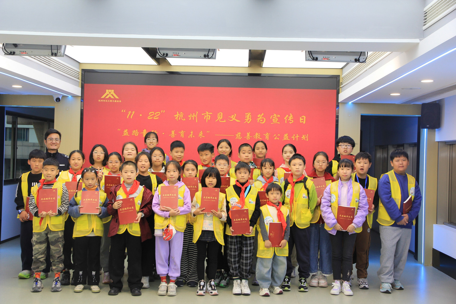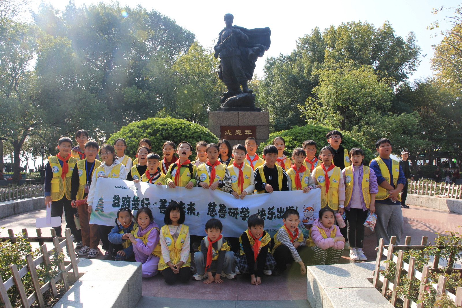 与湖“童”行 护卫杭城 今天,作为西湖小义警的我,参加了“益路童行·善育未来”慈善研学活动。 我们跟着民警叔叔在西湖边巡逻,进行文明劝导和宣传。有几个小朋友贸然踩进草坪,我们立马上前劝导;投喂鸽子区域,我们对混乱的人群进行了秩序的维持……看着大家井然有序地参观游玩,我的心中升起一股浓浓的自豪感。 随后我们来到义警发展中心,听民警叔叔介绍杭州见义勇为者和义警们的光辉事迹。徒手接住从高楼坠下孩子的最美妈妈吴菊萍;负伤后靠着坚强意志停稳车辆,保护了一车人安全的最美司机吴斌;12米高桥纵身跳水救人的外卖小哥彭清林…… 作为西湖小义警的我们,将从他们手中接过见义勇为、与爱同行的接力棒,传承杭铁头精神,用自己的力量去建设、维护美丽有爱的杭州! ——杭州公益小天使黄妤菲