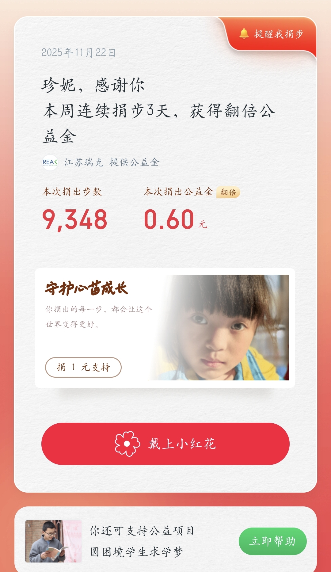行走的力量,守护新苗成长。今日捐步0.6元步。
