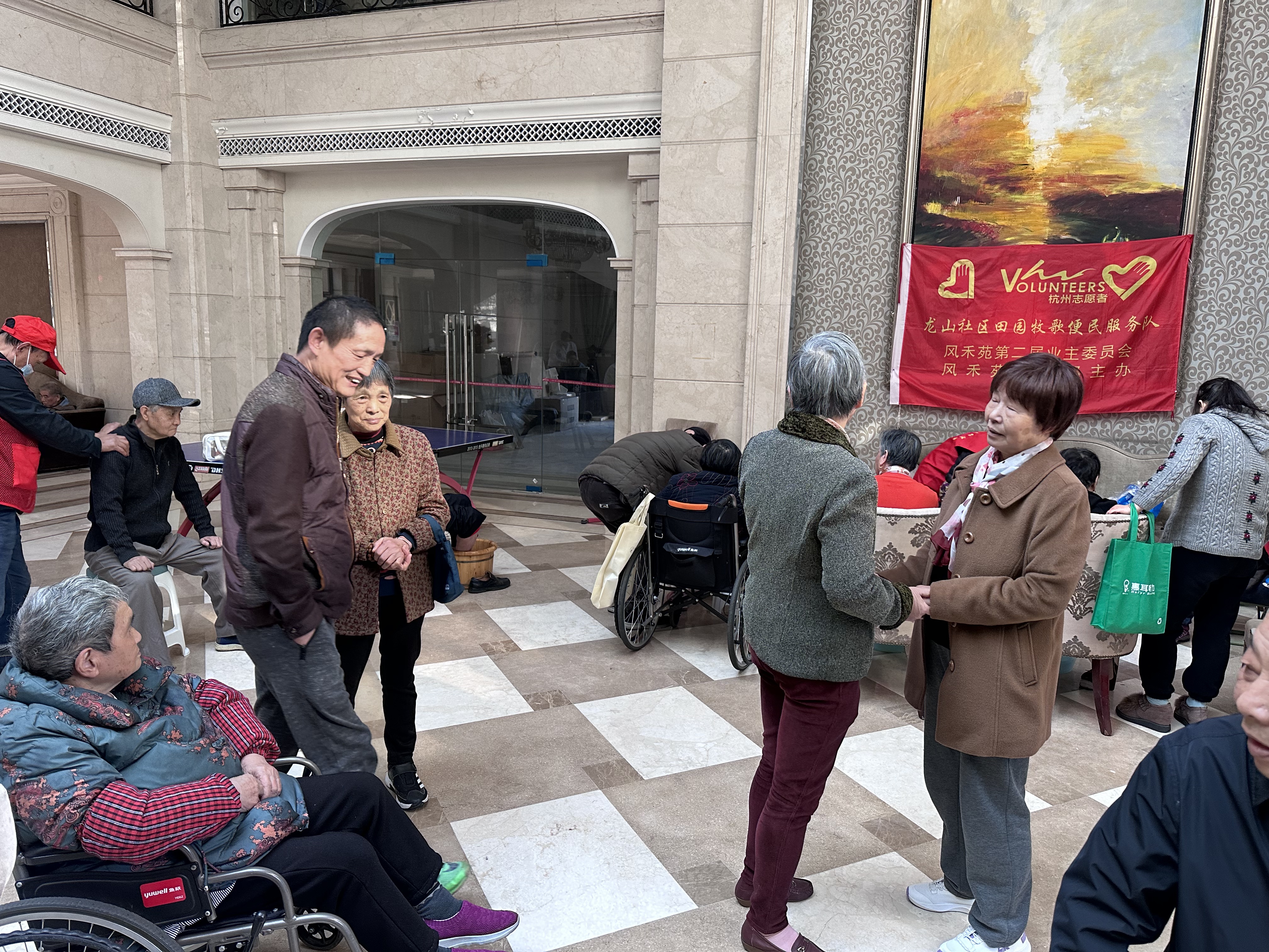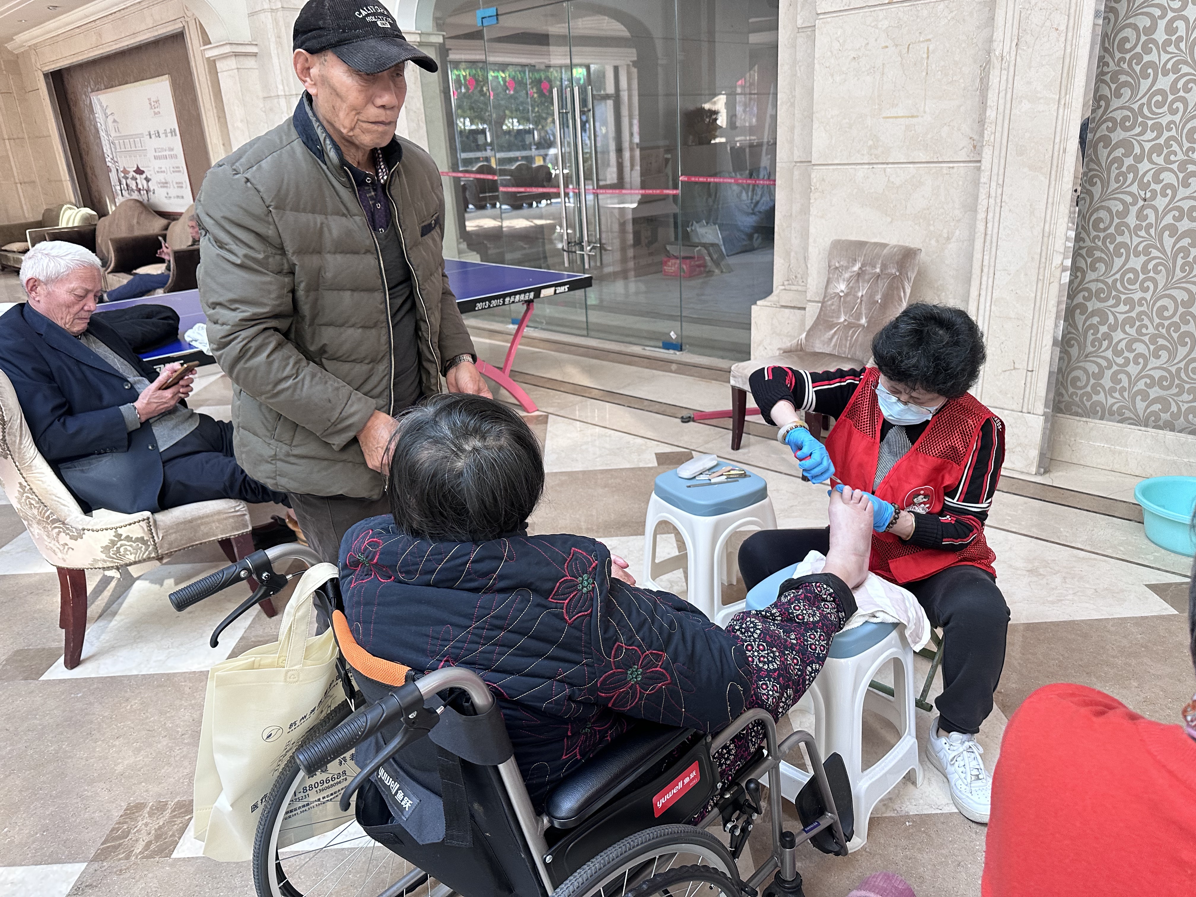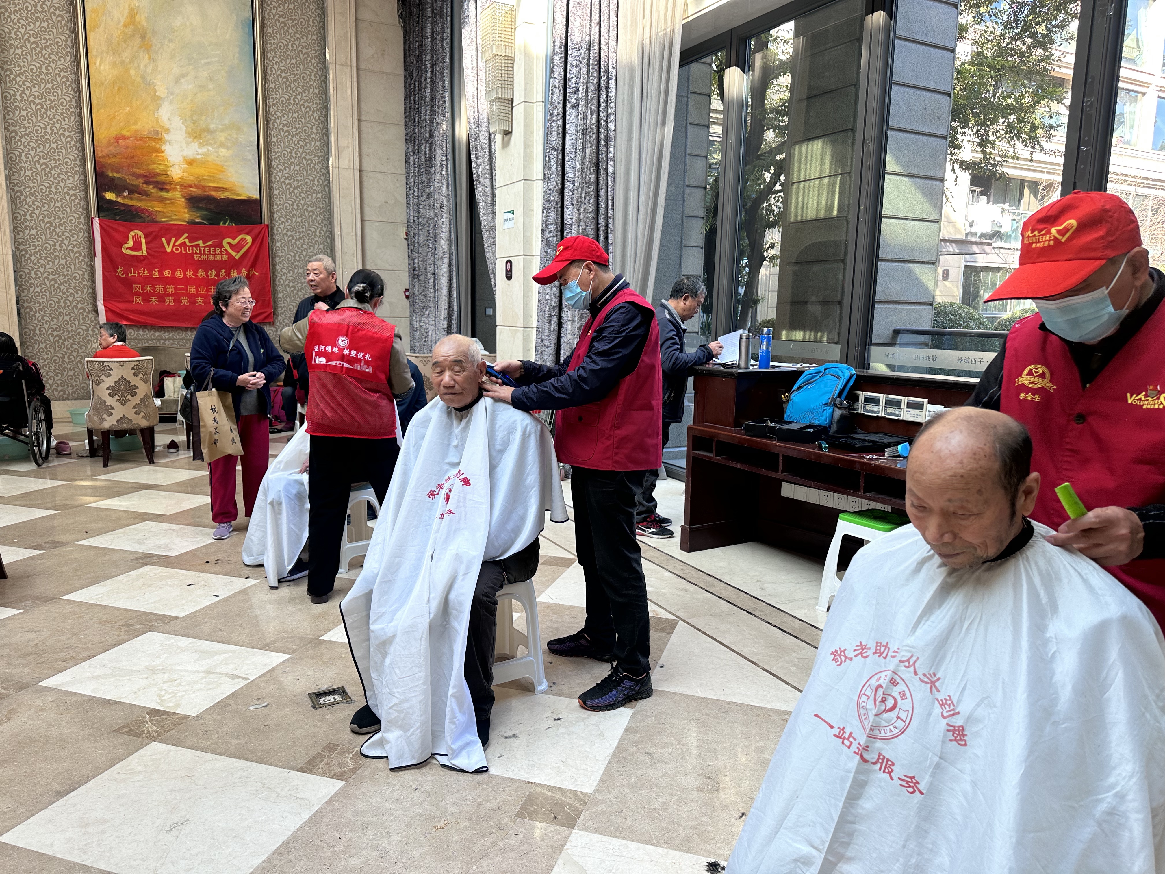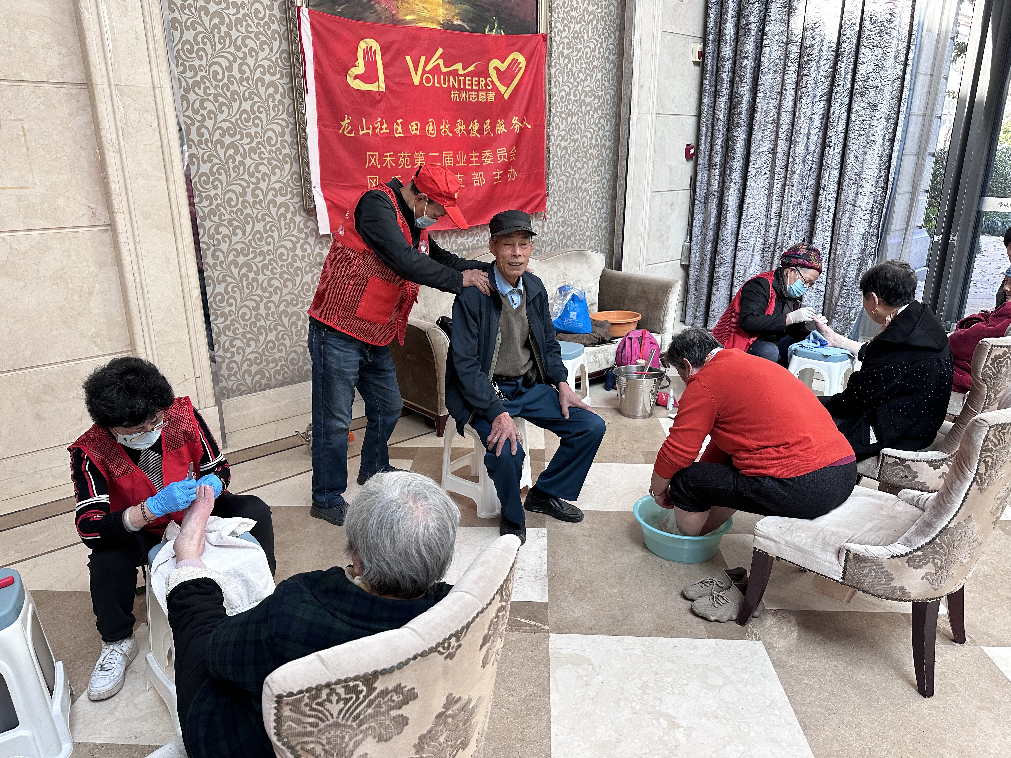 “先锋引领、助老助残”龙山社区风禾苑党员志愿者固定日联合活动报道 一、活动基本信息 • 活动主题:微寒清晨暖人心——银发族“从头到脚”暖心关怀公益活动 • 活动时间:11月23日下午13:00起 • 活动地点:龙山社区风禾苑会所 • 主办单位:半山街道龙山社区风禾苑支部、业委会、快乐不老族公益服务社党支部 • 服务对象:社区银发长者(含残疾老人) • 参与人员:党员志愿者王建接、李金生、吴陆萍及优秀志愿者马锦妹、徐罗萍、任根生、王秋泳 • 服务成果:累计为39位老人提供理发服务,9位老人享受养生推拿,9位老人接受修脚服务,19位老人完成血压/血糖检测,为居民磨制刀具21把,服务覆盖近百位社区长者 二、活动核心内容 活动以“先锋引领、助老助残”为宗旨,精准对接社区银发族实际需求,设置理发、养生推拿、修脚、血压测量、血糖测量、磨刀6大公益服务摊位。党员志愿者与公益志愿者携手驻点,为社区长者提供“零距离、全方位”的便民服务,涵盖日常护理、健康监测、生活便利等多个维度,切实解决老人“急难愁盼”问题。 三、活动成效与意义 党员志愿者充分发挥先锋模范作用,以娴熟专业的服务技能、细致入微的人文关怀,在微寒时节为社区长者(尤其是残疾老人)送去温暖与关爱。活动累计服务近百位老人,有效满足了社区银发族日常护理与健康管理的核心需求,不仅获得了老人们的一致赞誉,更切实增强了社区长者的幸福感、获得感与归属感,进一步凝聚了党建引领下的社区公益力量,推动形成“尊老、敬老、助老”的良好社区风尚。