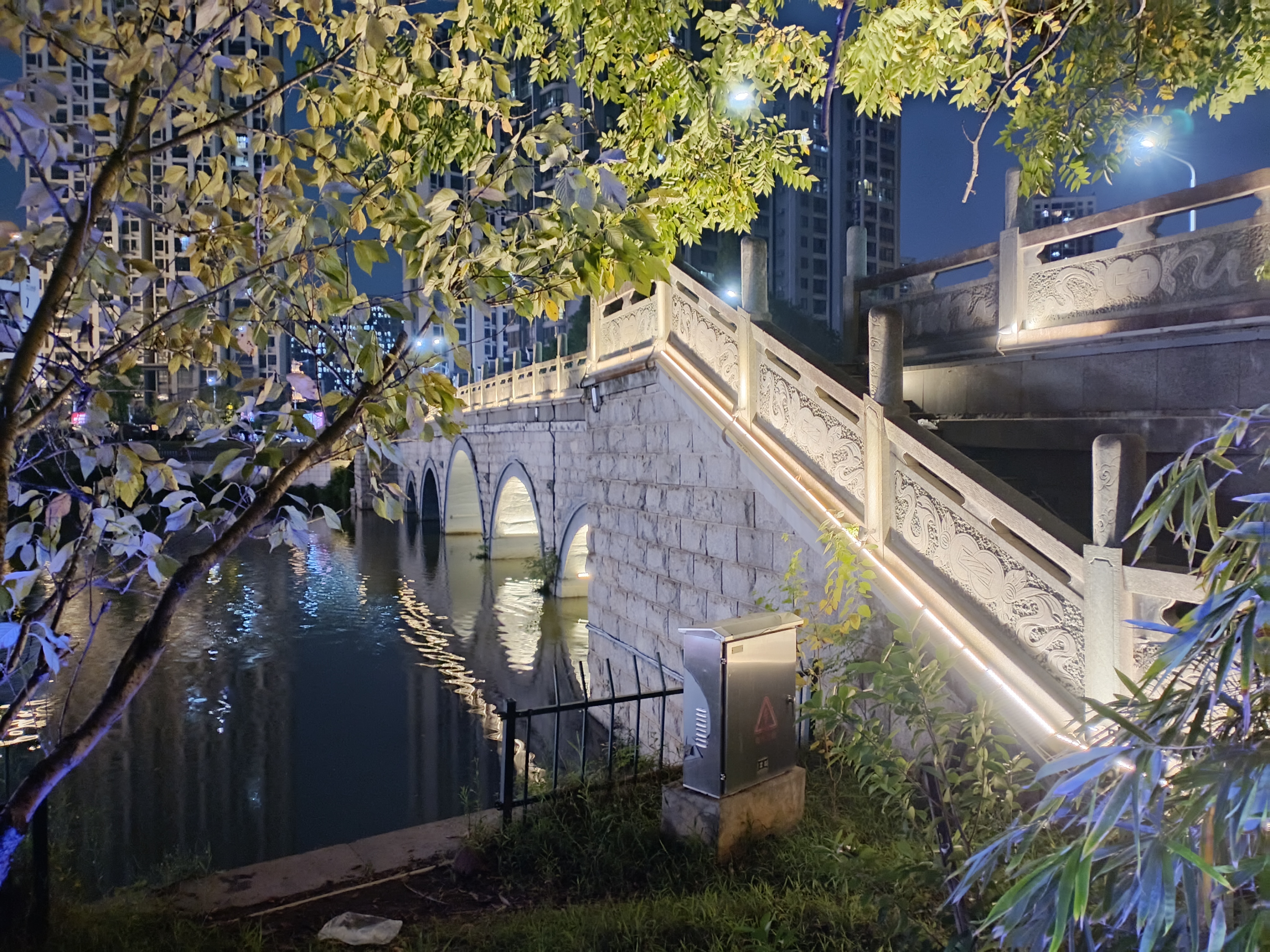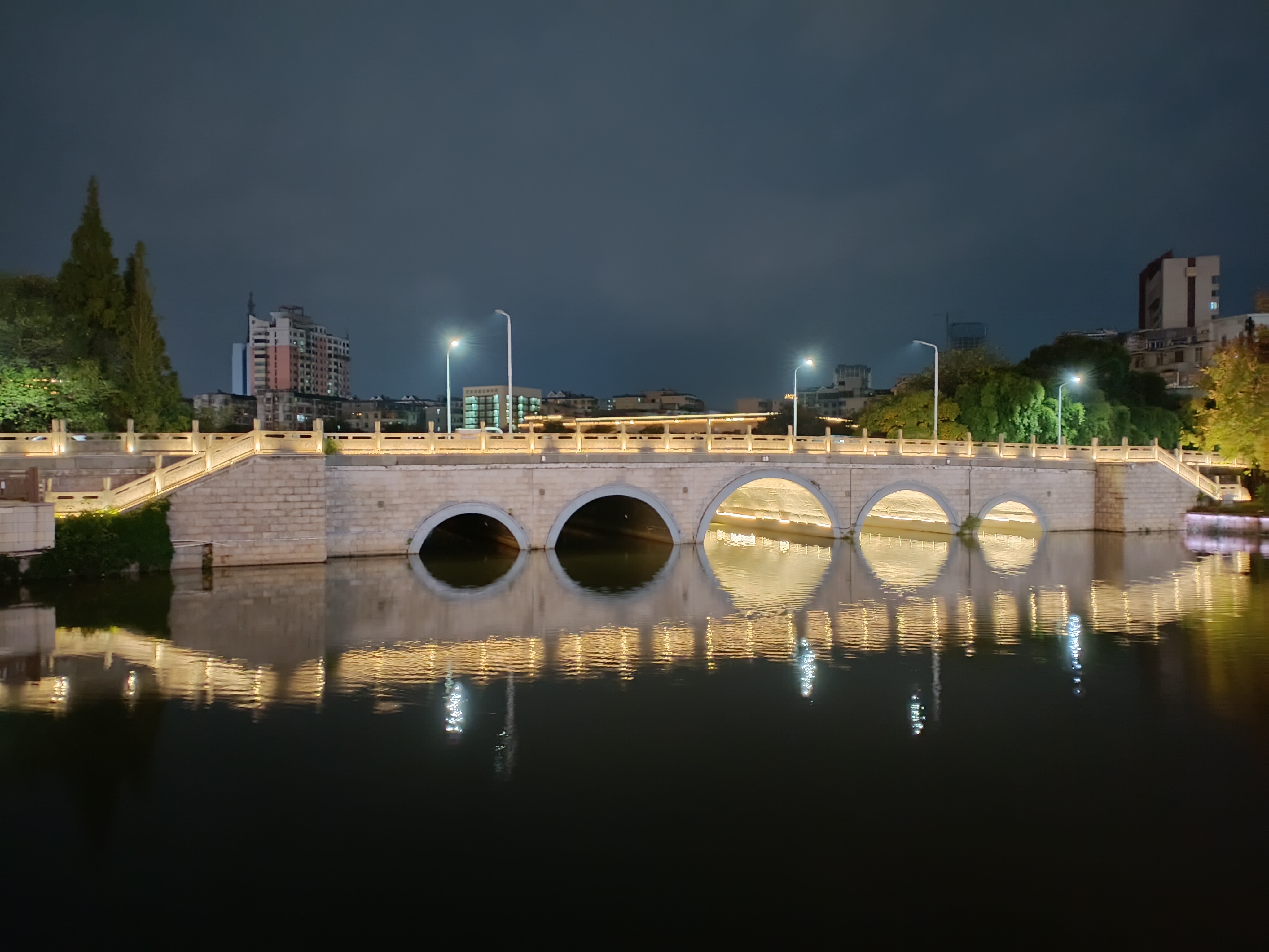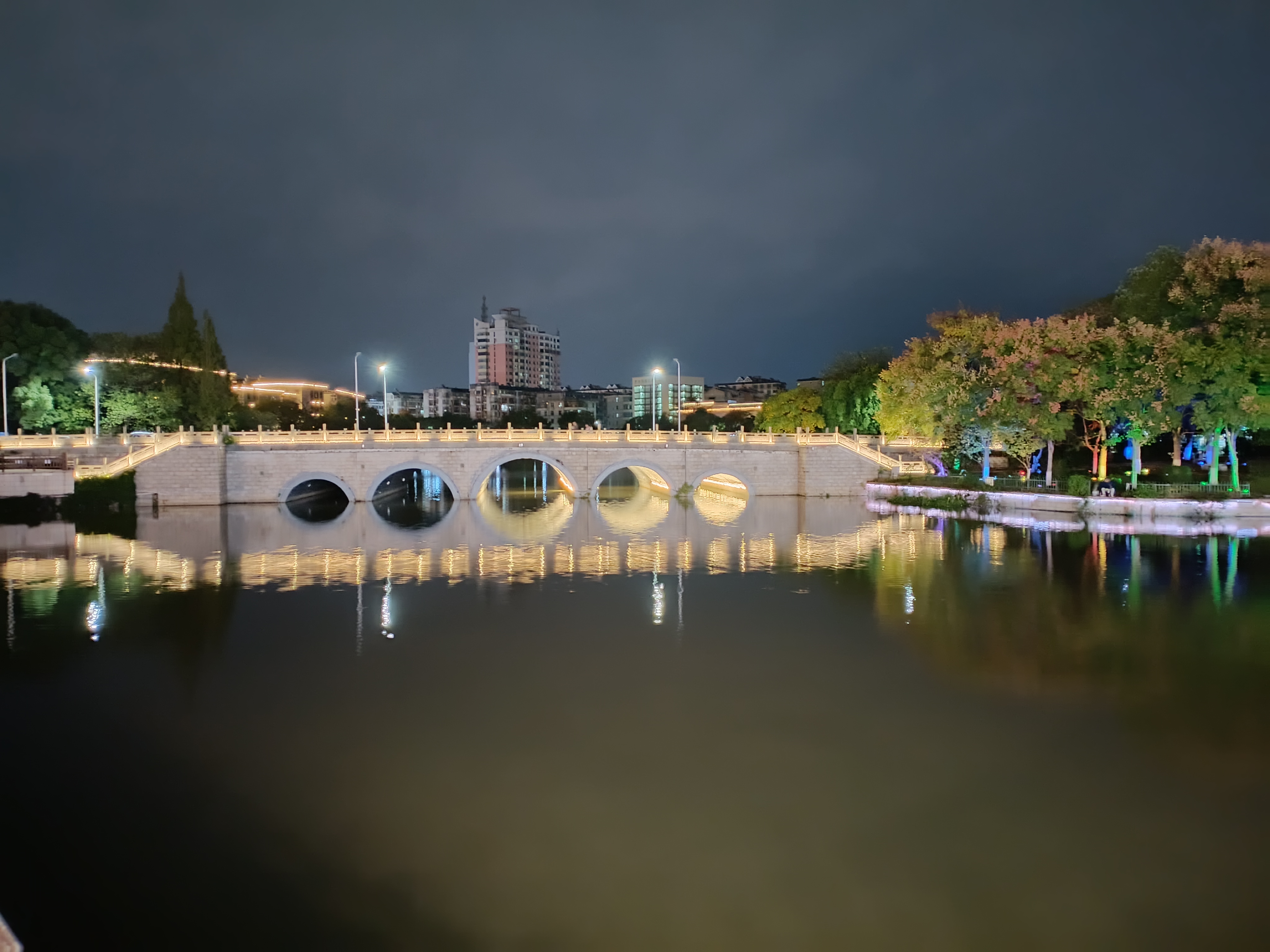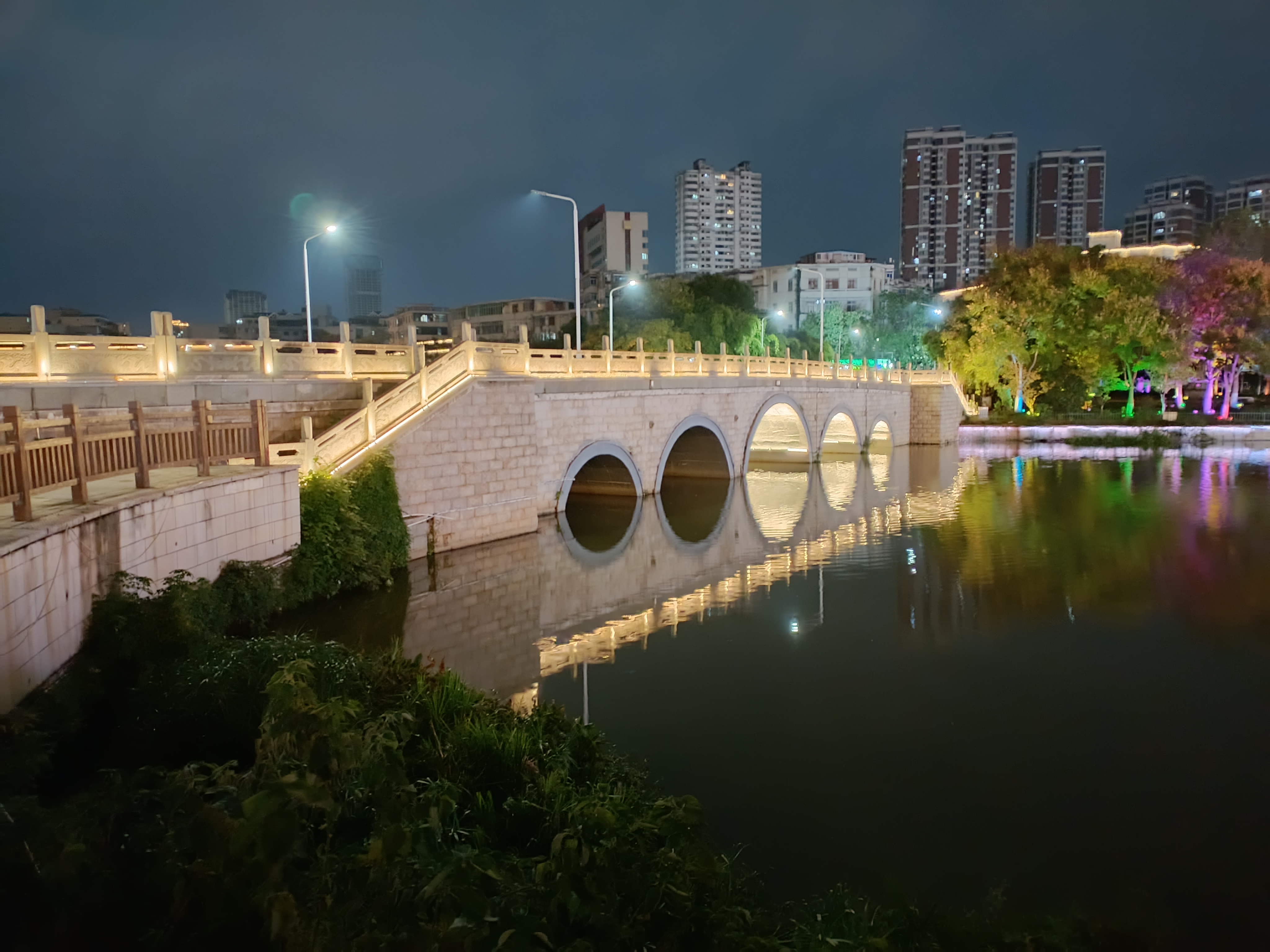吉安的桥:后河“半苏桥”夜景风光欣赏 吉安后河“半苏桥”位于吉州区永叔街道,是连接上田侯路和下田侯路的纽带,为后河九桥第四桥。据《吉安县志》记载为宋元丰年间(1078—1086年)建,北宋文豪苏轼曾来此游览,见其涝水环流,芰荷秀发,叹曰“此地风光半苏州”,后人故取名“半苏桥”。