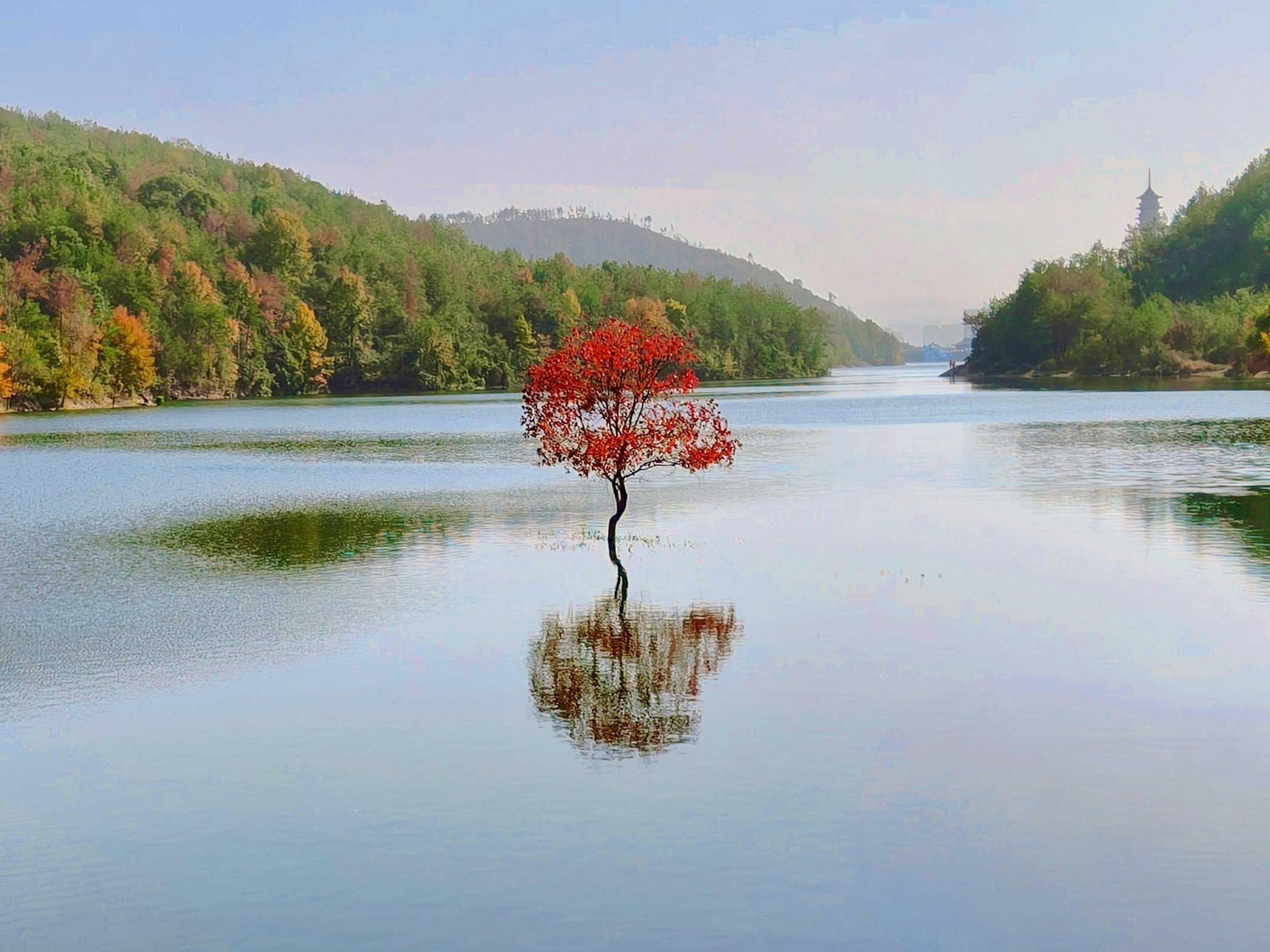 「 一棵树 」 地点:浪坑水库 水库里的一棵乌桕树,因为上周的一个视频,火出圈,这两天慕名前往的人很多,我自己也是其中一个😂 今天趁午休时间,跟着哥哥他们的户外小分队一起前往。因为距离不远,去一趟也算方便。我们到目的地时,已有好多航拍的人在了,后面又陆陆续续来了好多拍照📸的人。 因为要赶回来上班,相机没带,就手机拍了几张,也没呆太久就回了,但这棵新晋网红树,也算是来看过啦😝