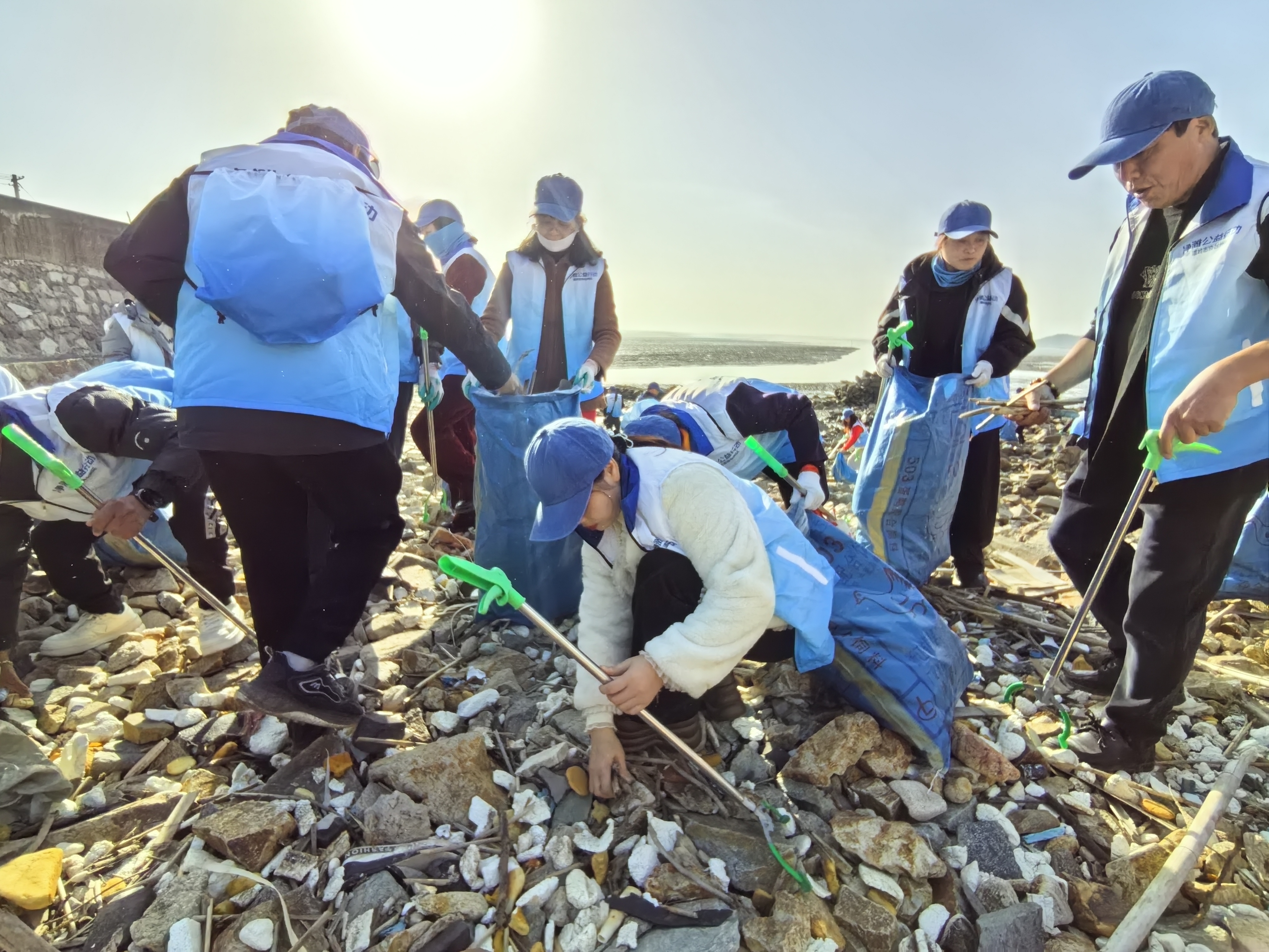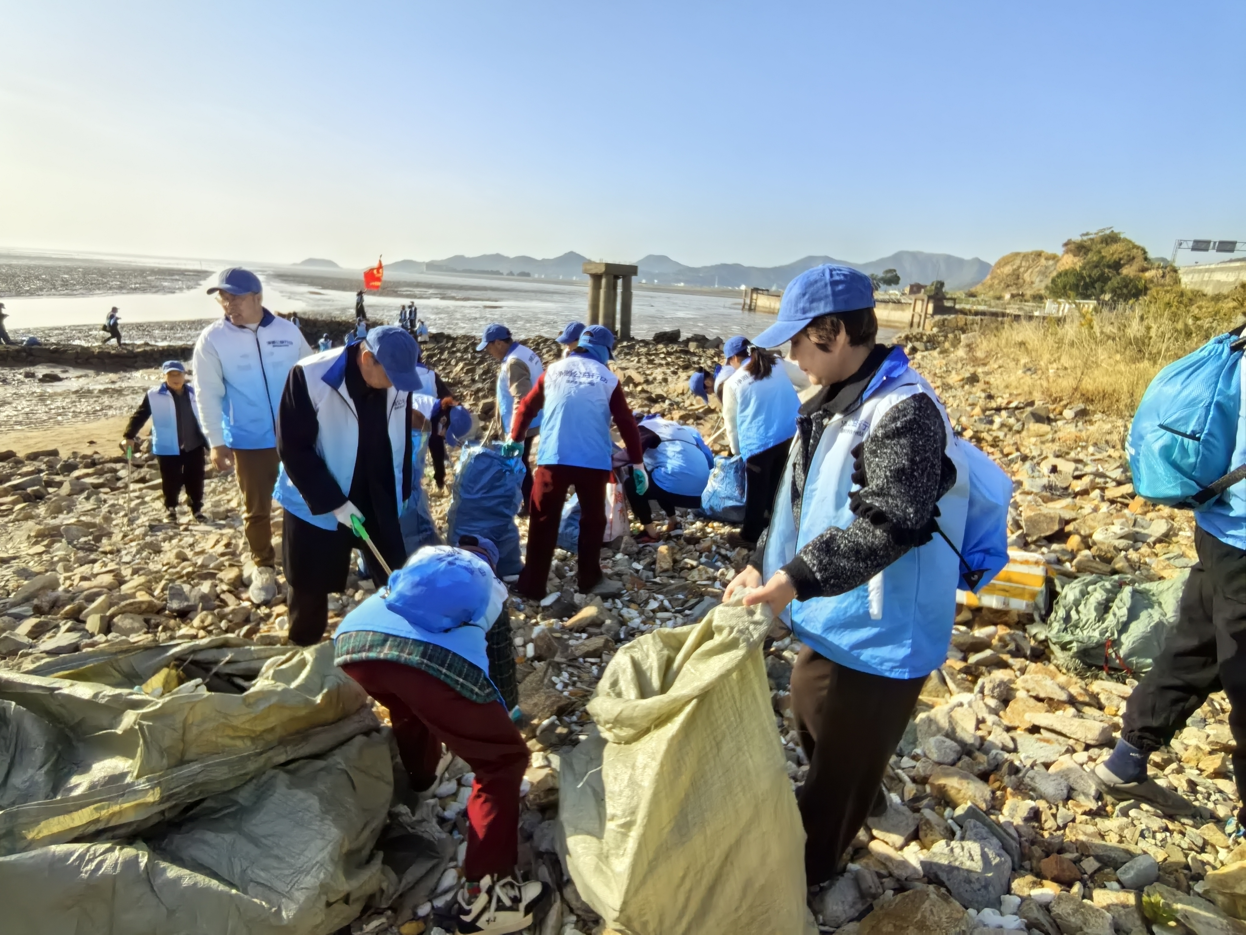 不忘初心/守护蔚蓝 初冬的晨光温柔地洒在石桥下山头的滩涂上,2025年11月27日,一个平凡的日子,近五十名的朝阳志愿者在温岭市青志协的领导组织下,他们以行动为笔,爱心为墨,在此同绘生态画卷,共同期许一个绿色的未来。 上午8点30分钟,志愿者齐聚海滩,又一场由蚂蚁森林基金会和北京市企业家环保基金会(SEE基金会)发起,2025年温岭市青年志愿者协会承接其在温岭的净滩公益行动开始了。 活动中,志愿者在滩涂上、石缝间捡拾各种海漂垃圾。看:他们左手提着垃圾袋,右手握着垃圾钳,熟练地俯身夹起滩涂上的塑料瓶、塑料泡沫、破旧鱼网、玻璃碎及各种易拉鑵、毛竹、木板等,对不能用钳夹的碎细泡沫,志愿者徒手捡拾,力求海滩完美。 经过上午的辛勤劳动,每个志愿者都是“战果累累”,滩涂变得洁净多了。活动最后,在赵鹏程老师的指导下,进行垃圾分类,赵老师深入浅出的讲解,让我们进一步理解以前叫〈可回收垃圾〉,现在叫可回收物。一次性的电池叫其它垃圾,而反复可以冲电的报废电池叫有害垃圾。 此次活动不仅改善了海洋环境,更主要的是宣传引导广大市民爱护环境,还大海以洁净。我们朝阳在青志协及各级领导的指导与支持下,持续常态化组织志愿者开展净滩护滩志愿服务活动,共同守护我们大家的碧海蓝天贡献力量。