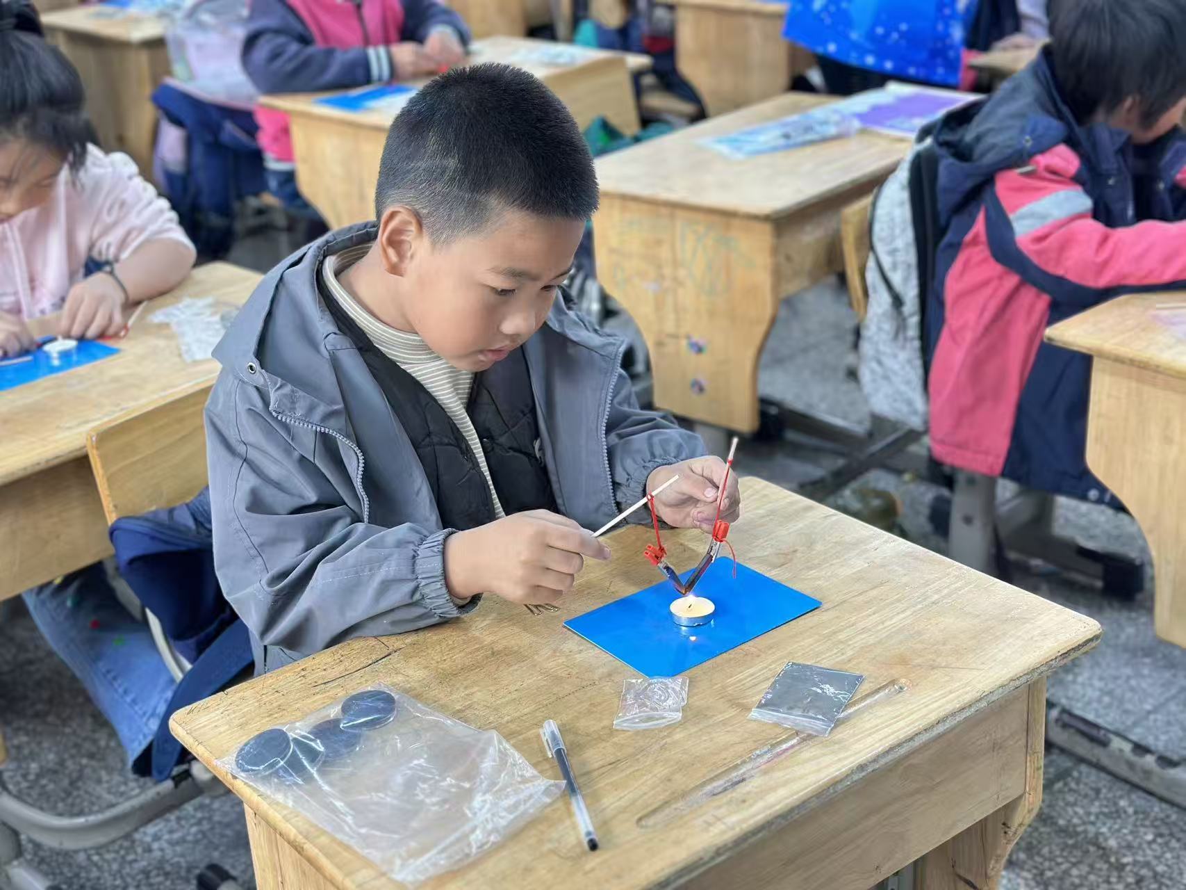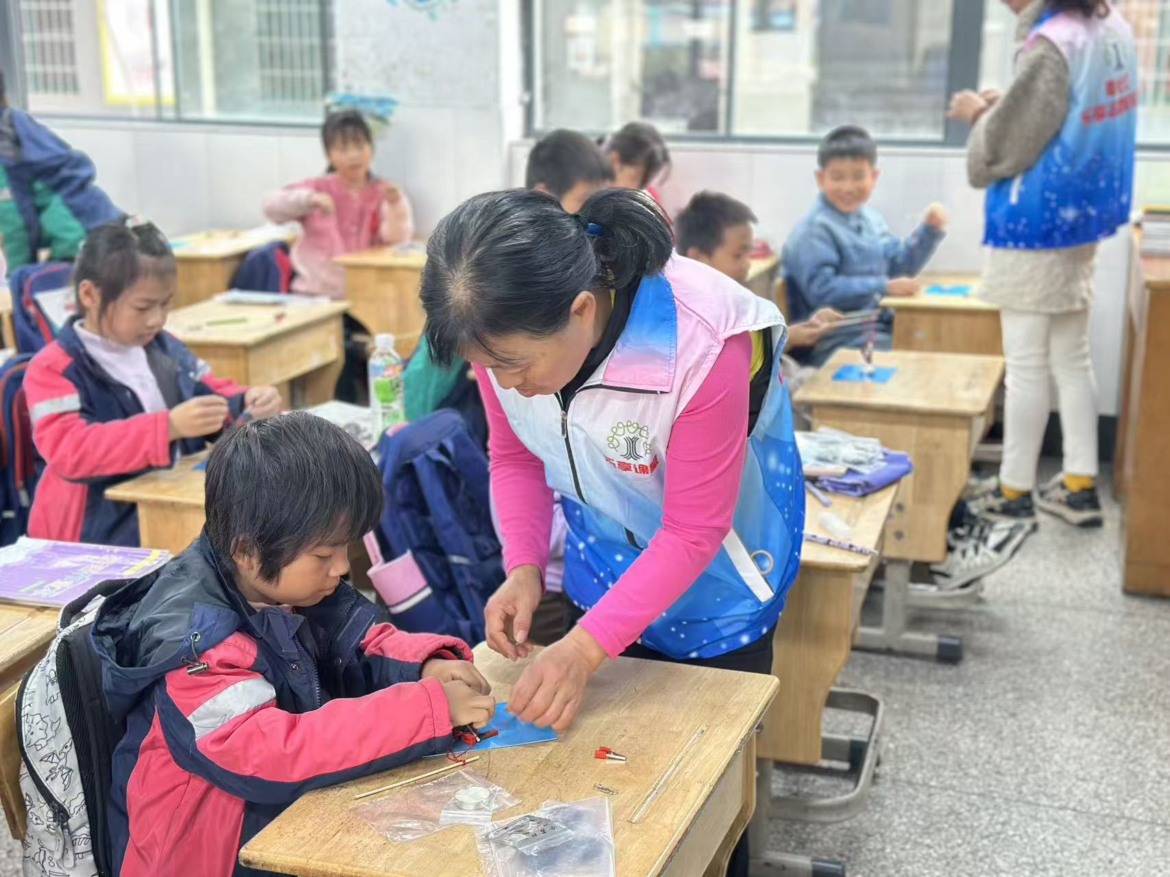 “燕雏栖奉 逐梦飞翔”——"乐享课堂"送教活动走进奉化成龙学校 马宜奋苏海盛 11月24日,冬日暖阳洒进奉化成龙学校的操场,伴随着一声声“老师好”,由“燕雏栖奉 逐梦飞翔”——新奉化人子女助教项目组织的“乐享课堂”送教活动在这里如期开讲。来自高校、科普机构的志愿者为二年级至四年级的孩子们带来了三场别开生面的科技实验课,让这所外来务工子女集中的学校瞬间化身“小小科学院”。 火山“喷发”点燃好奇 “三、二、一!”随着孩子们齐声倒数,一只用黏土捏成的“火山”瞬间喷出红色泡沫“岩浆”,二年级教室爆发出阵阵惊呼。志愿者老师用生活中常见的小苏打和食用醋,模拟火山喷发的高压原理,让孩子们在“玩”中理解化学反应与能量释放。“原来可乐摇晃后喷出,和火山爆发是一个道理!”学生小李兴奋地说。 磁铁“发烧”会失忆 三年级的课堂同样热闹。志愿者将一块磁铁加热,原本能吸起回形针的磁铁瞬间“失灵”,待冷却后又恢复磁性。“这就是居里点!”老师用通俗易懂的语言解释温度对磁畴结构的影响。孩子们围着实验台,目不转睛地观察磁铁“失去记忆”又“找回记忆”的全过程。“我第一次知道,温度也能让磁铁‘生病’!”学生小王笑着说。 写字机器人“妙笔生花” 四年级的课桌上,齿轮、连杆、彩笔散落其间,孩子们正组装属于自己的“写字机器人”。转动摇柄,机器人便循着轨迹写下“科学”二字。“就像给机器人‘画’了条走路的地图,它就能照着我的想法写字。”学生小陈展示着自己的作品。短短40分钟,孩子们不仅完成了组装,还自发比赛谁的机器人写得最工整,课堂秒变“创意工坊”。 一堂课埋下科学种子 “科技实验的神奇和趣味,能在孩子心里埋下自主探究的种子。”项目负责人介绍,“燕雏栖奉 逐梦飞翔”项目自2023年启动以来,已持续为奉化区2所外来务工子女学校送教60余场,累计受益学生超3000人次。“我们希望通过低成本、可复制的小实验,把抽象的科学原理变成可看、可摸、可带回家的‘玩具’,让科学不再遥远。” 送教活动把高校、科普机构资源请进来,有效弥补了学校在科学教育师资、器材方面的短板,也为孩子们打开了一扇看向未来的窗。” 让梦想“飞”出大山 下课铃响,孩子们仍围着志愿者不愿散去。“老师,下周你们还来吗?”“我回家要让爸爸再给我买个小电机!”一双双高举的小手、一张张灿烂的笑脸,定格成冬日里最温暖的画面。正如项目口号“燕雏栖奉 逐梦飞翔”所寓意的——愿这些“小燕子”在奉化这片第二故乡振翅蓄力,向着科学、向着未来,越飞越高。 据悉,下一阶段,“乐享课堂”还将把“AI小侦探”“水火箭”等主题实验送进更多新奉化人子女学校,持续为“双减”背景下的科学教育做“加法”。