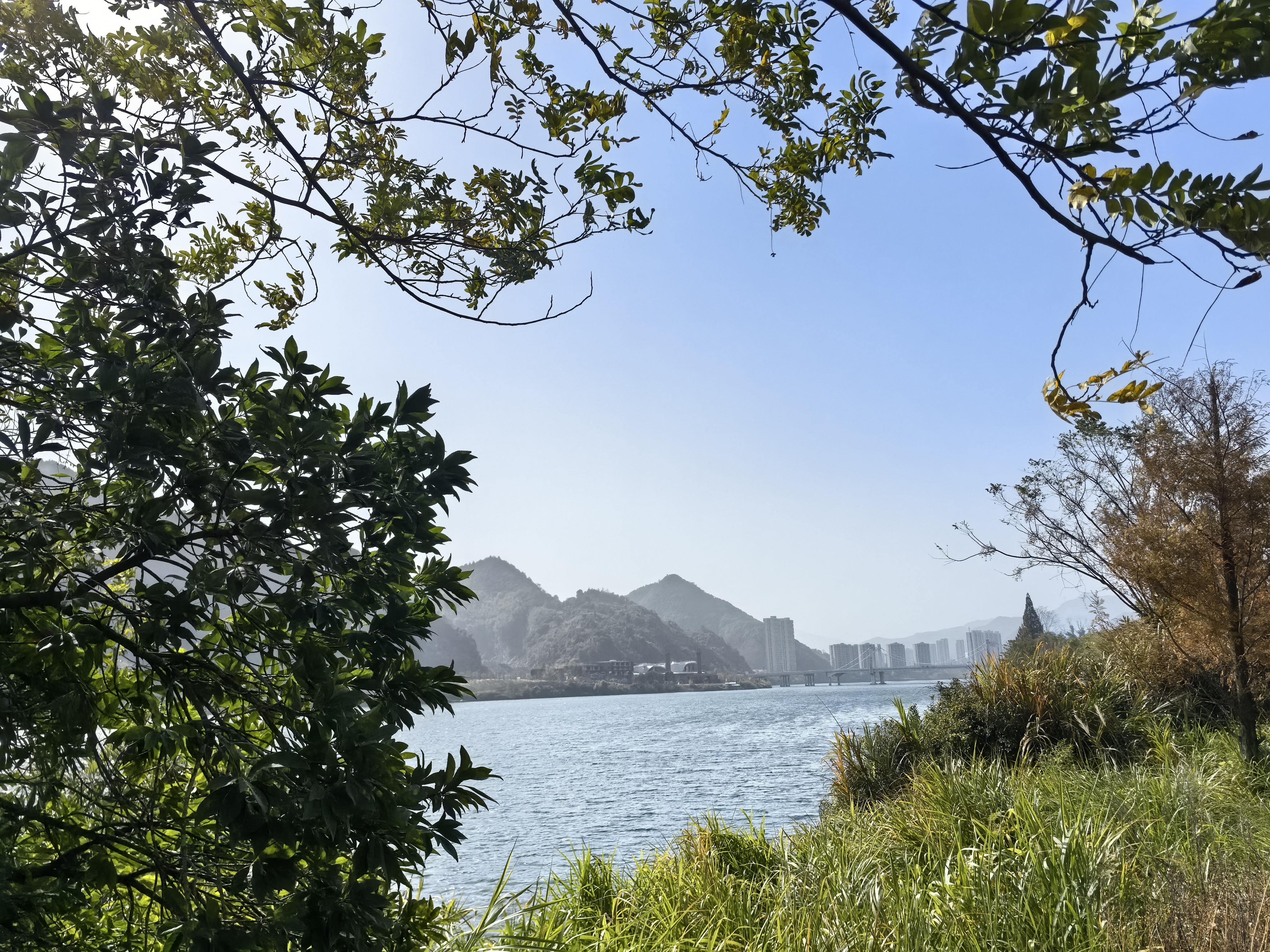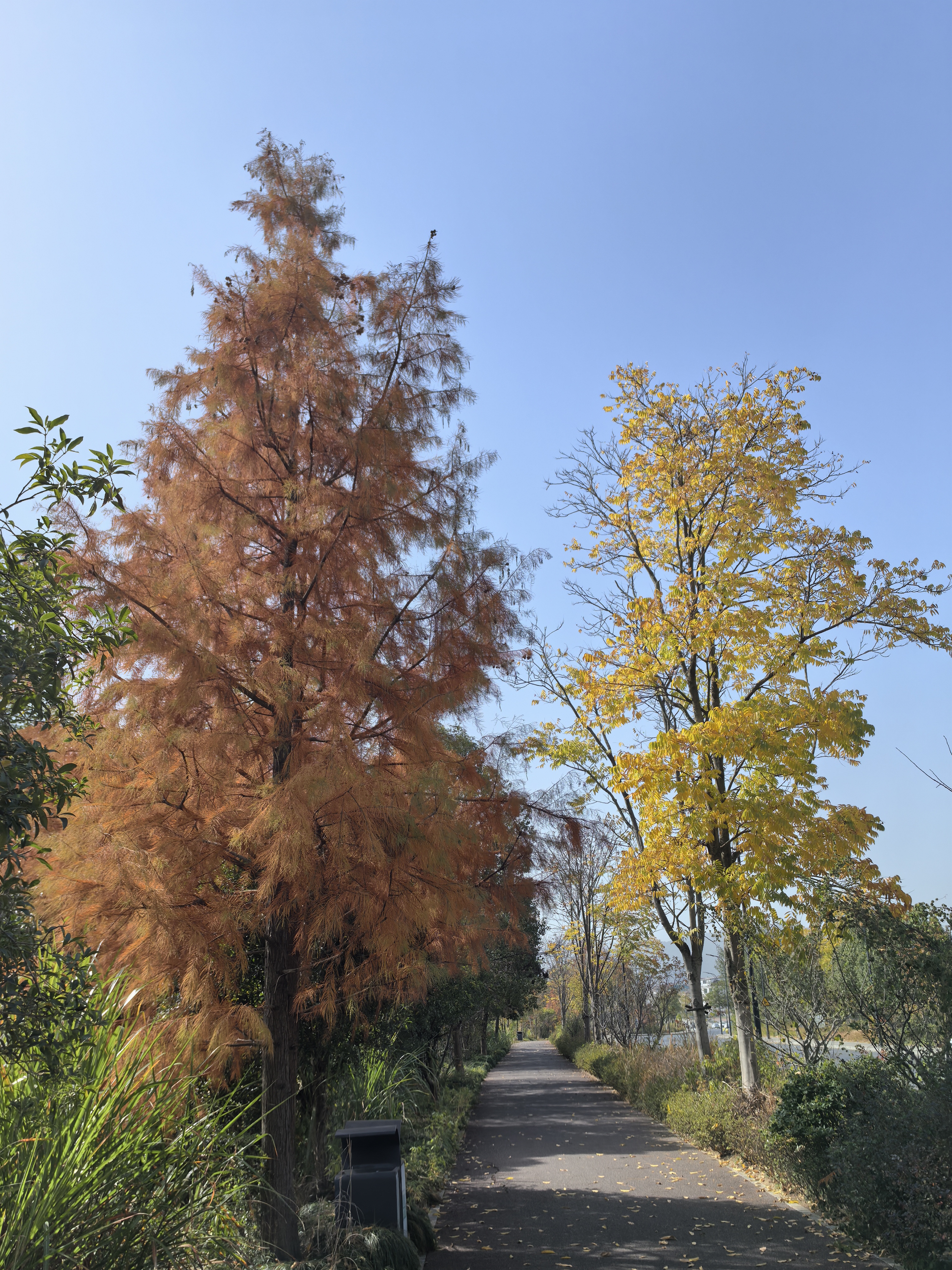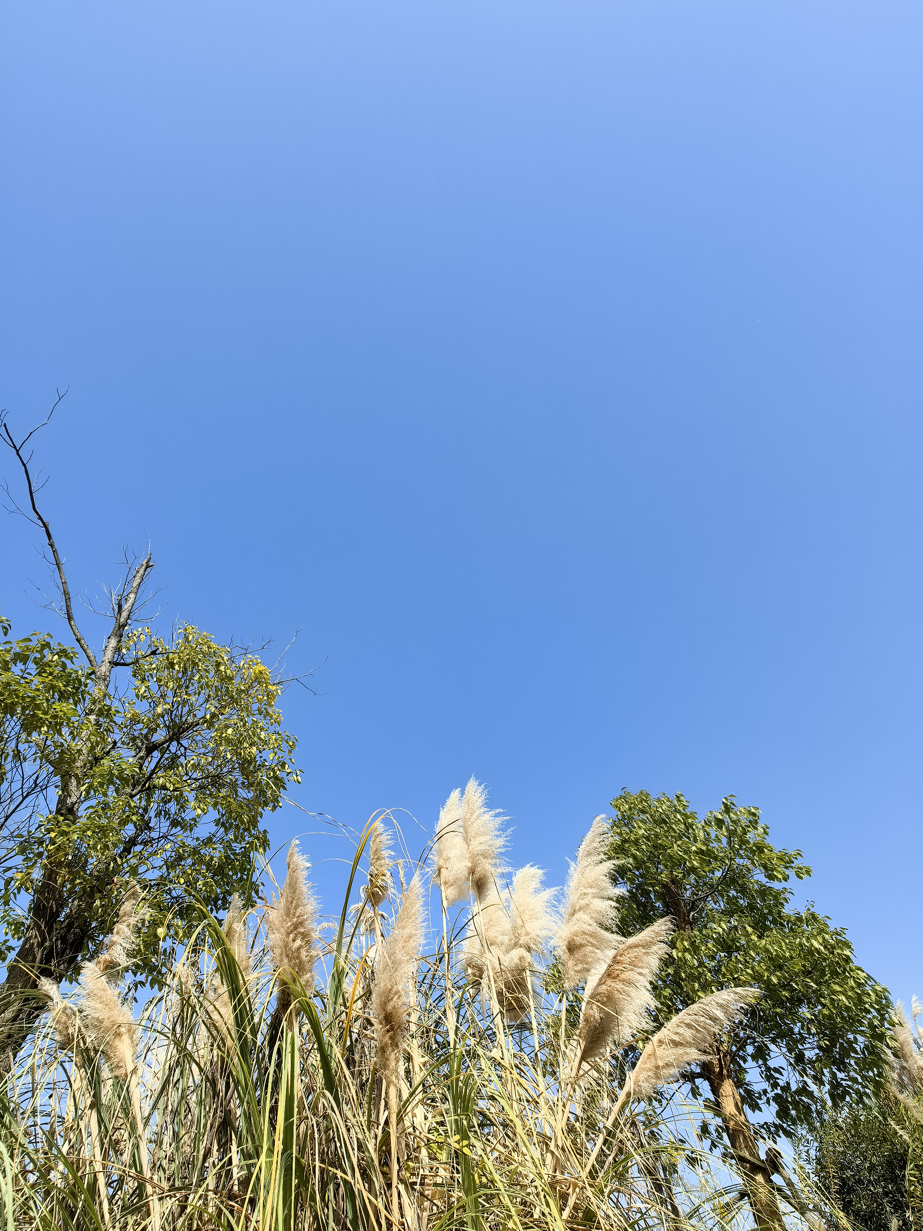 秋日晴光里,桥影斜织,粉黛与红叶共舞。木栈道蜿蜒,芦苇轻摇,都市边缘的自然诗行,在水岸间静静铺展。