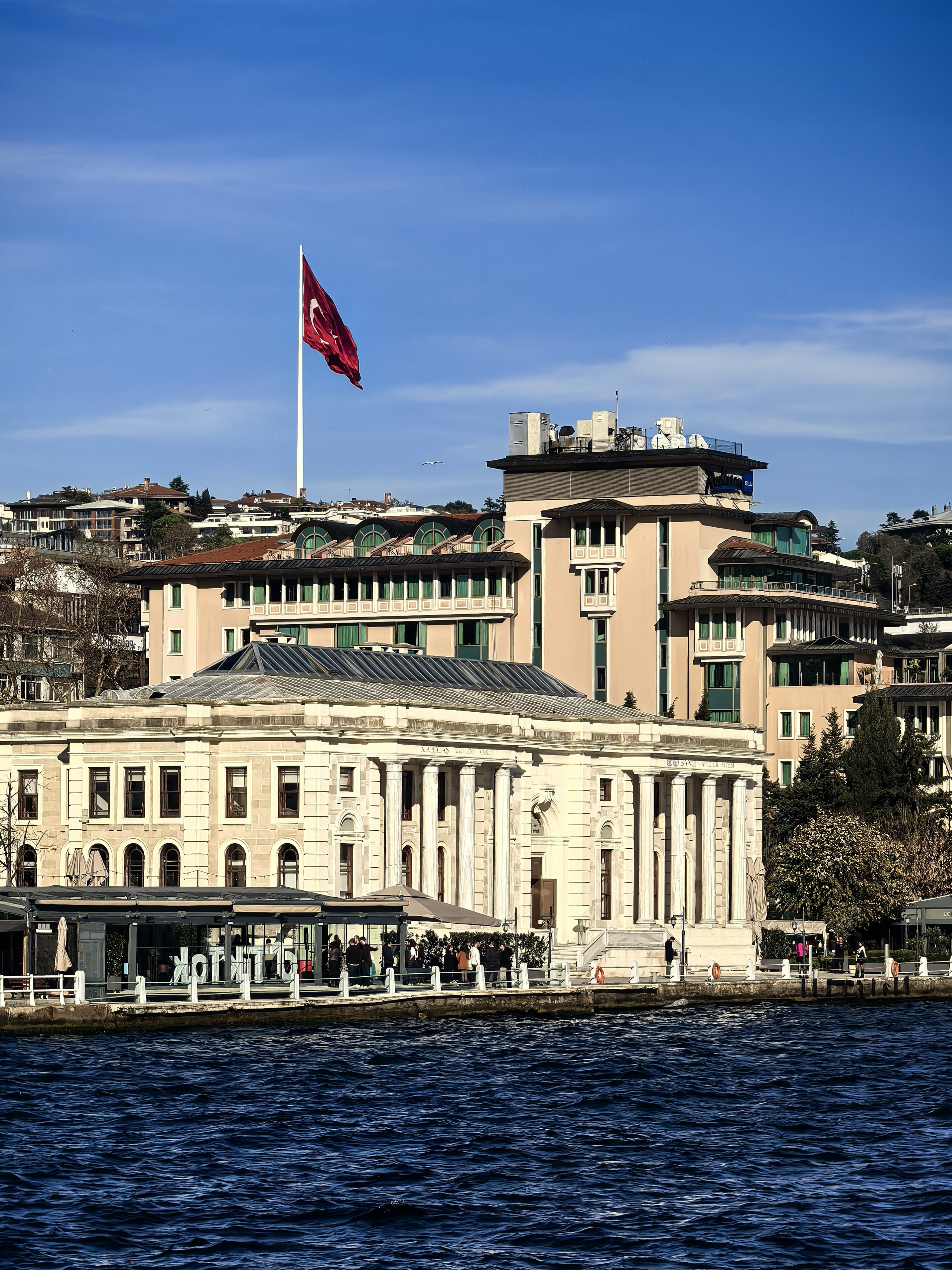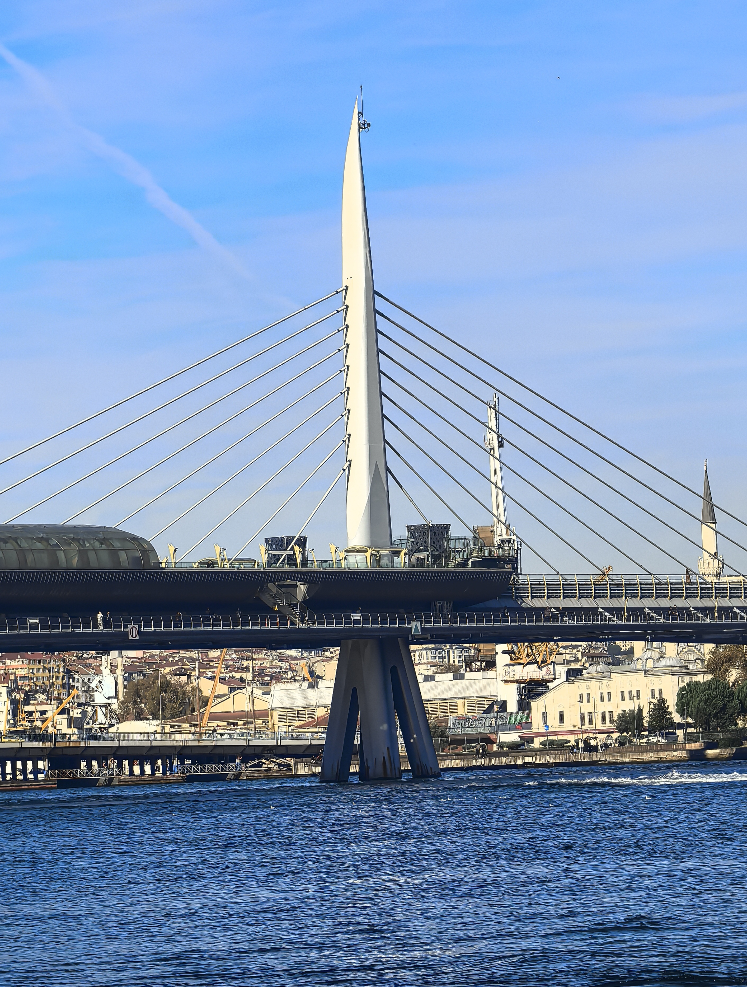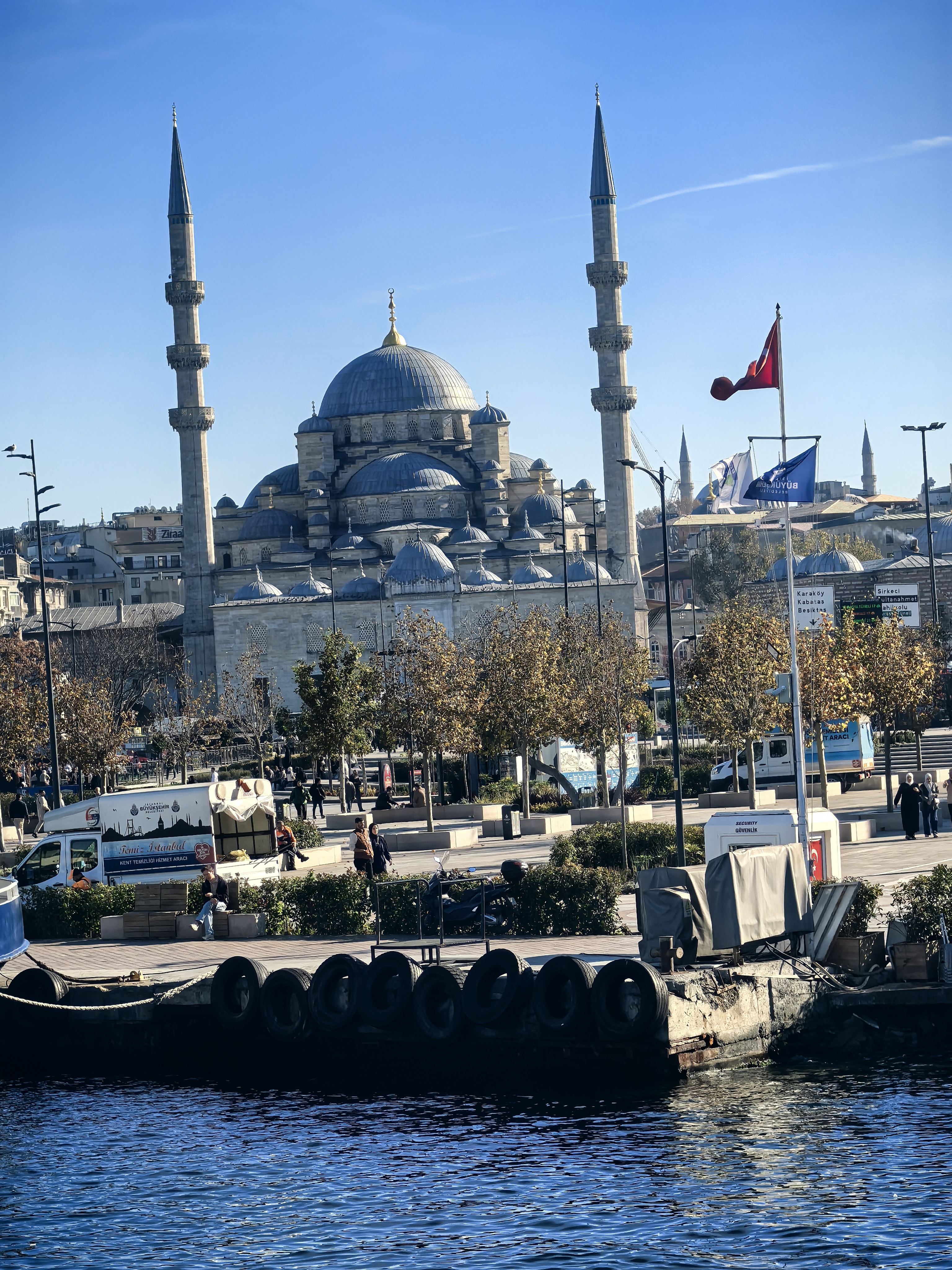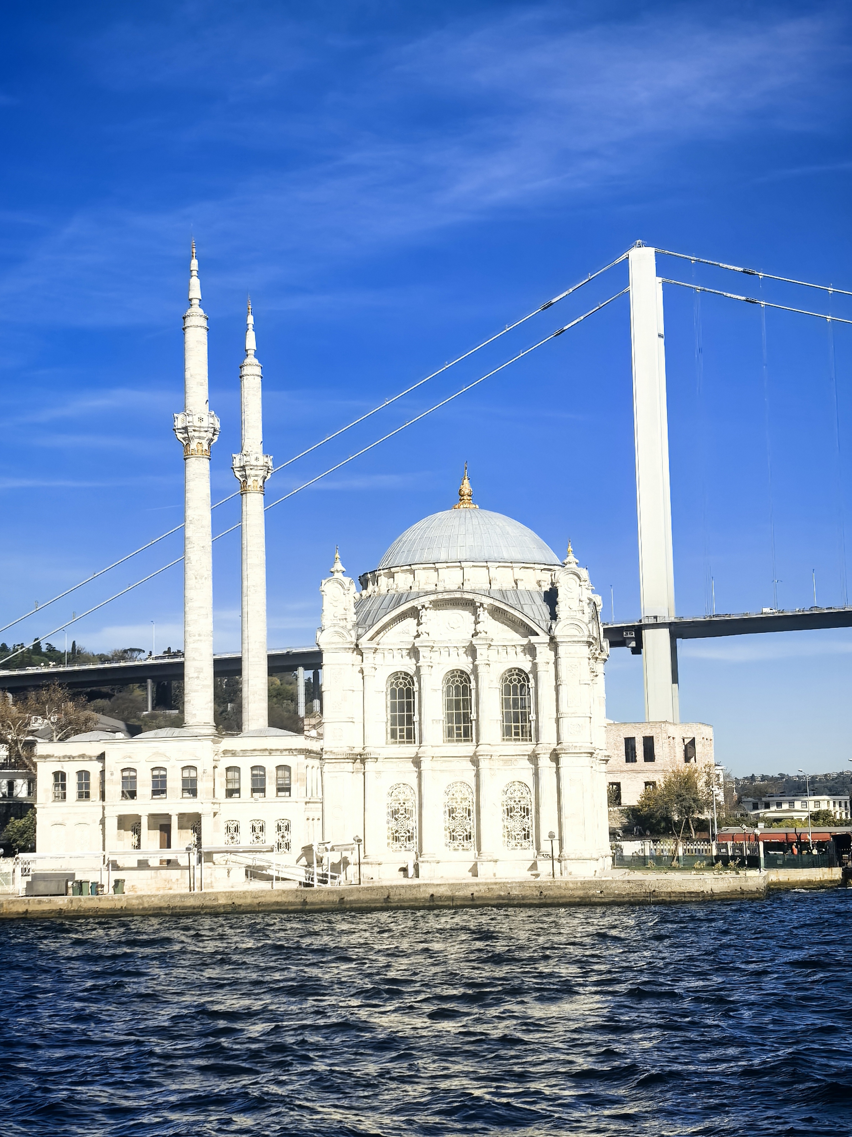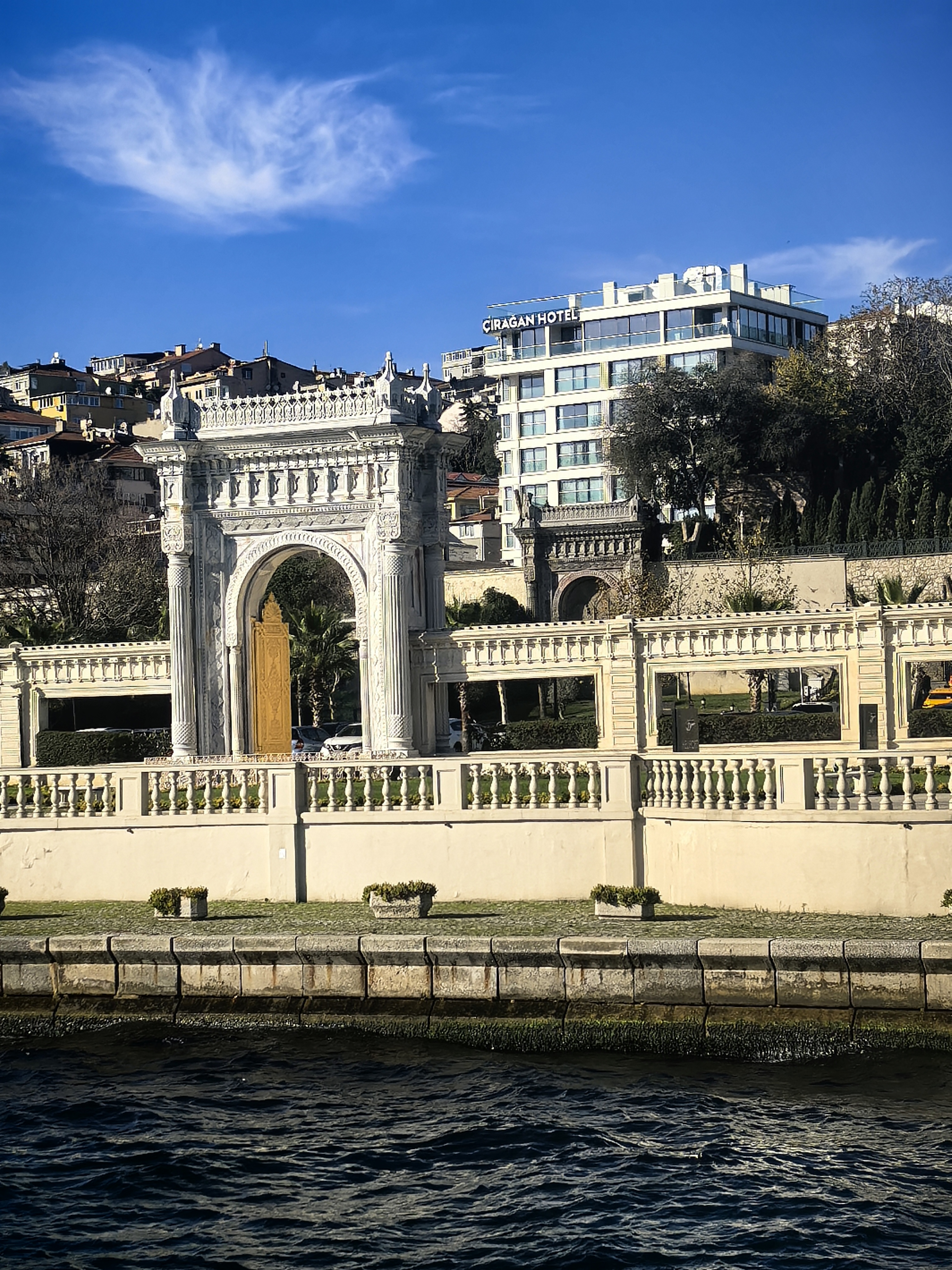 游览博斯普鲁斯海峡是来之前非常期待的事。很庆幸,我们这个小团经过当地导游一番疏通后,得以包游船尽情游览。 两层的游船缓缓划破碧蓝的海水,阳光洒在浪花上,闪烁着金色的光芒。横跨欧亚的大桥如钢铁巨龙飞越东西,历史的低语便如海风拂面而来。 海峡是古代文明的十字路口,曾连接拜占庭与罗马的贸易命脉。君士坦丁大帝在此筑起帝国的壁垒,奥斯曼的苏丹们扬帆征服,将伊斯坦布尔化作东西方交融的熔炉。残存的岸边堡垒曾经驻扎着守护拜占庭的哨兵,见证了1453年奥斯曼的铁蹄踏破君士坦丁堡的悲壮。 前方那片悬崖,昔日苏莱曼大帝的舰队曾在这里集结,向着欧洲扩张。海鸥在蔚蓝天穹盘旋,似乎也追忆着历史的回音。 我们虽在游弋中,却仿佛穿梭于时空隧道,从希波的竞技场到帝国的沉浮,每一片浪花都浸润着千年的铁血