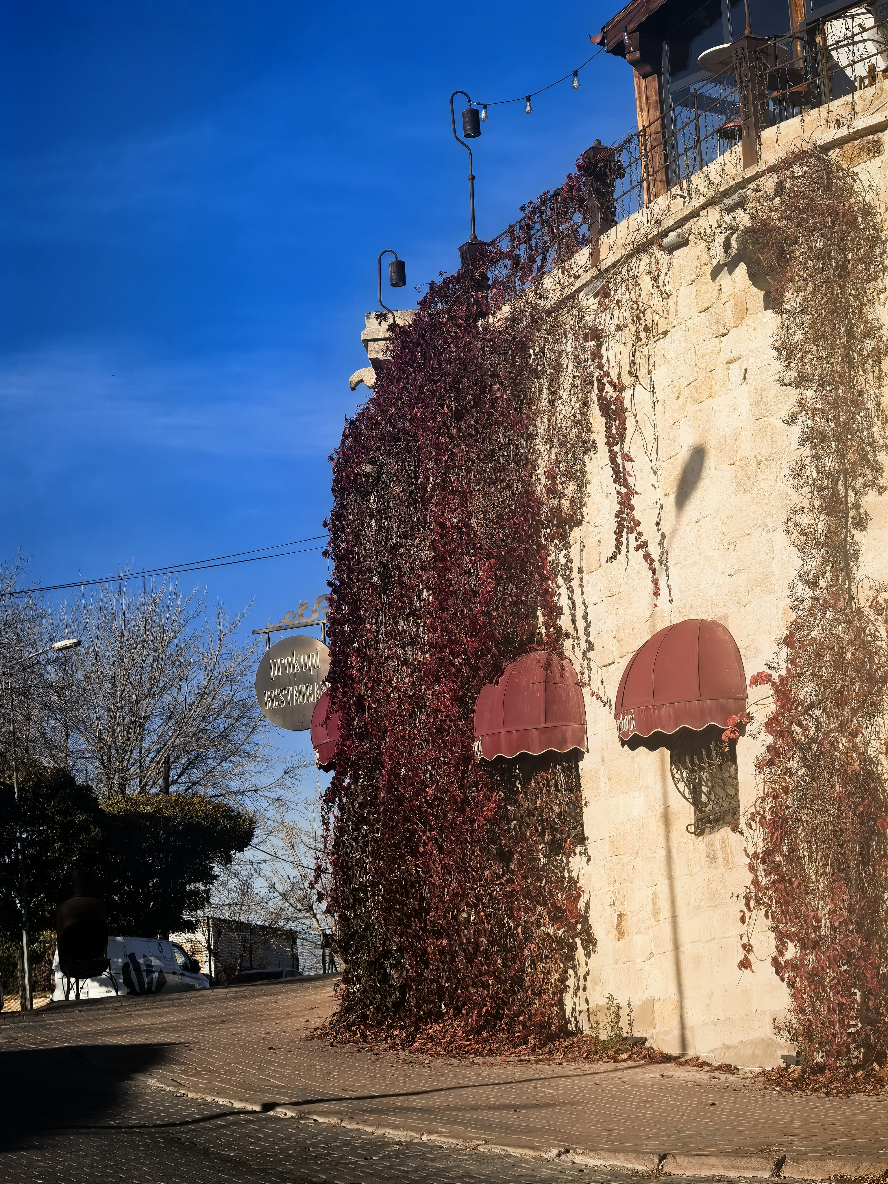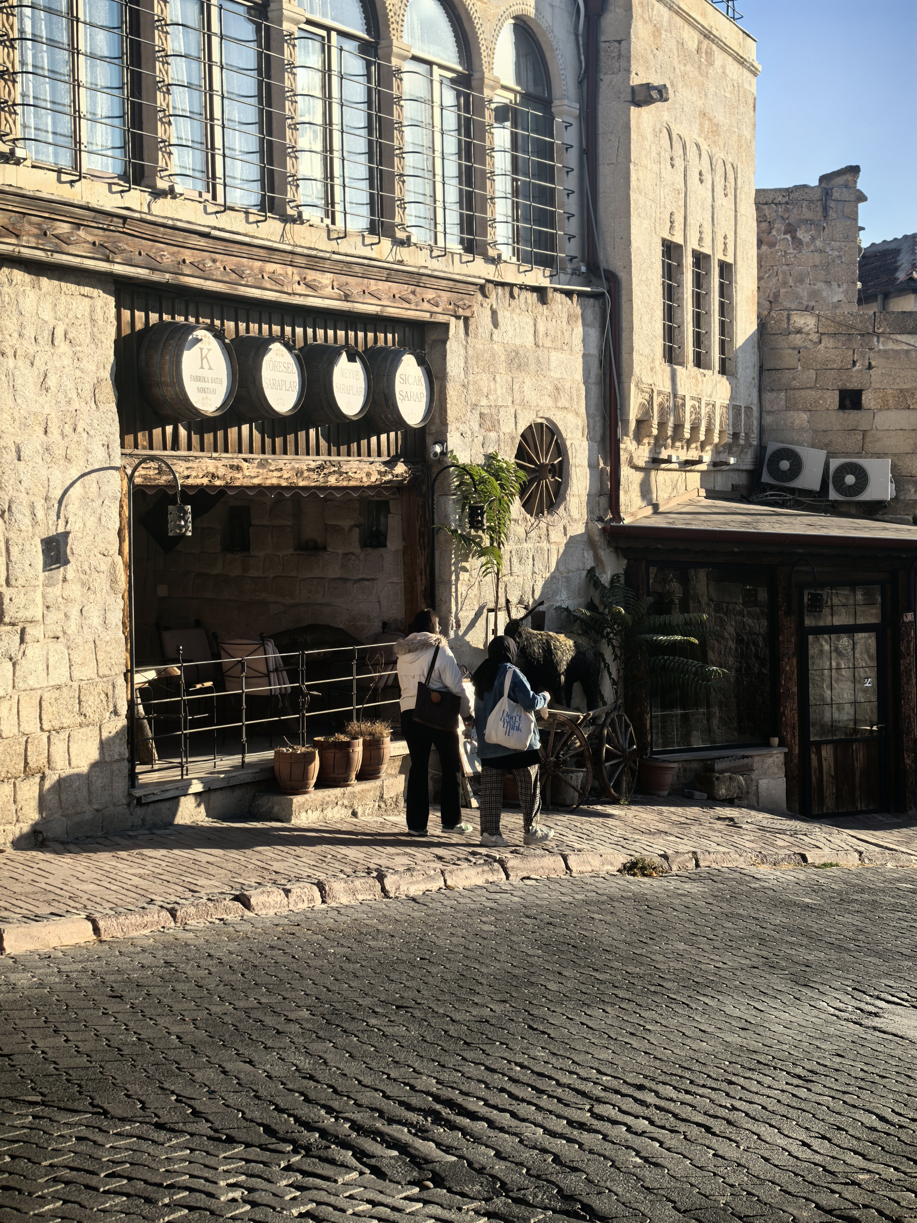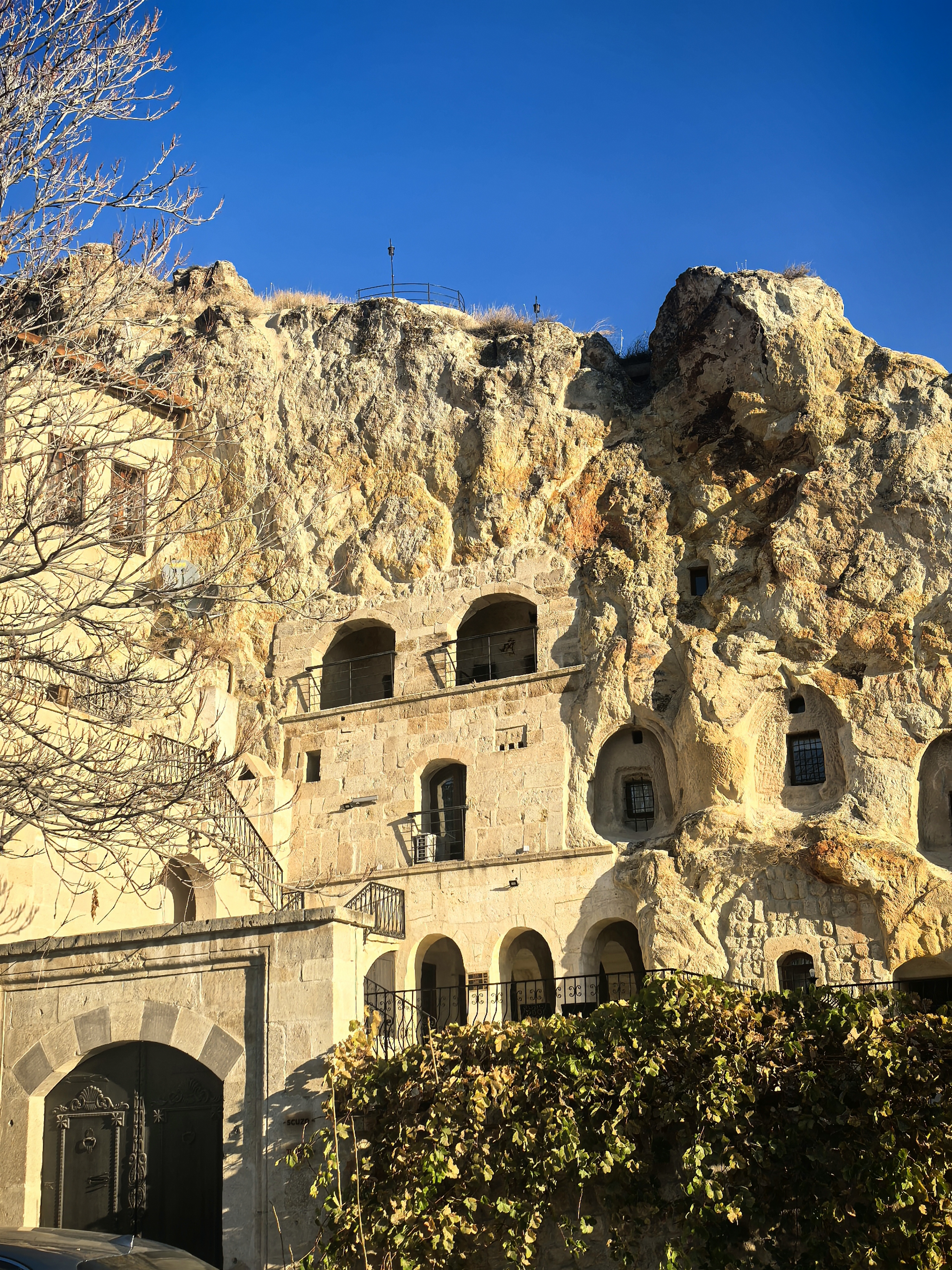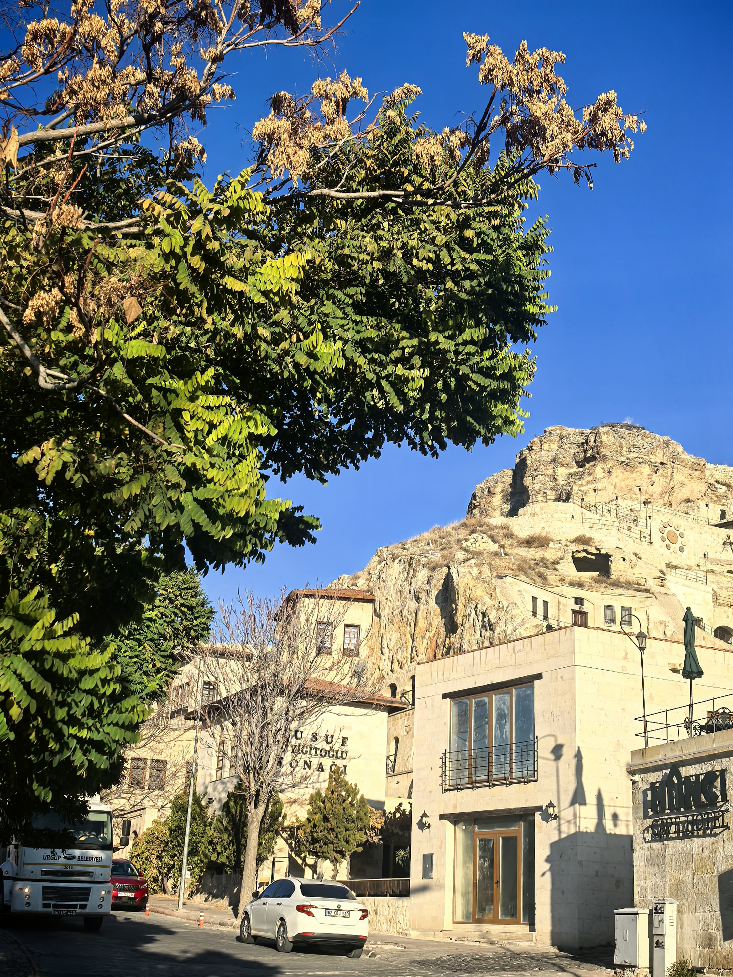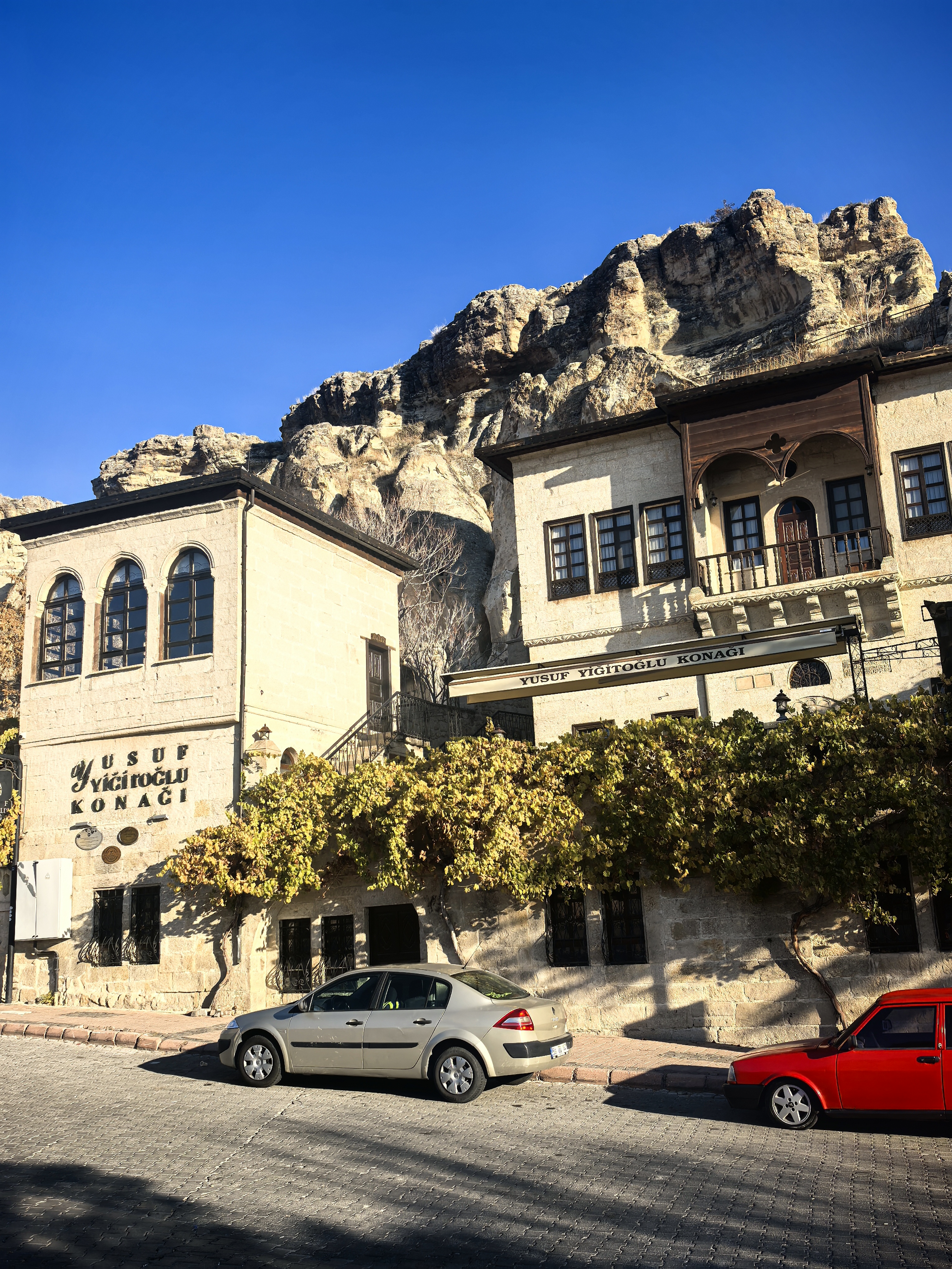 早上8点,我沿着于普居尔小镇的山坡,朝着更高的山丘进发,那里是洞穴酒店的集中地。一路上,形态各异的洞穴建筑错落有致,有的似巨大的蘑菇拔地而起,有的如神秘的城堡隐匿山间,一直盘旋到山顶都能看见。 不少知名影视都曾在此取景,像《星球大战》系列,那奇幻的外星场景与这里独特的喀斯特地貌完美融合,让电影更具视觉冲击力。 站在高处俯瞰,阳光洒在洞穴酒店的外墙上,光影交错间,仿佛时光都放慢了脚步。 远处,热气球缓缓升起,与这古老而神秘的小镇构成一幅绝美画卷,让人不禁沉醉在这如梦如幻的景致之中。