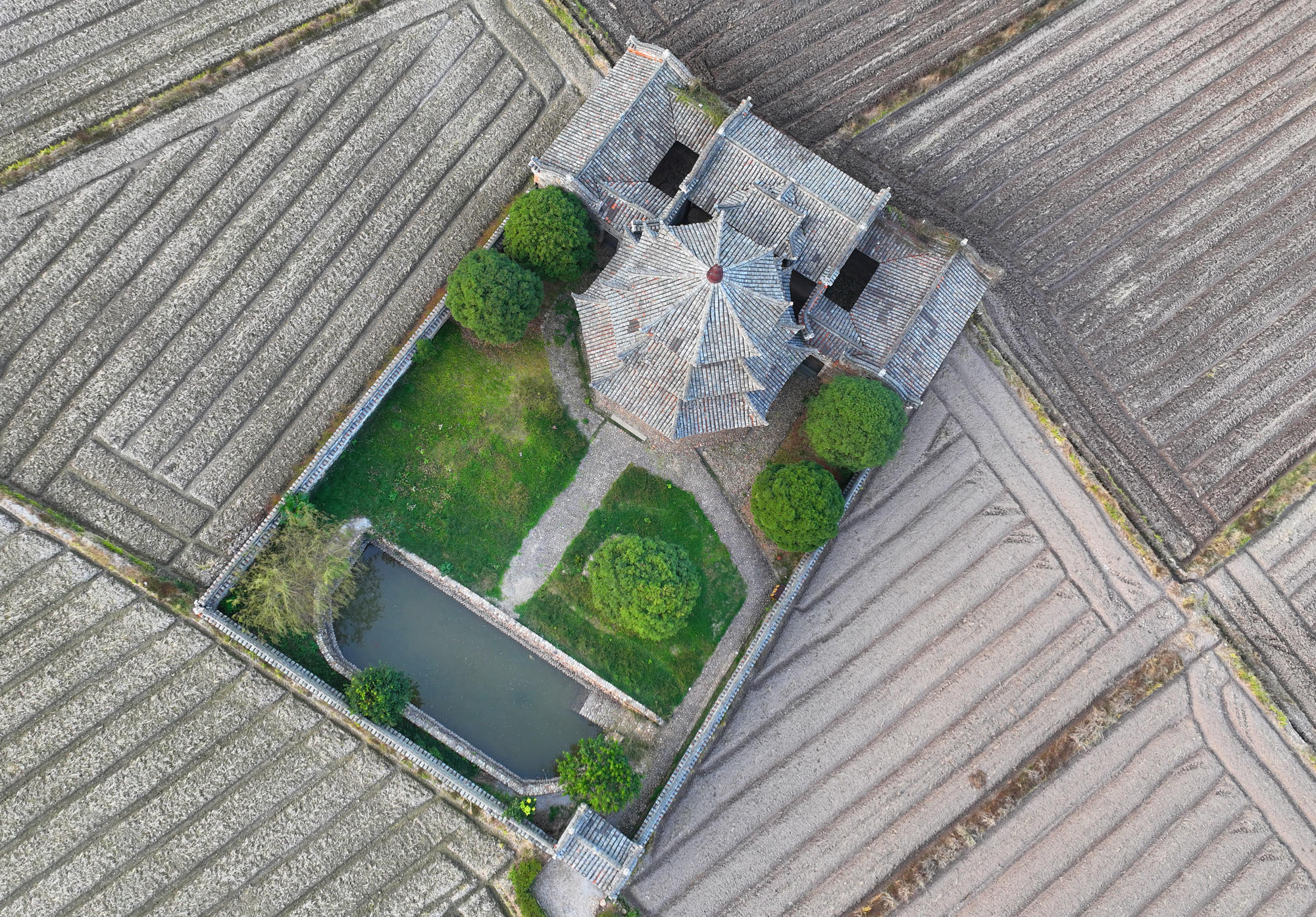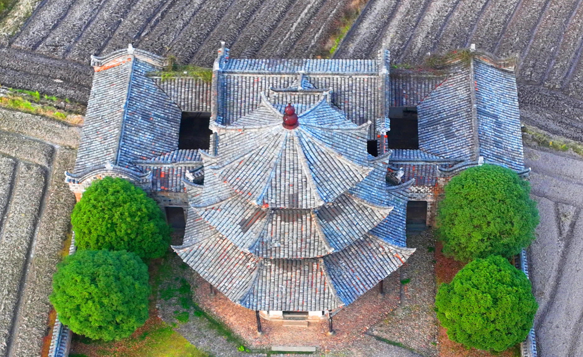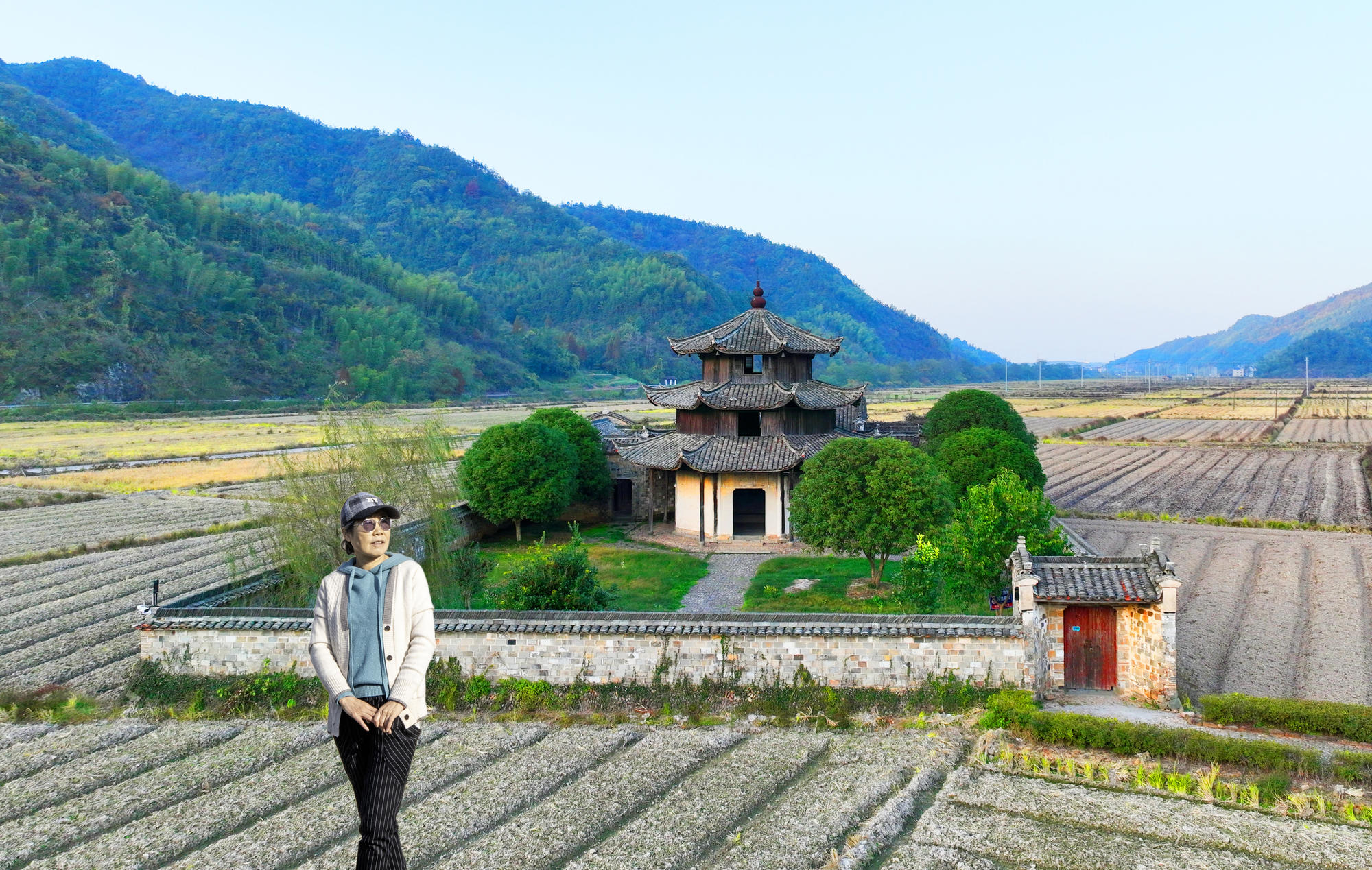 在衢州江山市峡口镇广渡村,我寻访到了一座始建于清乾隆四十六年的古建遗珍——大公殿。这座八角三层楼阁式建筑,以其精巧的形制与深厚的科举文化内涵,静静矗立于村中稻田中央,宛如一方承载文脉的精神坐标。遗憾的是车刚至田畔,农民们刚刚将已金浪翻涌的稻穗尽数收割,原野空旷,唯余秋光洒落。来也来了,虽然景色打了折扣,但岂可空手而归?仍绕殿拍了一圈,将这无垠天地间孤峙的文化丰碑,尽数收入镜头之中。