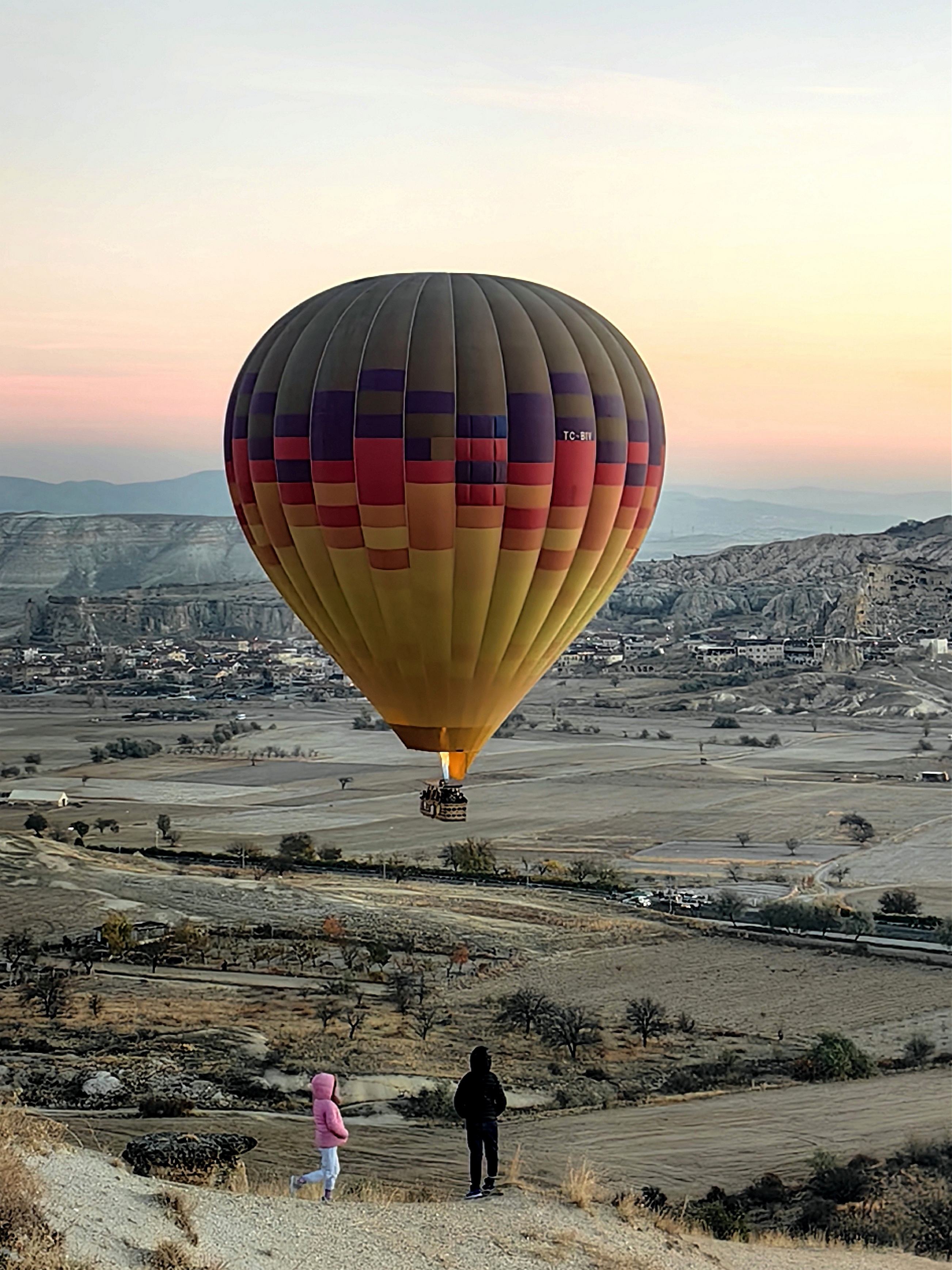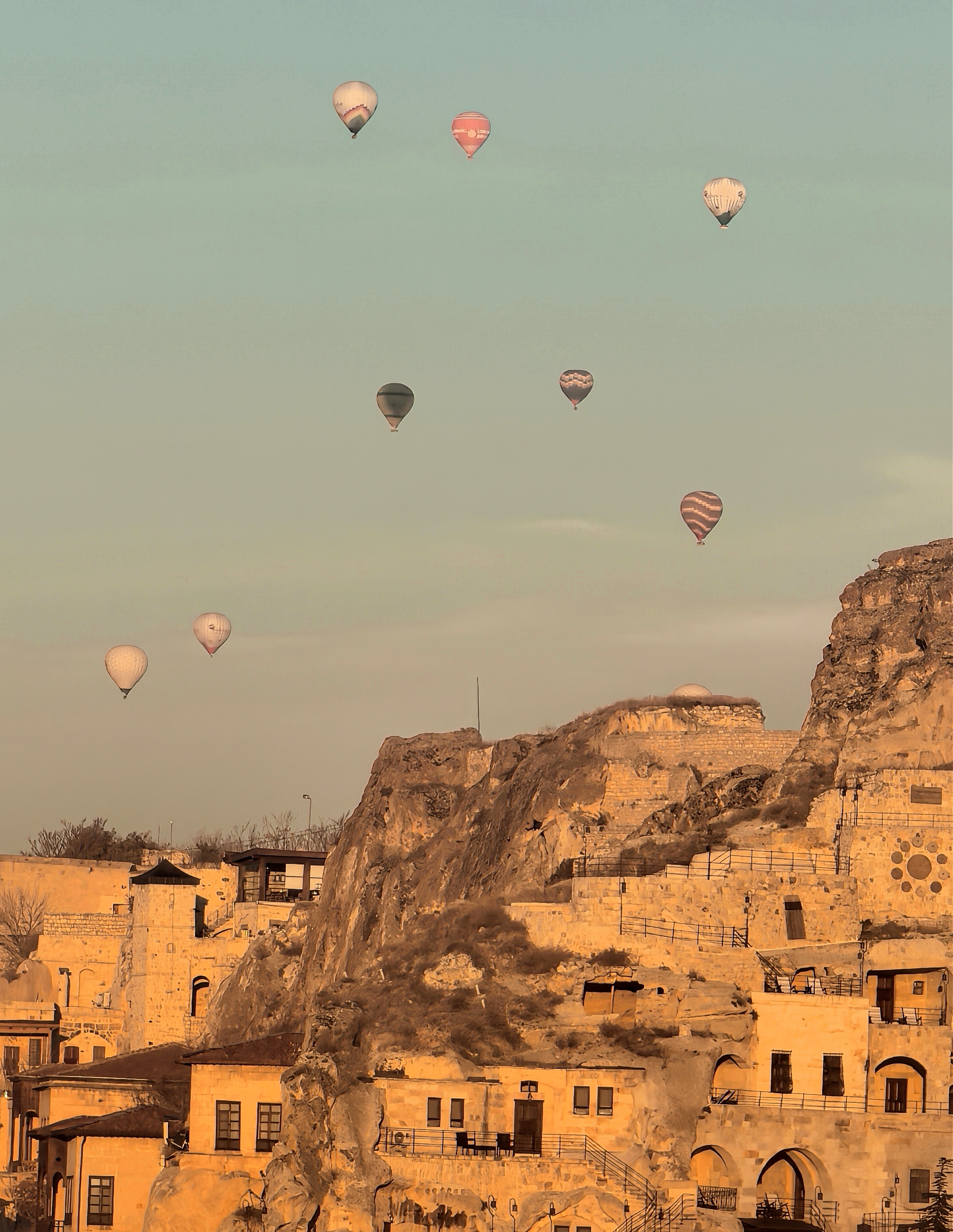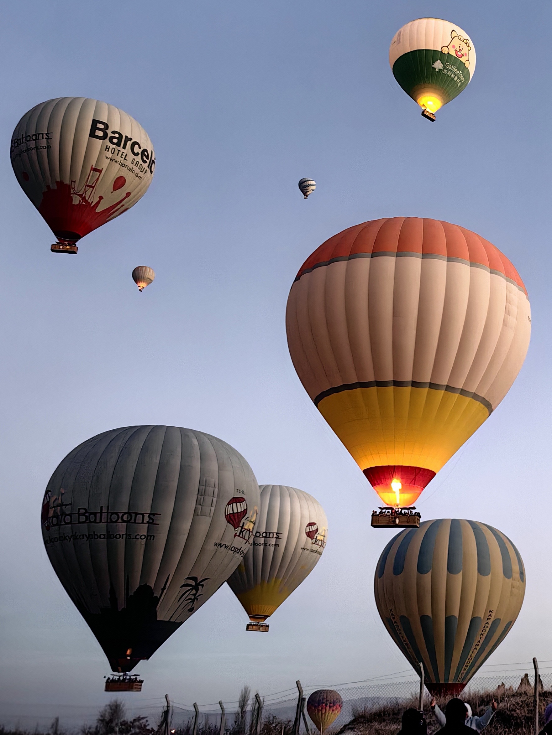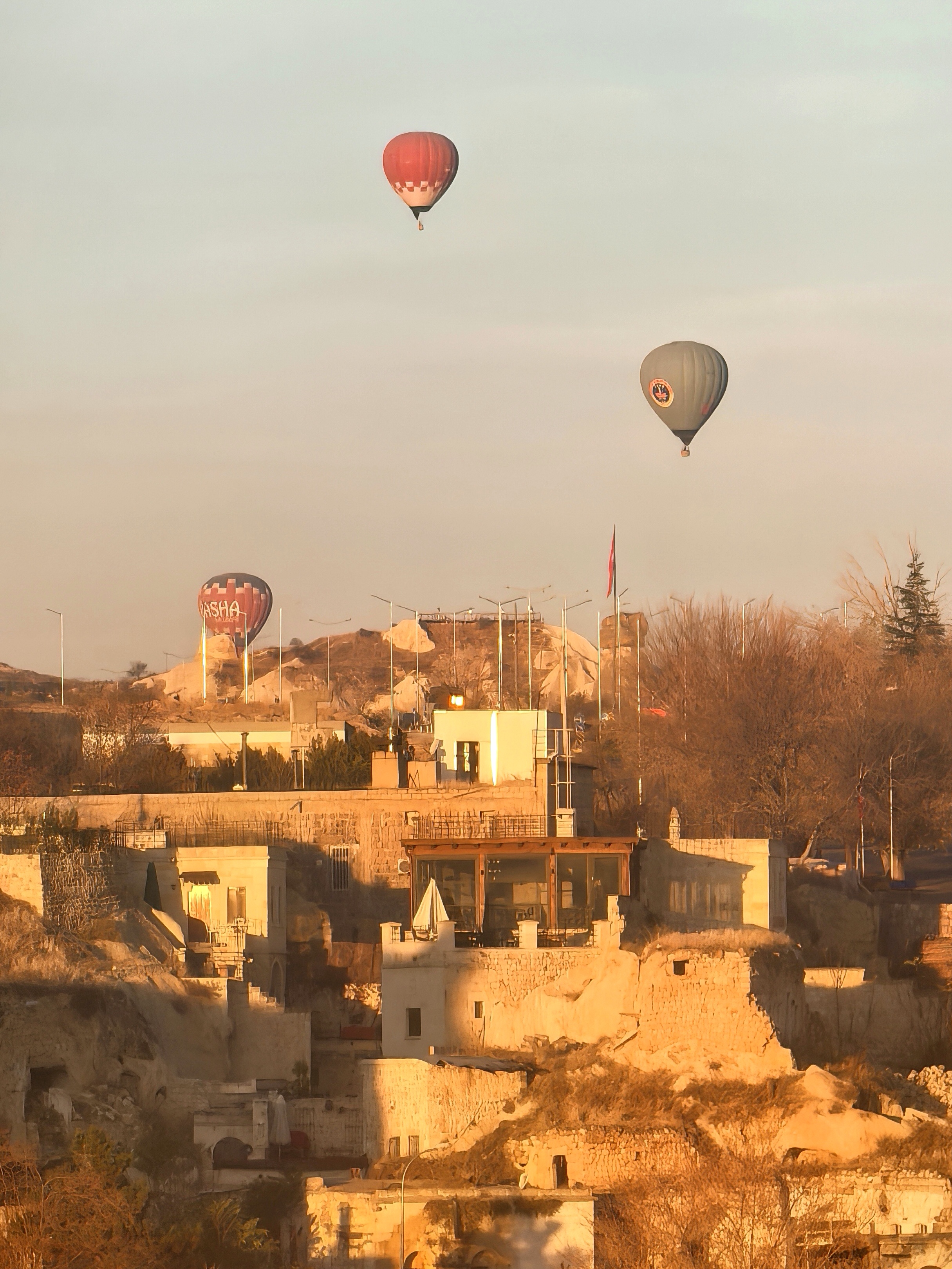 当卡帕多奇亚的第一缕曦光,温柔洒落在奇幻大地上,五彩斑斓的热气球如同一个个精灵,从沉睡中苏醒。它们缓缓升腾,与赭红的岩壁、湛蓝的天空相映成趣。在寒风中追逐,看着热气球越飞越高,越飞越远,这一别致的浪漫与神秘,带来了无尽的快乐,庆幸邂逅一场与晨光与大地的热恋。