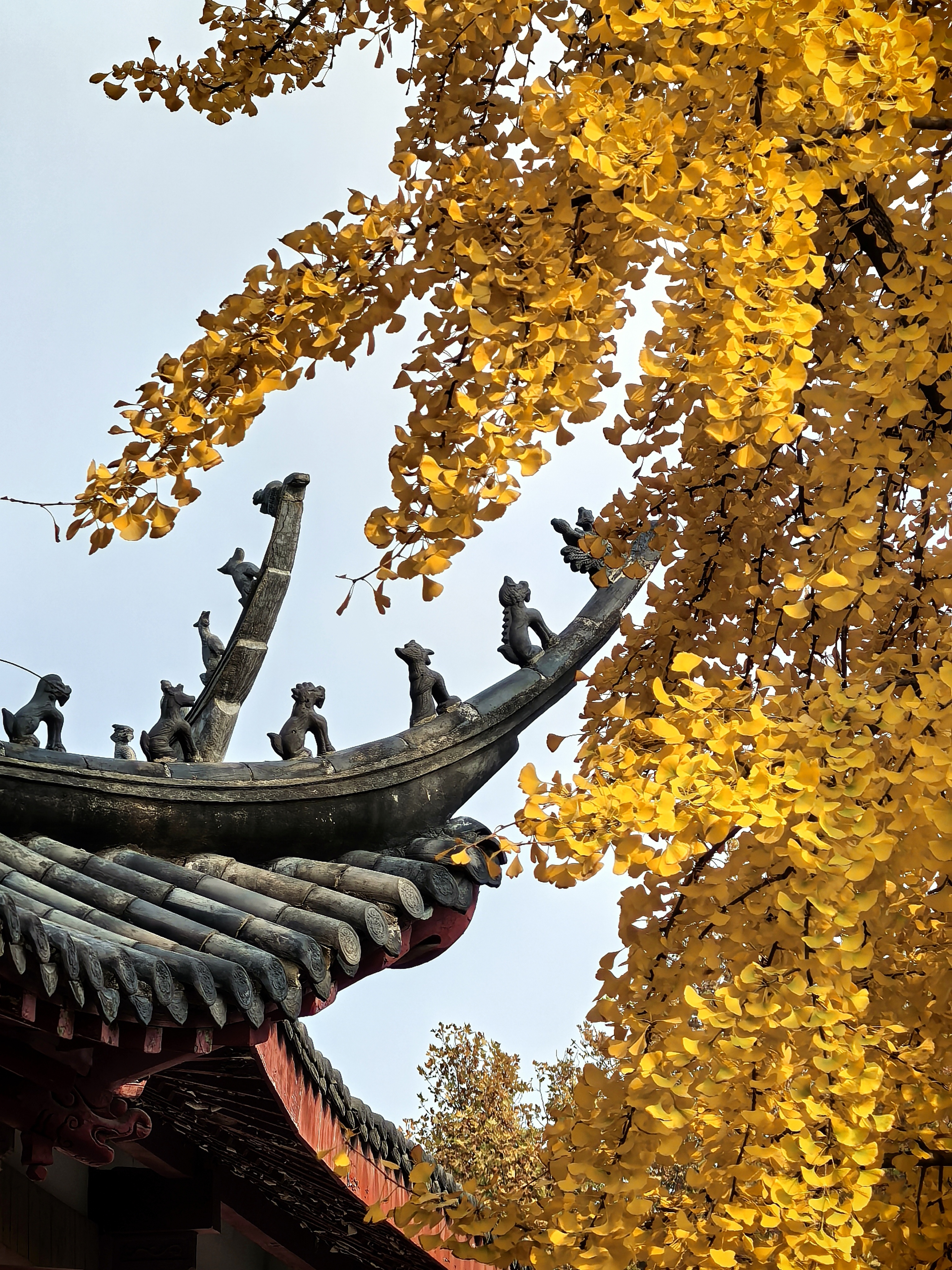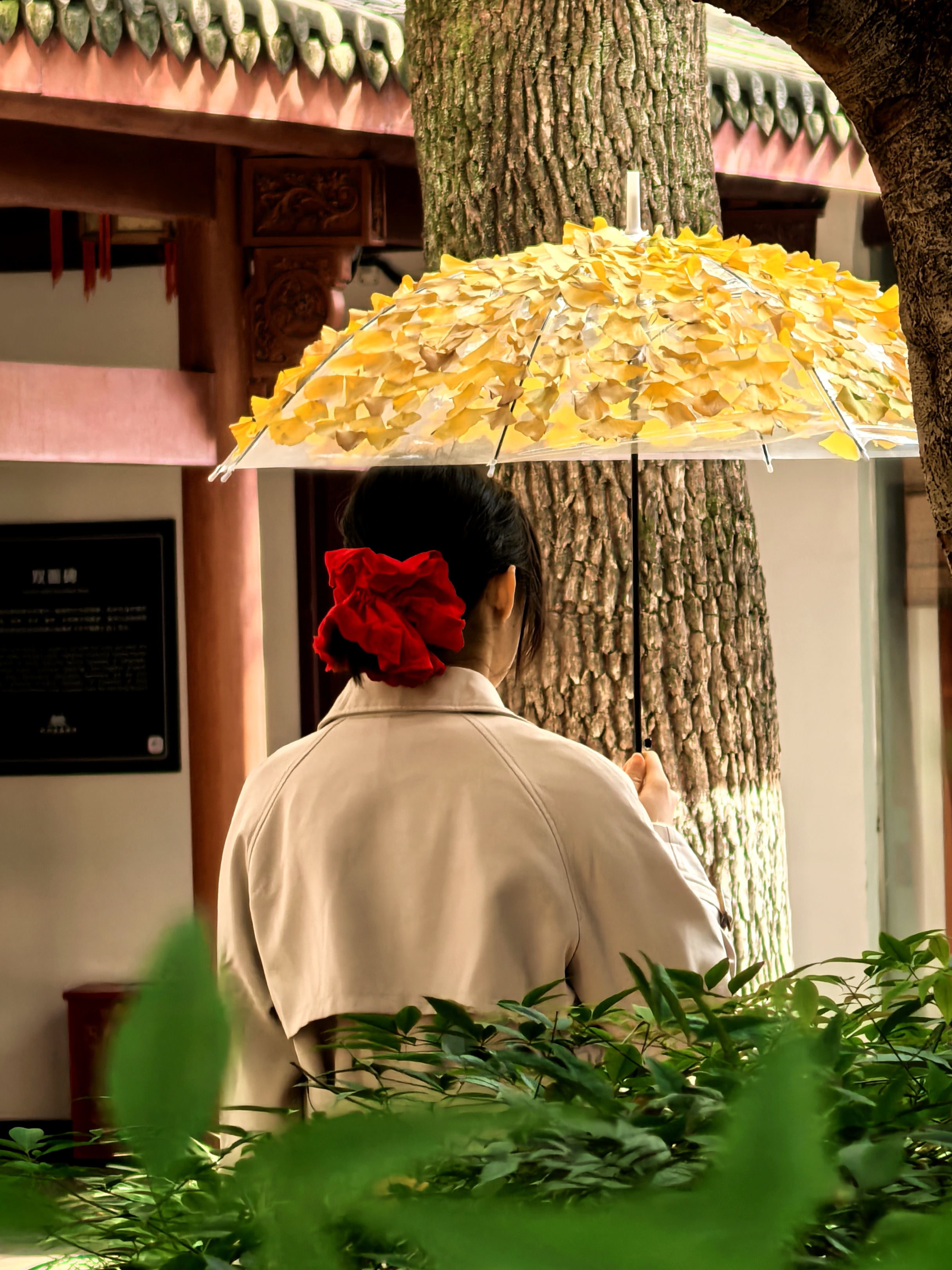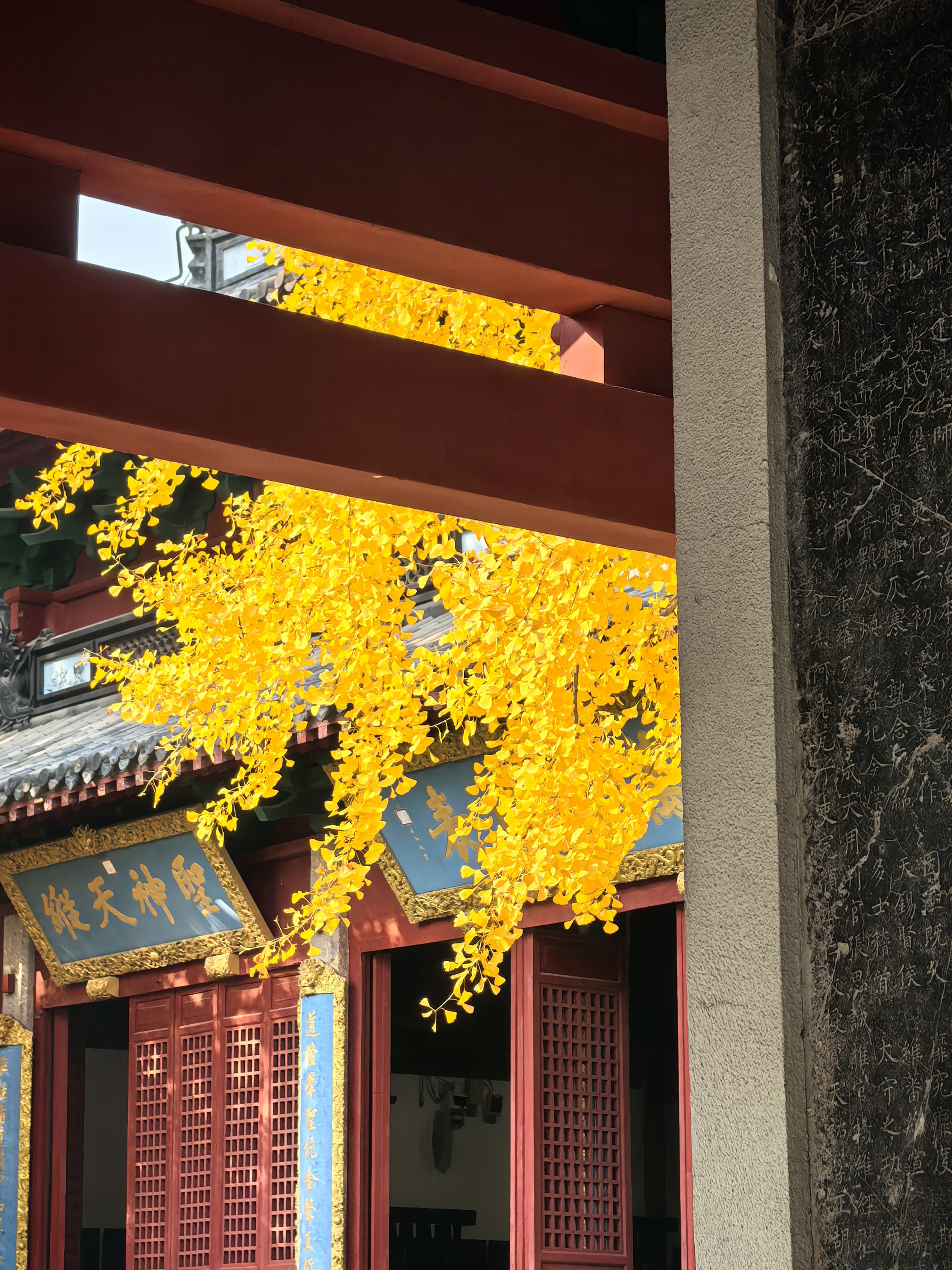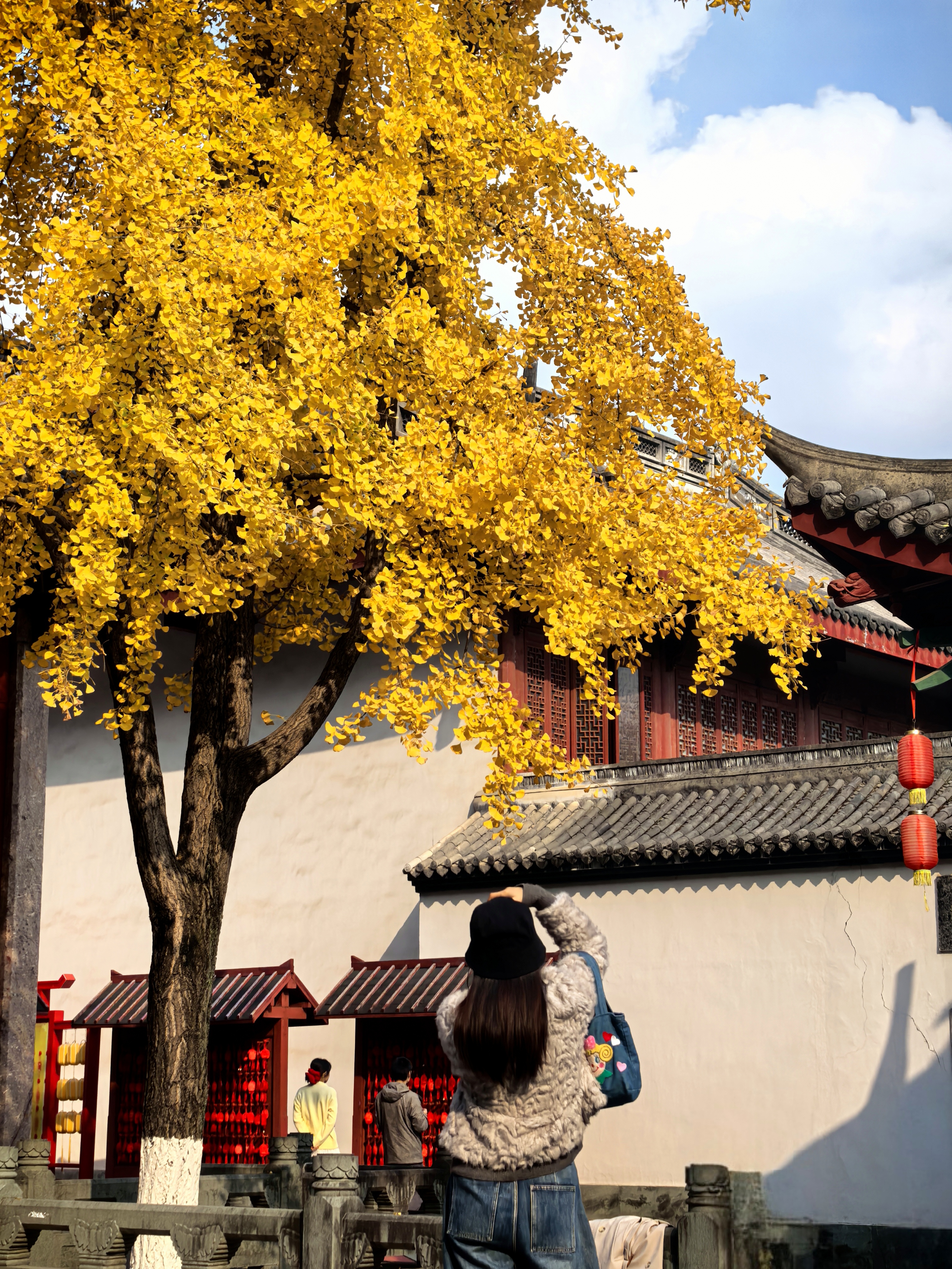 深秋的杭州孔庙,银杏叶如金蝶翩跹,为古学宫披上斑斓华裳。大型司法咨询宣传活动正酣,法律条文与千年文脉在此交融,金叶轻舞间,为庄严的古建添了抹灵动诗意。 石板路上,市民们或驻足咨询,或举镜捕捉叶影婆娑。学子们在叶雨中嬉笑,老者倚廊在碑亭沉思,快门声与低语交织成曲。朱墙黛瓦间,银杏的明黄是时光的笔触,勾勒出杭城独有的风雅。 这里,每片叶子都是历史的书签,每道目光都沉醉于古意盎然。人们寻得的不仅是法律解答,更是心灵栖息的桃源。在最高学宫的怀抱里,秋色与人文共织成永恒的画卷。