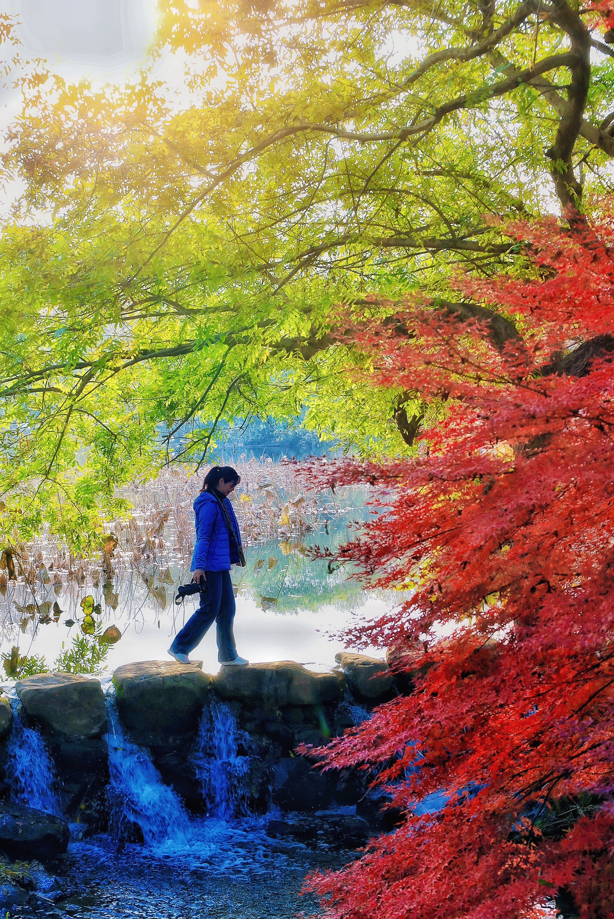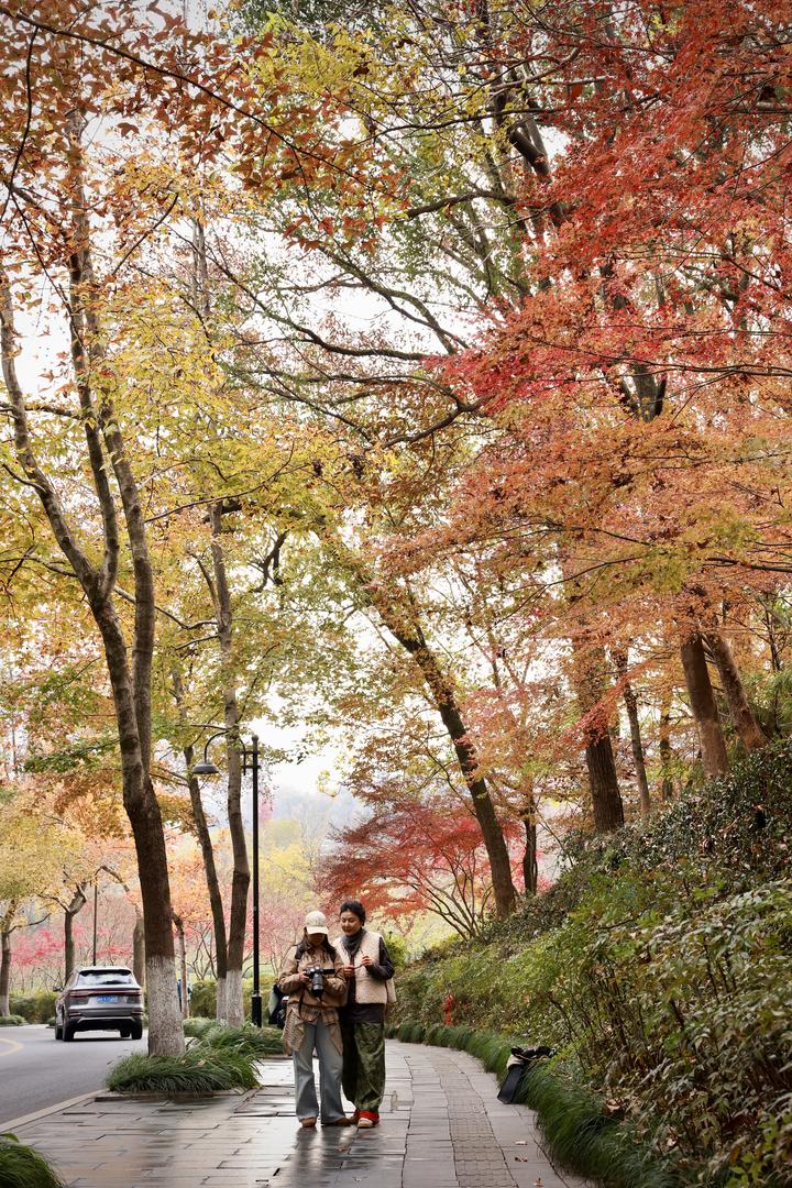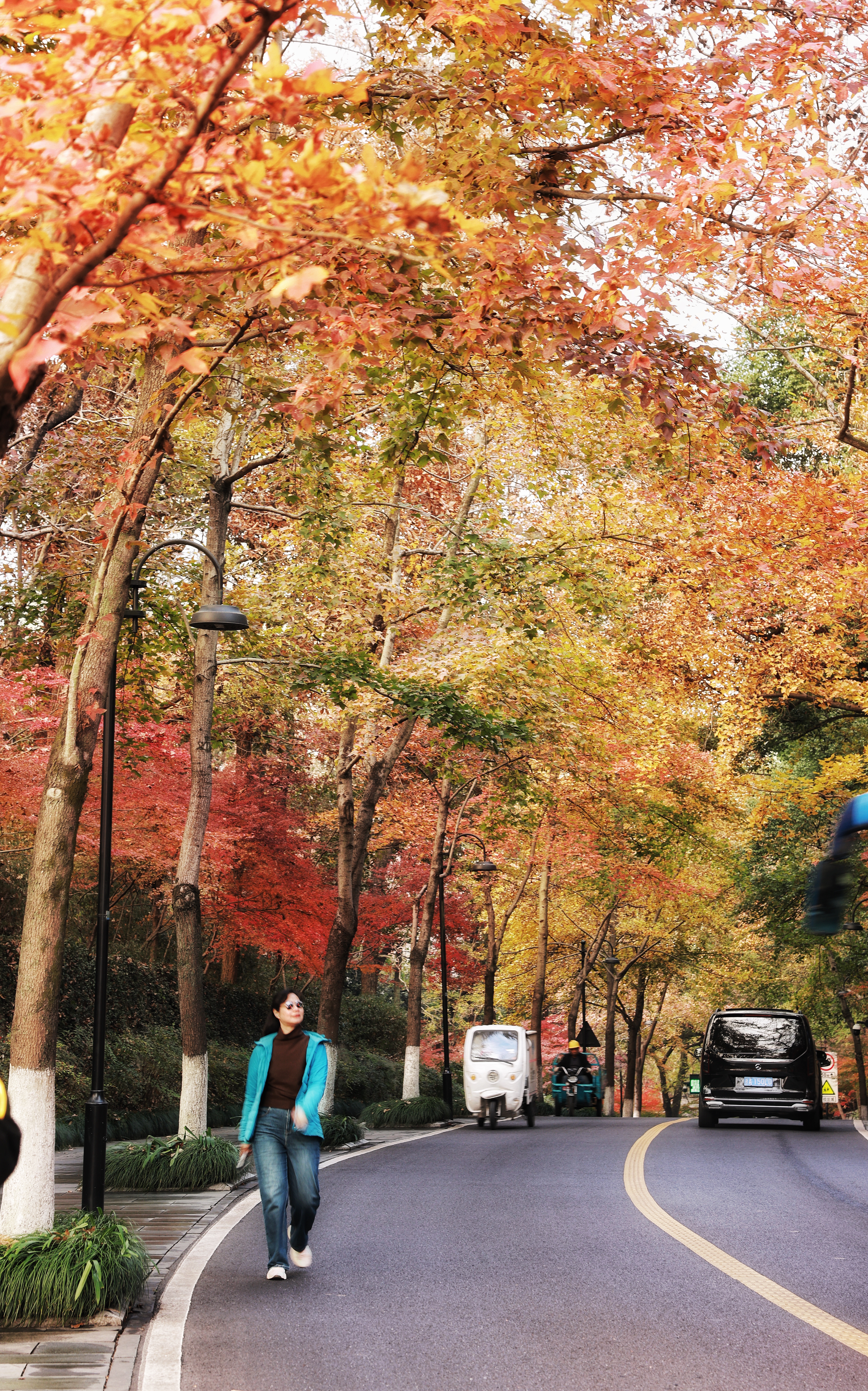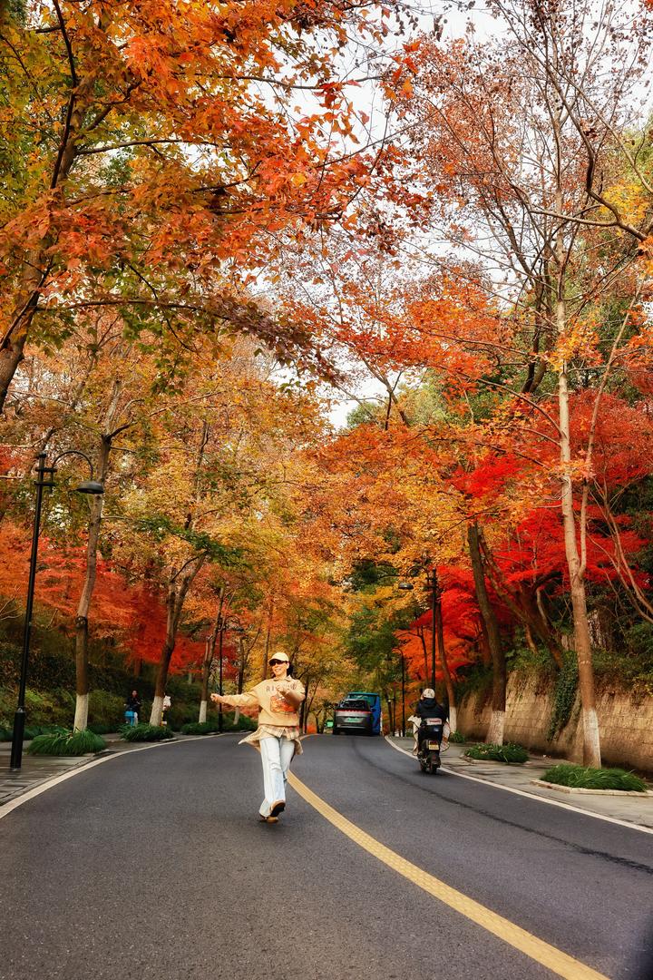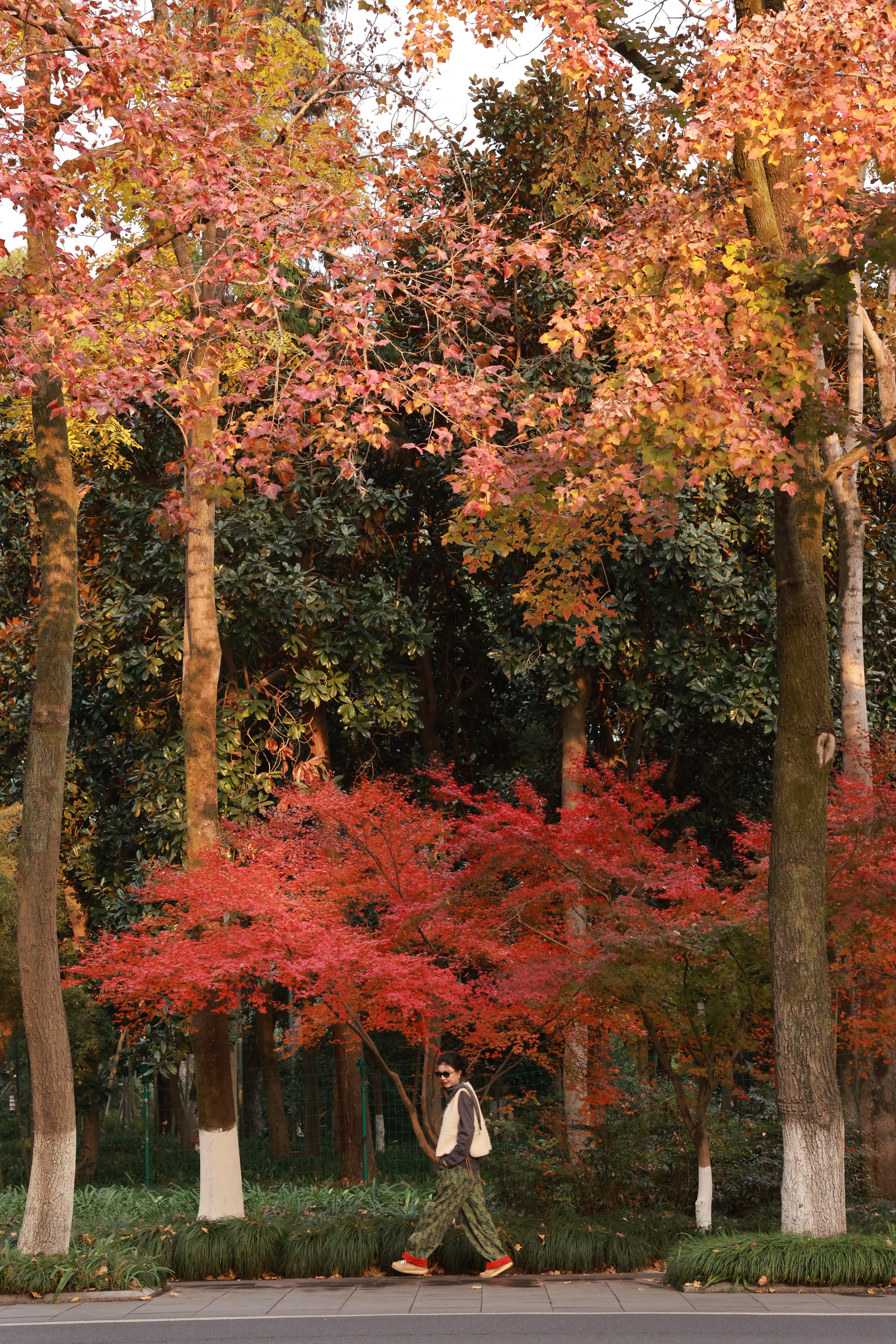 深秋时节的杭州,从茅家埠沿着黄泥岭往九里松走,一步一景色