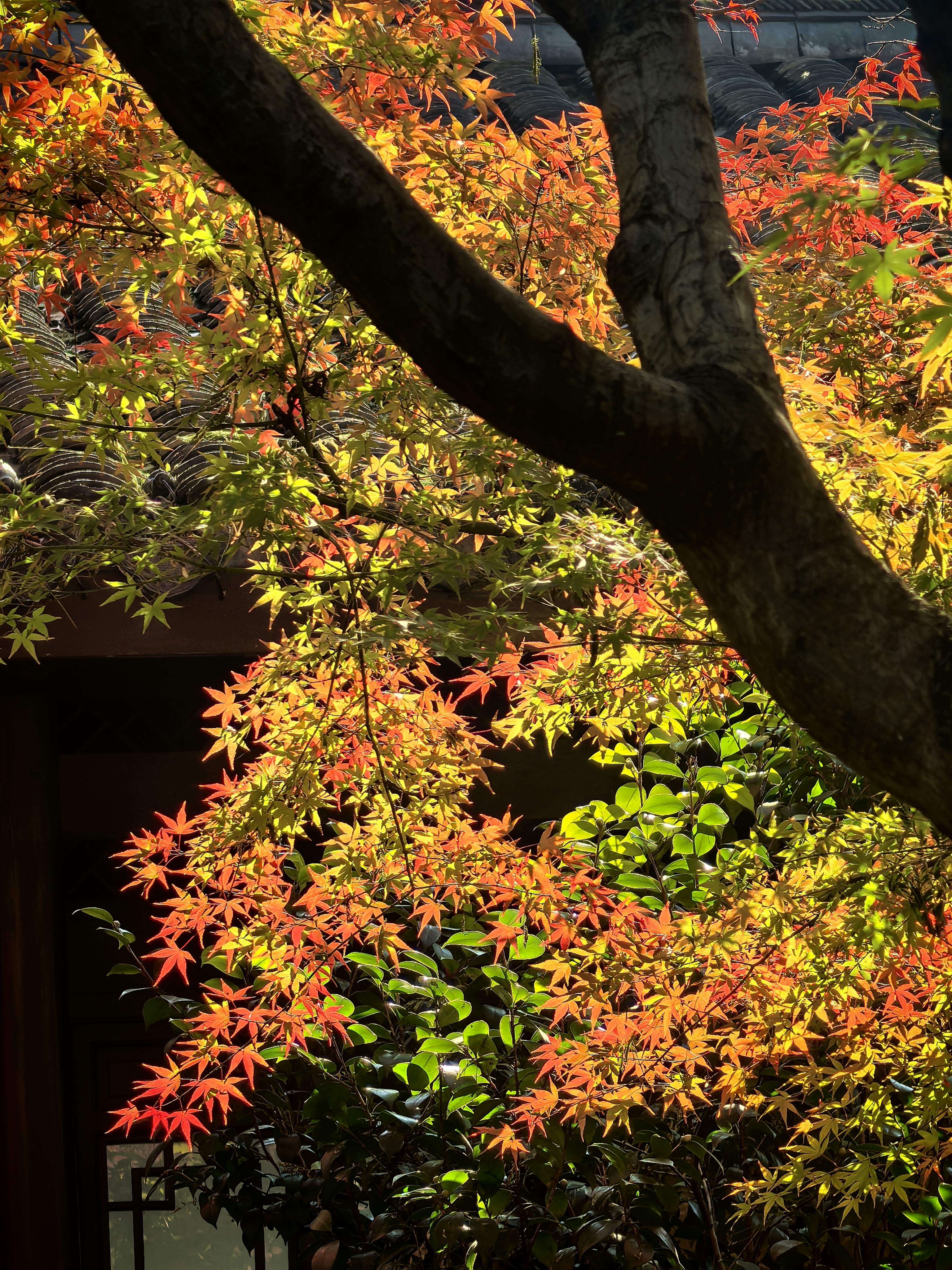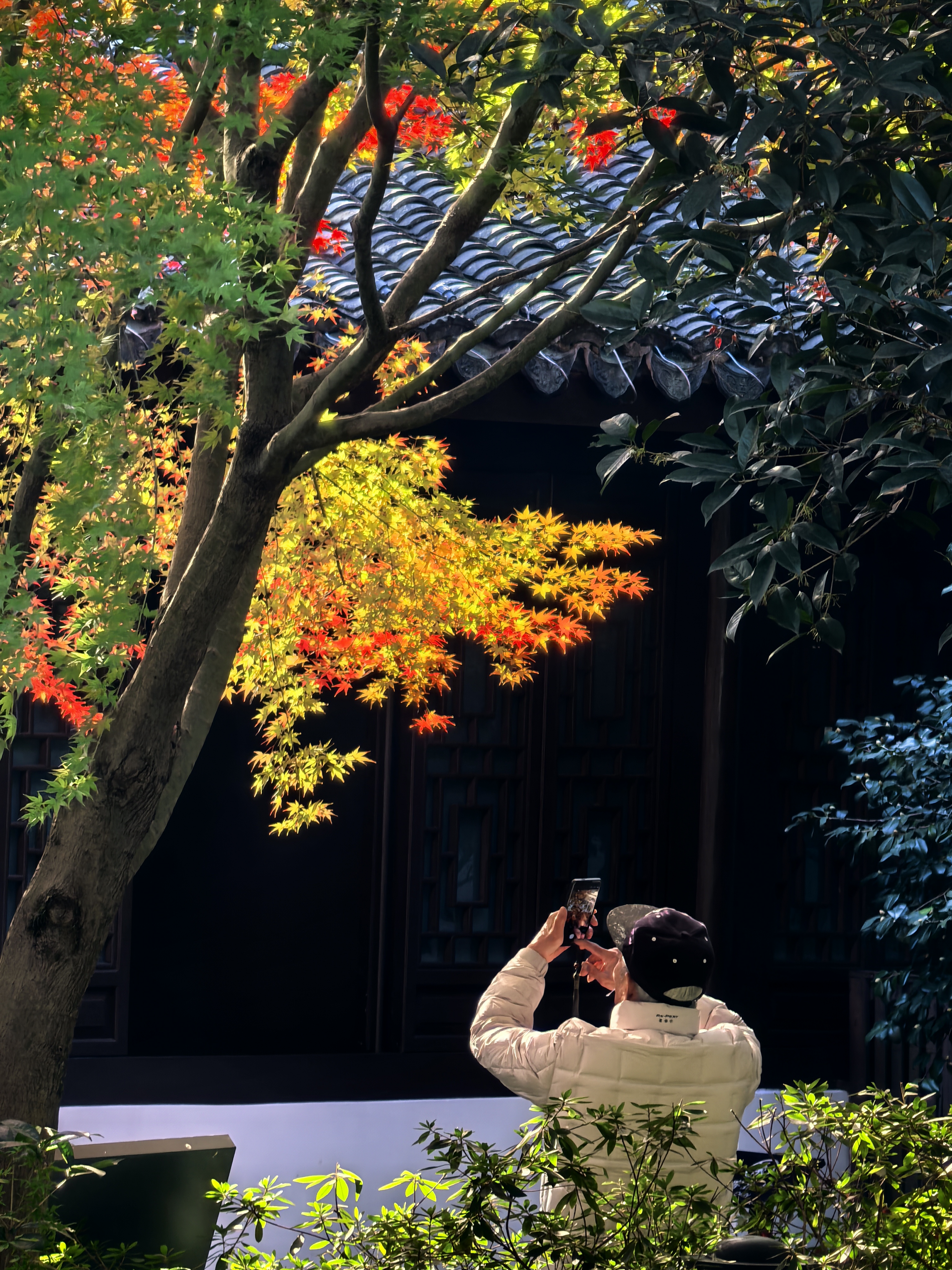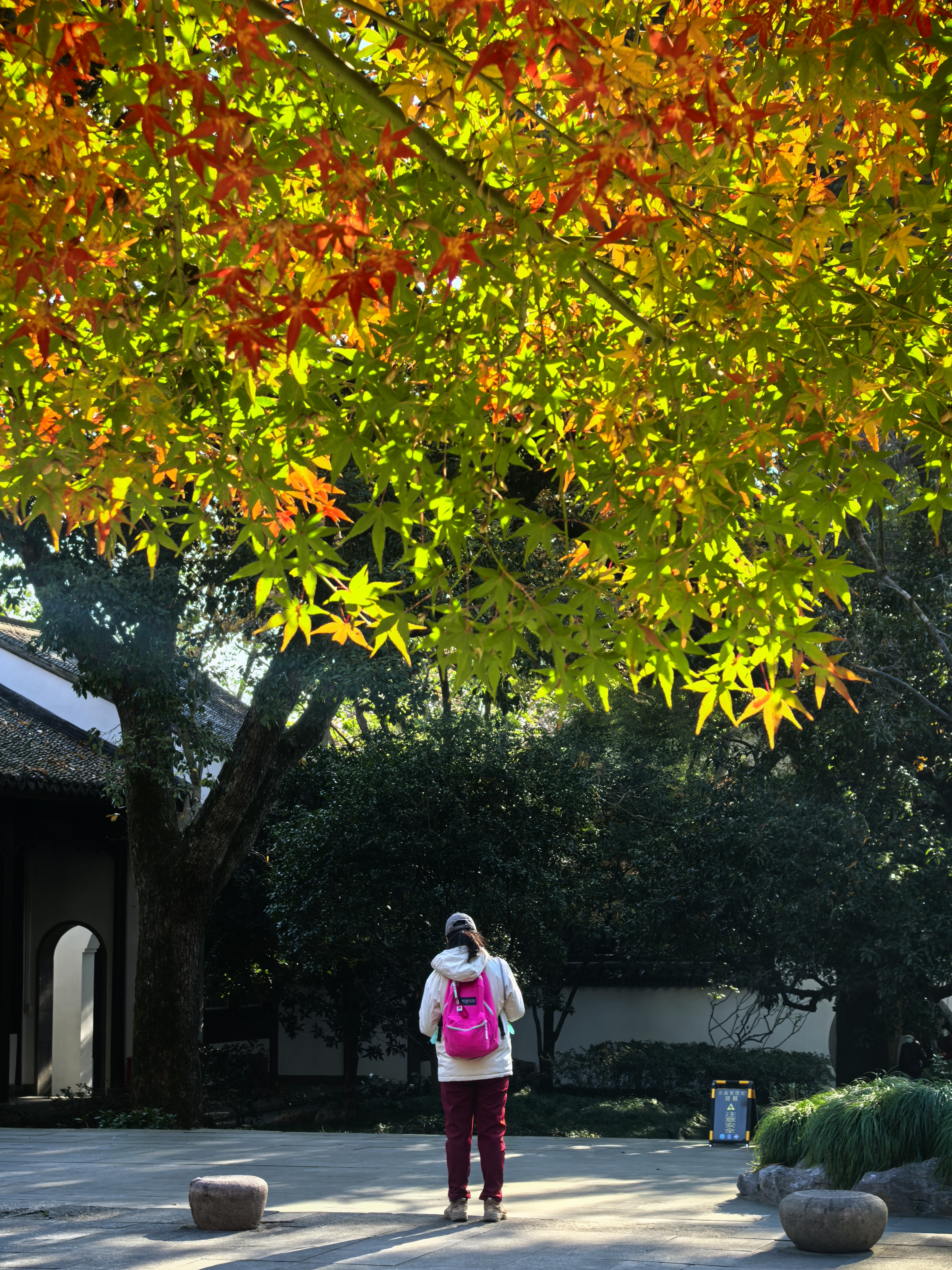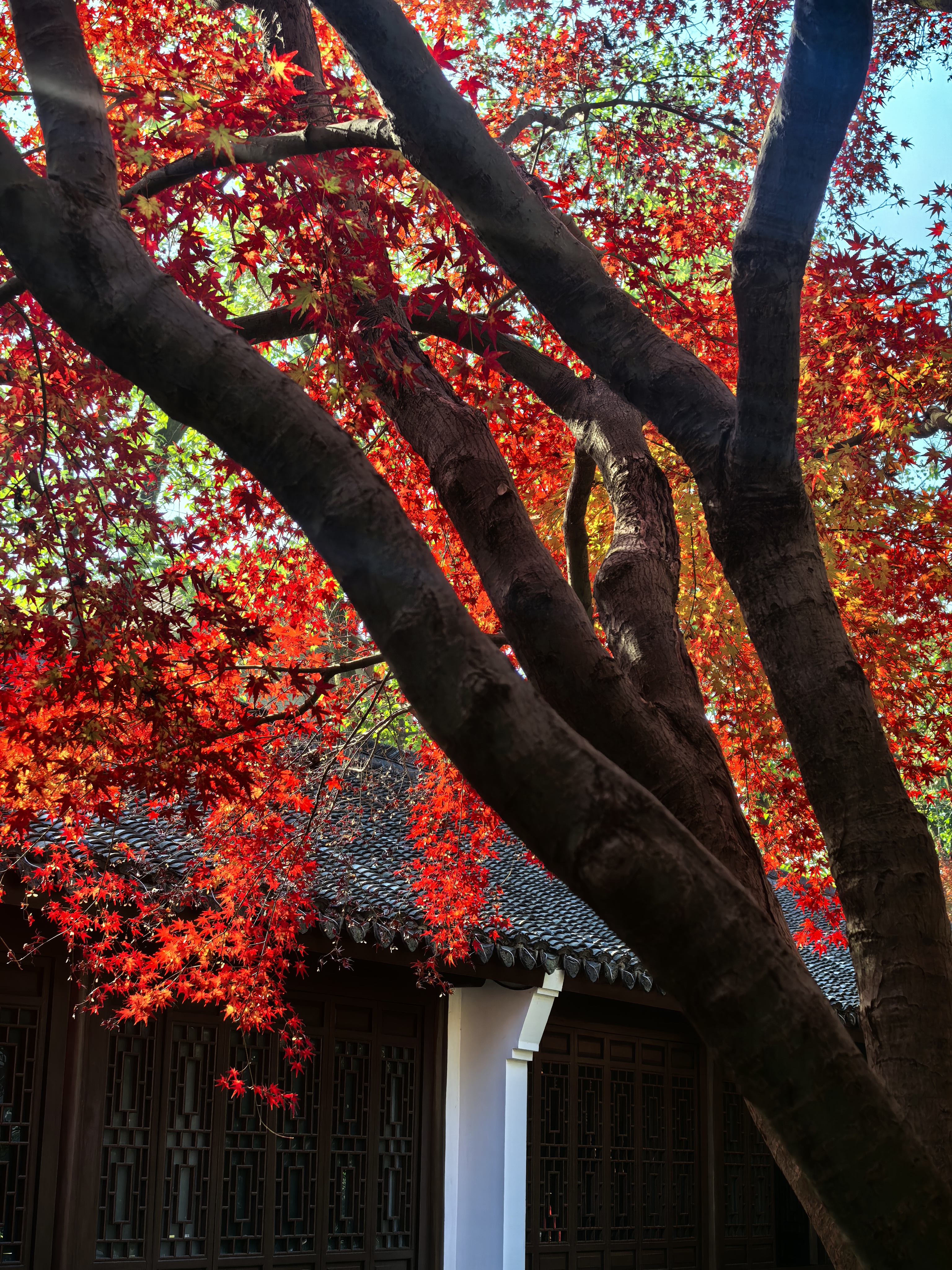杭城北山街的玛瑙寺,宛如一位低调的隐者,深藏不露在车水马龙的北山街畔,却总在特定时节惊艳众人。春日樱花烂漫,它以柔美之姿撩动人心;而今枫叶季,又以热烈姿态燃遍每个角落。 清晨,阳光初照,市民们便陆续赴约而来。只为那三五株鸡爪槭,它们大隐没在小院里,却红得肆意张扬,红透了黛瓦,映红了小池亭台,似是大自然精心绘就的画卷。 站在这热烈的枫树下,微风拂过,枫叶沙沙作响,仿佛在轻声诉说着岁月的故事。人们纷纷举起相机,定格自己在这绚烂秋色中一脸灿烂的模样,让这份美好,在时光里永恒留存。