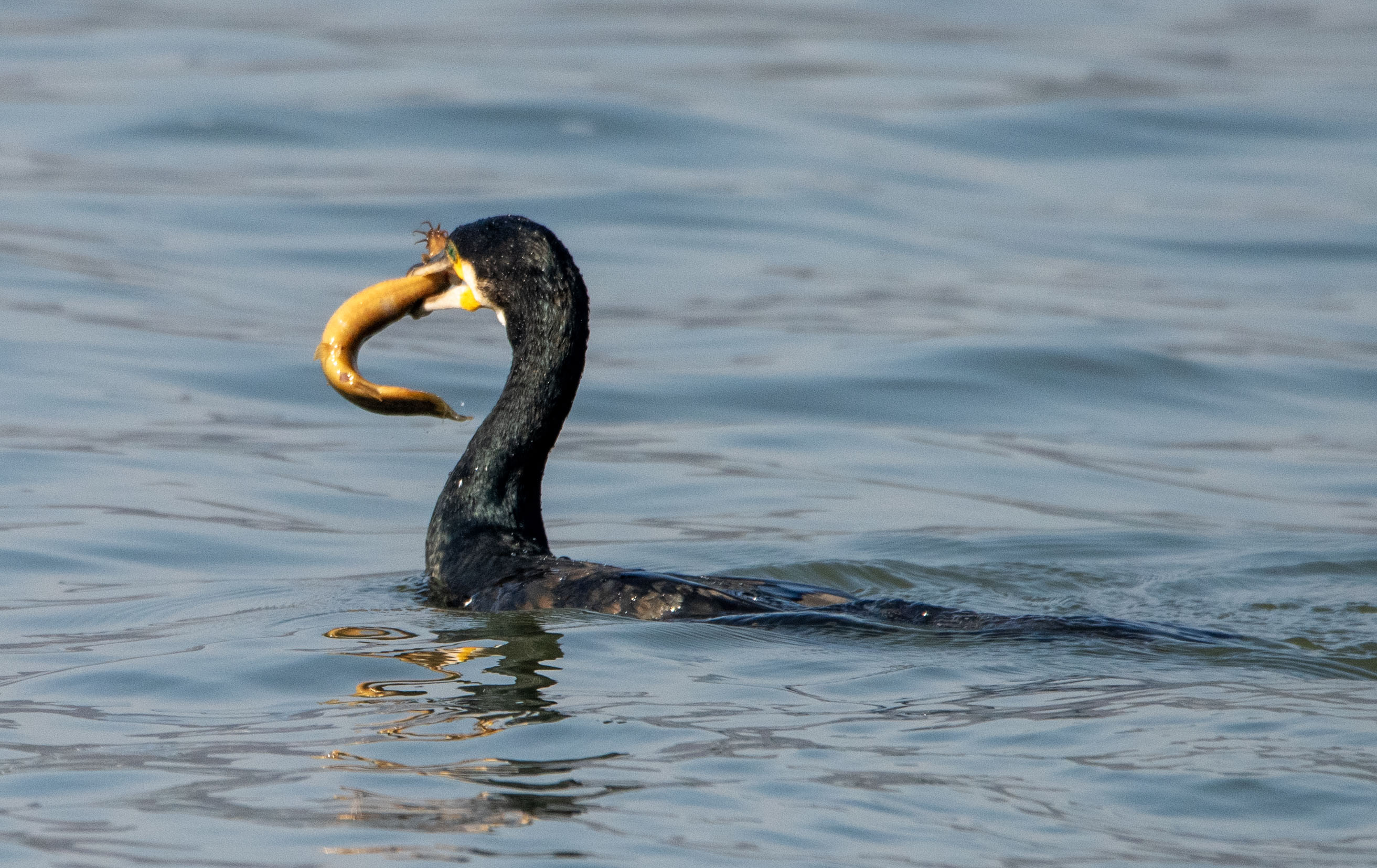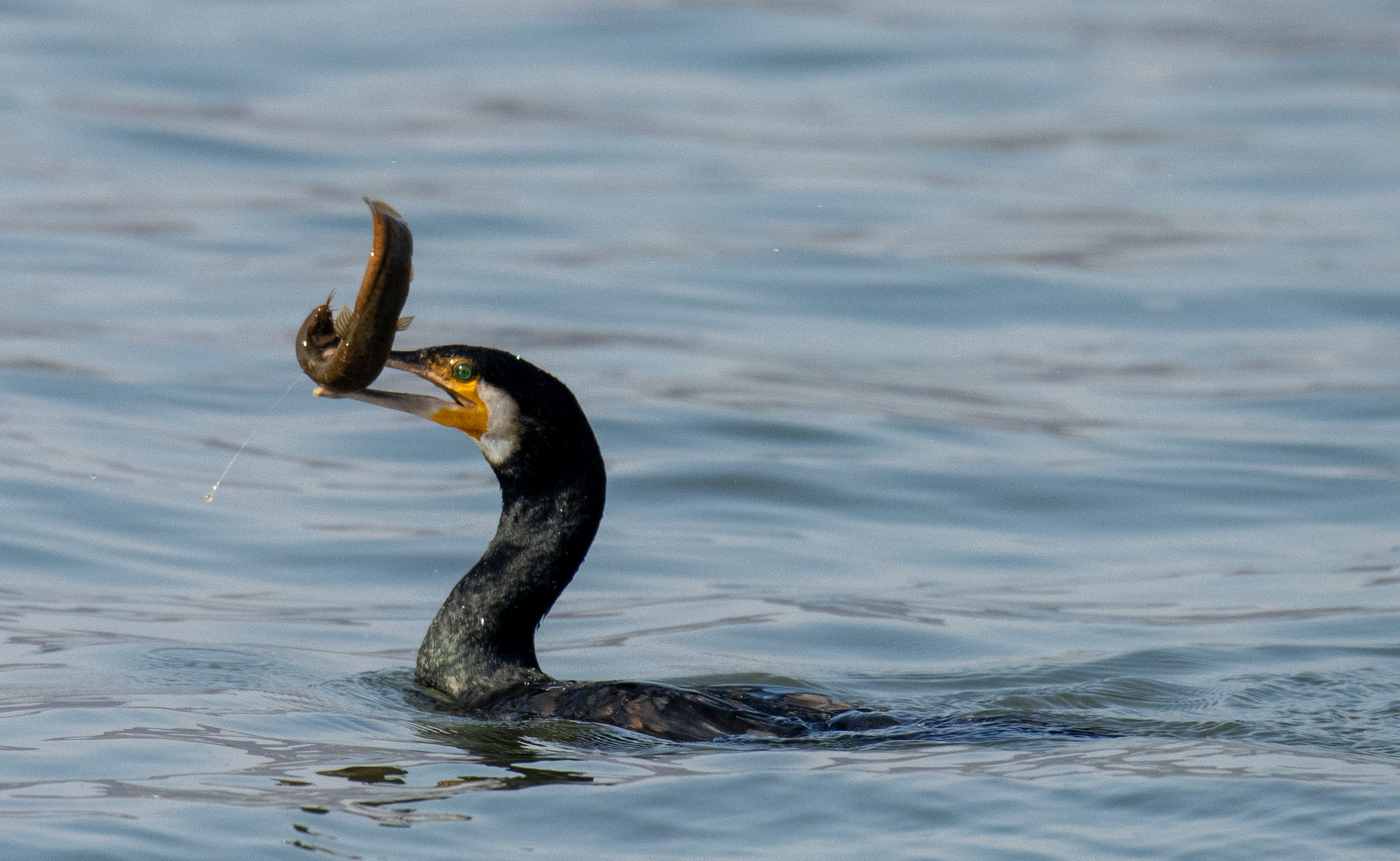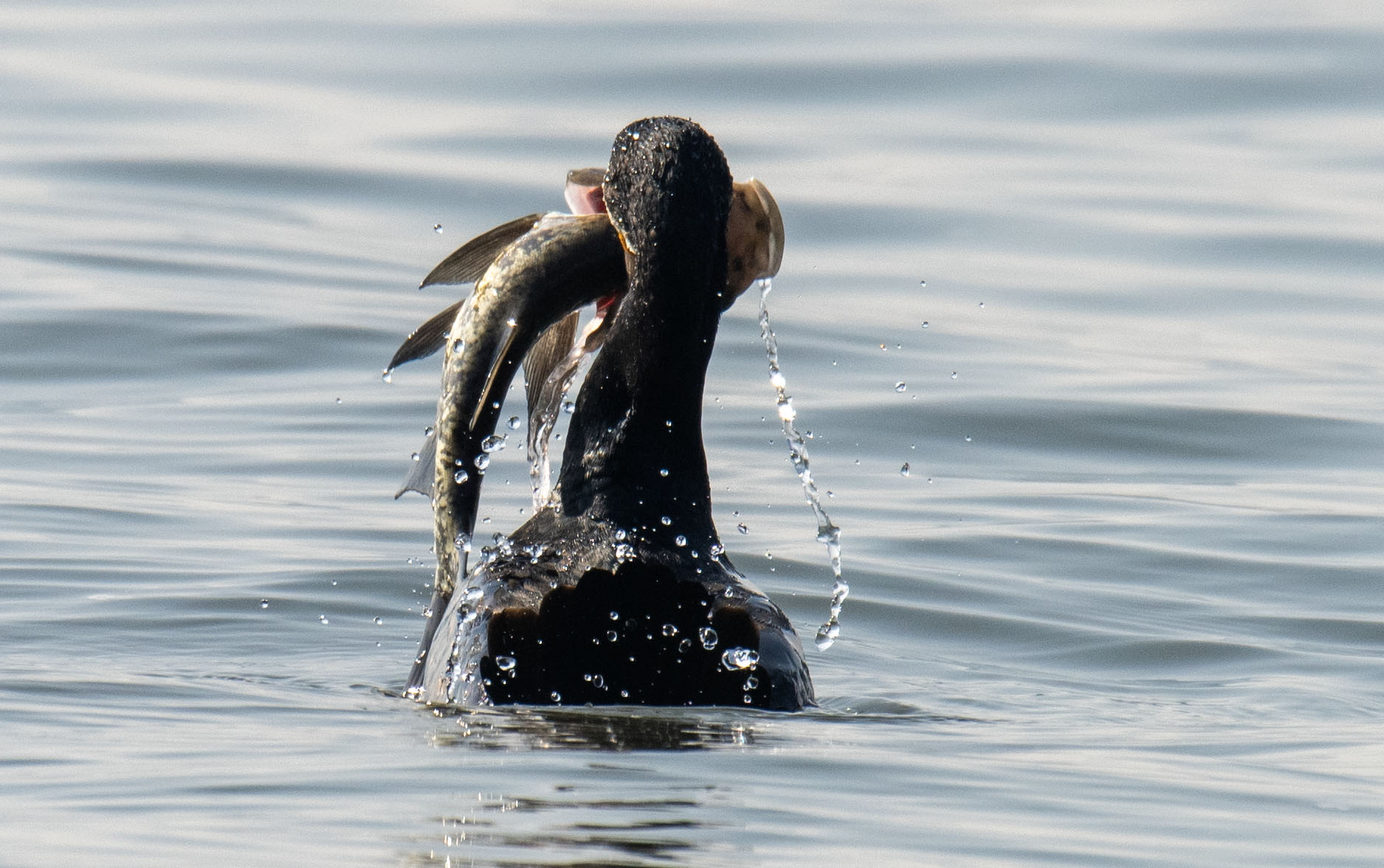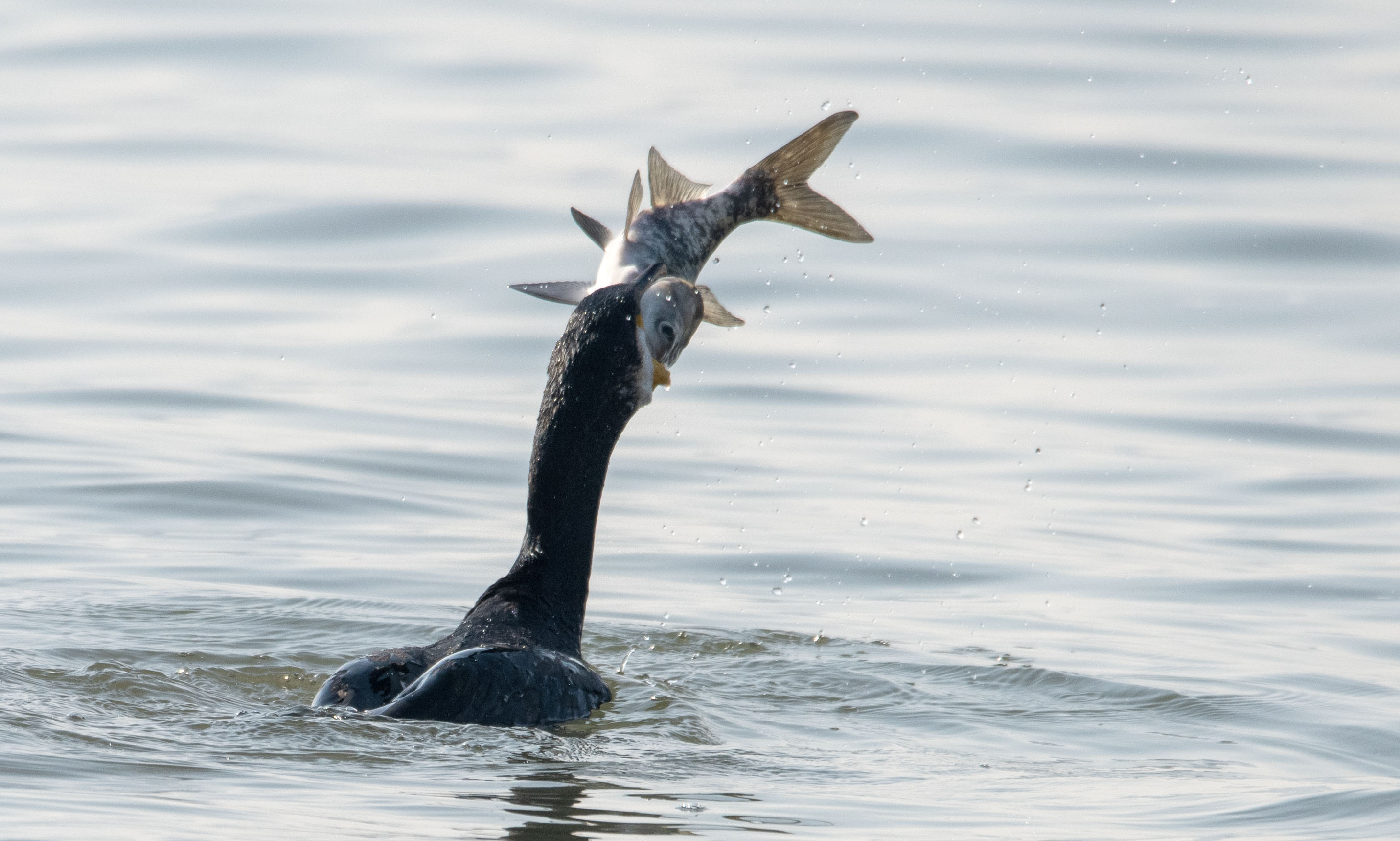 滑溜的泥鳅,胖胖的大头鱼都逃不过鸬鹚和苍鹭的嘴