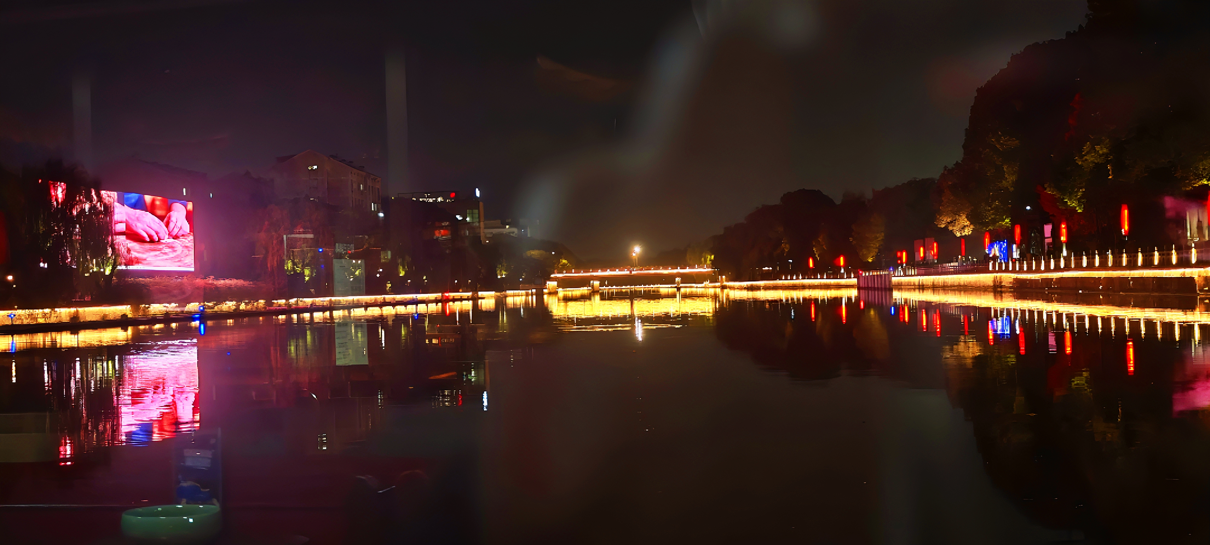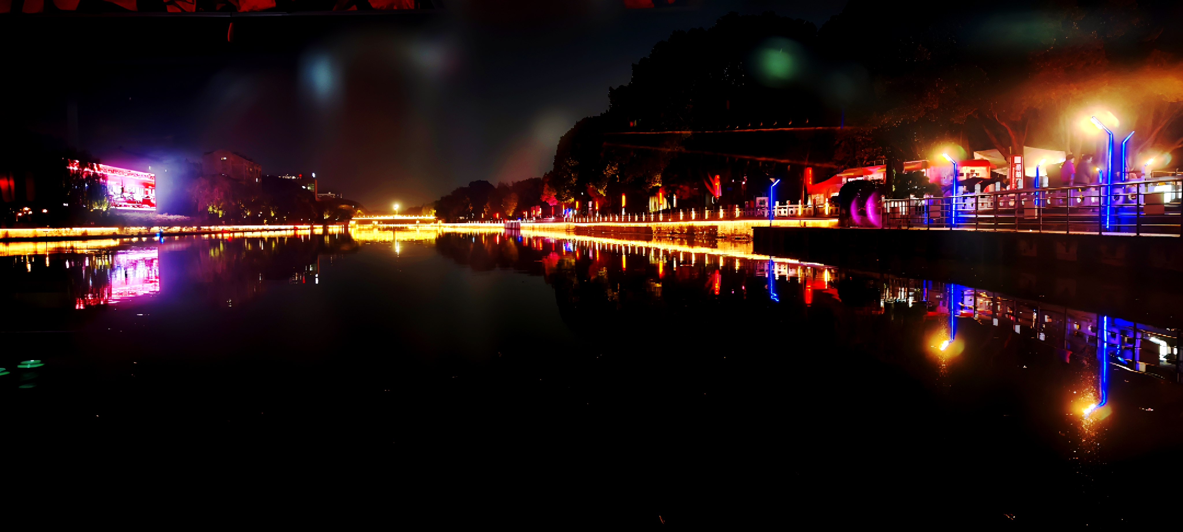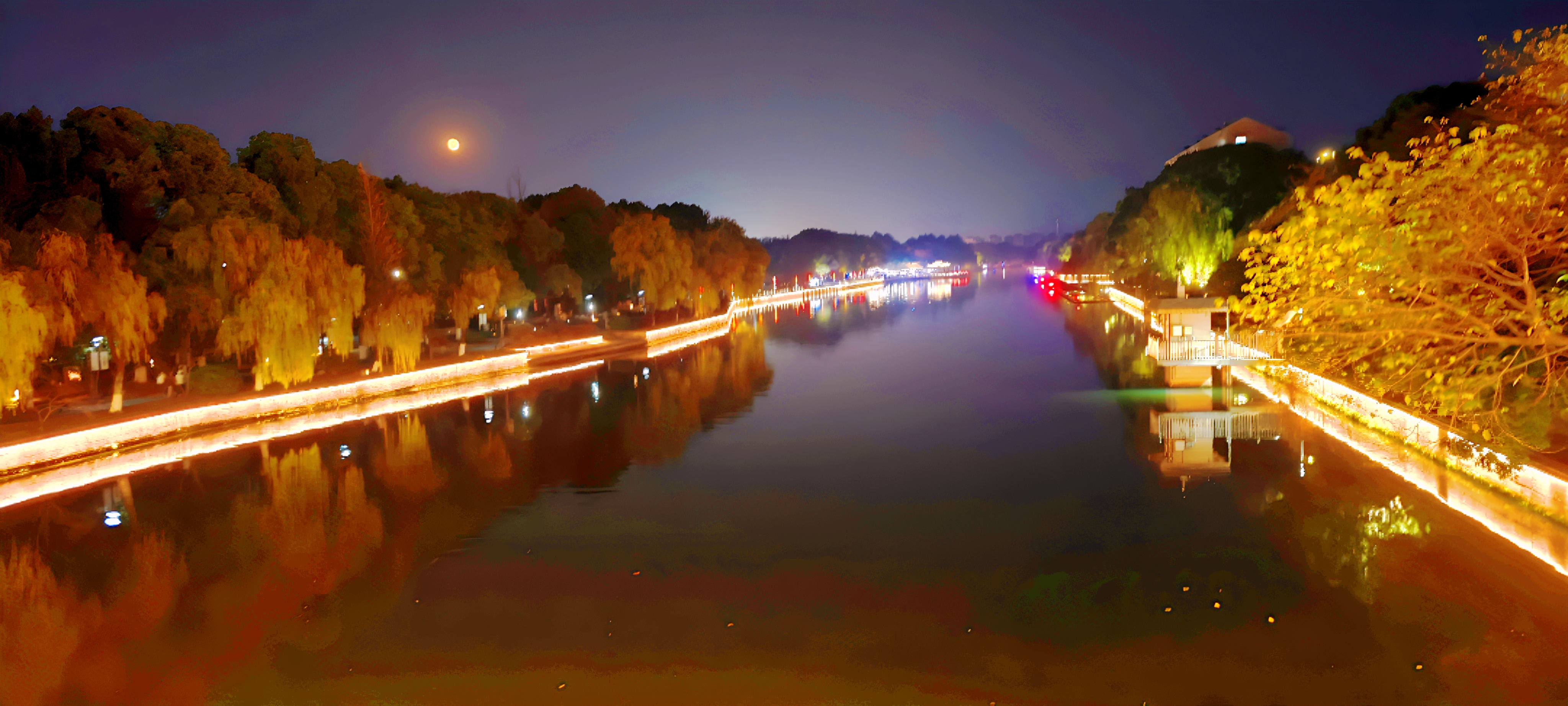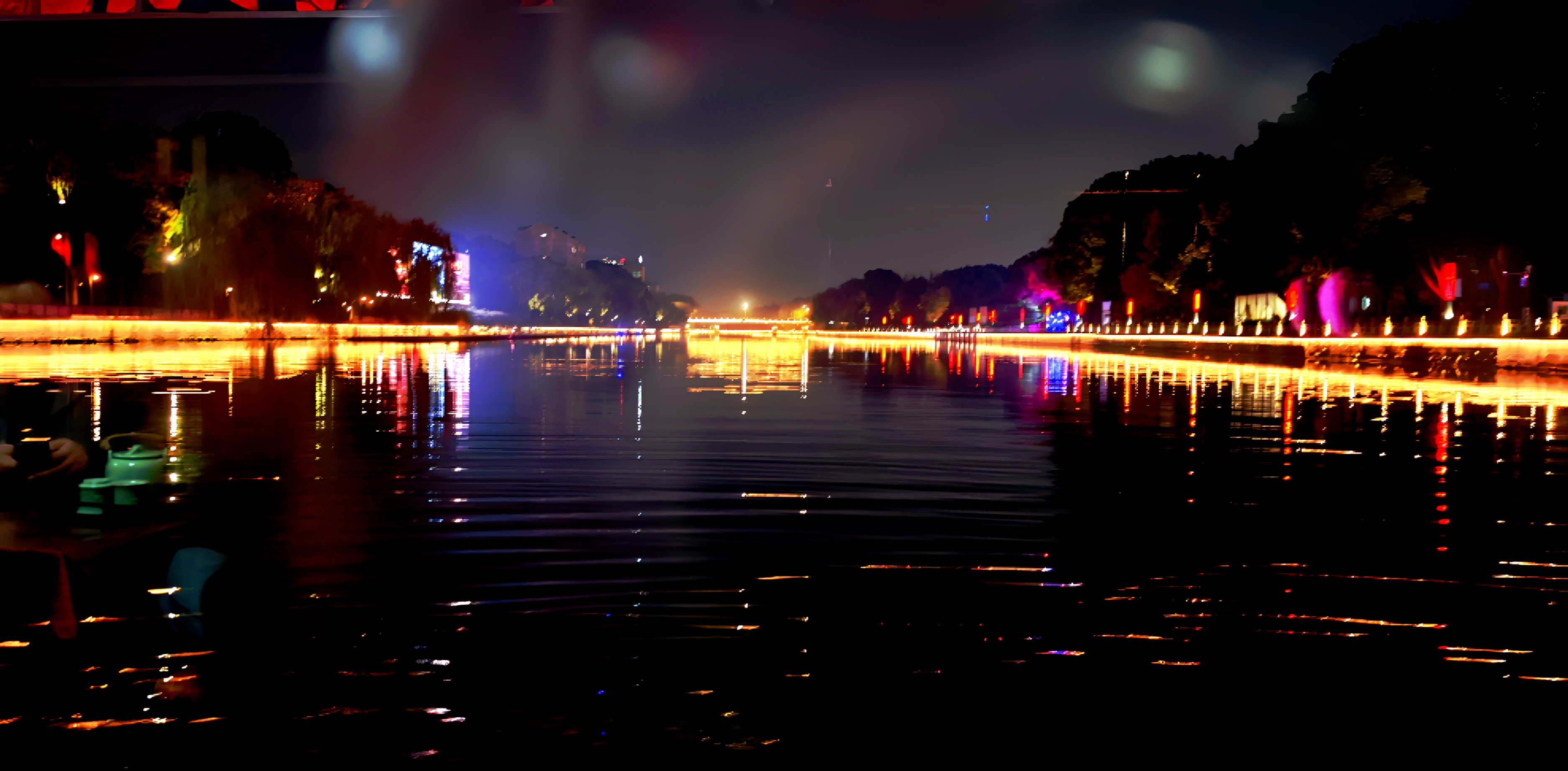 《环河夜景 如诗如画》,冬日大雪季节之夜,登上游船,悠悠绍兴环城河的夜景,彩灯阑珊,如诗如画。