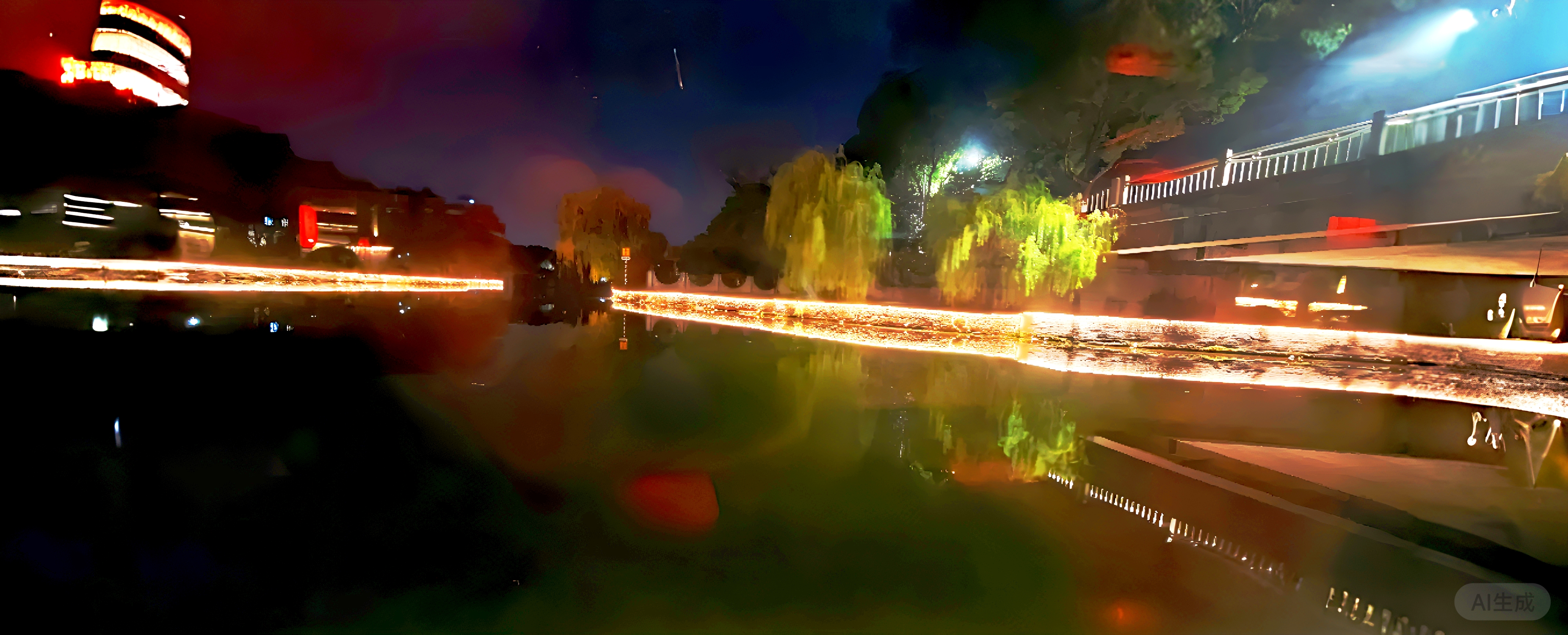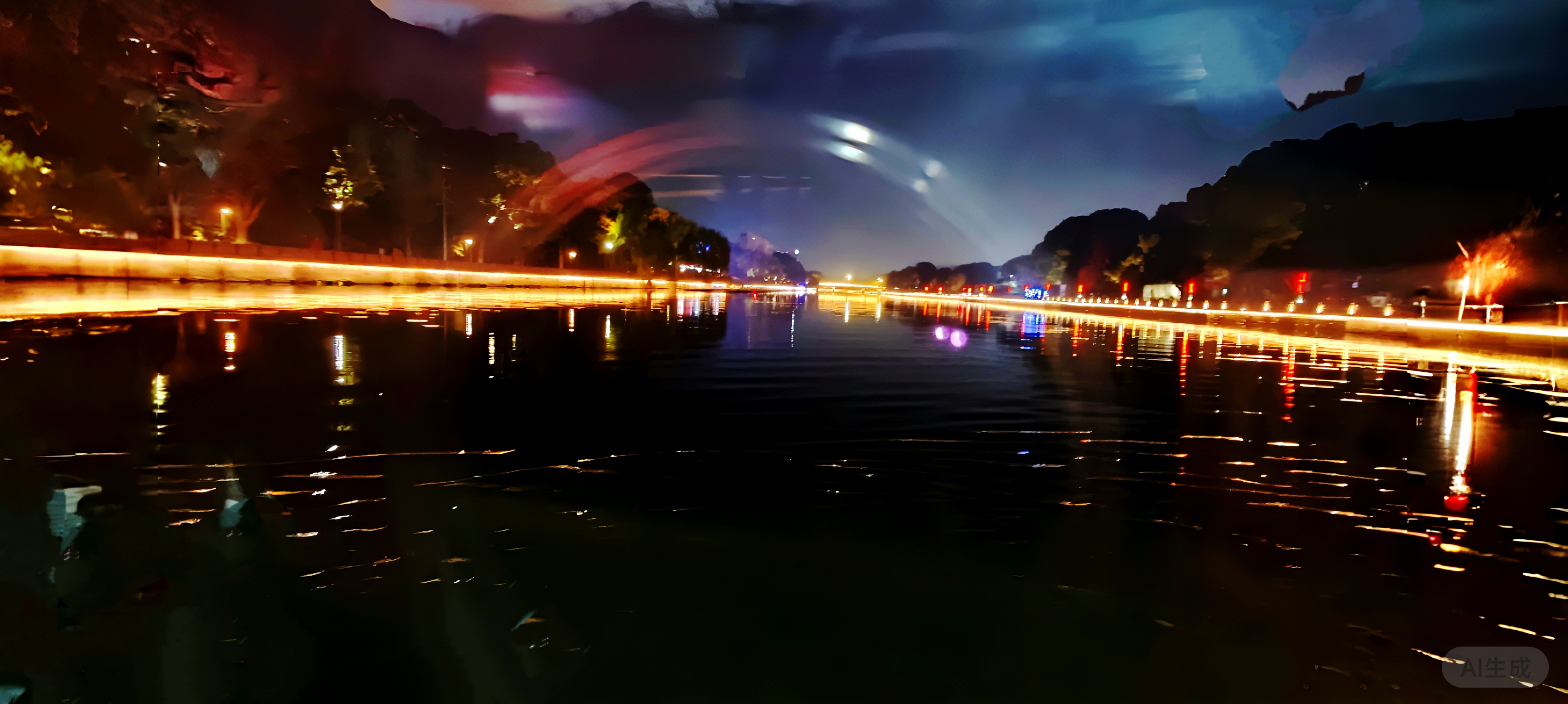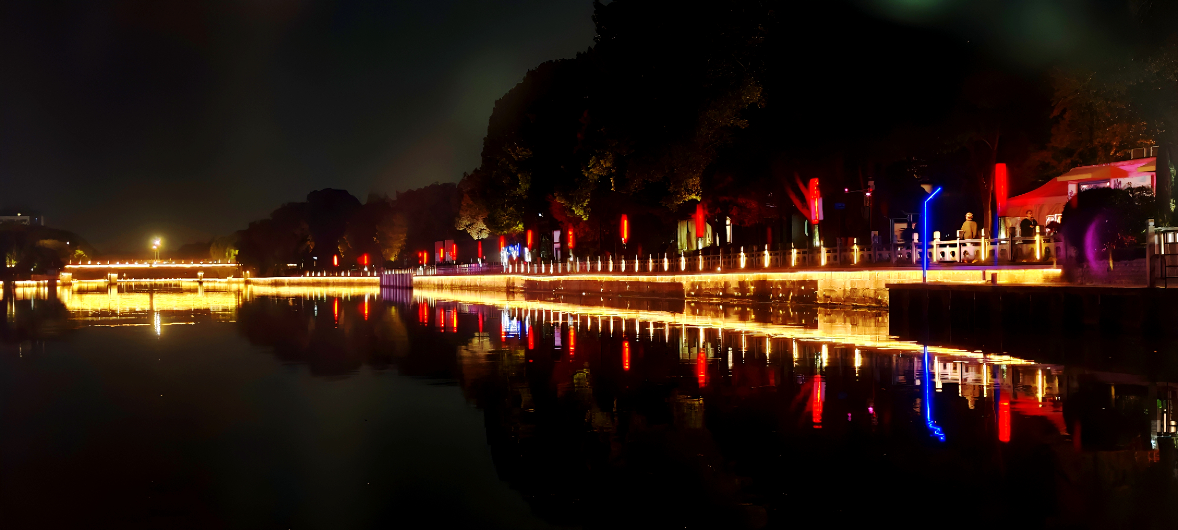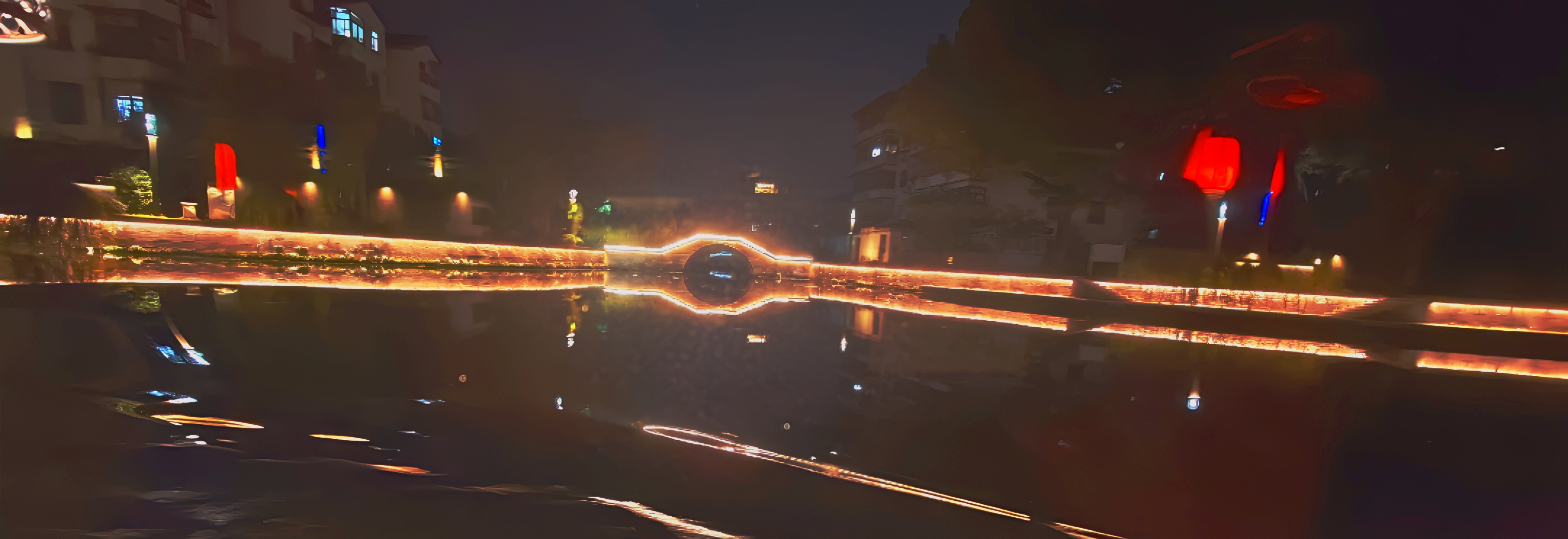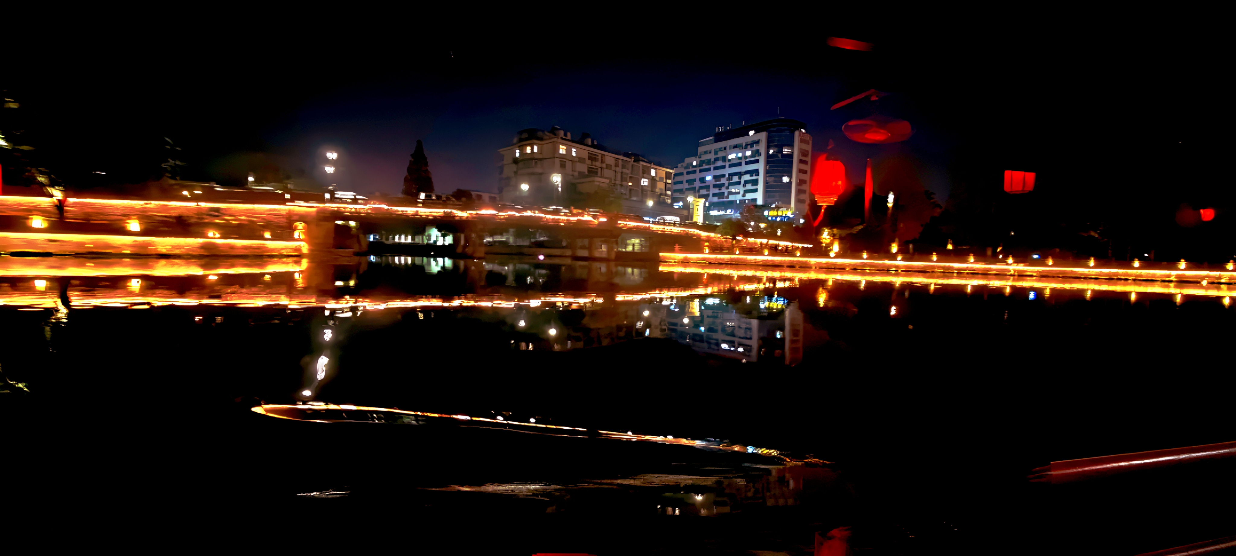 《环河夜景 如诗如画》,冬日大雪季节之夜,登上游船,悠悠绍兴环城河的夜景,彩灯阑珊,如诗如画。