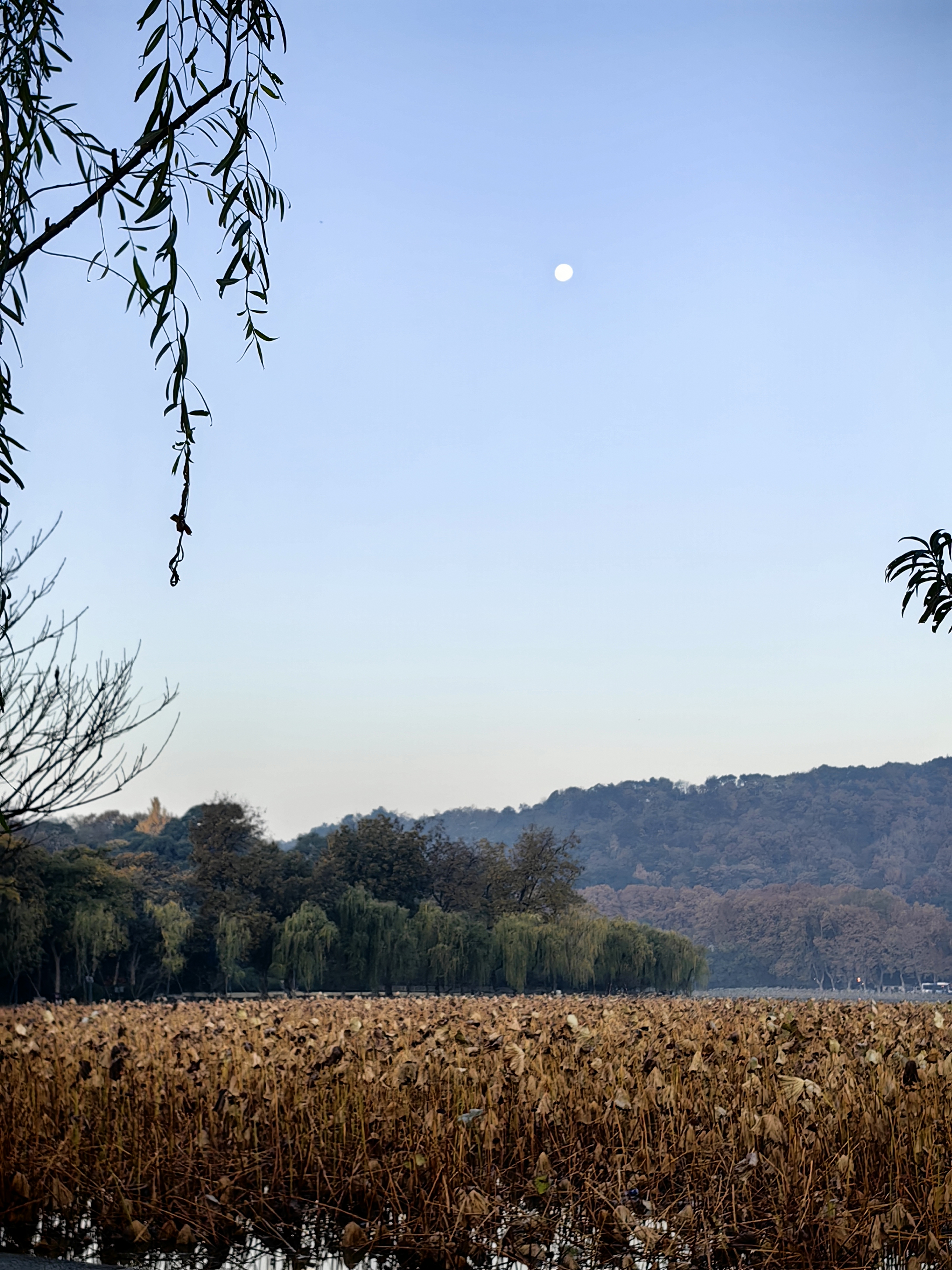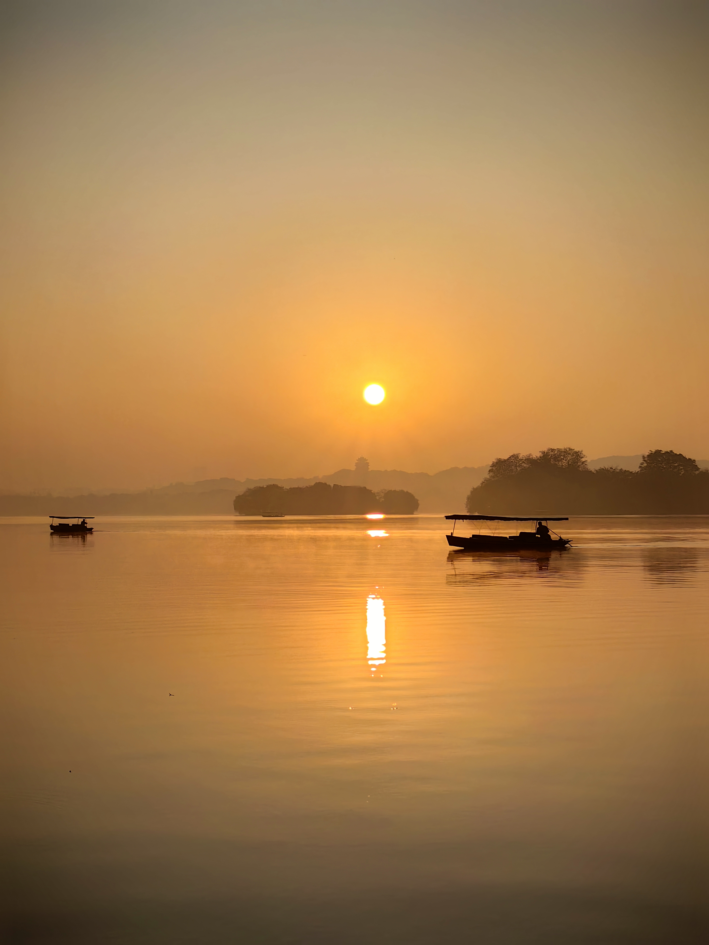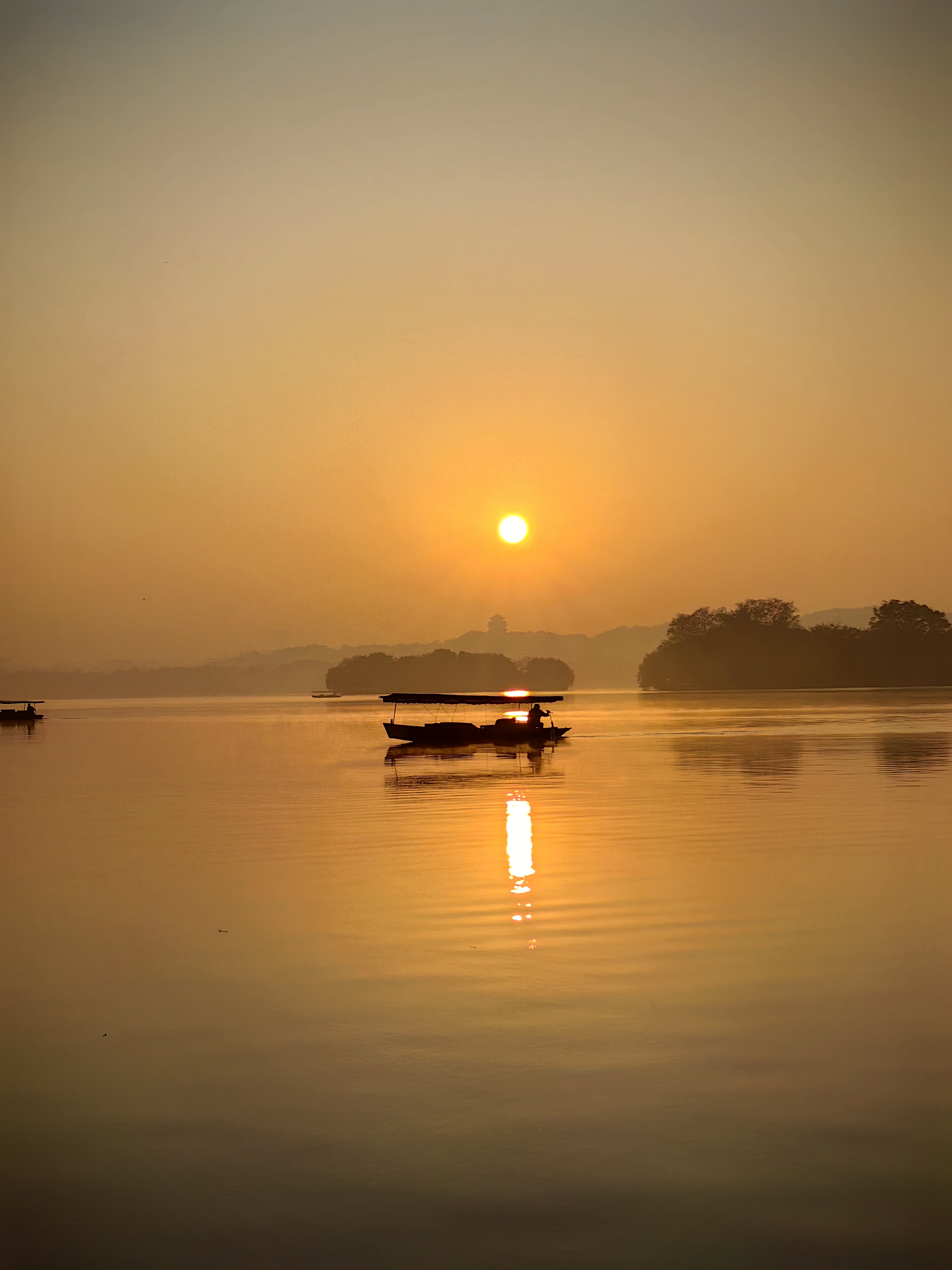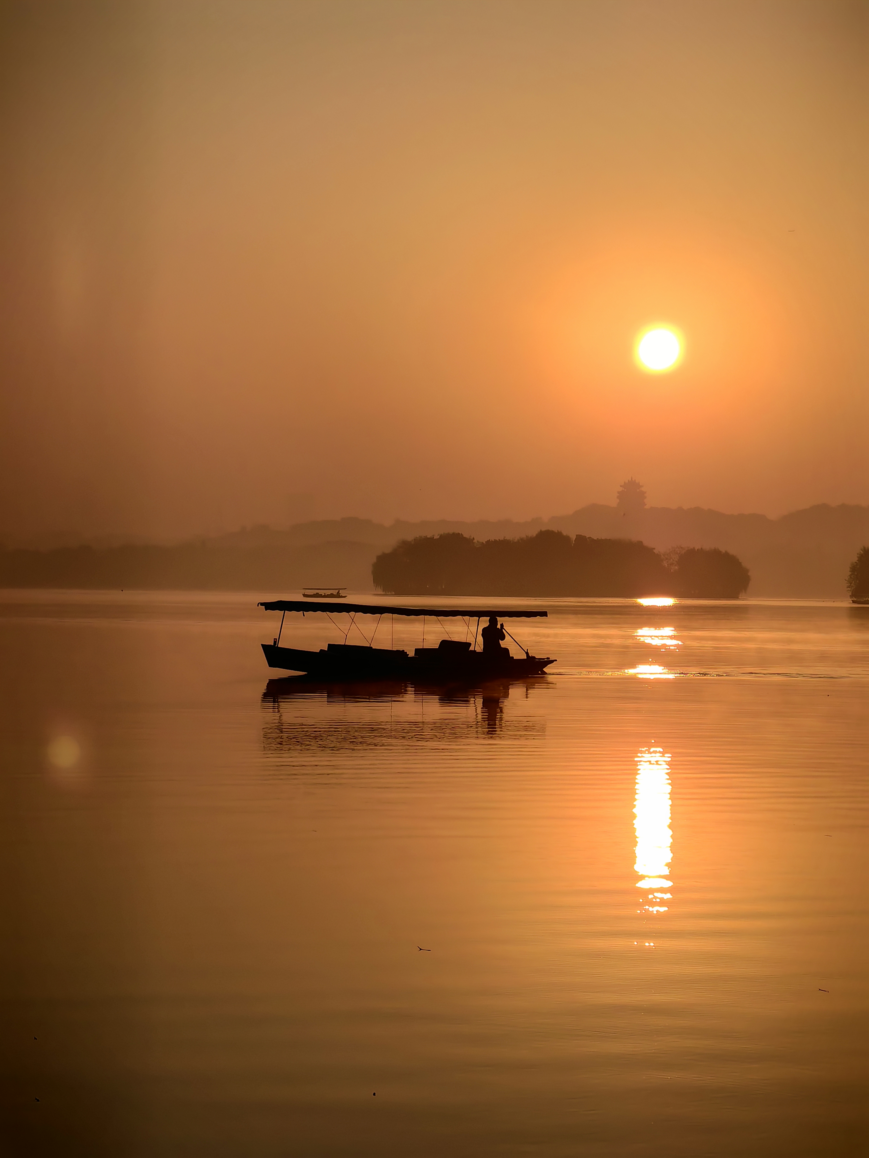 晨光初吻湖面,游船划开西子的晨妆。断桥残雪未消,而秋叶已落满苏堤。长椅静候,听山峦与城市在倒影里低语。
