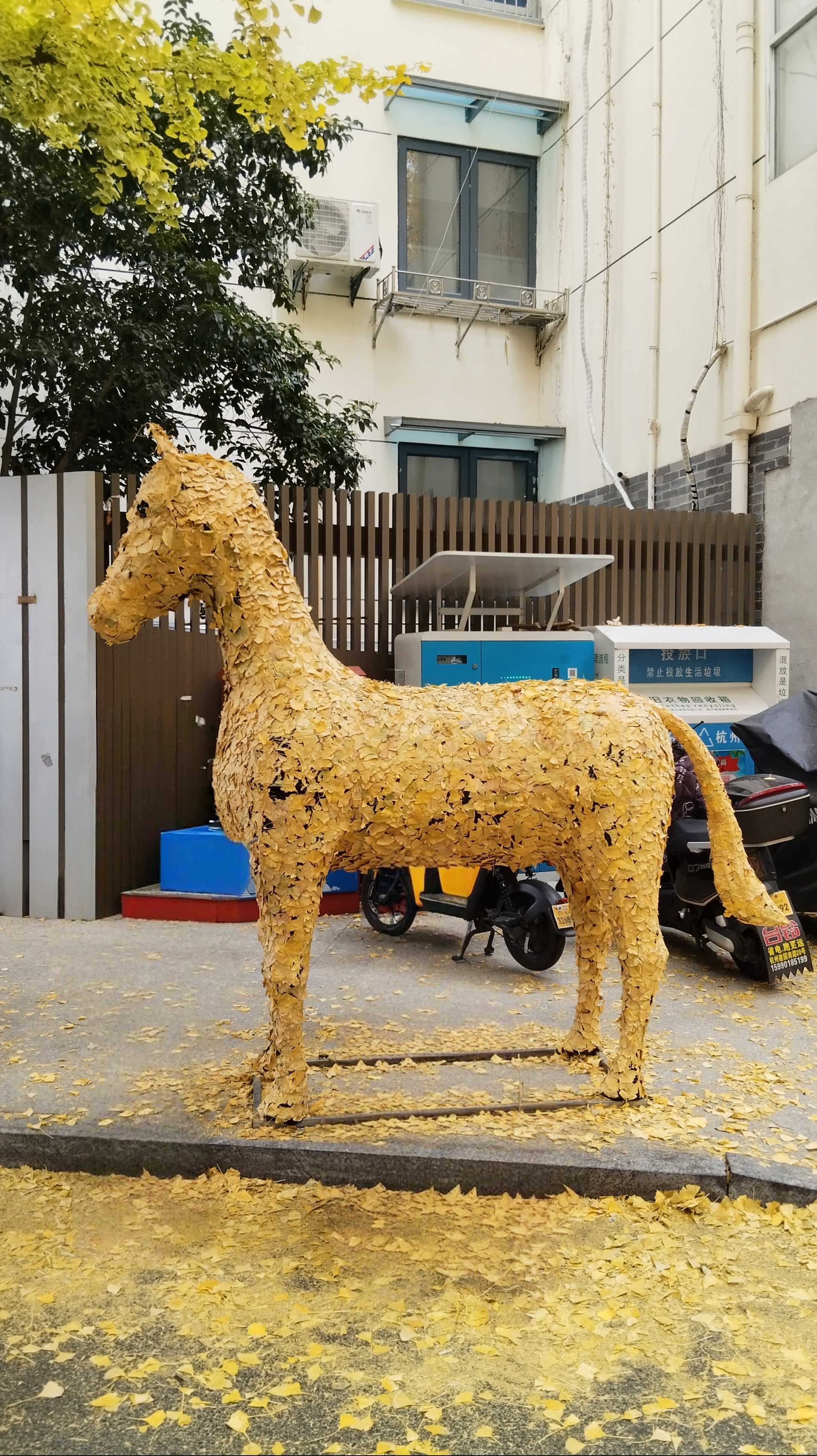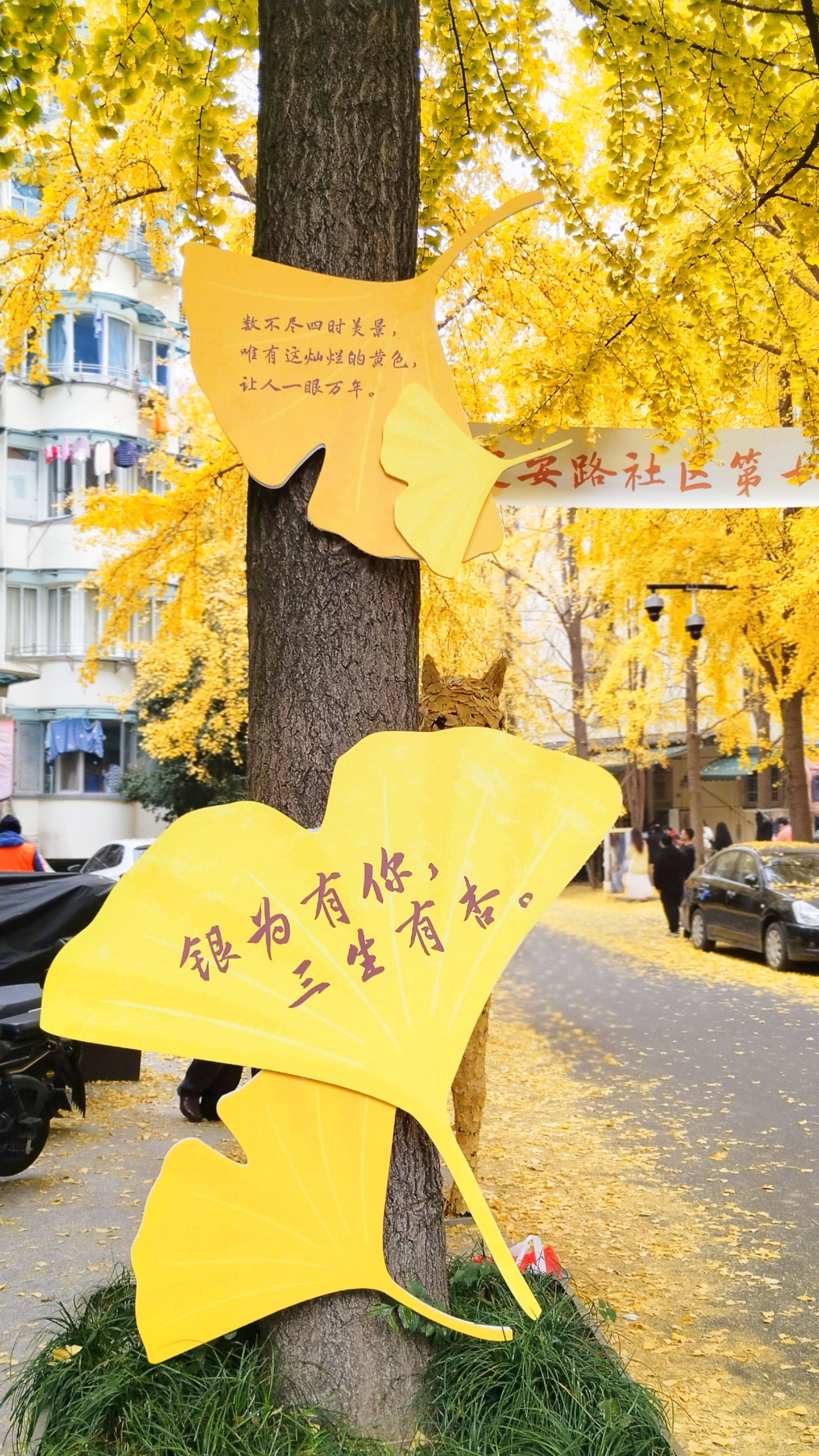 定安路社区的银杏黄了!第七届文化节打卡成功~金叶铺地,还有萌萌松鼠和马雕塑,秋日氛围感拉满,随手一拍都是大片!