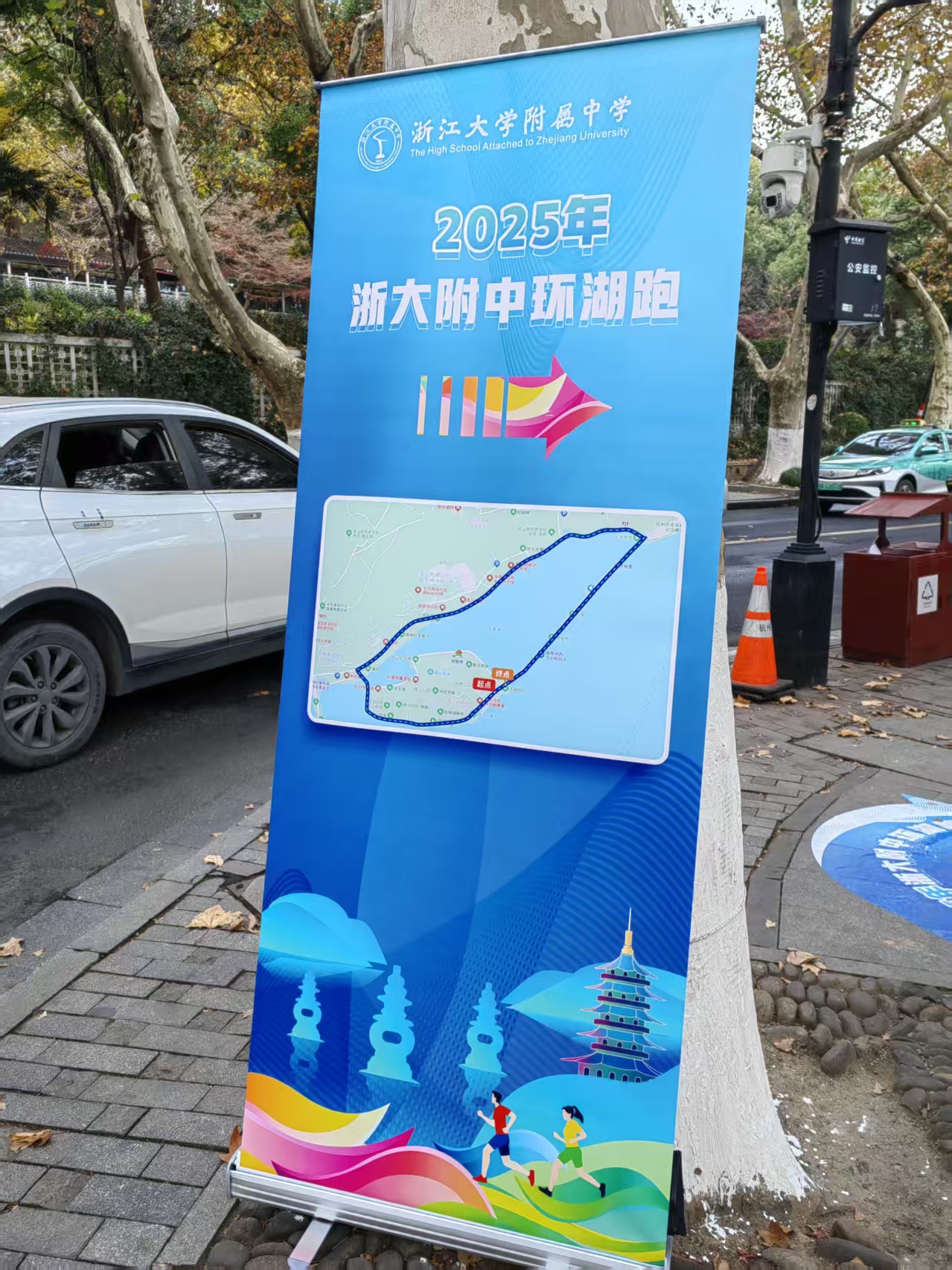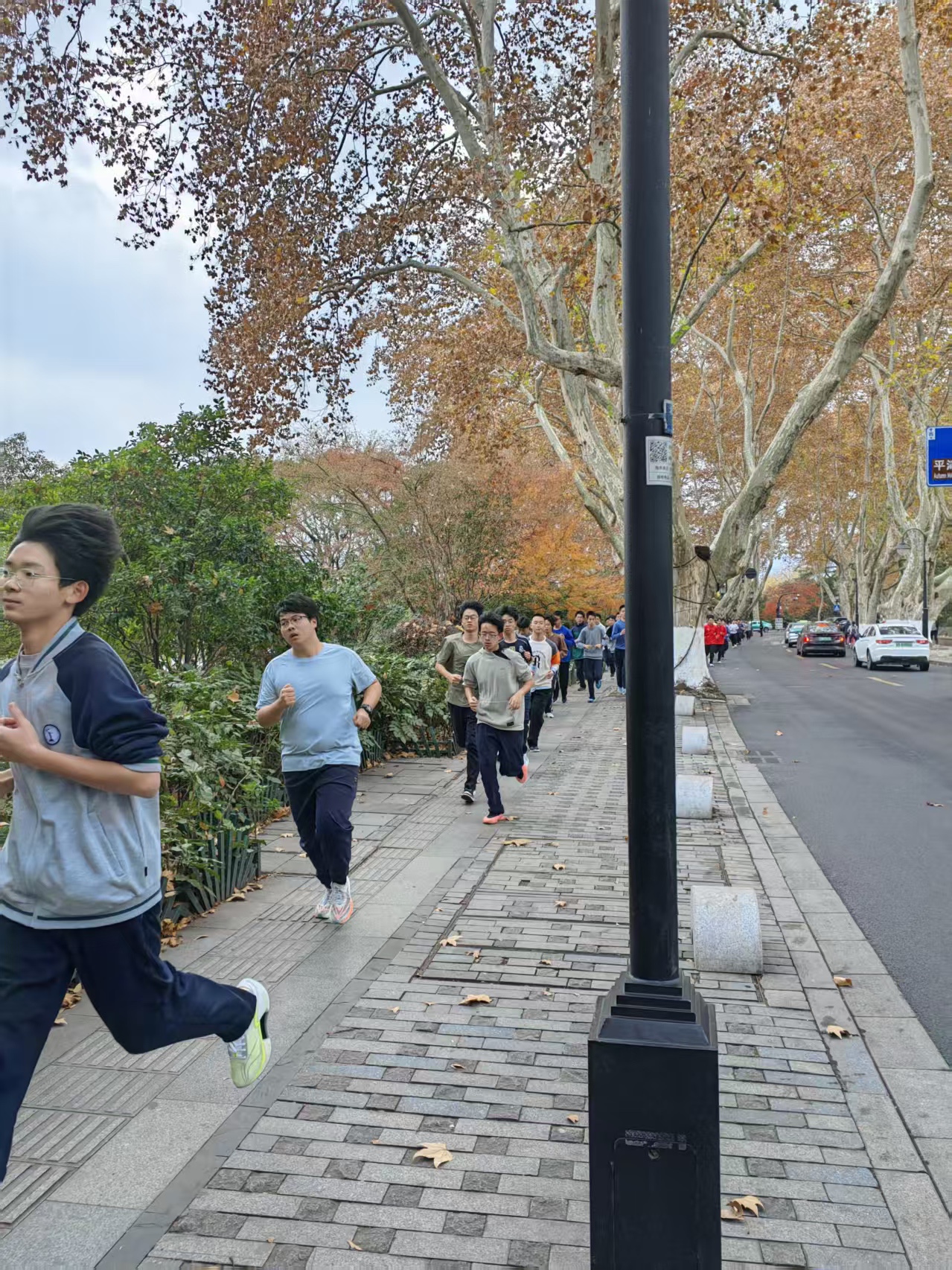 一群高中生朝气蓬勃跑过来!年轻,真好。一问,原来是浙大附中的,连老师都一起跑呢。他们这趟全程约4公里。