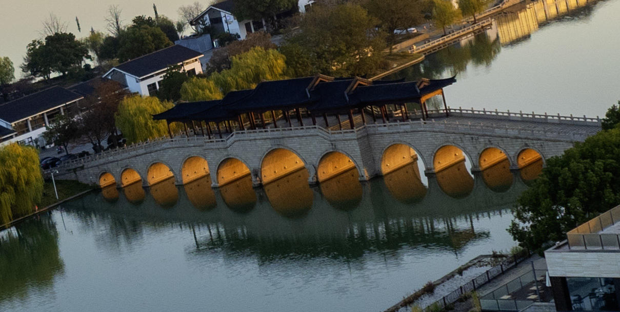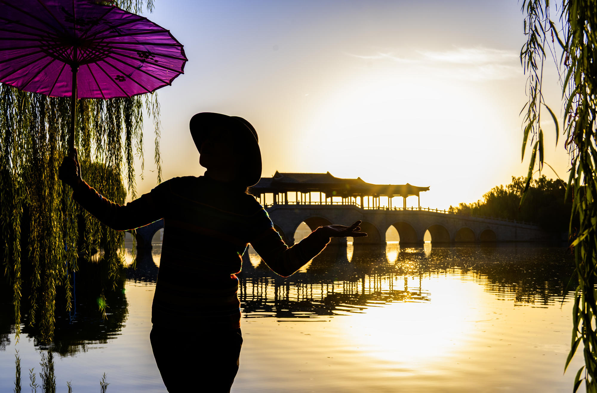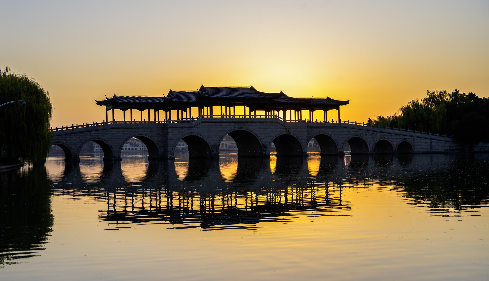 这便是传说中的“金光穿洞”,刹那光辉,天地共耀。幸运至极,我竟将这转瞬即逝的奇景定格于镜头之中,光影流转,桥影鎏金,仿佛时间也为之凝滞。