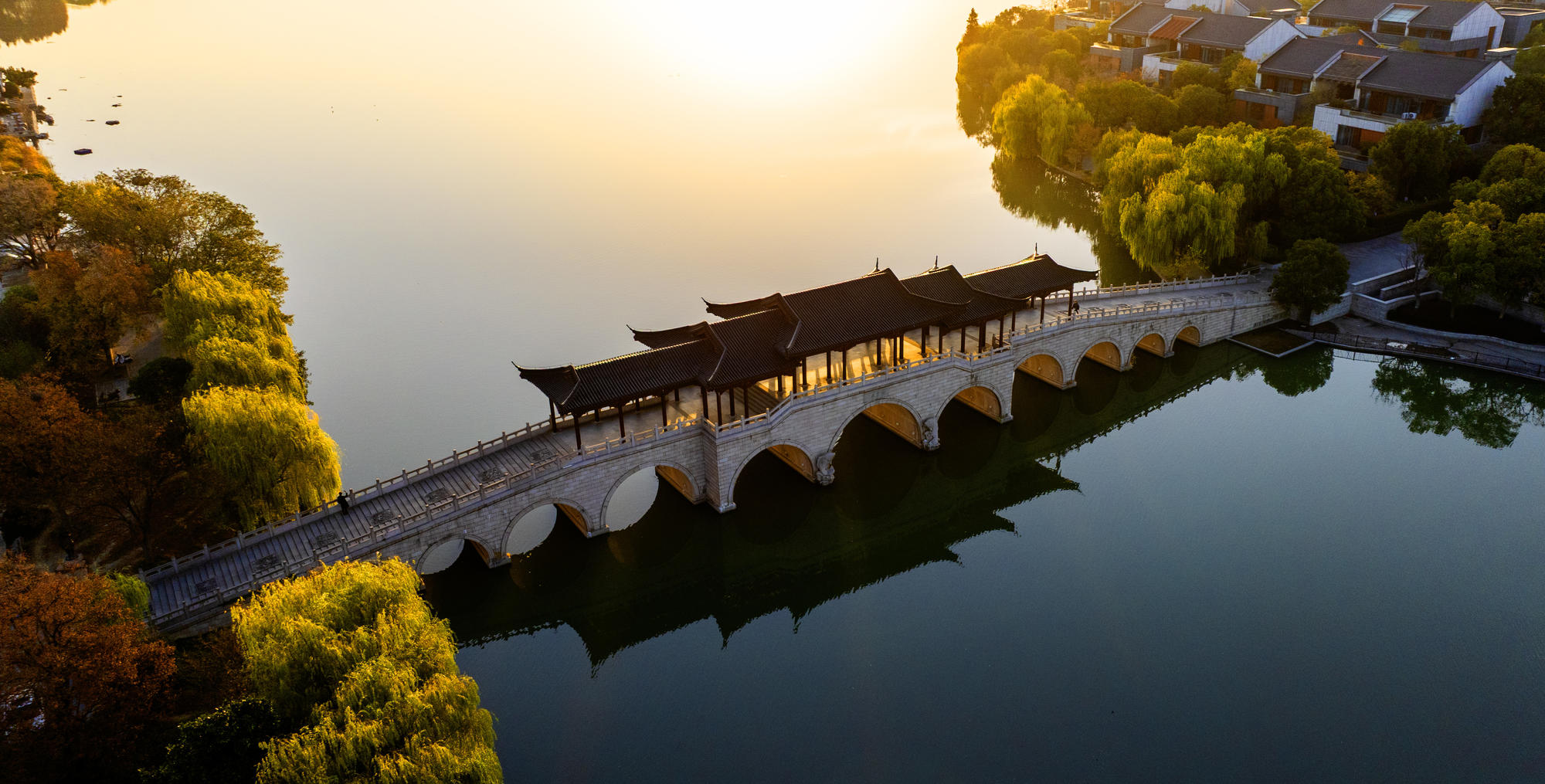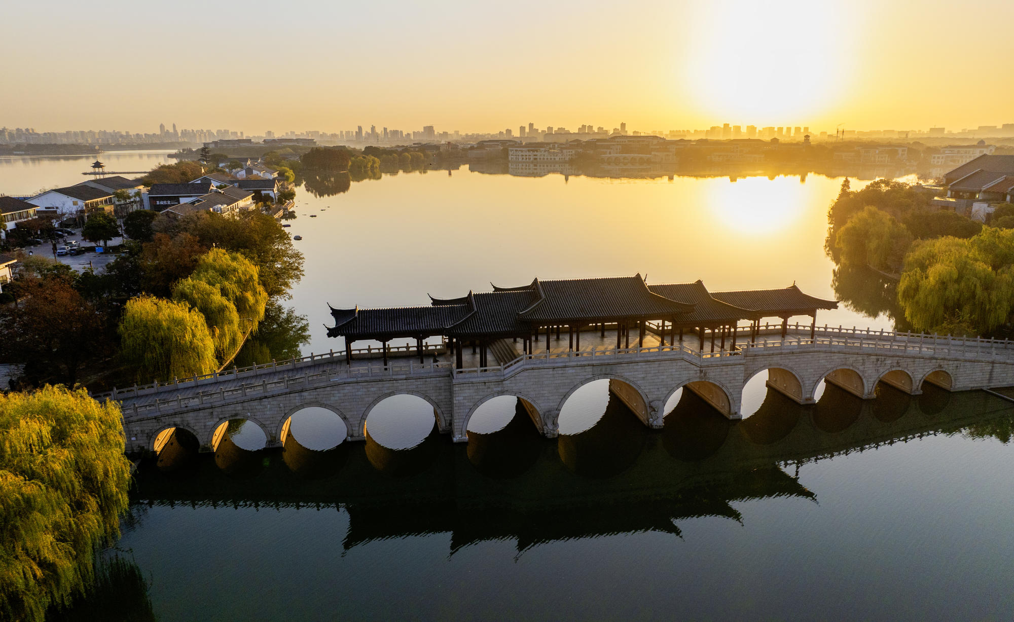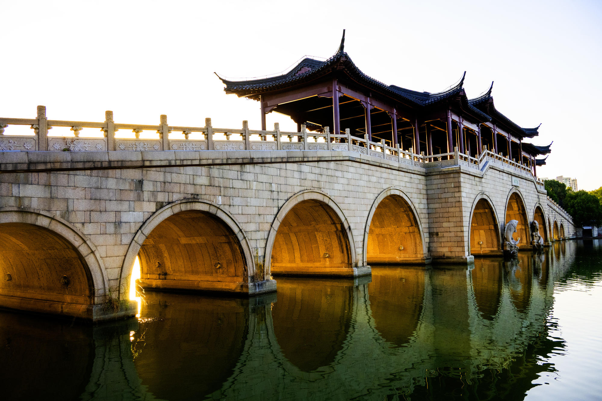 这便是传说中的“金光穿洞”,刹那光辉,天地共耀。幸运至极,我竟将这转瞬即逝的奇景定格于镜头之中,光影流转,桥影鎏金,仿佛时间也为之凝滞。