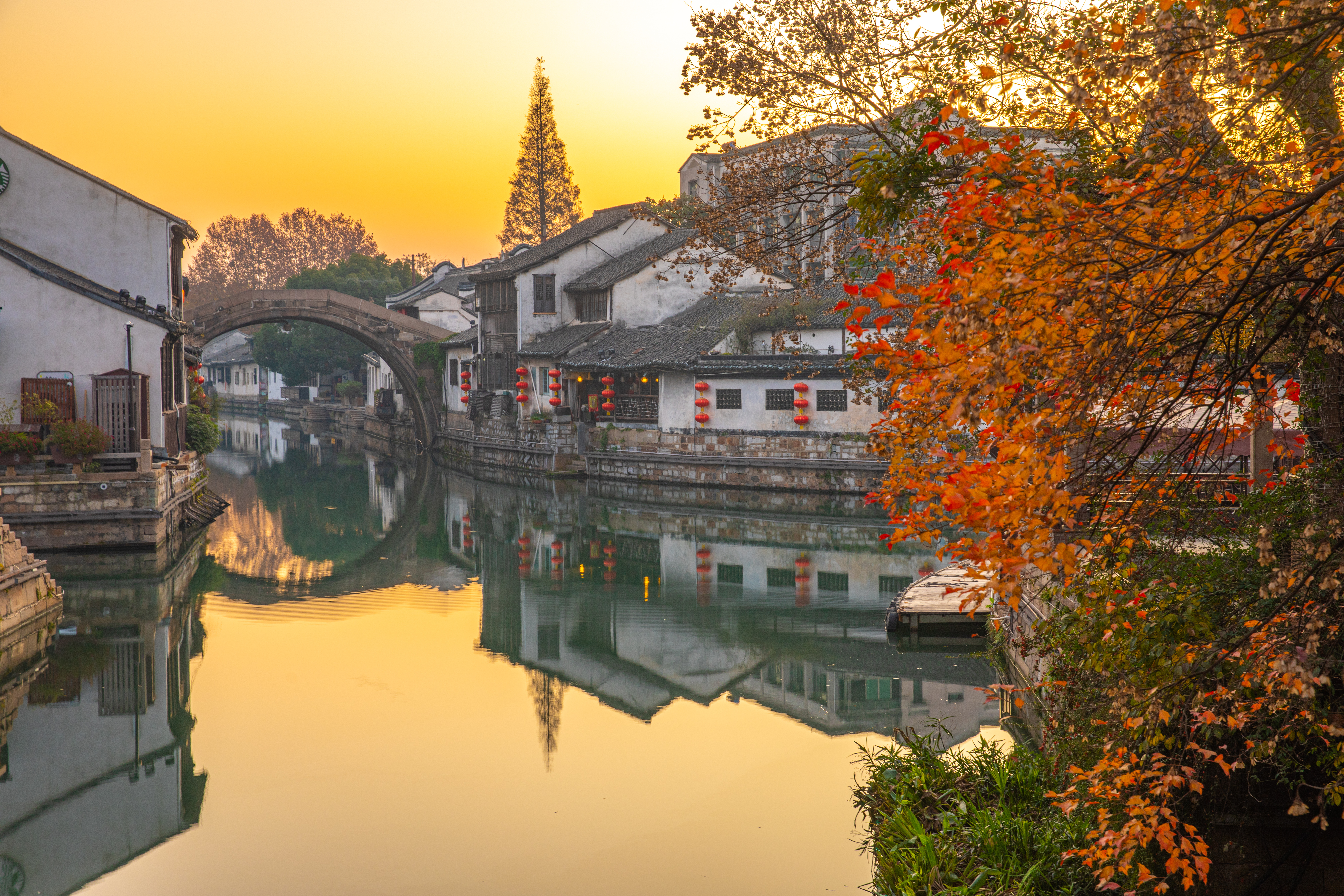 浙江湖州:古镇日出美如画 2025年12月6日,位于浙江省湖州市南浔区南浔古镇十字港码头,冬季清晨的第一缕阳光在通津桥东北侧缓缓升起,古镇环卫工人和古镇船夫开始陆续上班,南浔古镇迎来了日出光辉下最美的时刻,日出金光下的古镇美如一幅幅画卷在水面上徐徐展开。