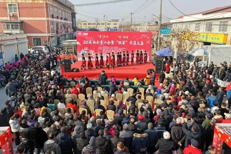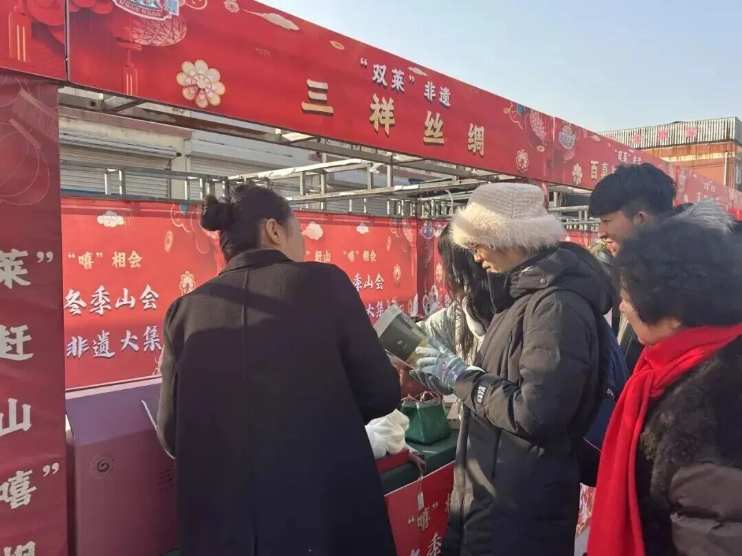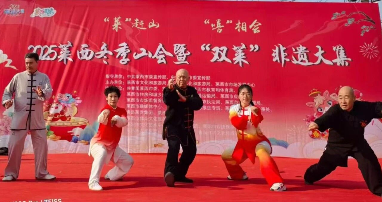 “莱”赶山,“嘻”相会——“双莱”非遗大集盛大开幕 近期,2025莱西冬季山会暨“双莱”非遗大集盛大开幕。 开幕式上,莱阳村歌大赛优秀选手杨玉刚与王燕萍,演绎了《故乡有话告诉你》《梅花赋》等经典歌曲,国家级非遗项目螳螂拳《螳螂魂·梨乡韵》刚柔并济、意蕴深厚,将传统武术精髓与“双莱”地域文化相融。 活动现场,莱阳市11个非遗代表性项目与莱西市非遗代表性项目共同亮相。莱阳结绳、莱阳丝绸、莱西面塑等手作展品摆满摊位,尽显传统技艺的匠心与质感;莱阳慈梨膏、莱阳绿茶、莱阳老火腿等莱阳特色非遗产品与莱西大沽剪纸、莱西木偶戏、莱夷古乐等莱西特色非遗代表性项目交相辉映,非遗好物与特色技艺碰撞出别样文化火花。