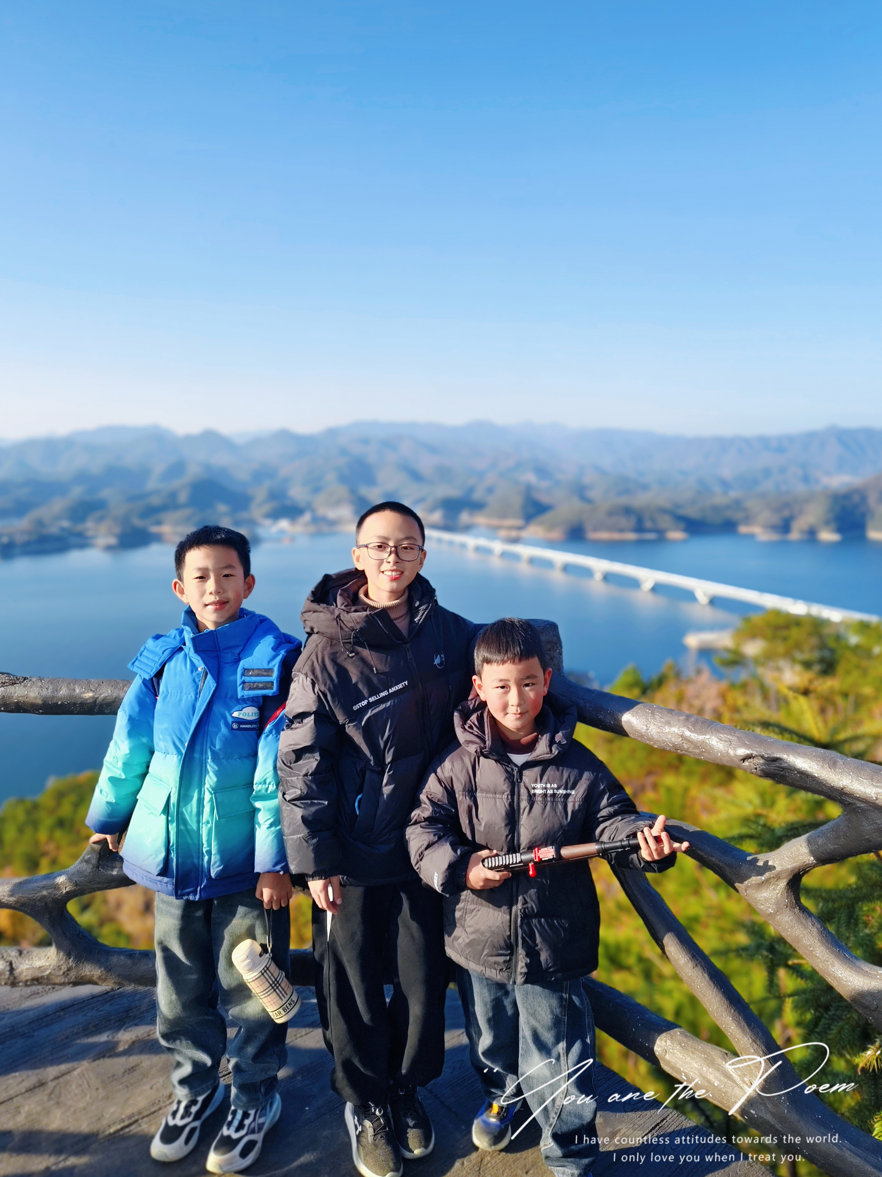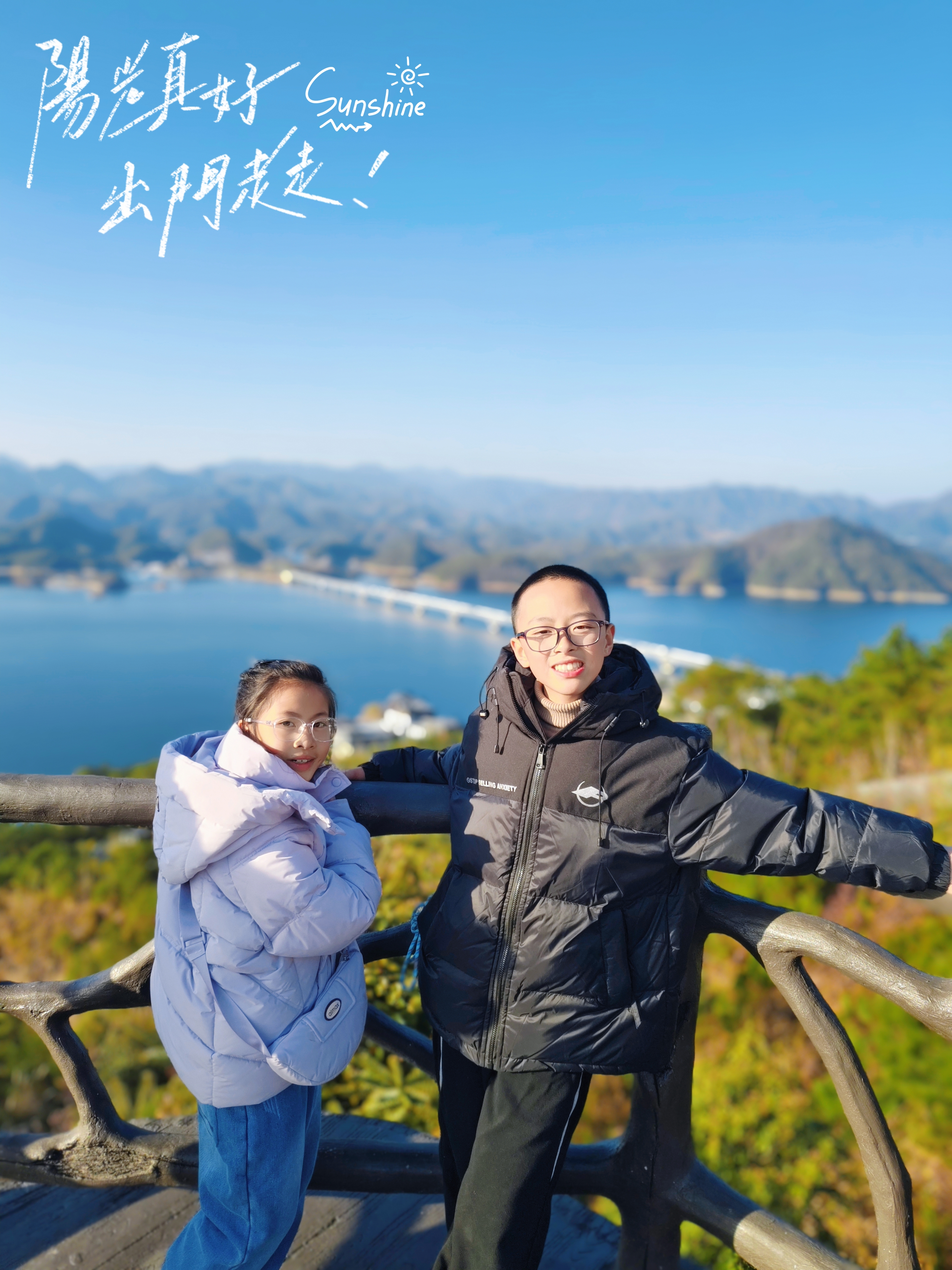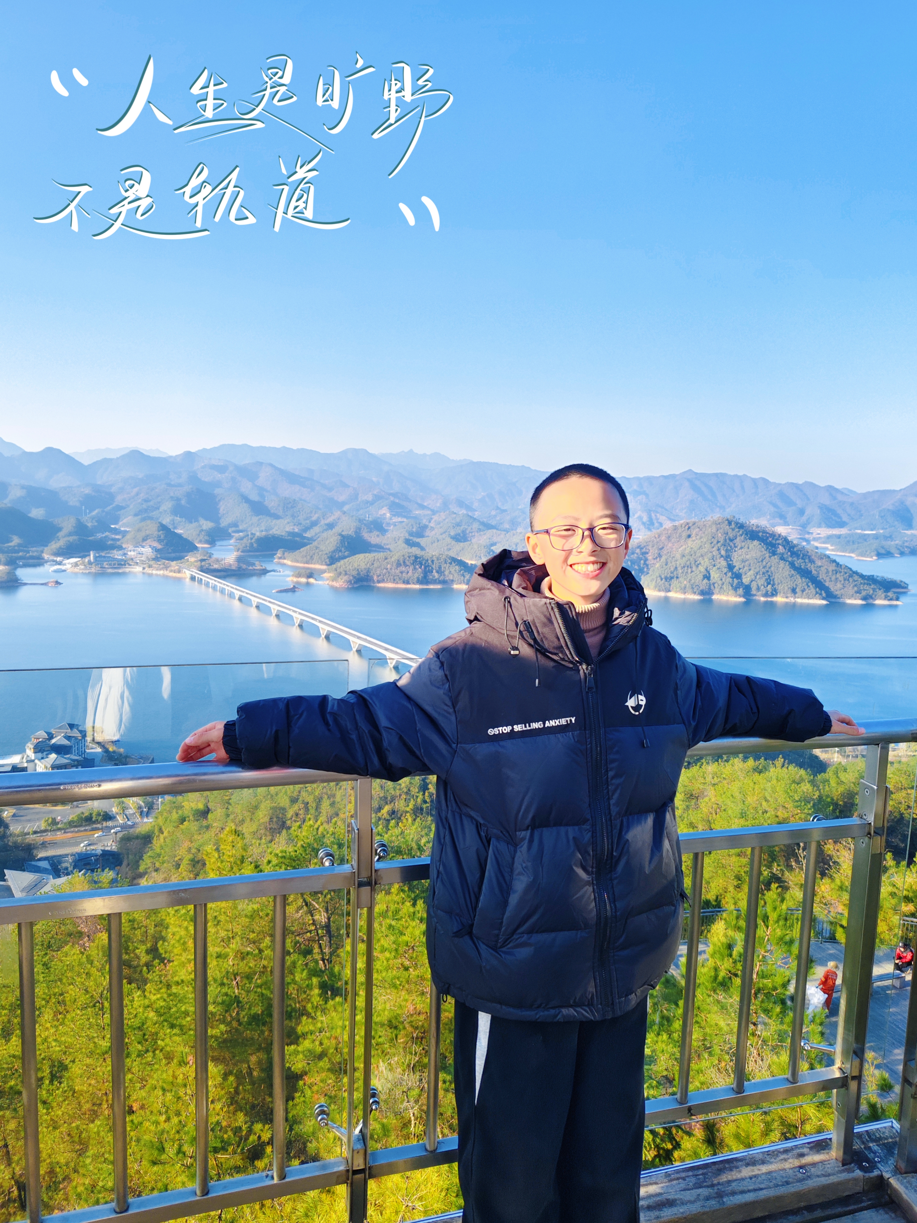 冬日的暖阳铺满天屿观景台,玻璃栈道延伸向千岛湖的粼粼波光。山湖为幕,松风轻吟,这一刻,作业本上的字迹也成了旷野诗行。不负时光,原是这般普通而美好的日常。阳光正好,周末就该出门走走。