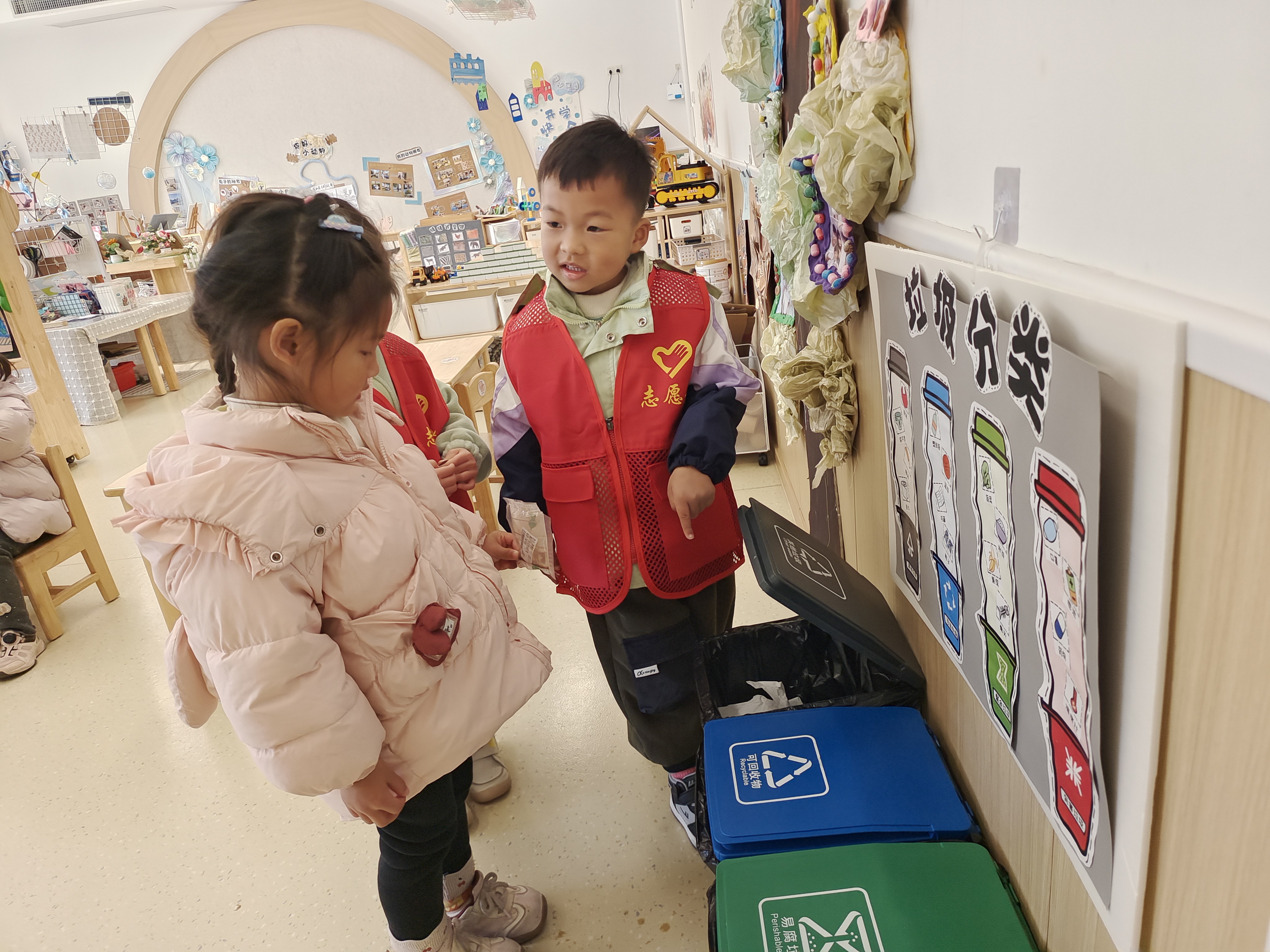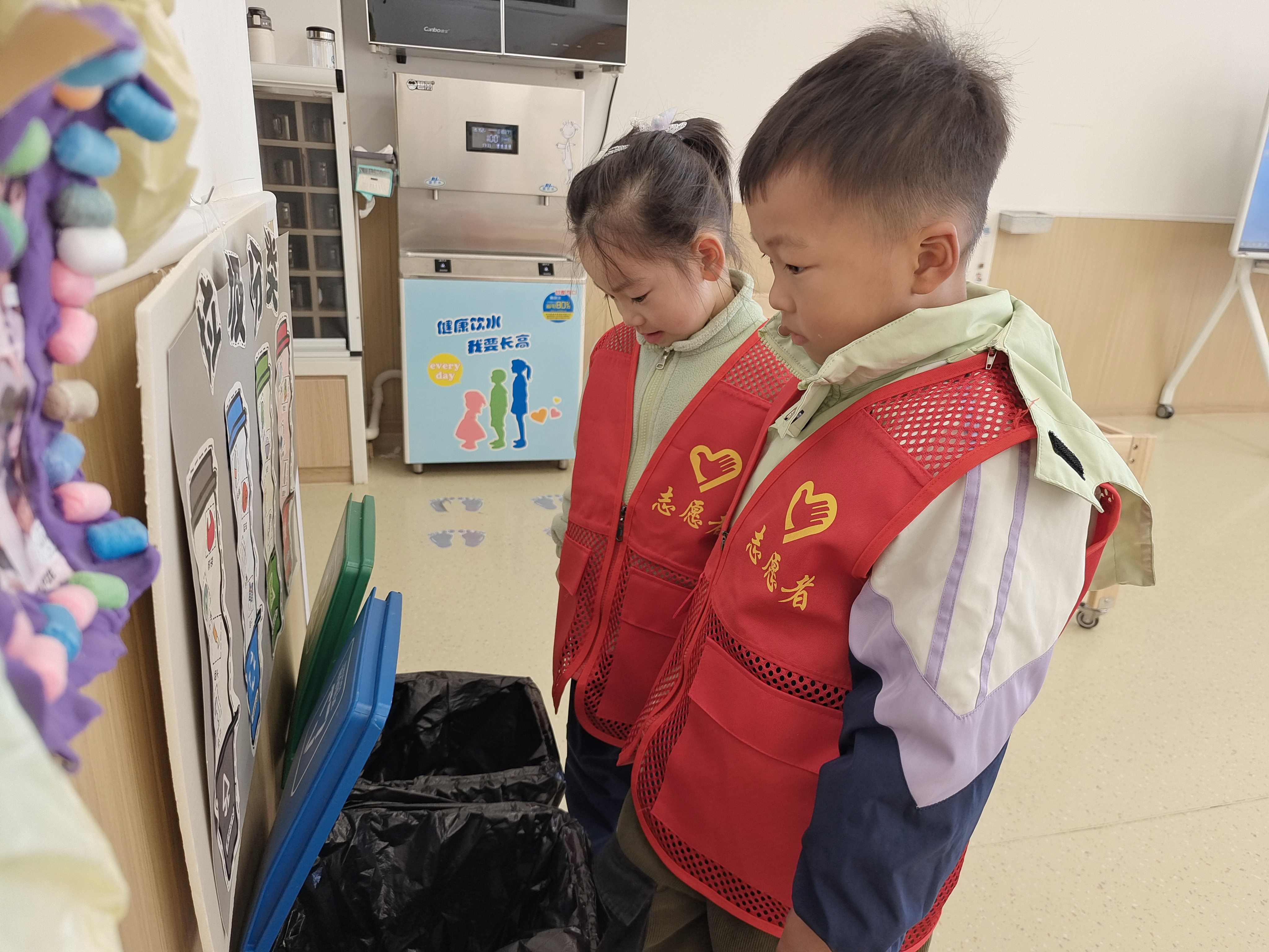 垃圾分类 绿润童心 ——潮听苑幼儿园中一班垃圾分类系列活动 近日,杭州市钱塘区潮听苑幼儿园中一班的孩子们将环保行动落到实处。垃圾分类精准投放、节约粮食践行光盘,绿色低碳浸润日常,用稚嫩小手播撒绿意,让环保种子在童心深深扎根。 01.环保小课堂 保健教师带领中一班孩子们开展垃圾分类教学活动。通过趣味讲解与实操体验,孩子们不仅学会垃圾四分类,还树立了 “垃圾分类从我做起” 的责任意识,为践行绿色生活打下基础。 在日常实践中,孩子们主动区分各类垃圾,不仅固化了垃圾分类技能,还逐步养成主动分类、绿色低碳的良好生活习惯。 为让幼儿清晰认知塑料袋的危害,班级教师通过实物示范、视频观看等趣味形式,帮助孩子们理解 “白色污染” 的影响,引导其认识减塑的重要性,创导践行使用环保袋的绿色生活方式。 02.小小监督员 垃圾分类 “小小监督员” 上岗啦!中一班小朋友化身环保小导师,耐心示范垃圾区分要点,细致引导小班弟弟妹妹规范投放,在互助互动中巩固分类技能,让环保理念传遍全园。 03变废为宝 为践行环保理念、激发创意潜能,我们鼓励幼儿主动收集随处可见的落叶、果子,设计制作创意小作品,在动手实践中感受变废为宝的乐趣。 04.光盘行动 为培养幼儿爱惜粮食、勤俭节约的良好品质,我们持续通过趣味引导,鼓励幼儿不挑食、不剩饭菜,主动践行光盘行动,争做 “光盘小达人”,养成珍惜粮食的好习惯。 05.儿歌宣讲 孩子们以分组表演、情景模拟的形式宣讲垃圾分类儿歌。通过朗朗上口的儿歌牢记分类规则,在互动宣讲中巩固知识,提升表达能力,更将环保理念传递给同伴与家人,助力养成分类好习惯。 潮听苑幼儿园始终将环保与节约理念融入日常保教,全体师生持续践行爱护环境、勤俭节约、垃圾分类等行动。通过儿歌宣讲、变废为宝、光盘行动、互助监督等丰富的活动,孩子们在实践中养成良好习惯,深化环保认知。幼儿园将继续深耕绿色教育,让节约环保理念扎根童心,共筑可持续发展的美好校园。