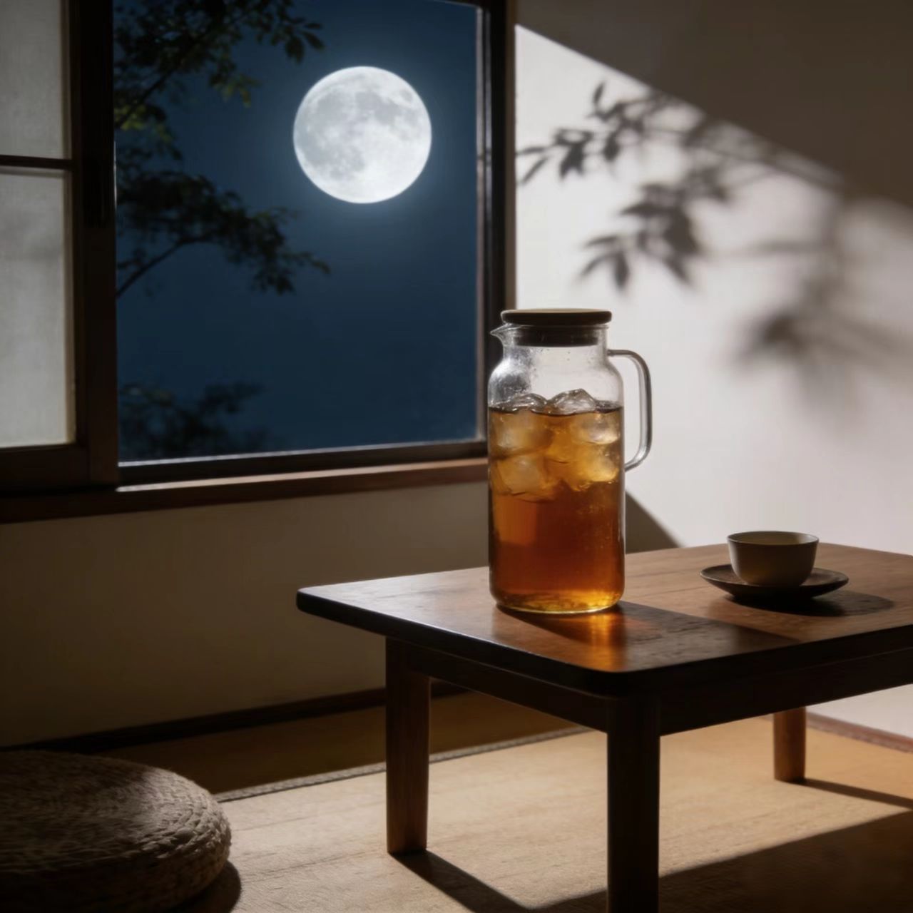 月升时泡一壶冷泡茶,看窗外树影摇晃。不言不语的片刻,便是生活的留白与清简。